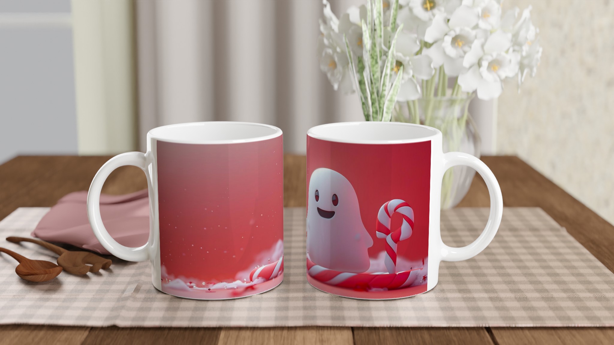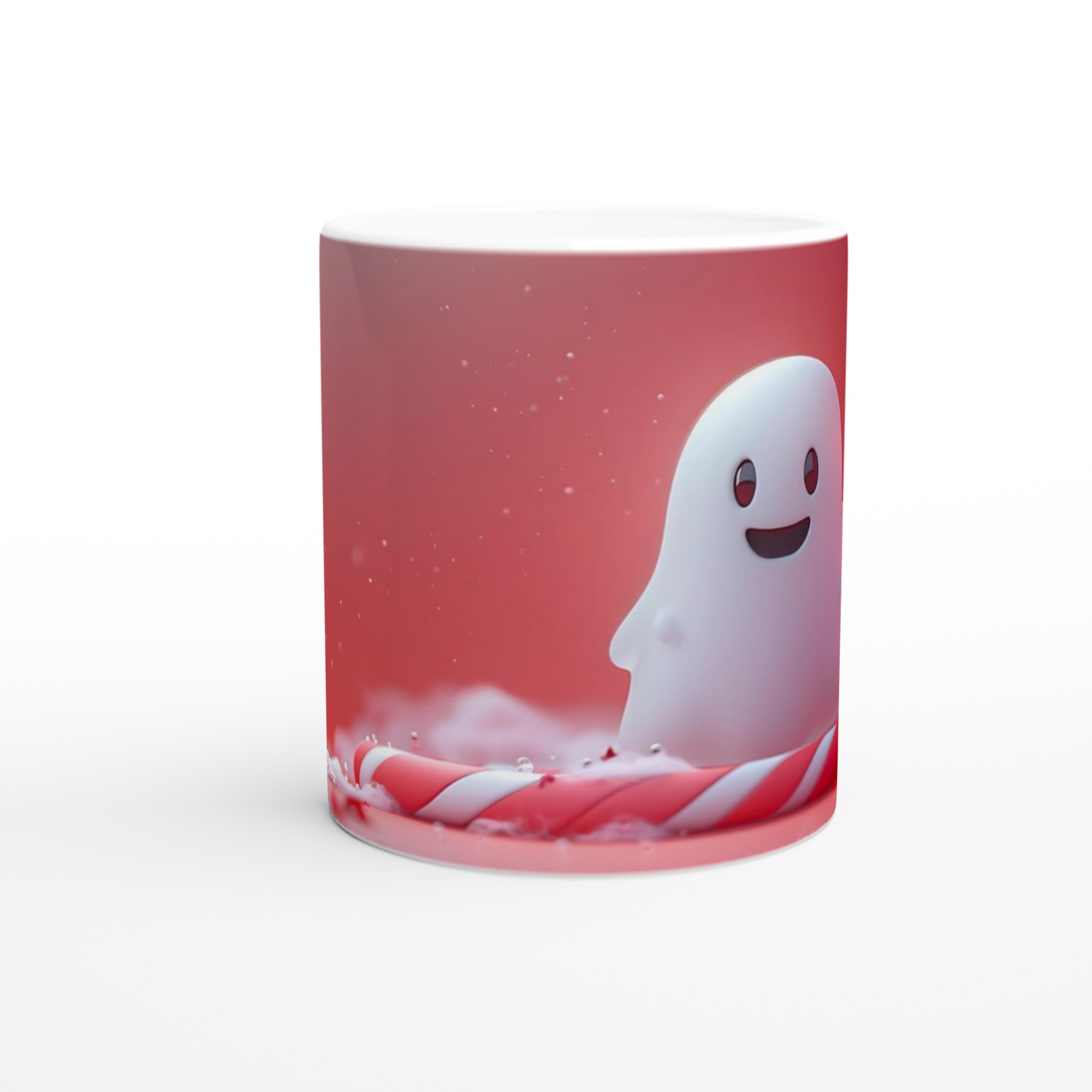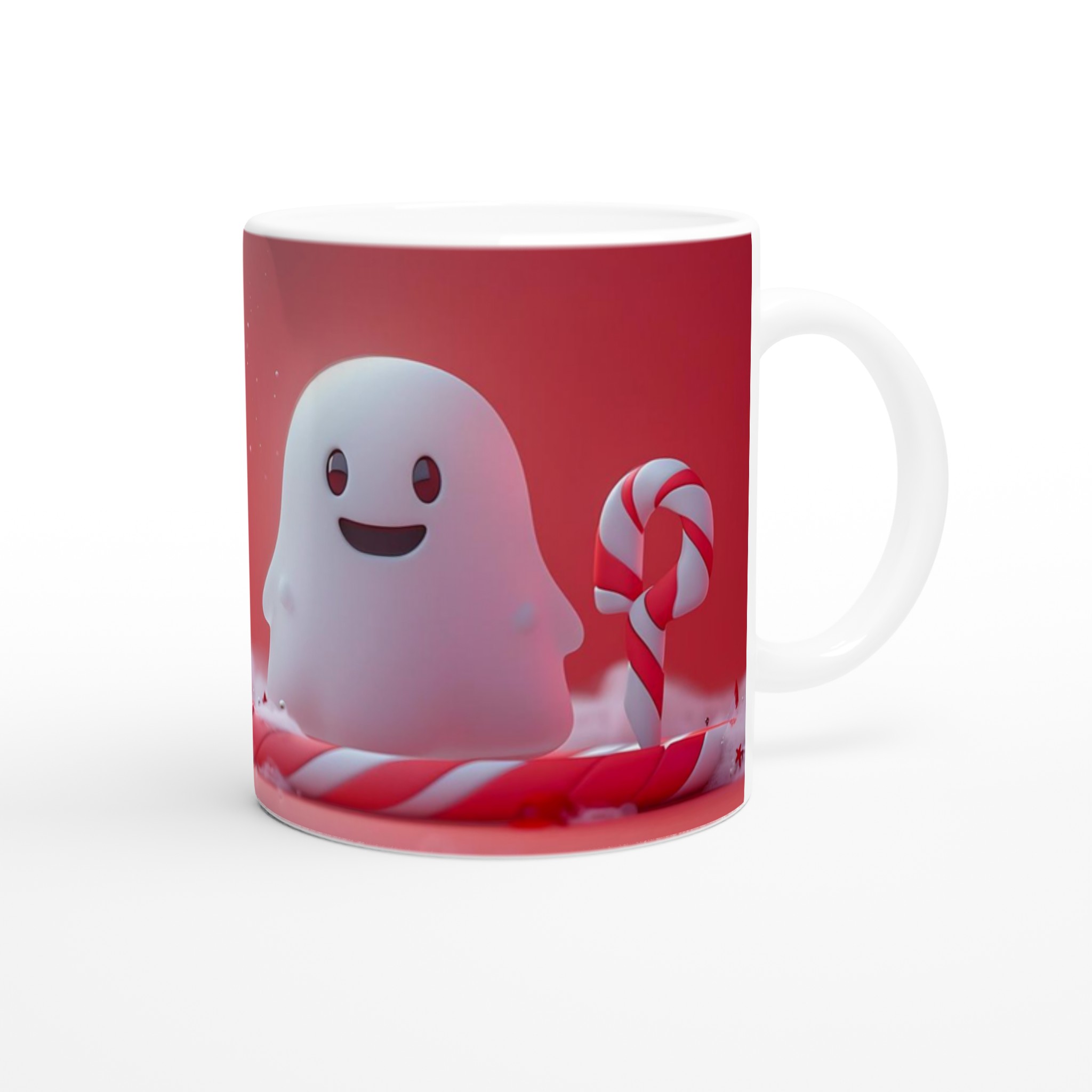 Charming Ghost & Candy Cane Ceramic Mug – Sweet Holiday Spirit in Your Choice of 7 Colors