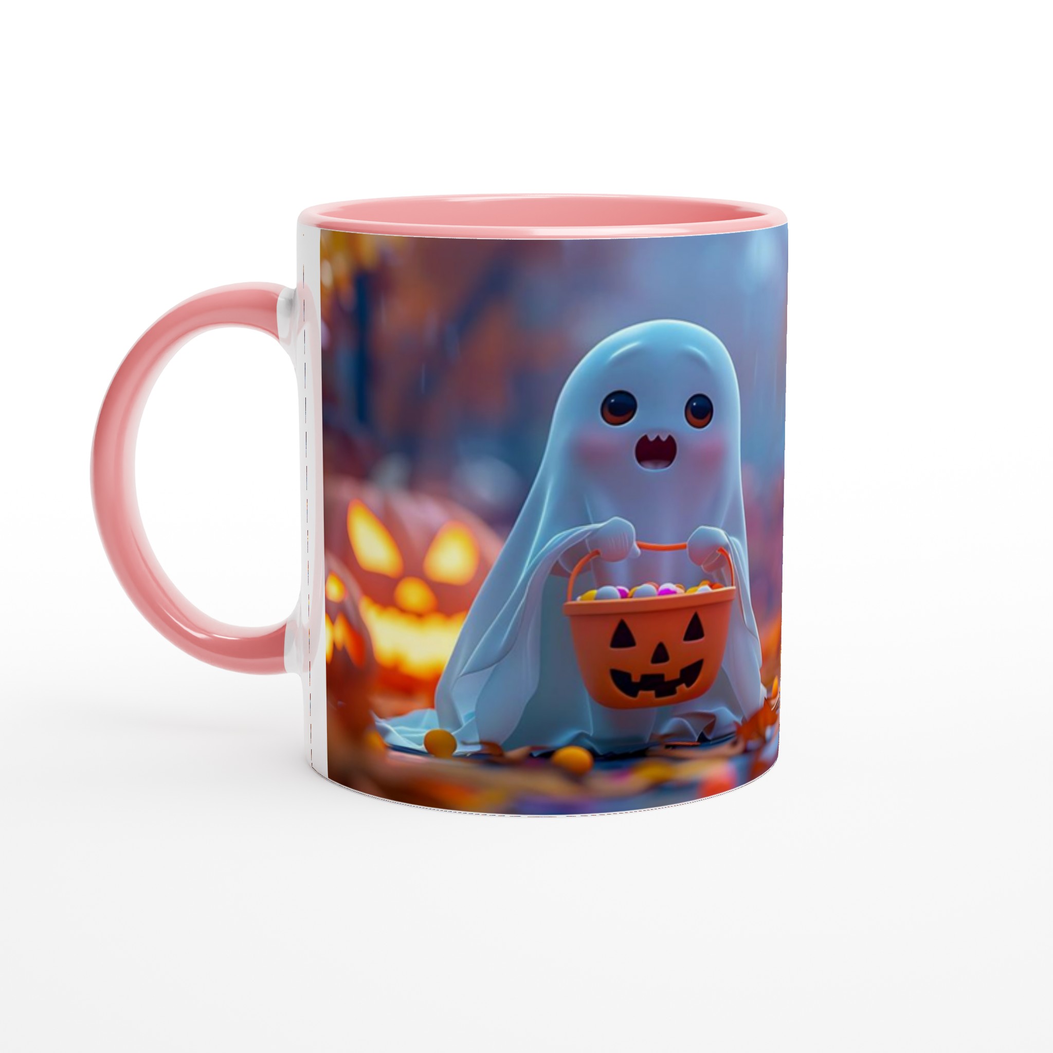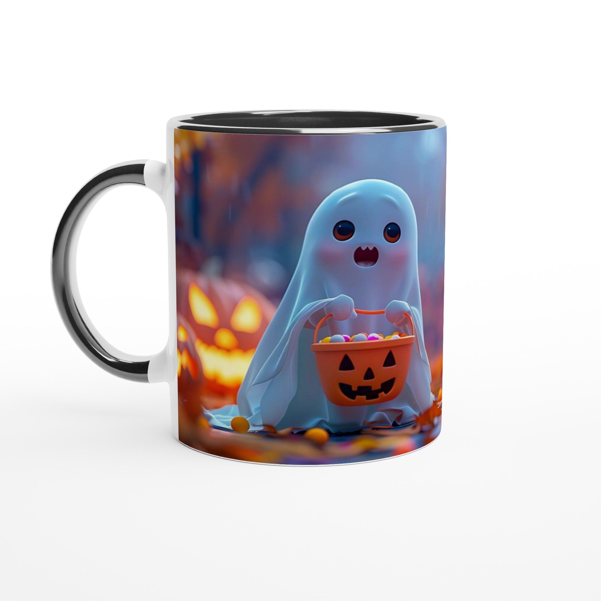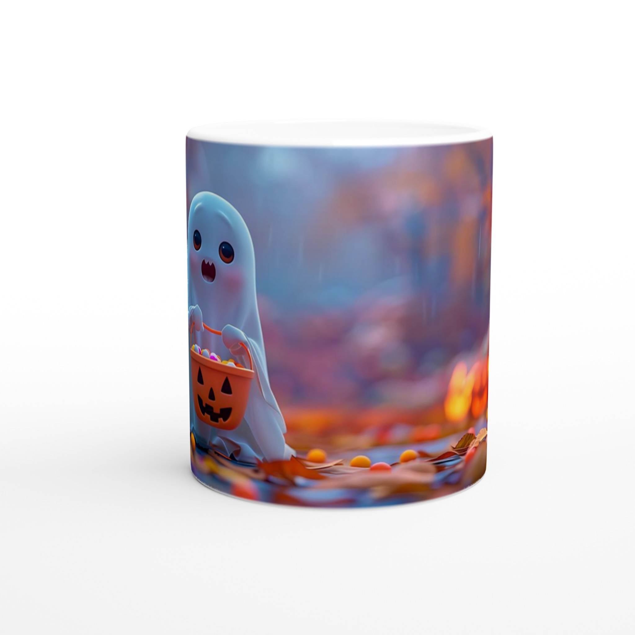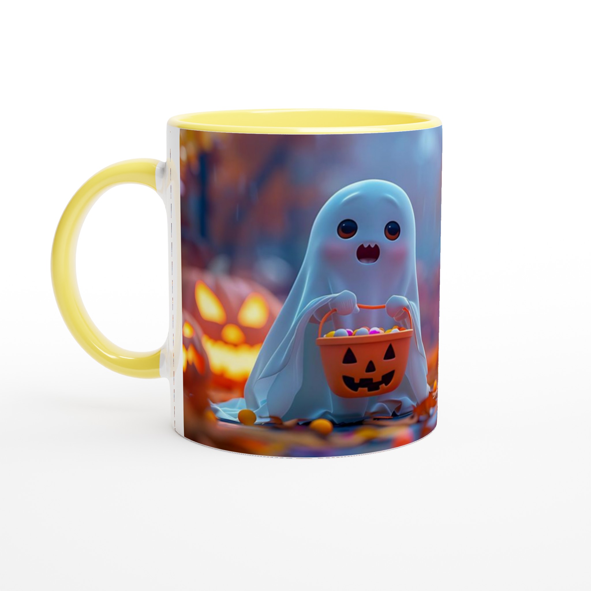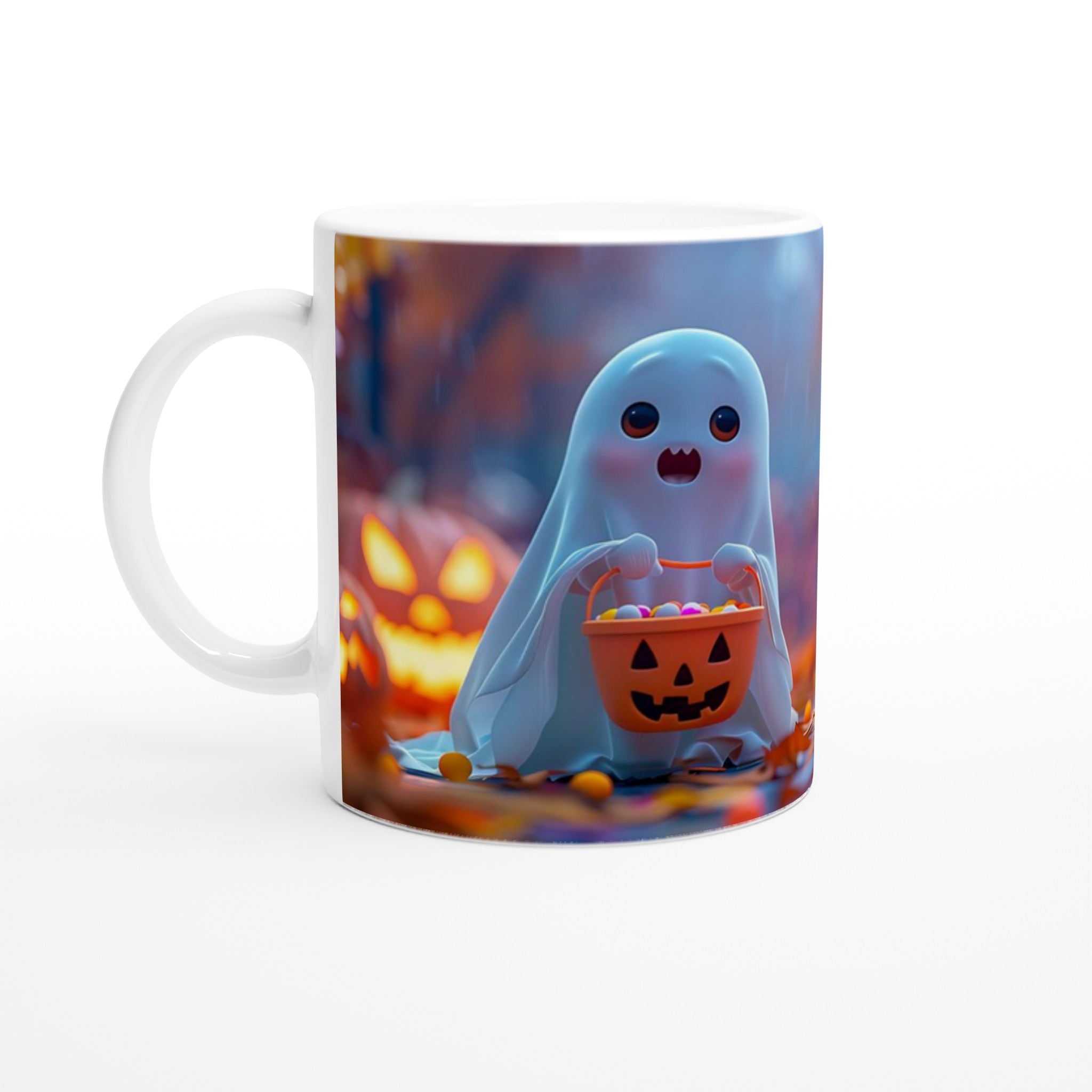 Spooky-Cute Ghost with Candy Bucket 11oz Ceramic Mug – Choose Your Hue!