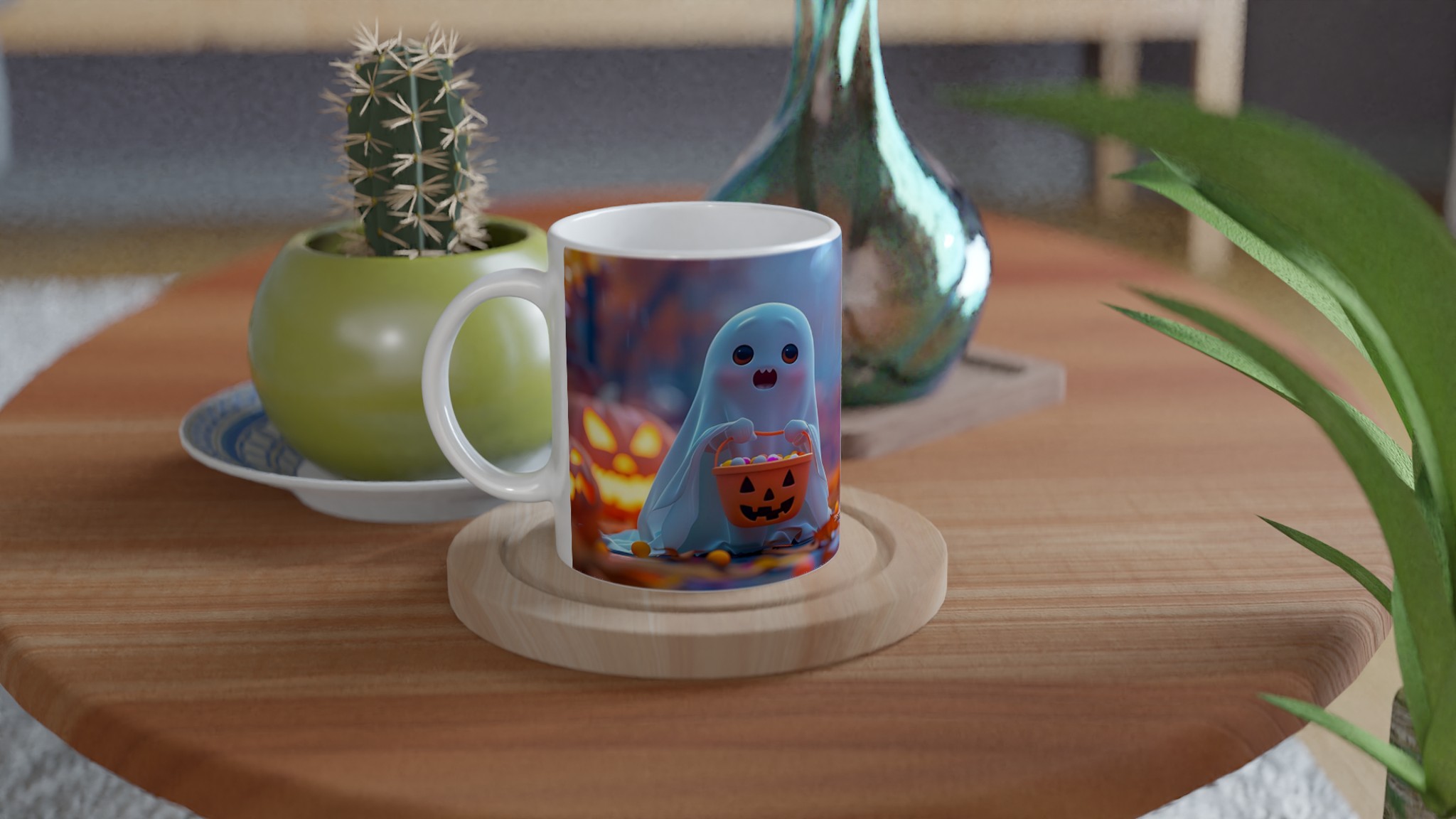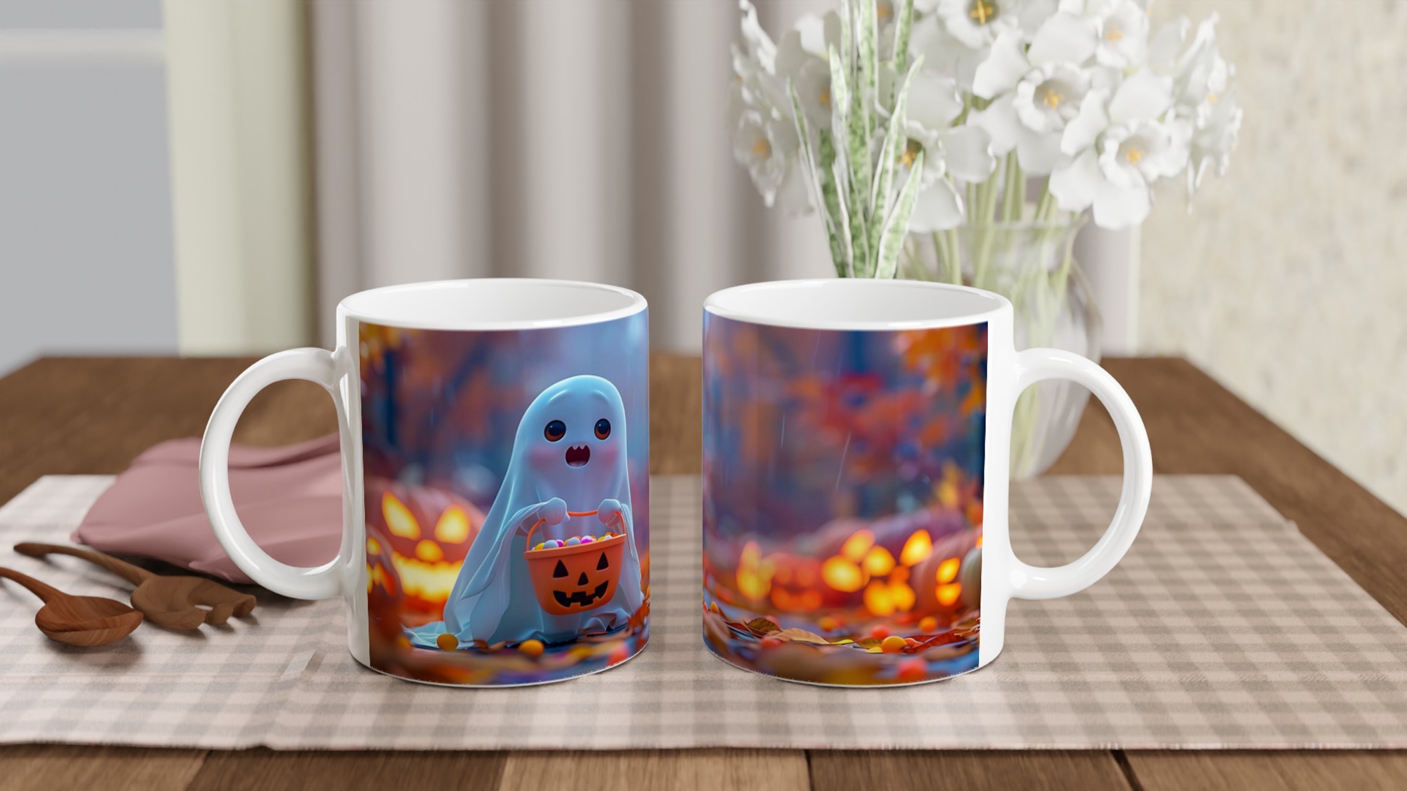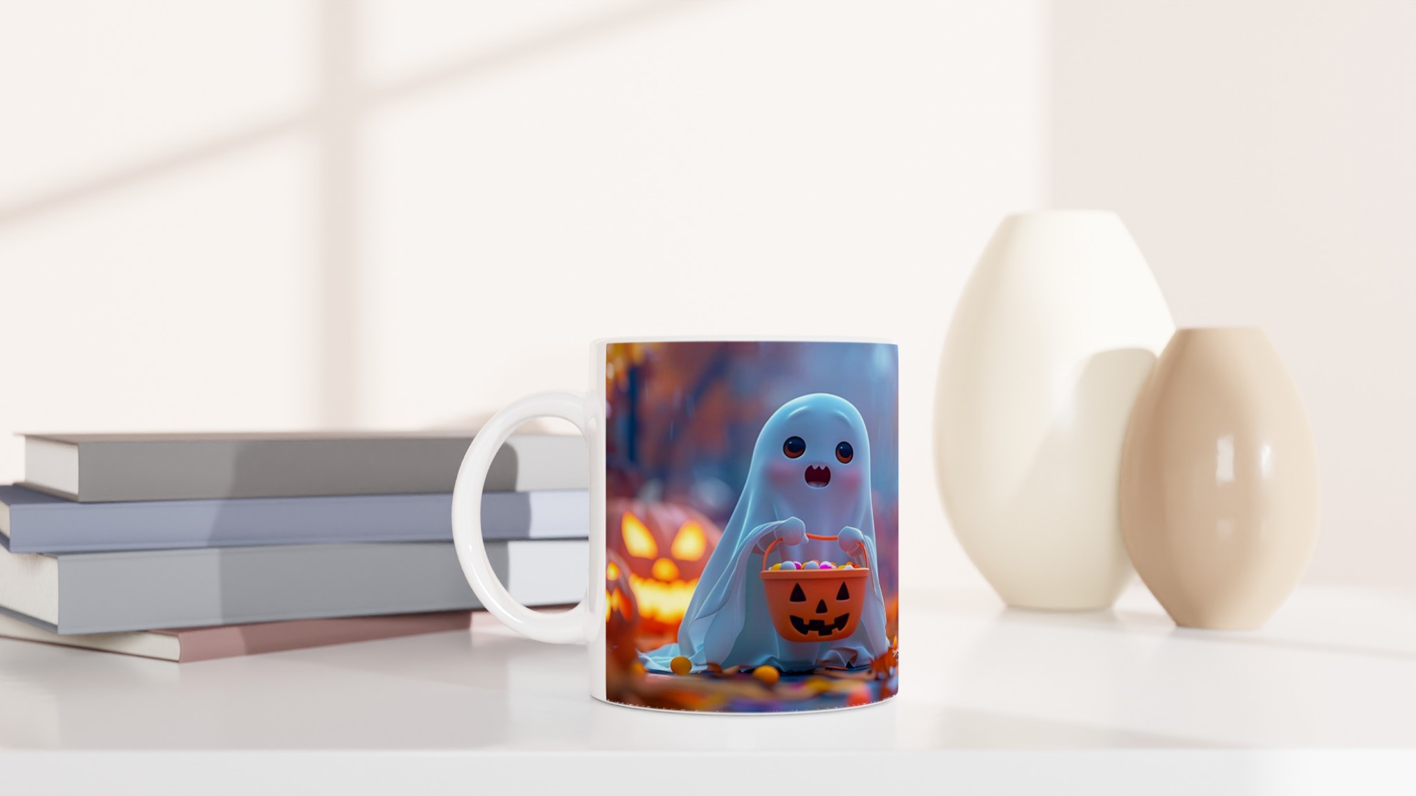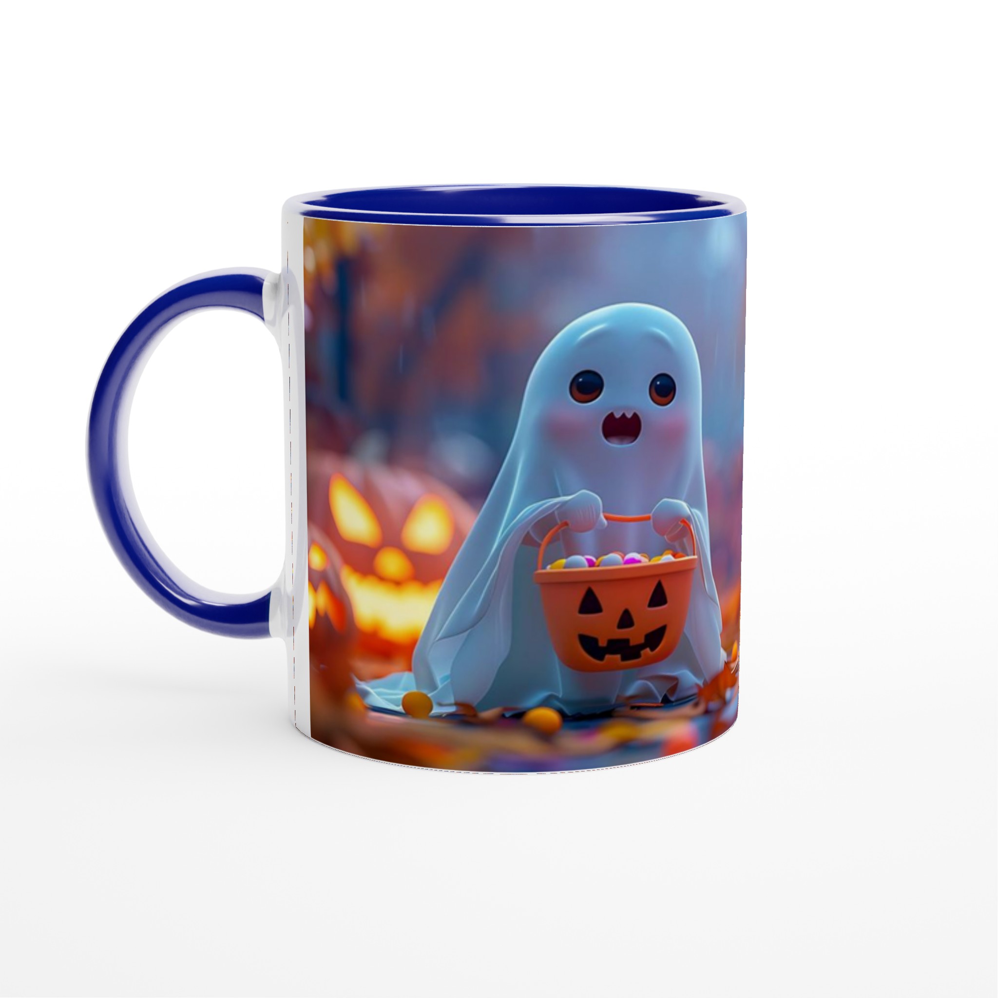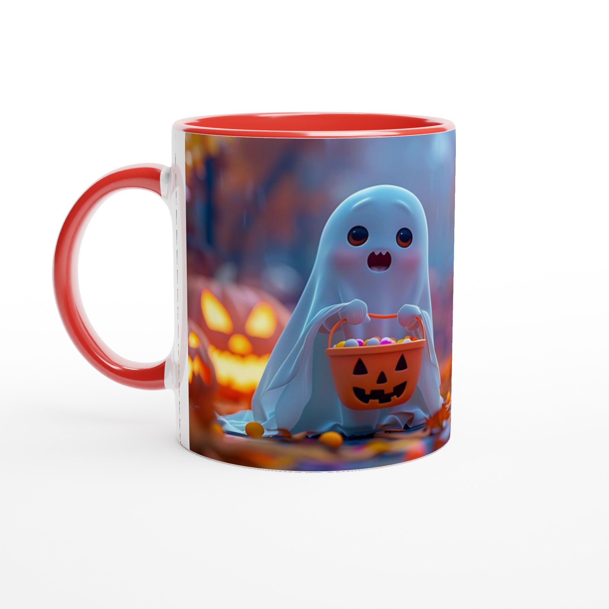 Spooky-Cute Ghost with Candy Bucket 11oz Ceramic Mug – Choose Your Hue!