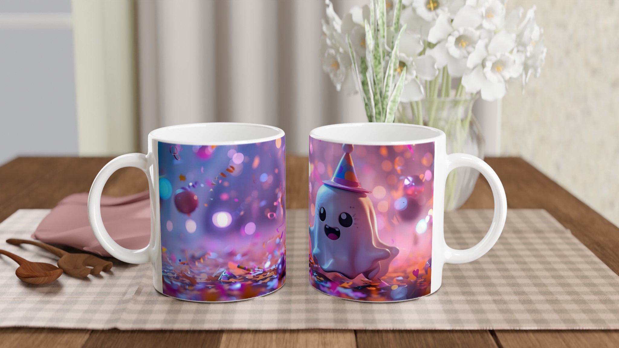 Charming Party Ghost 11oz Ceramic Mug – Celebrate in Your Favorite Hue!