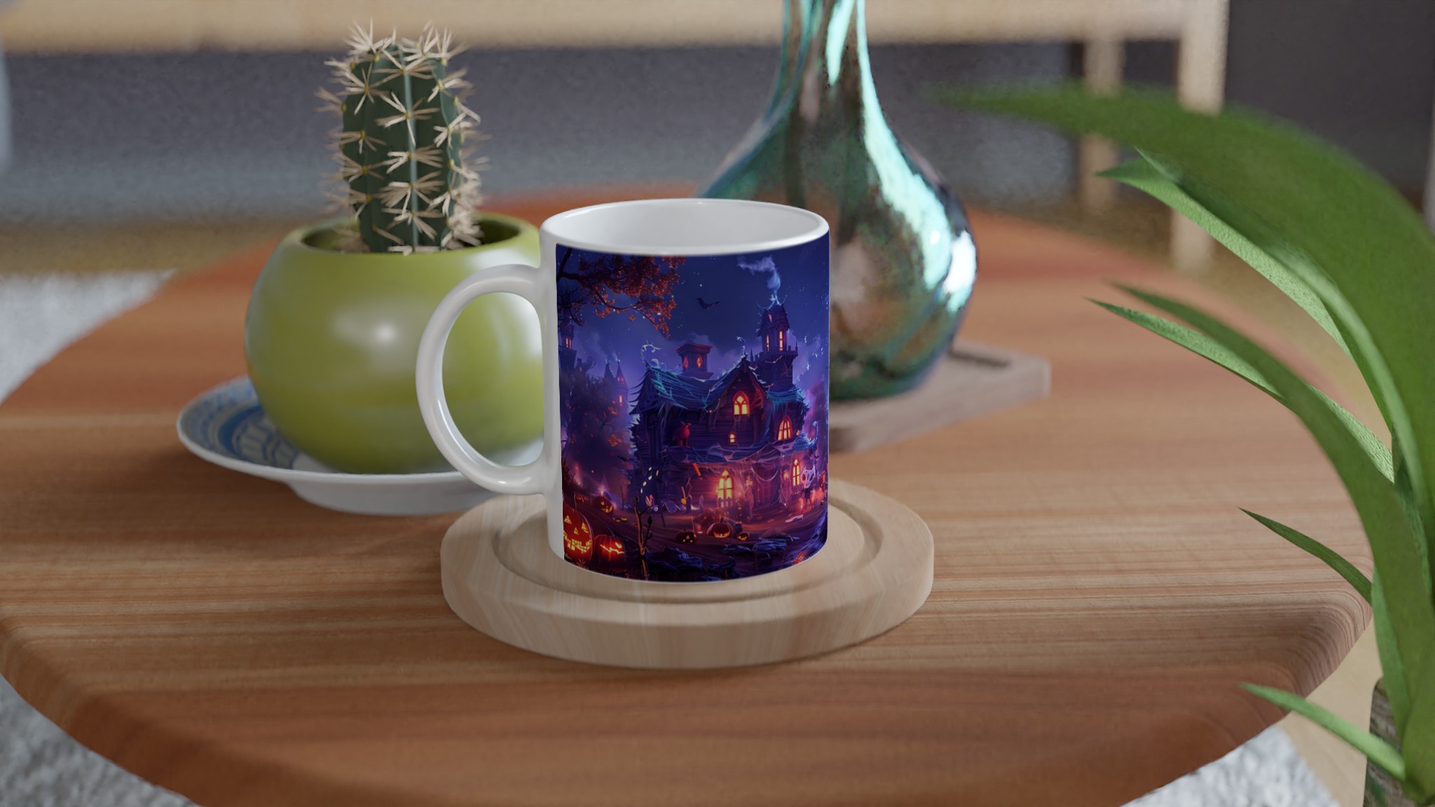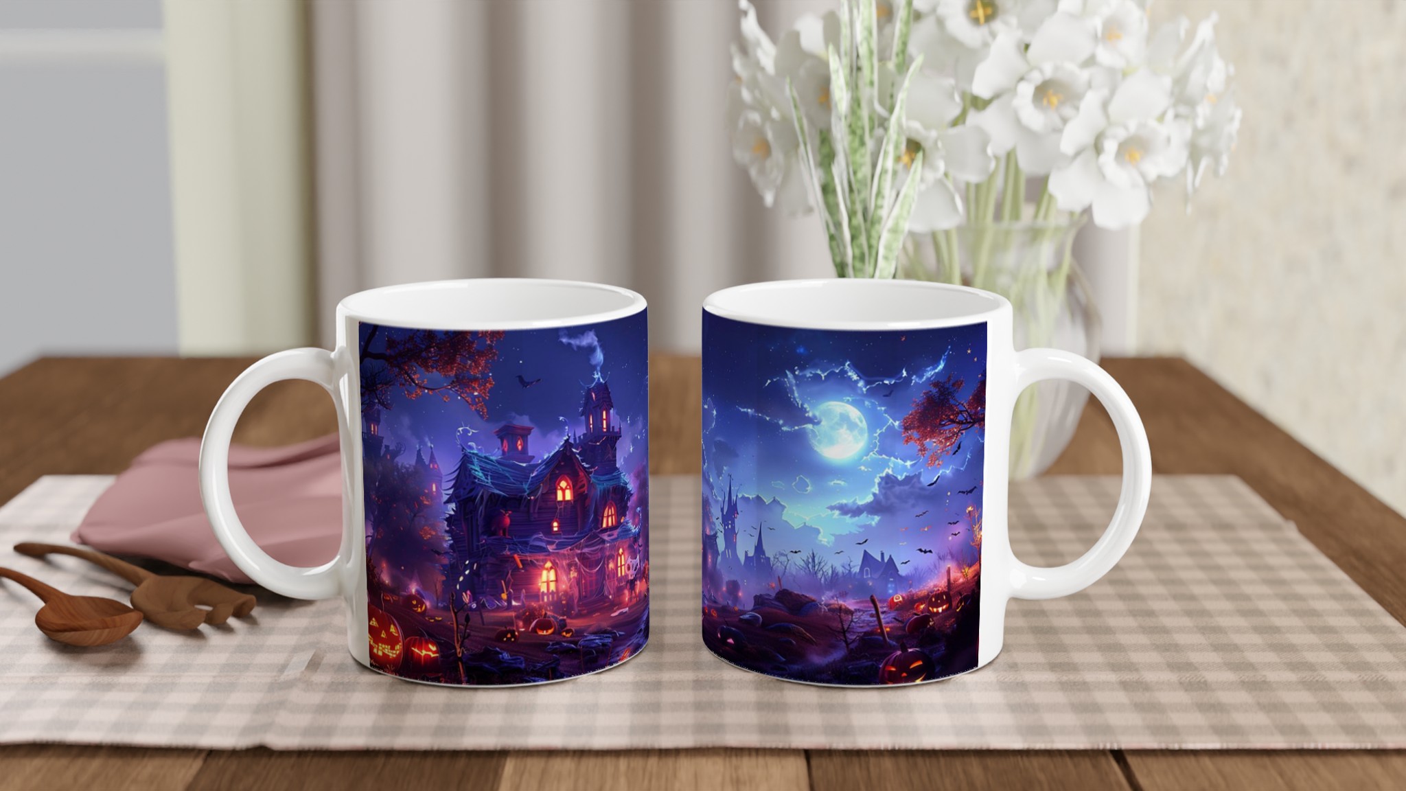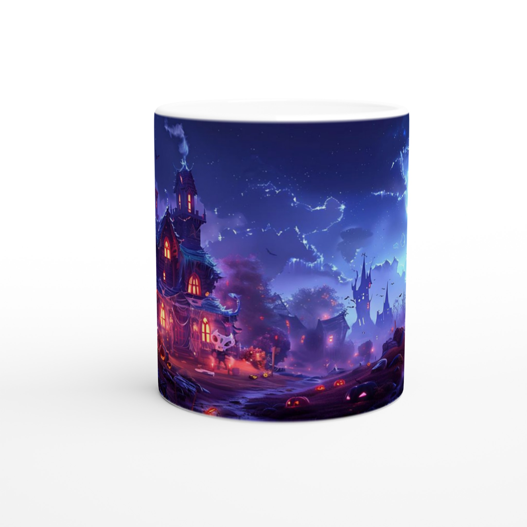 Spooky Night Manor 11oz Ceramic Mug – Hauntingly Vibrant in Your Choice of 7 Colors