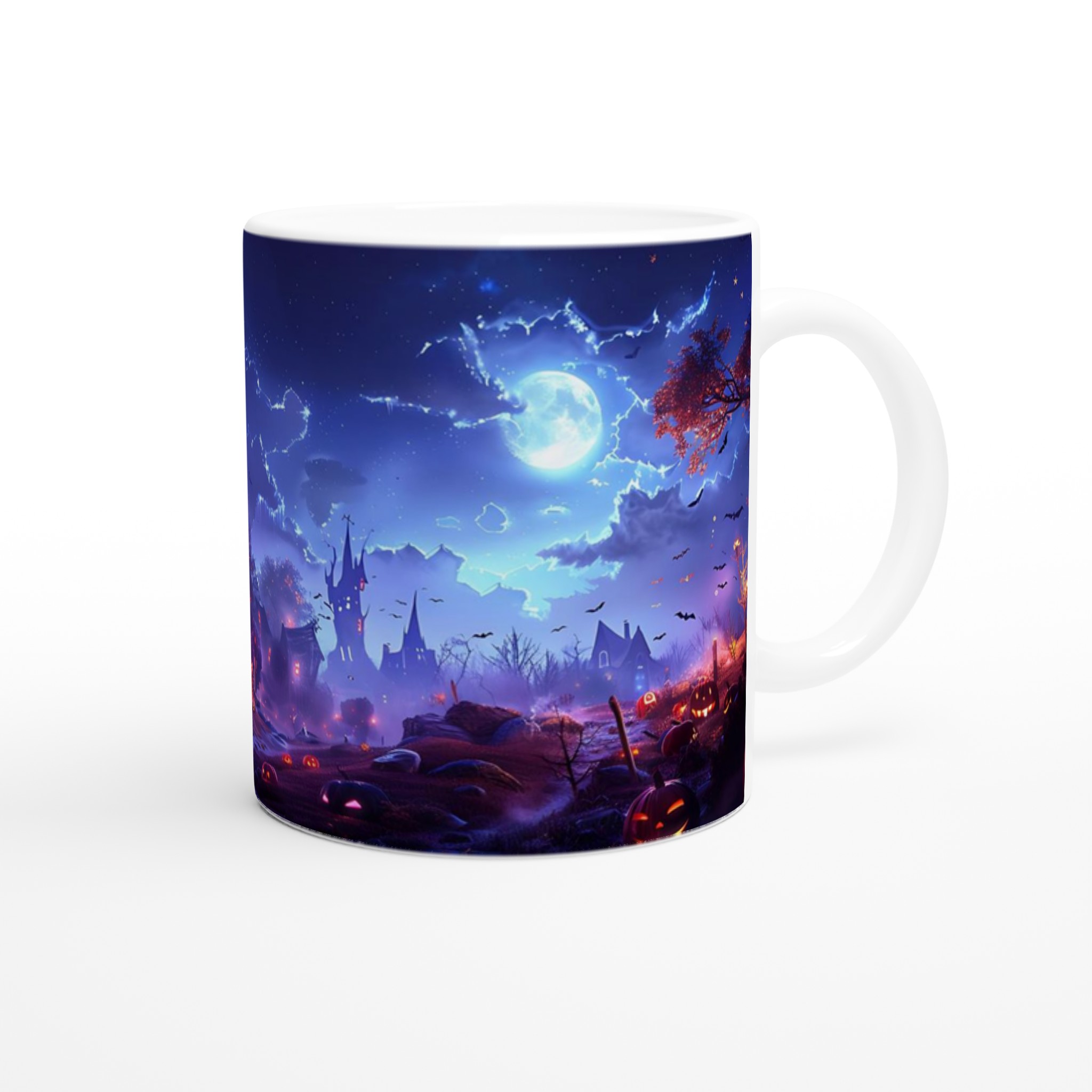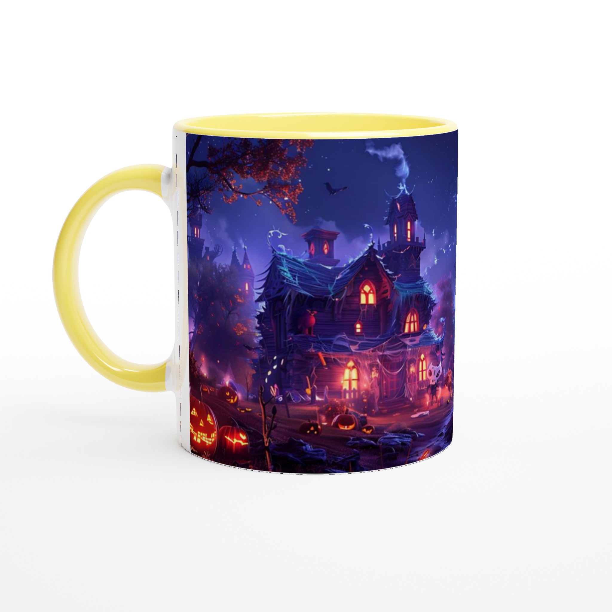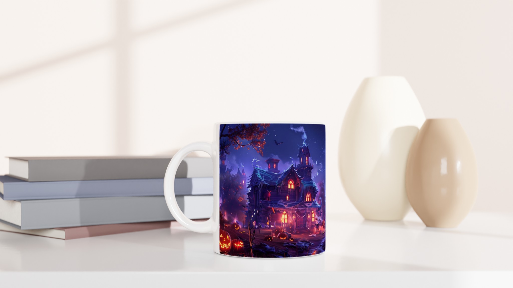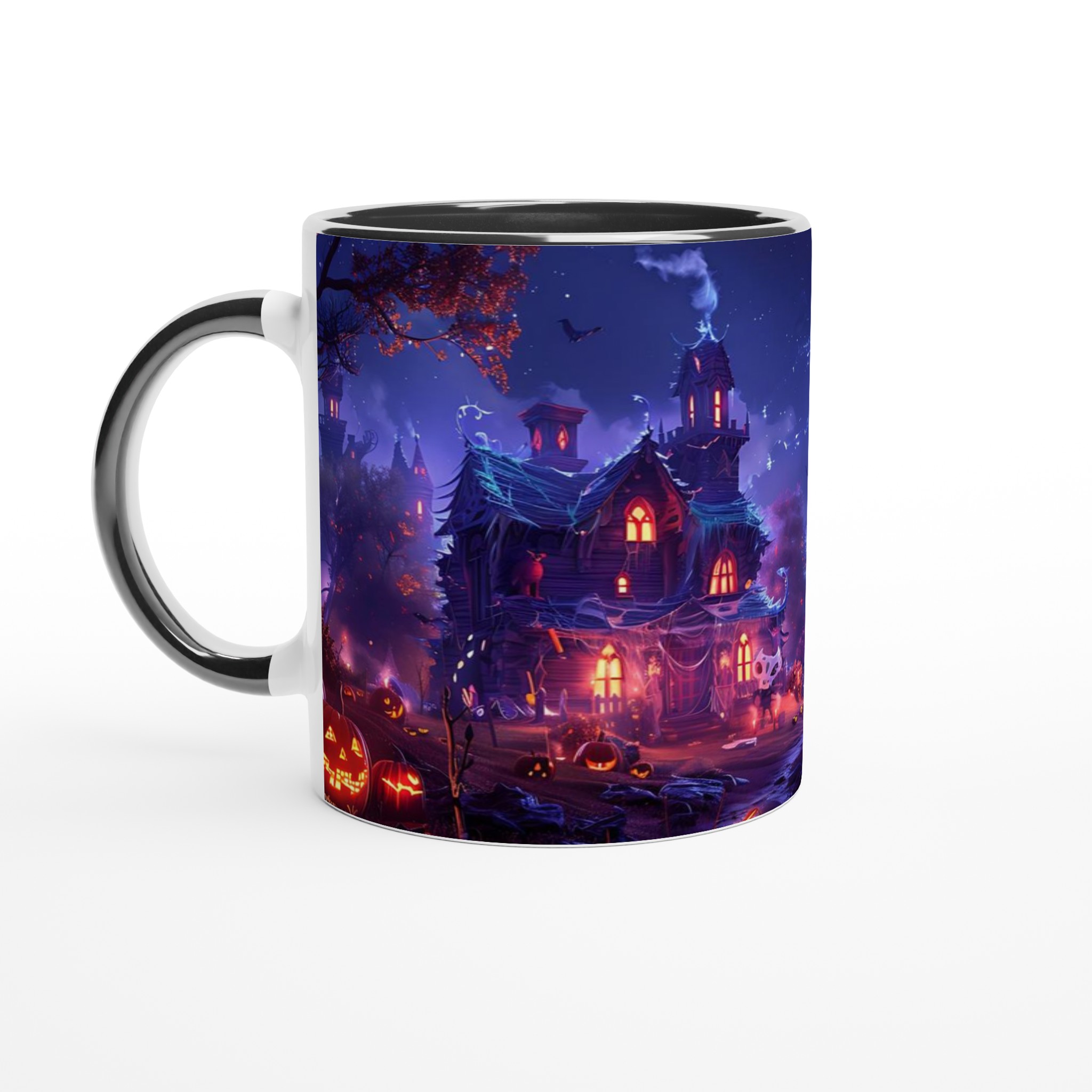 Spooky Night Manor 11oz Ceramic Mug – Hauntingly Vibrant in Your Choice of 7 Colors