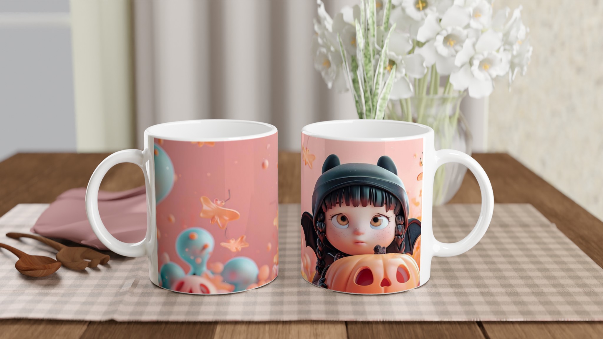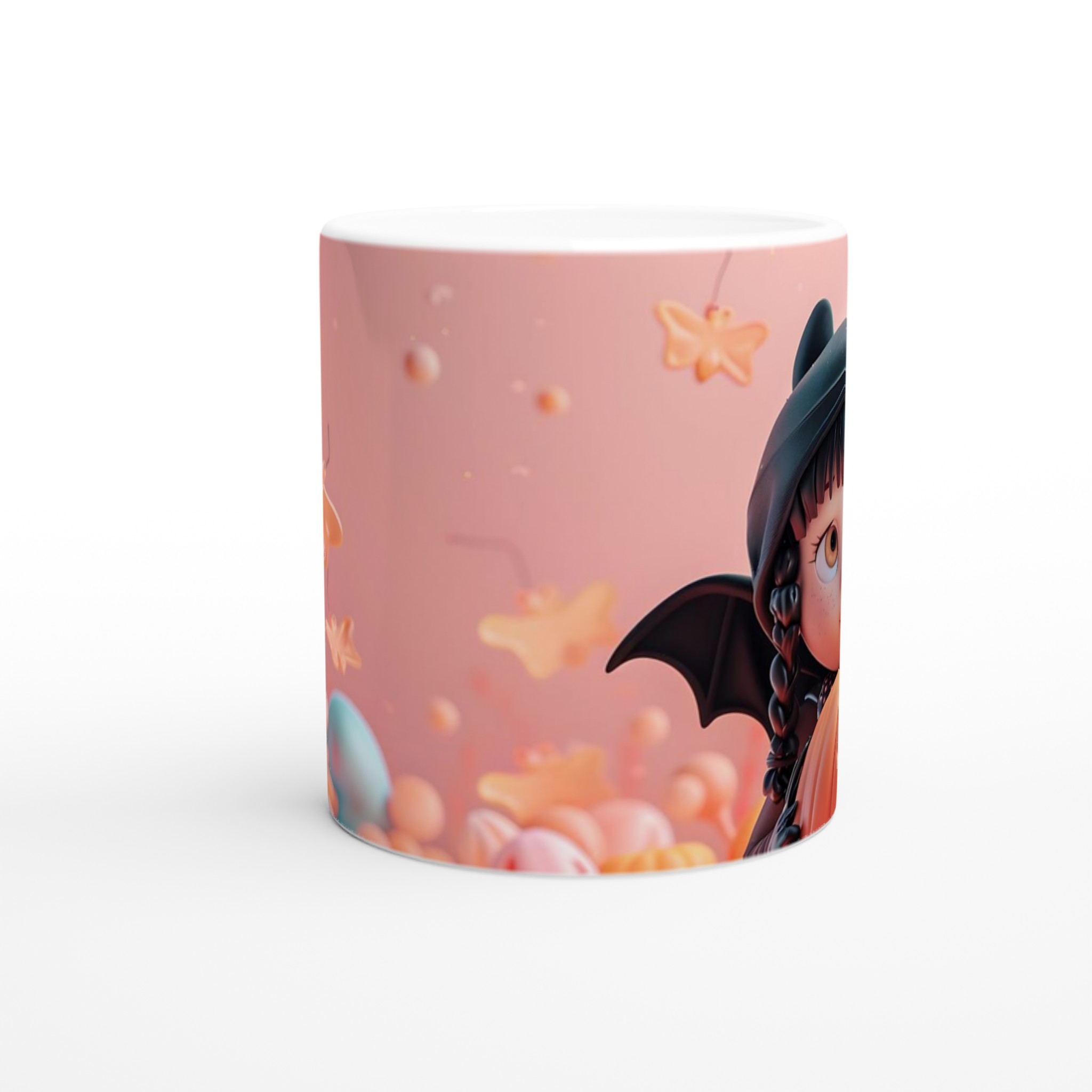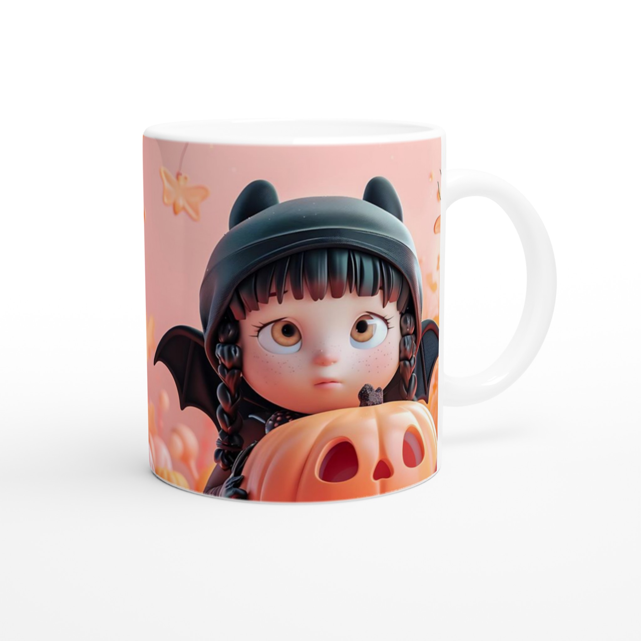 Chibi Bat Girl Spooky Cute 11oz Ceramic Mug in Your Choice of Seven Vibrant Hues