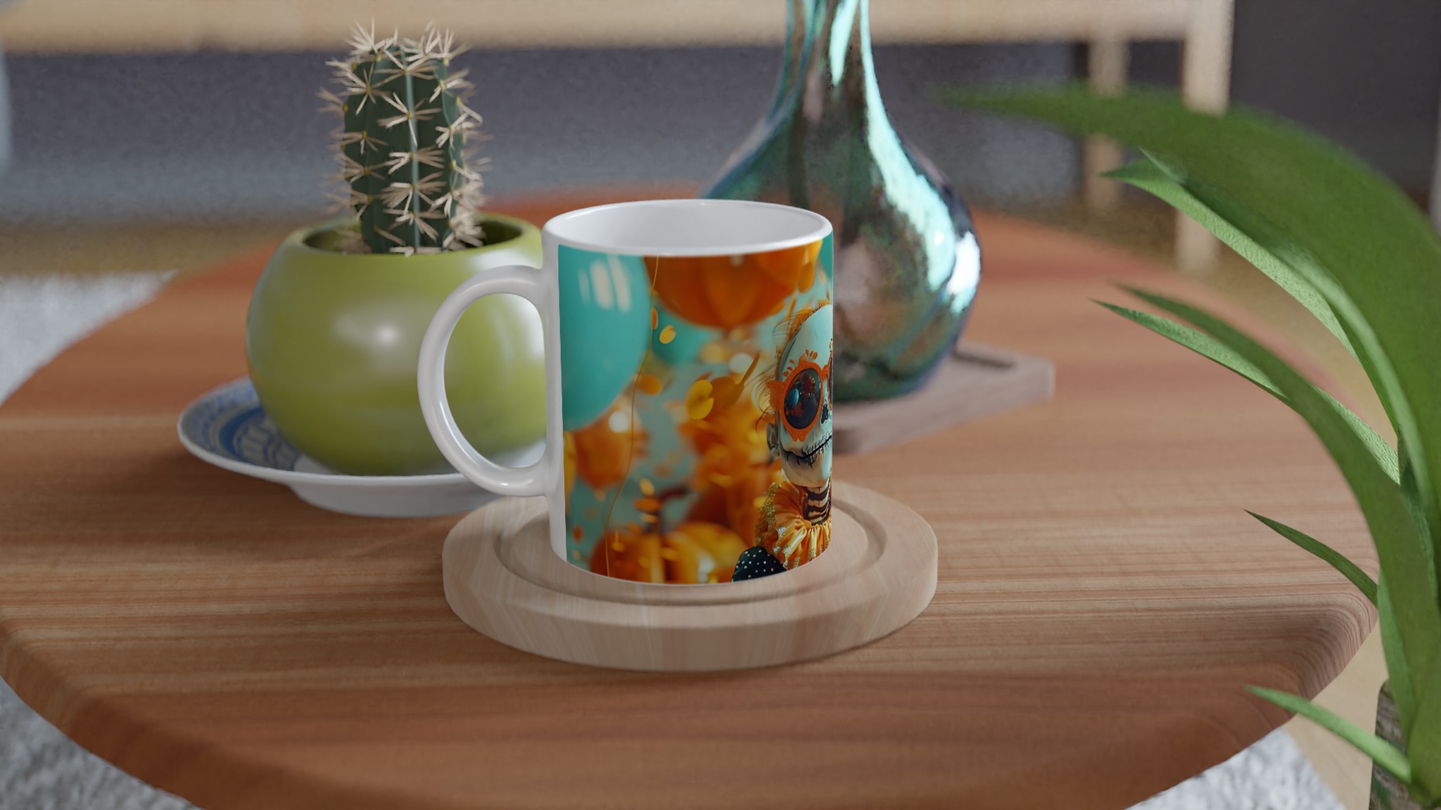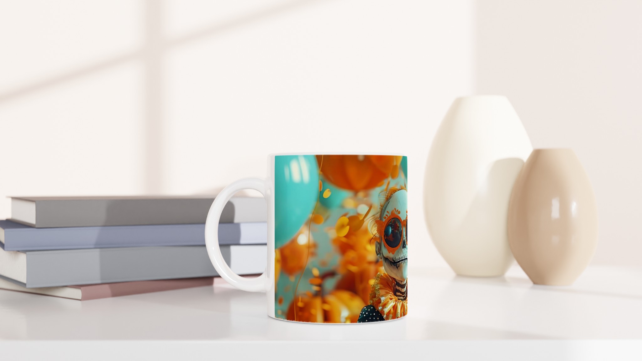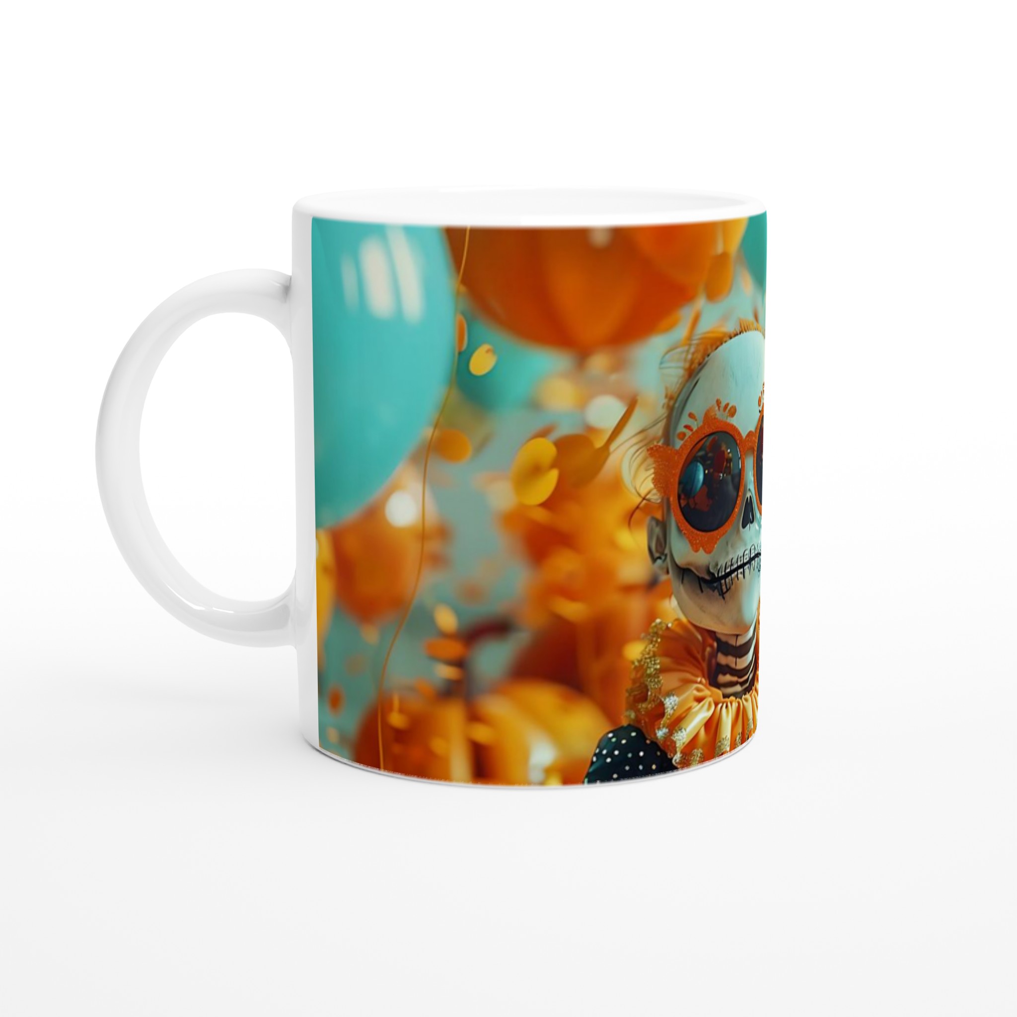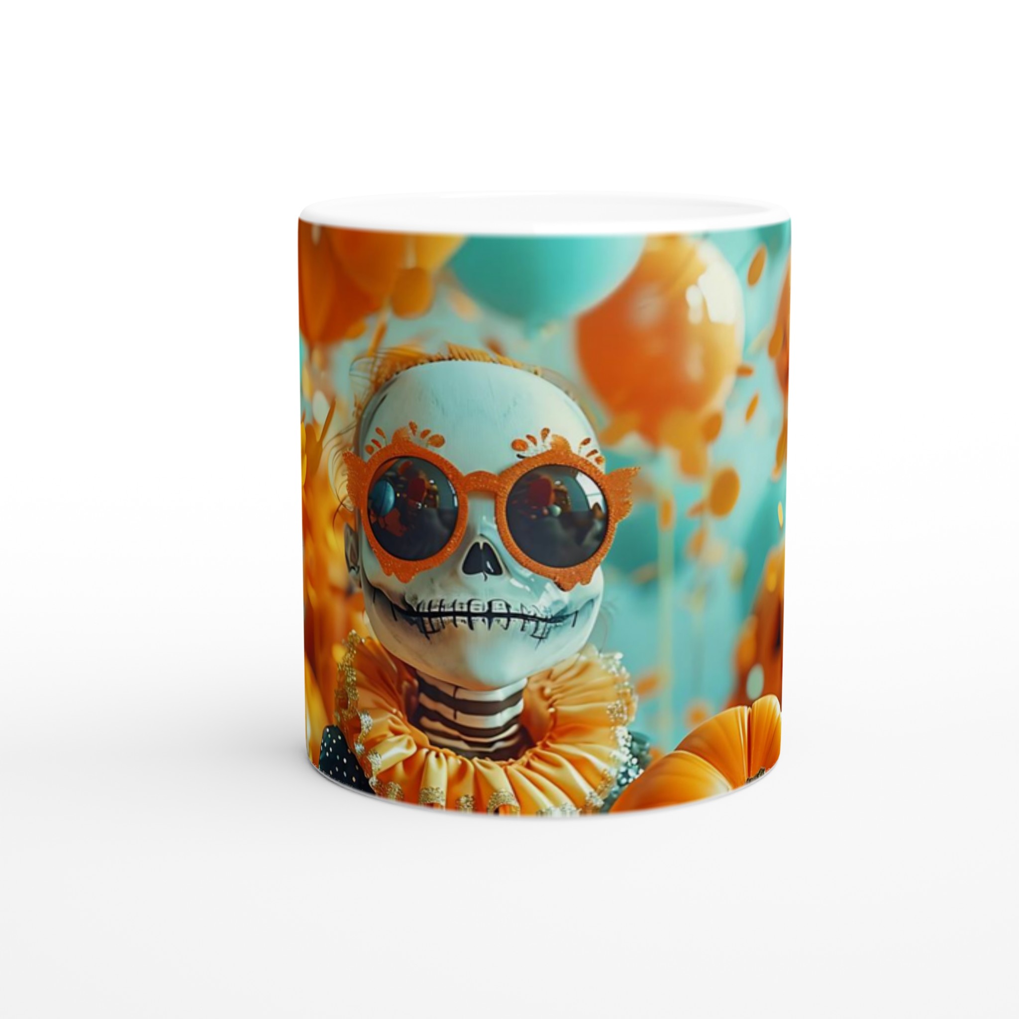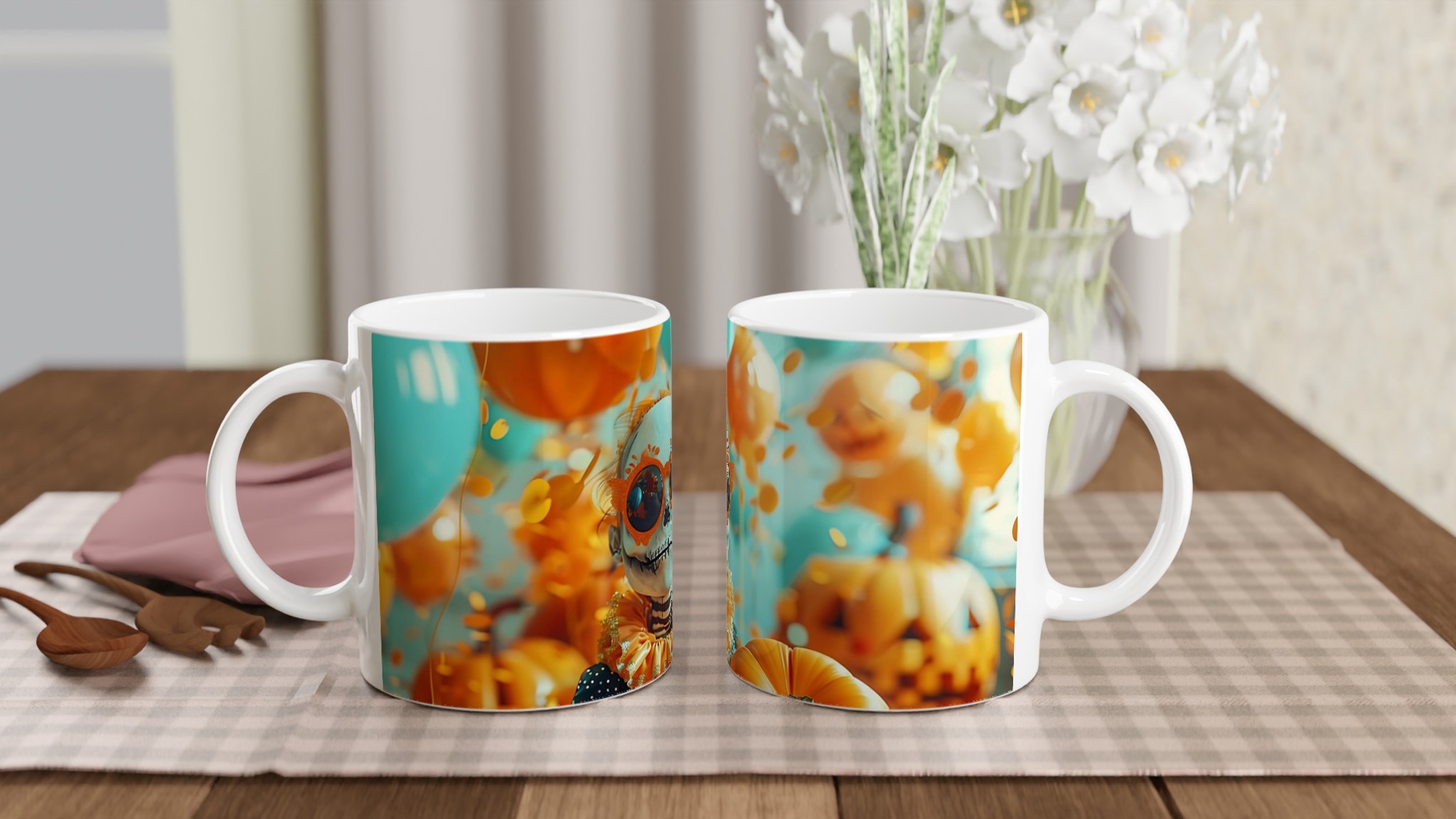 Spooky Chic Skeleton Mug: White 11oz Ceramic Mug with a Playful Halloween Vibe