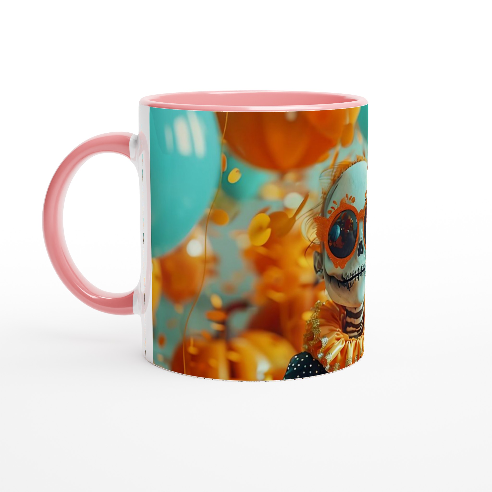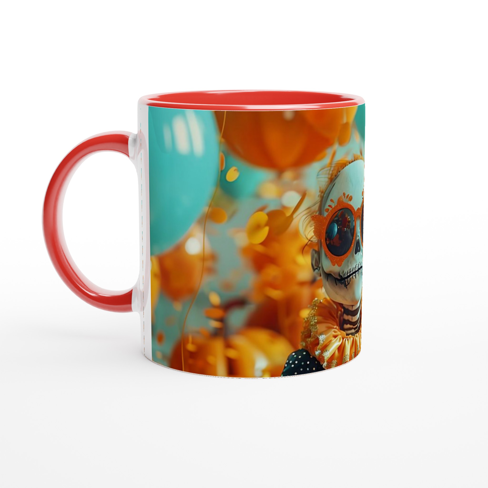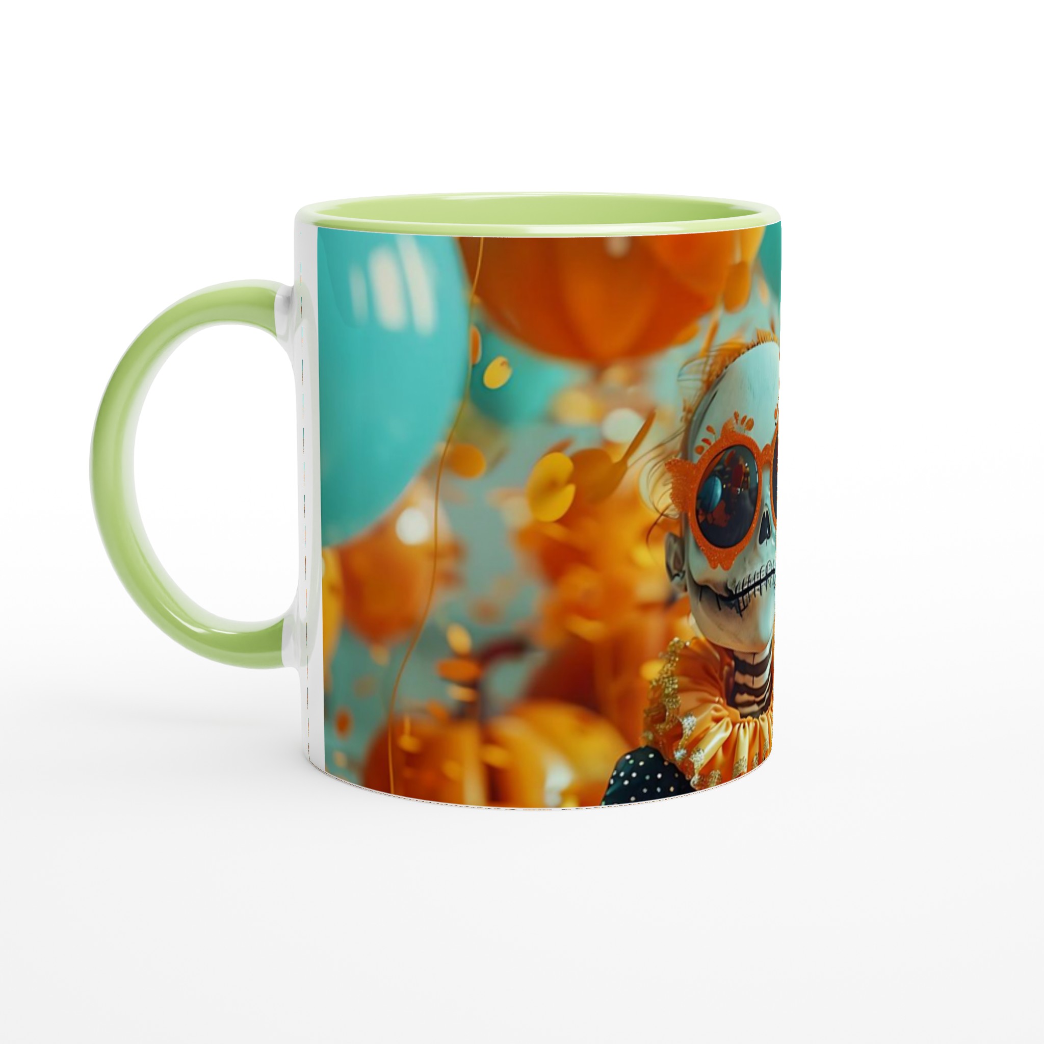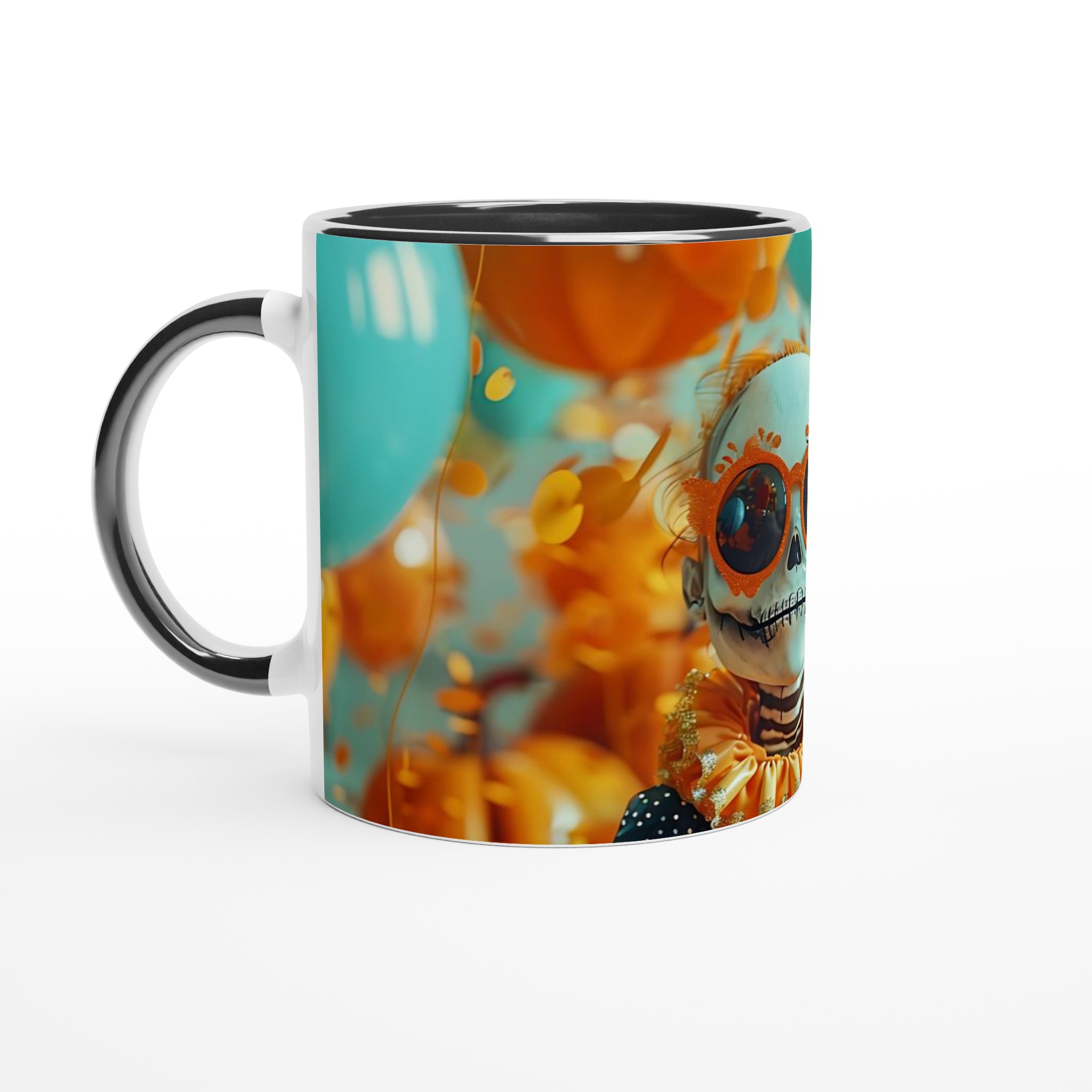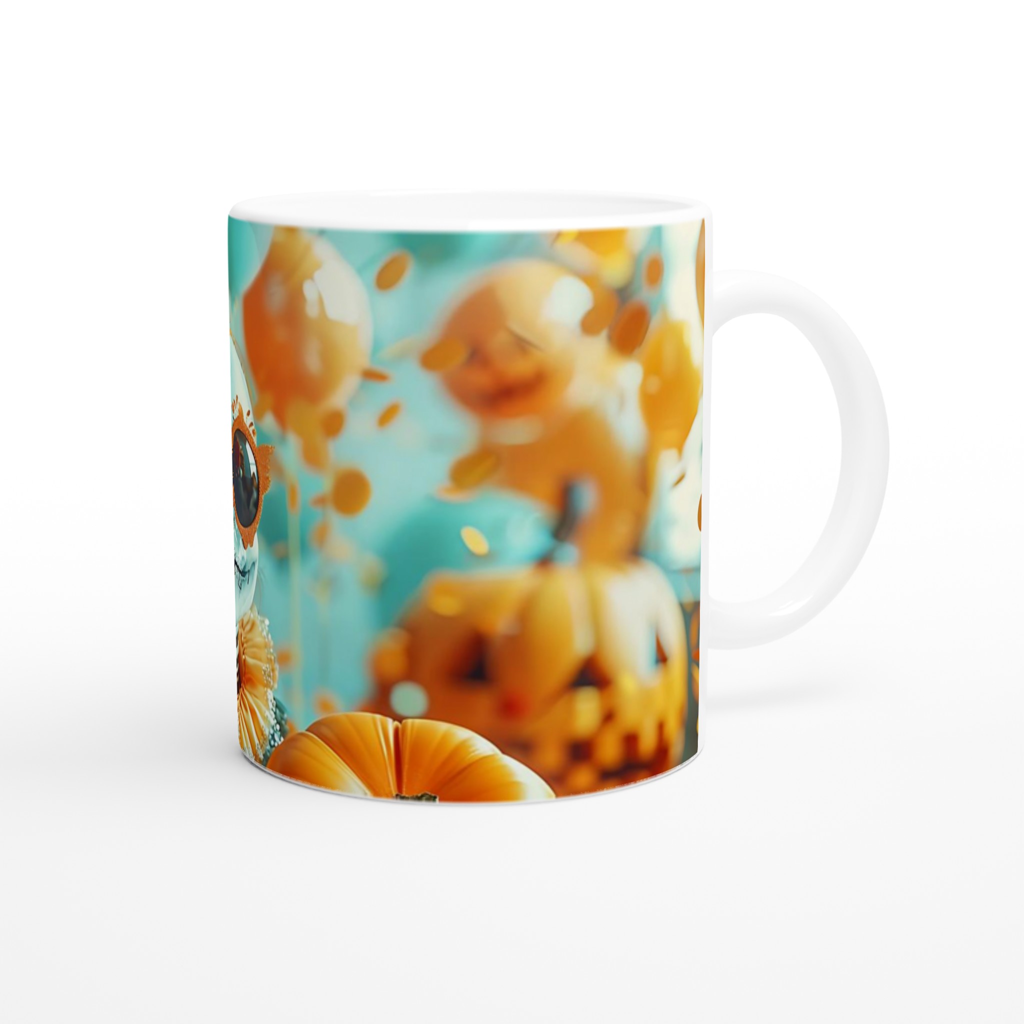 Spooky Chic Skeleton Mug: White 11oz Ceramic Mug with a Playful Halloween Vibe