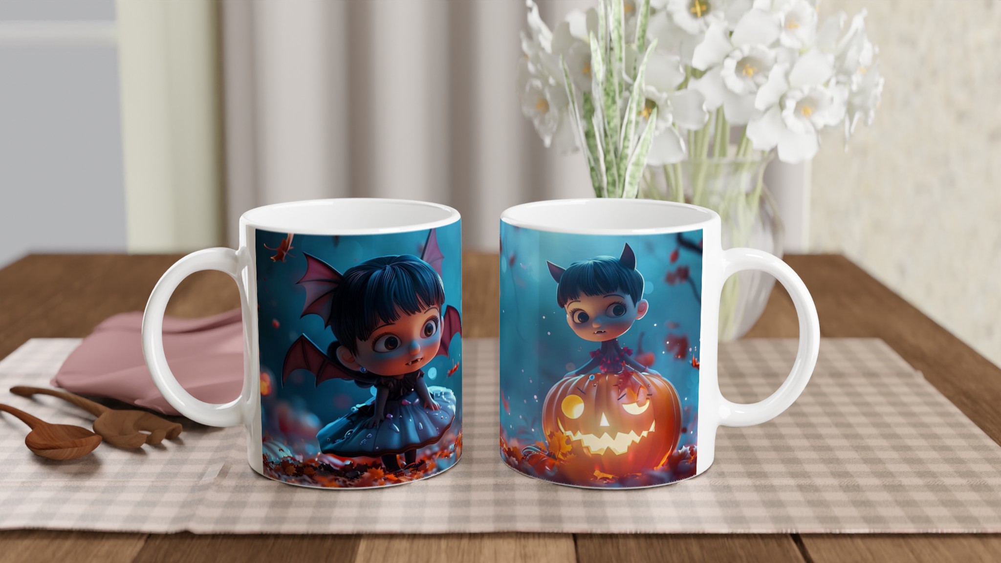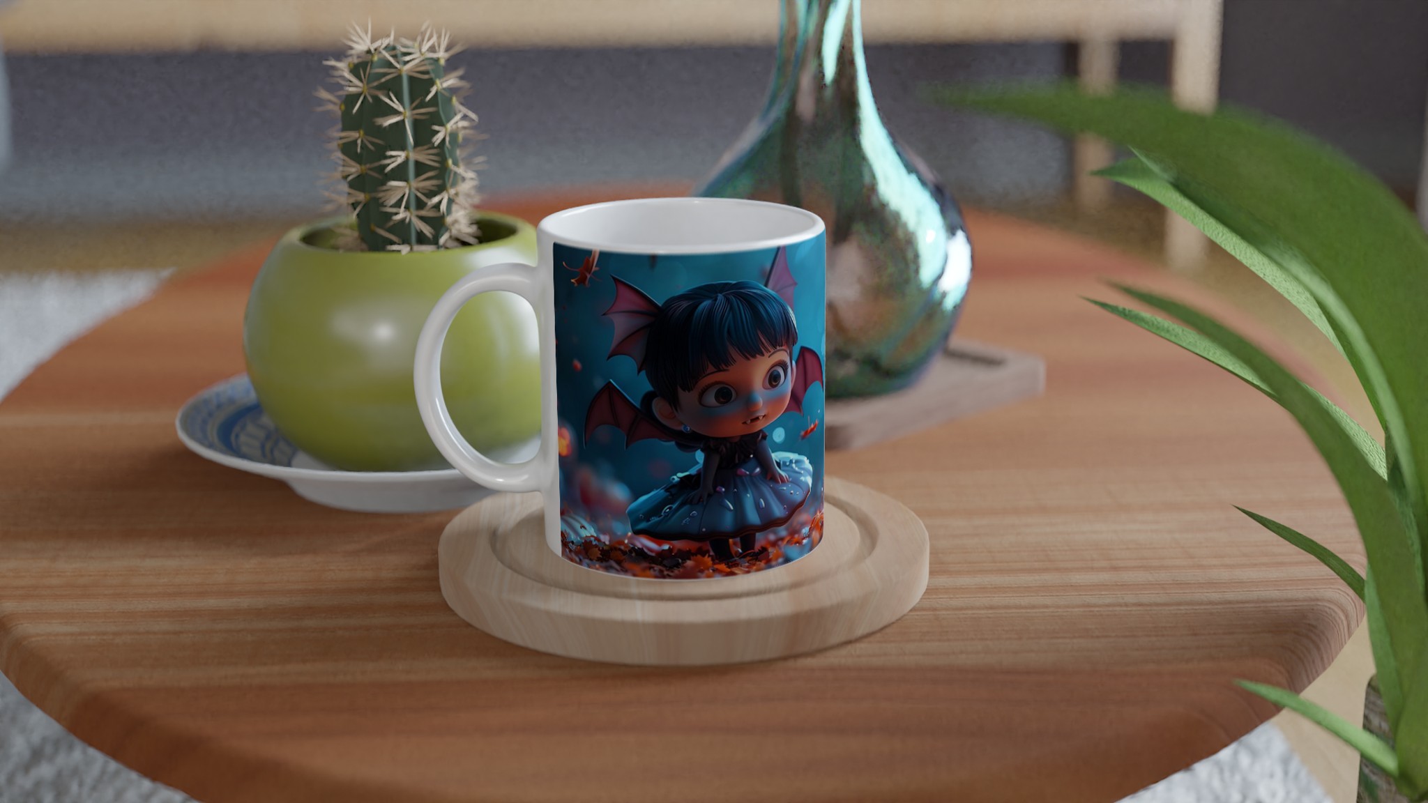 Spooky Cute Goth Chibi Mug – Charming Halloween & Fall Inspired Ceramic 11oz Mug in Your Choice of 7 Colors