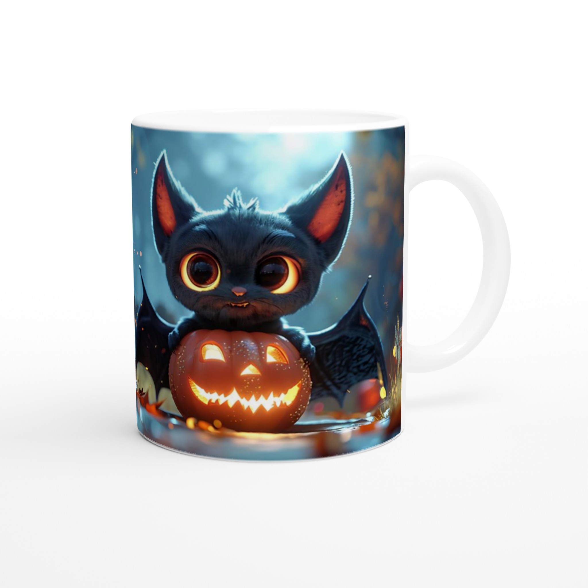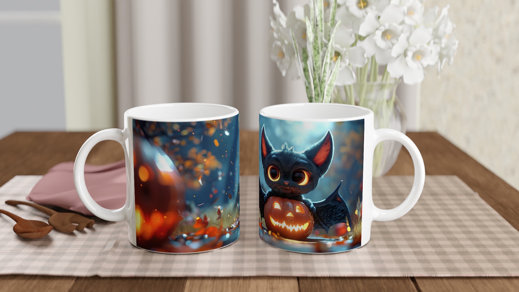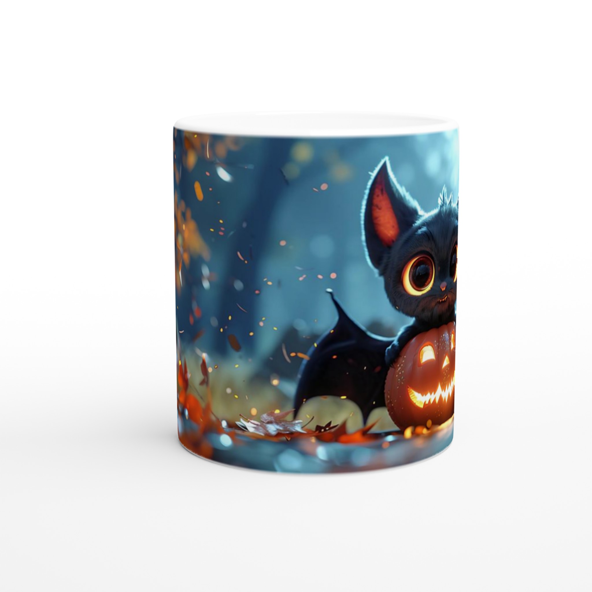 Spooky-Cute Bat & Pumpkin 11oz Ceramic Mug – Perfect for Halloween & Cozy Autumn Vibes