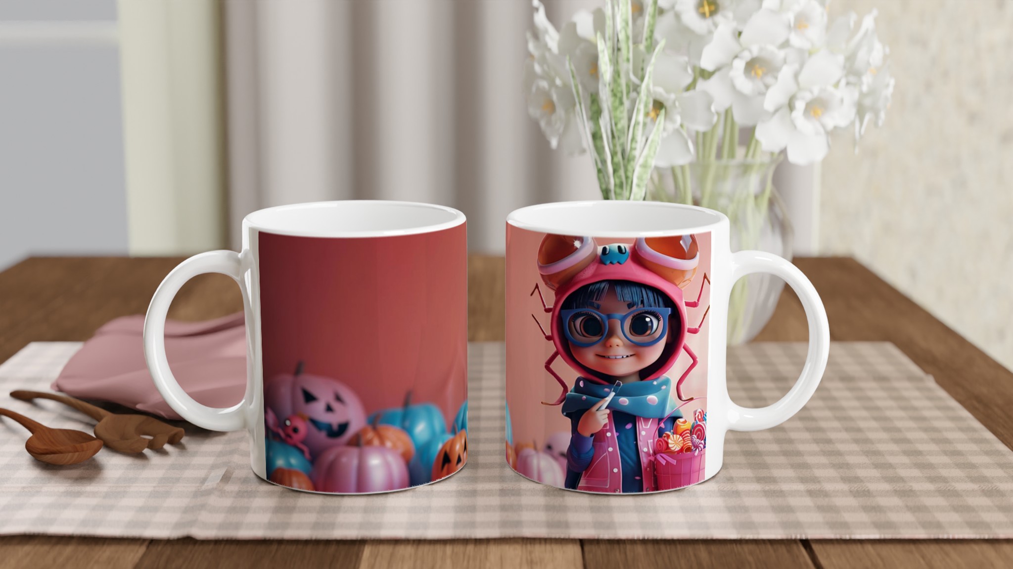 Charming Cartoon Halloween Mug – Whimsical & Colorful 11oz Ceramic Mug in Your Choice of Seven Hues