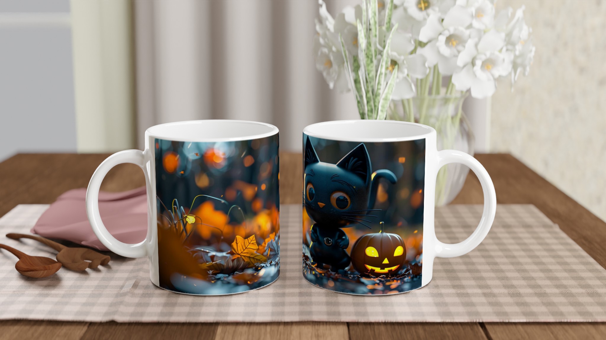 Spooky Cute Black Cat & Jack-o’-Lantern 11oz Ceramic Mug – Perfect for Halloween Fun!