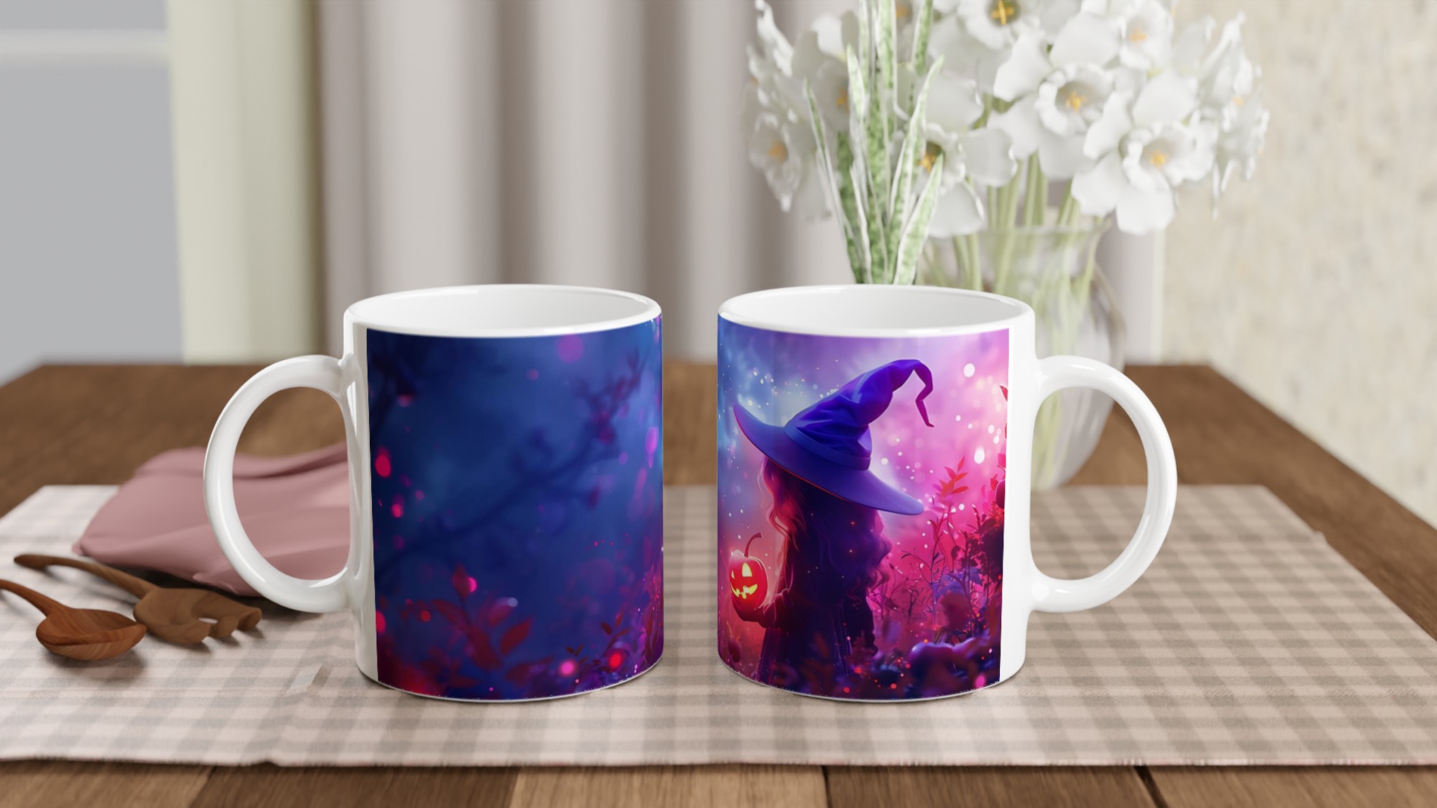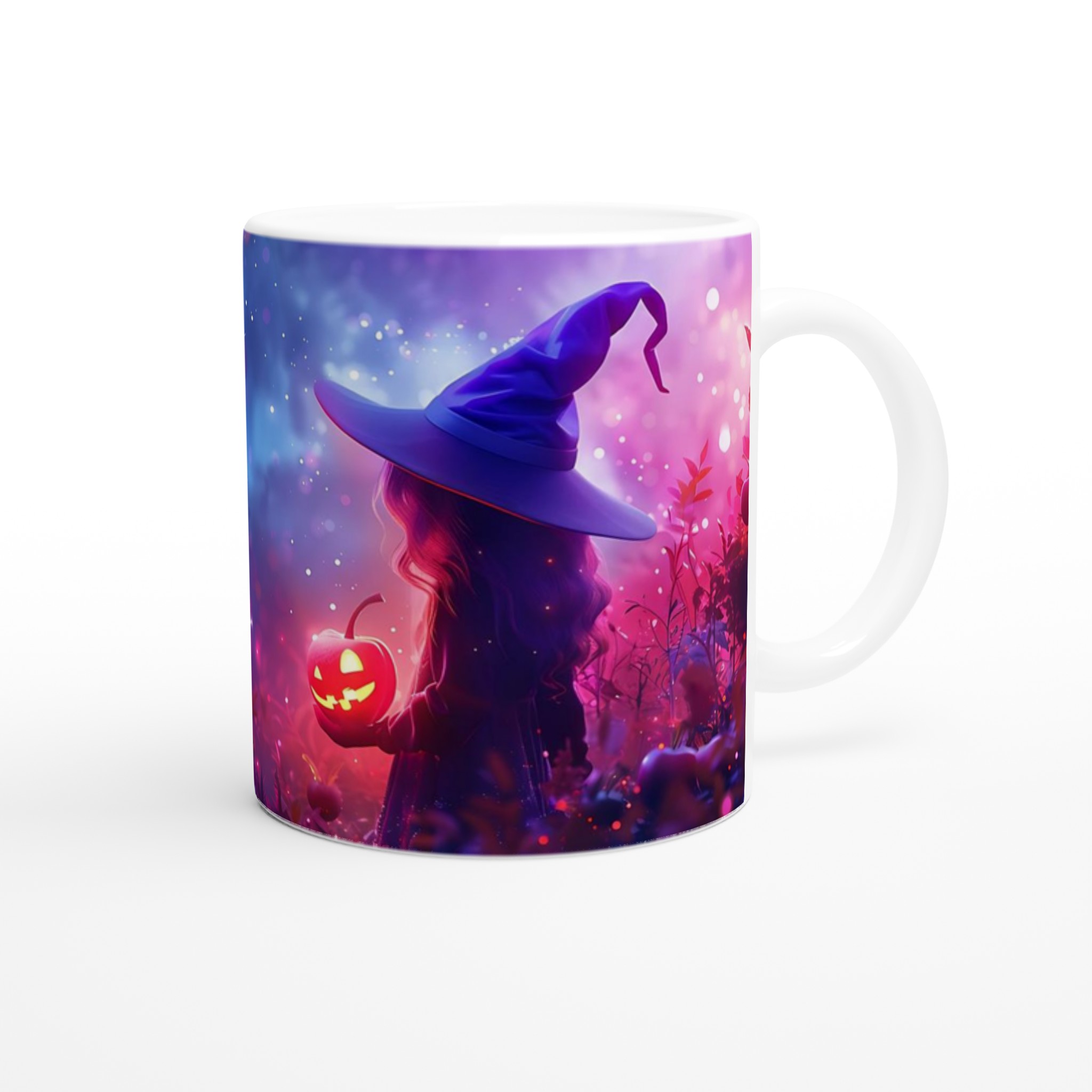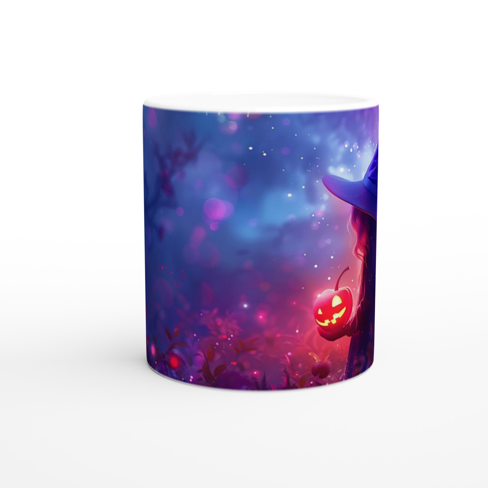 Enchanted Halloween Witch with Glowing Pumpkin Ceramic Mug in Your Choice of Seven Magical Colors