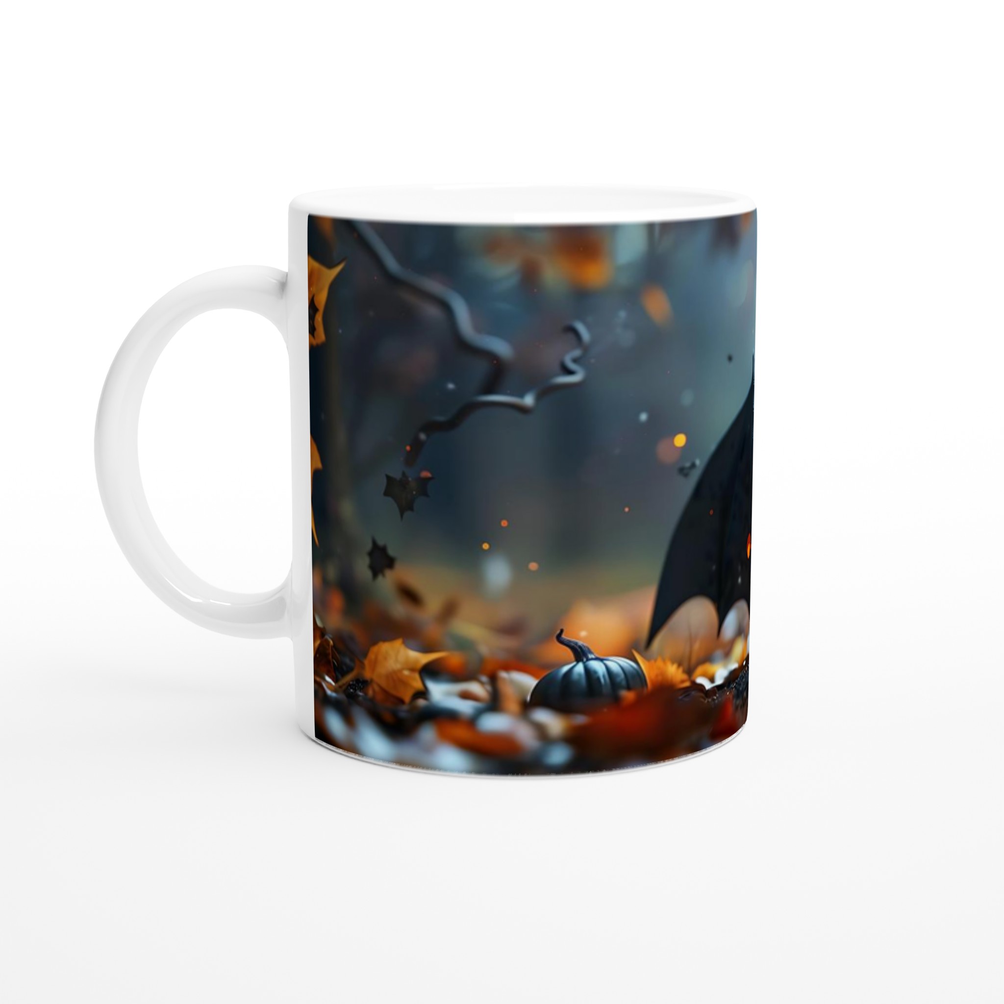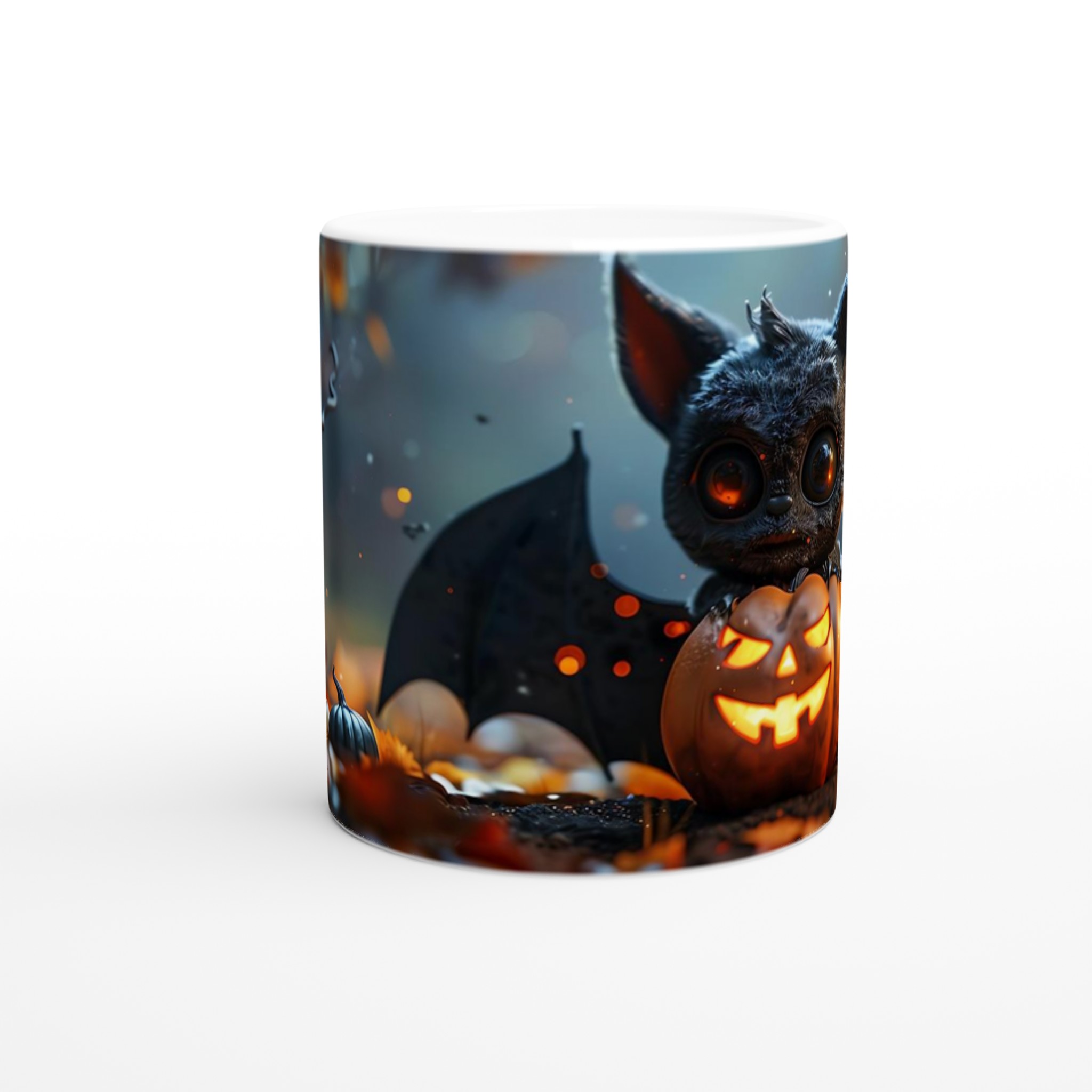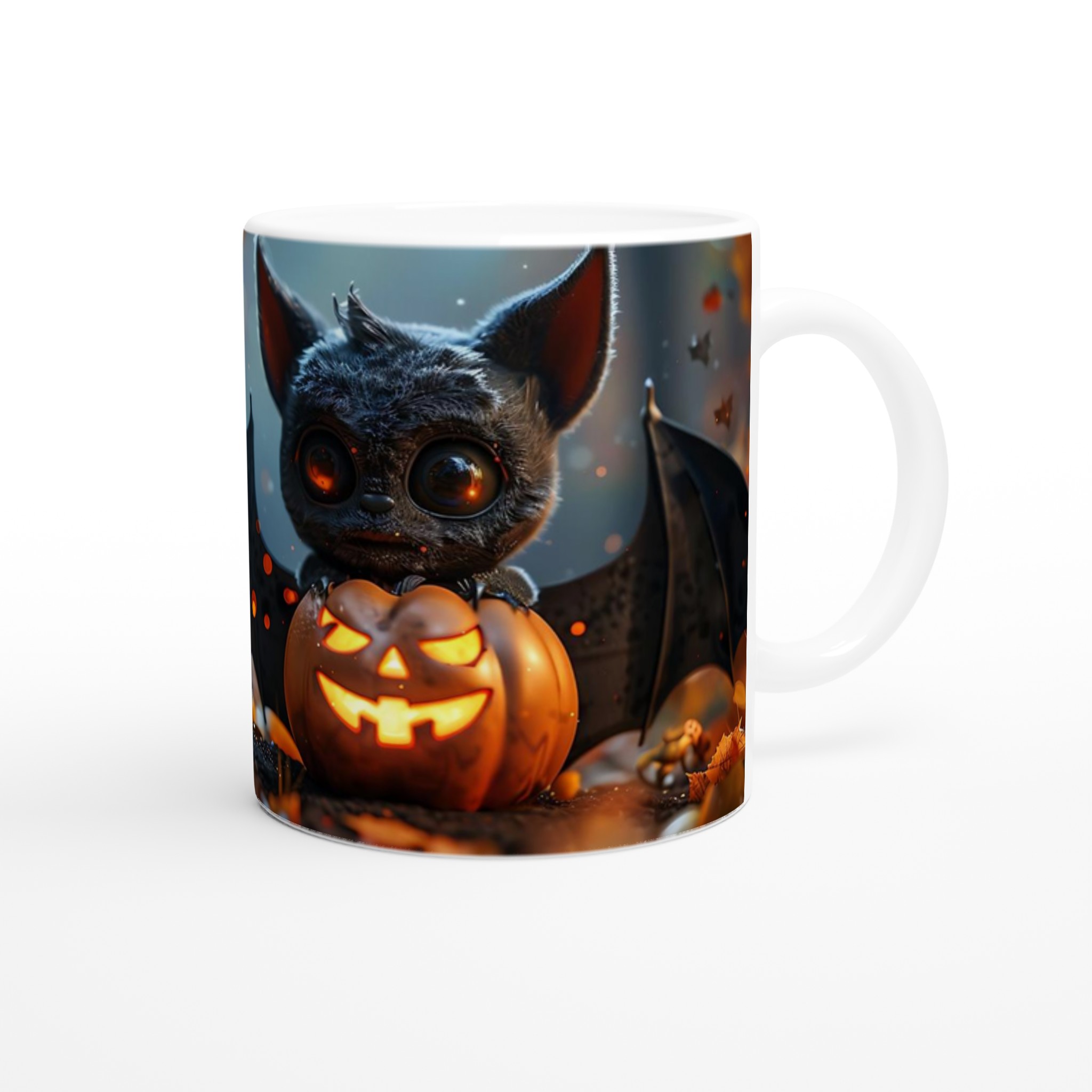 Spooky-Cute Bat & Jack-o’-Lantern 11oz Ceramic Mug in Your Choice of Colors
