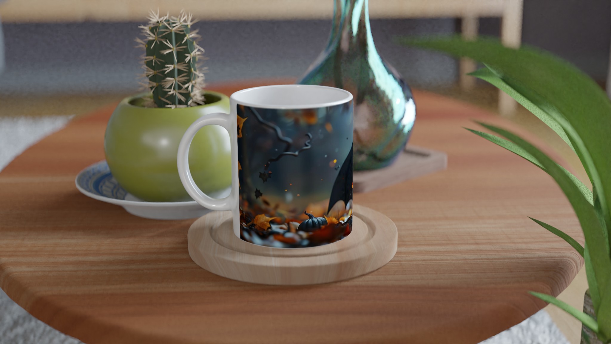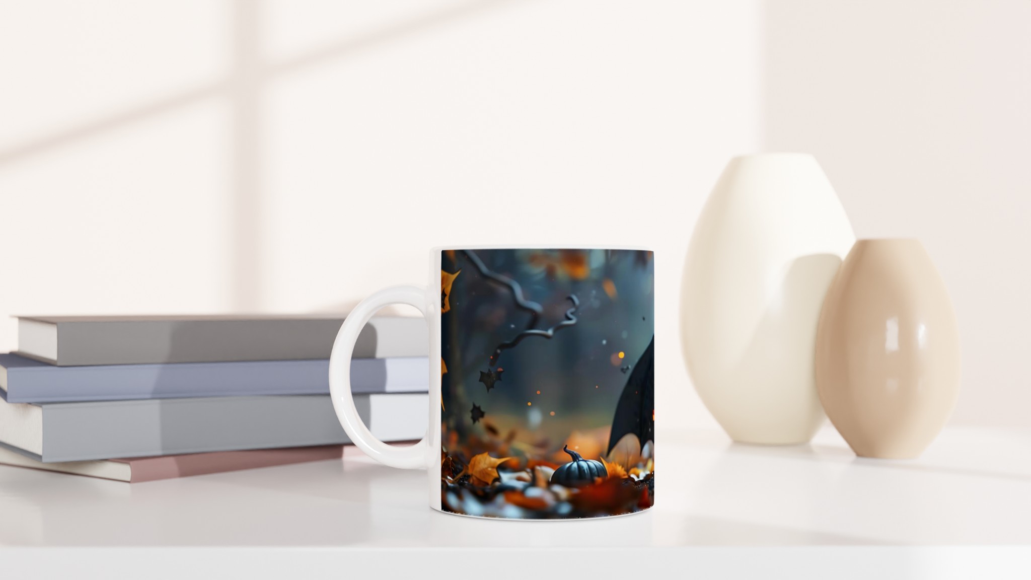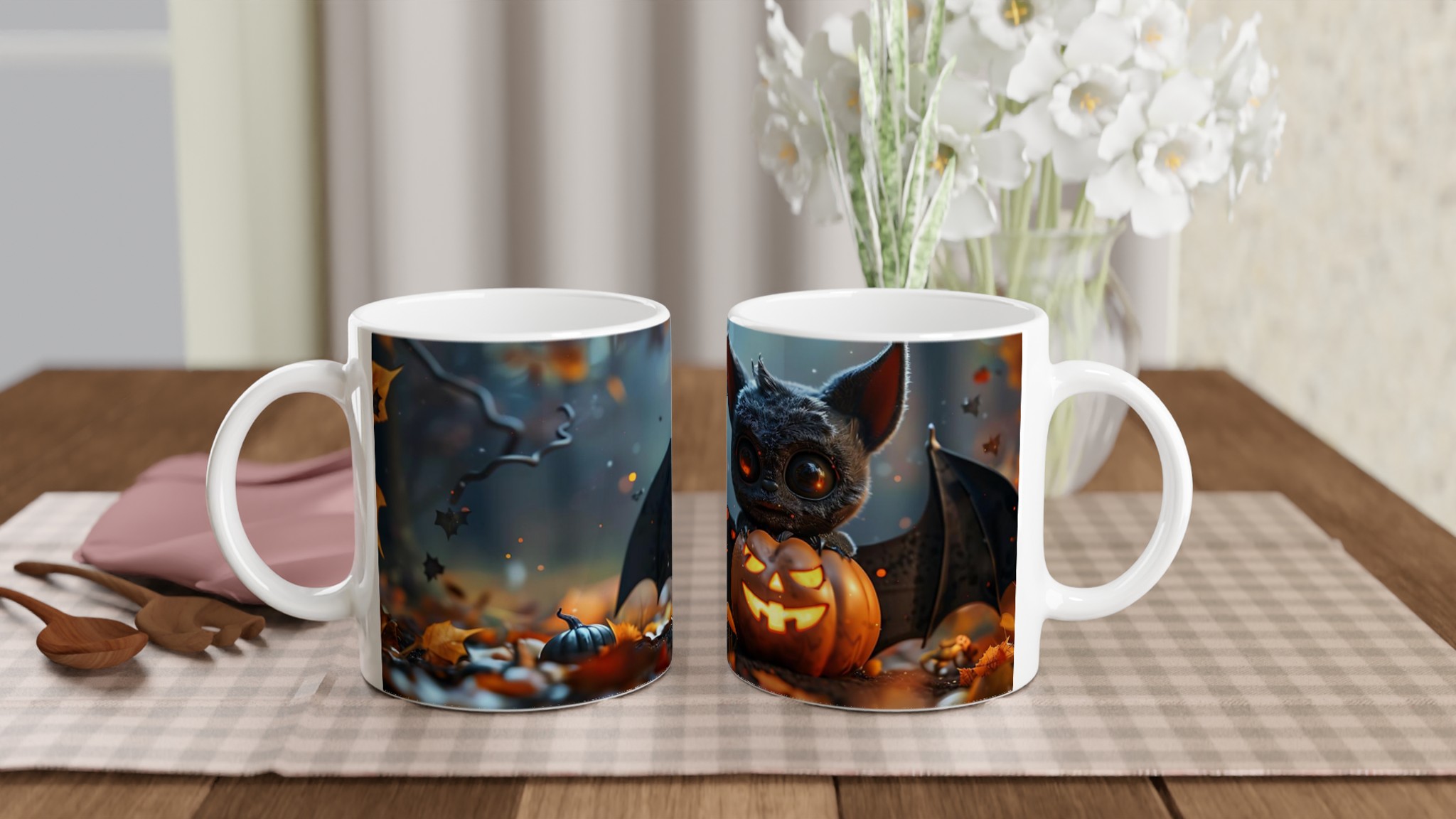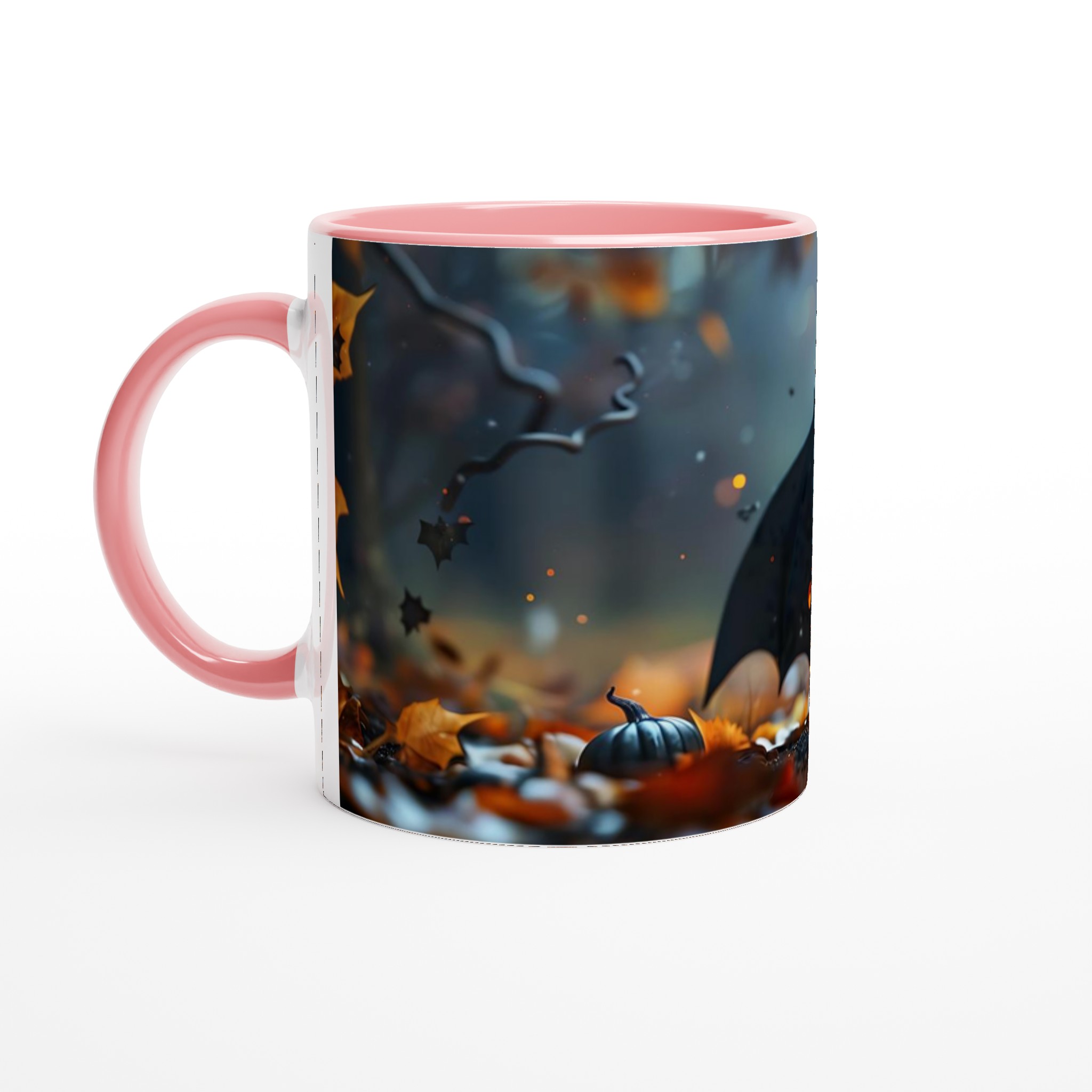 Spooky-Cute Bat & Jack-o’-Lantern 11oz Ceramic Mug in Your Choice of Colors