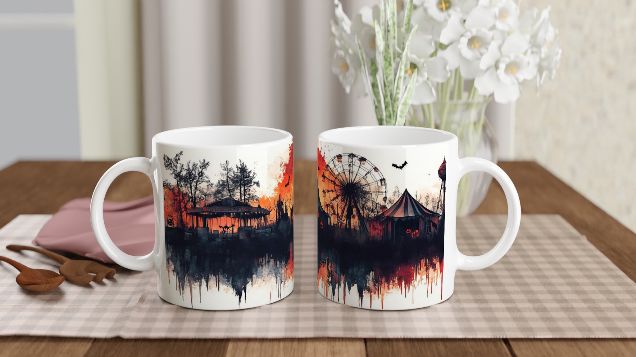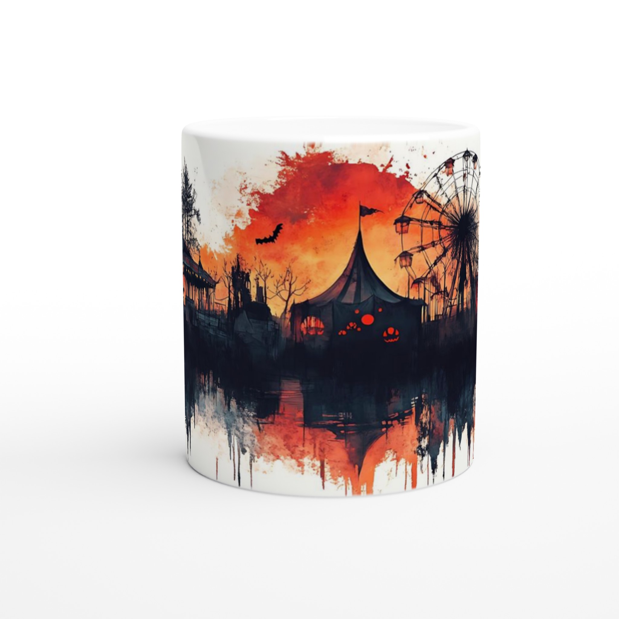 Haunted Carnival Dreams 11oz Ceramic Mug – Spooky Halloween Ambiance in Your Choice of Color