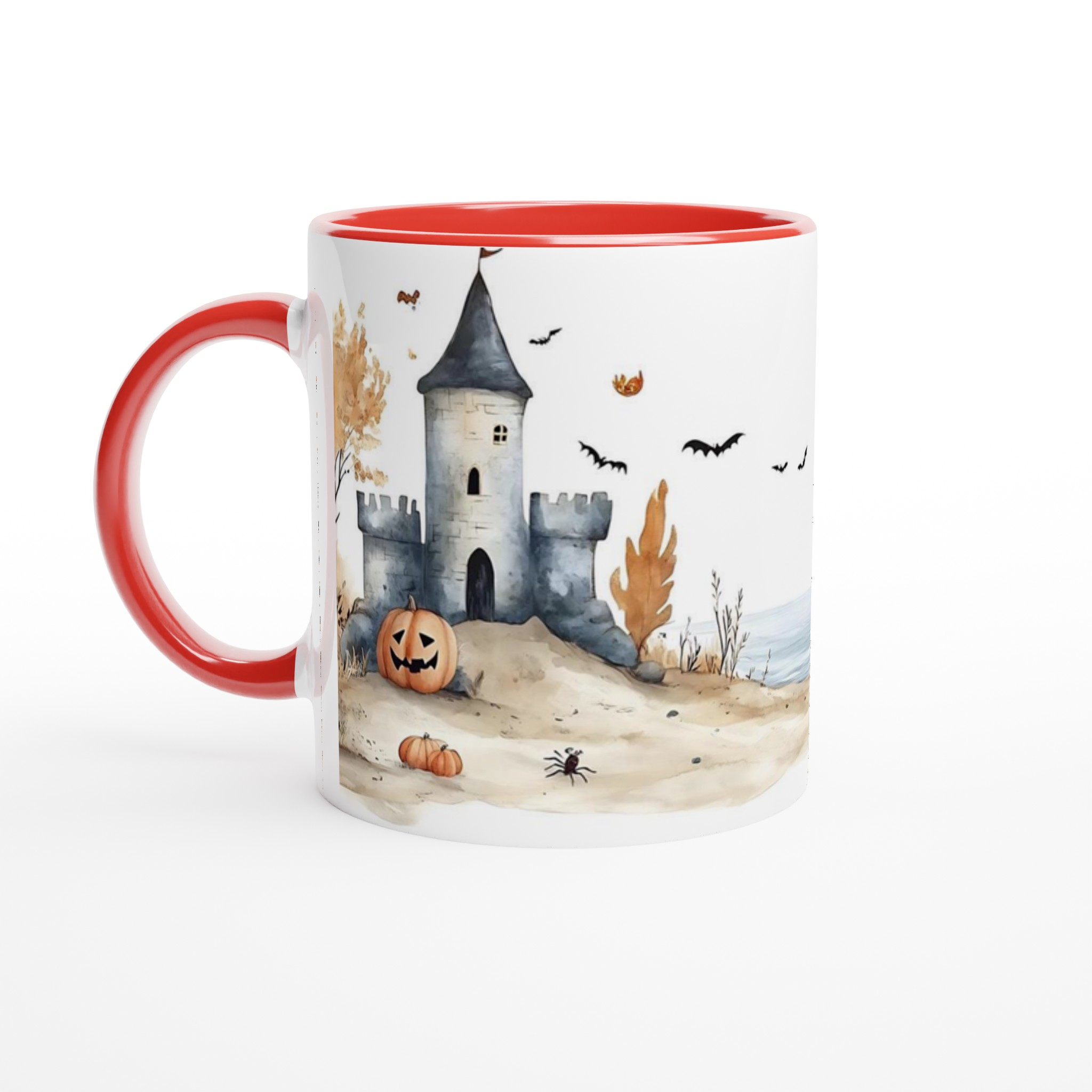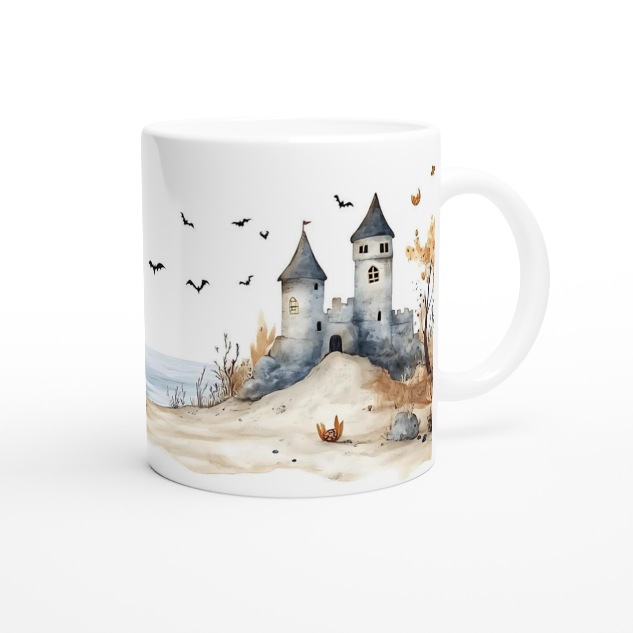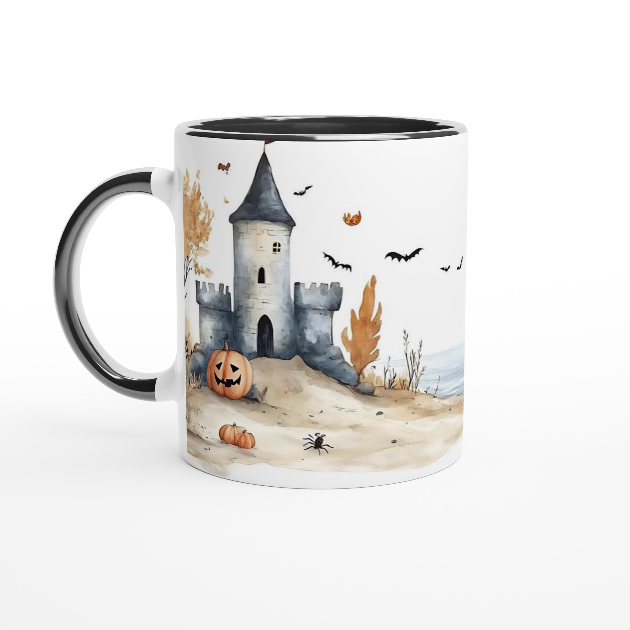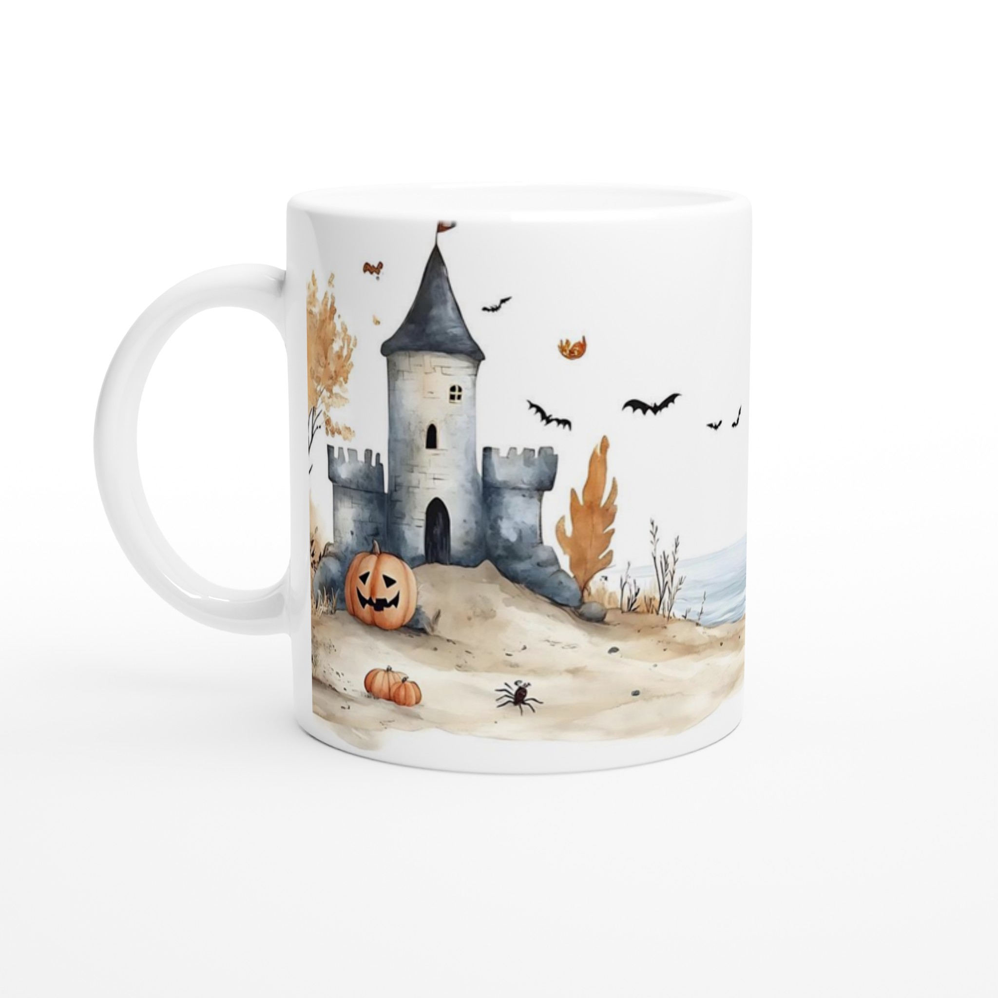 Spooky Watercolor Castle Halloween 11oz Ceramic Mug in Your Choice of Seven Hues