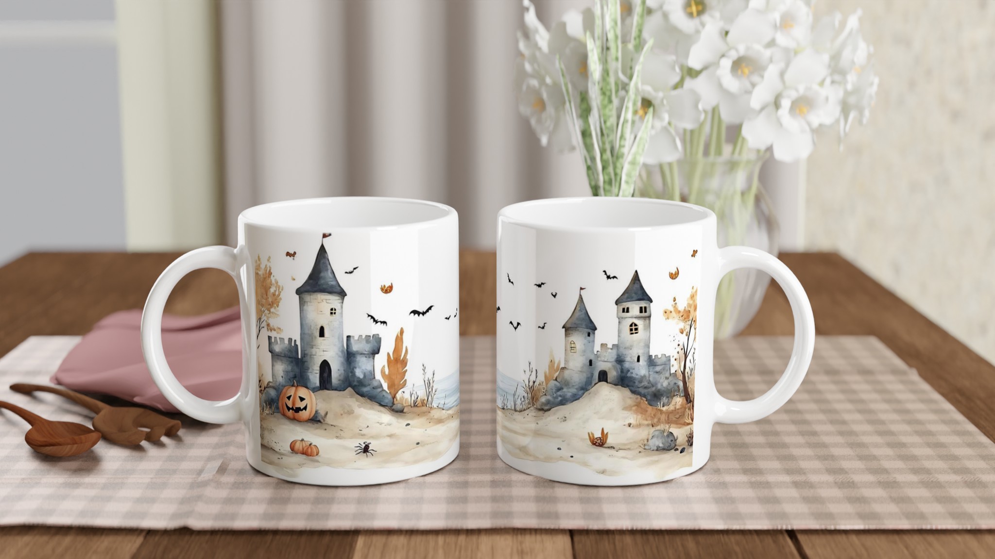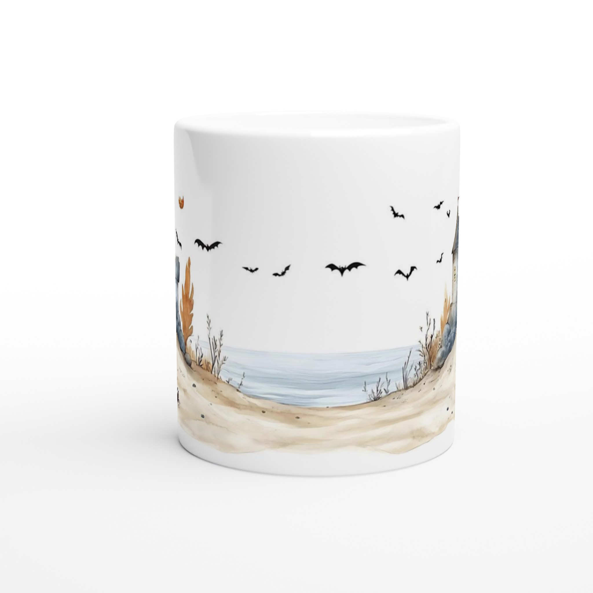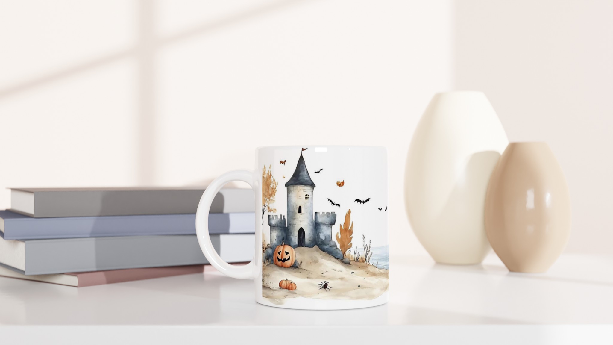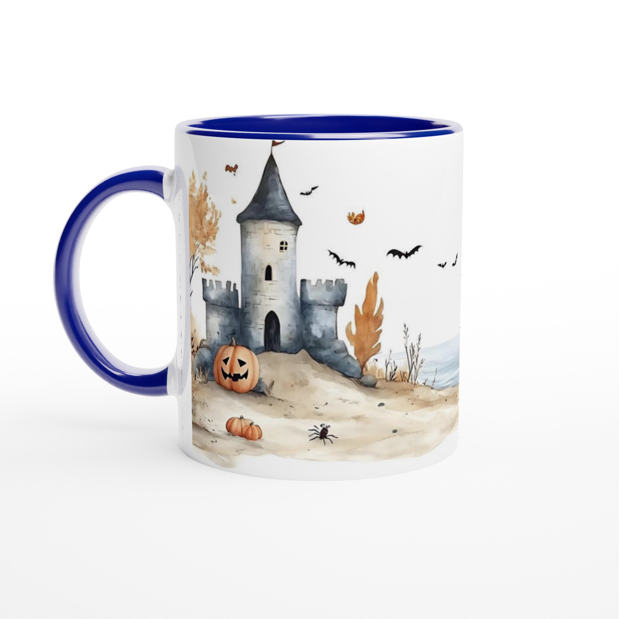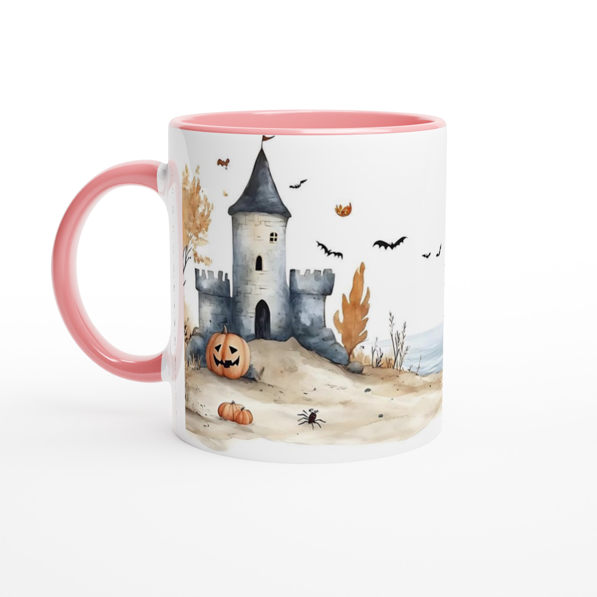 Spooky Watercolor Castle Halloween 11oz Ceramic Mug in Your Choice of Seven Hues