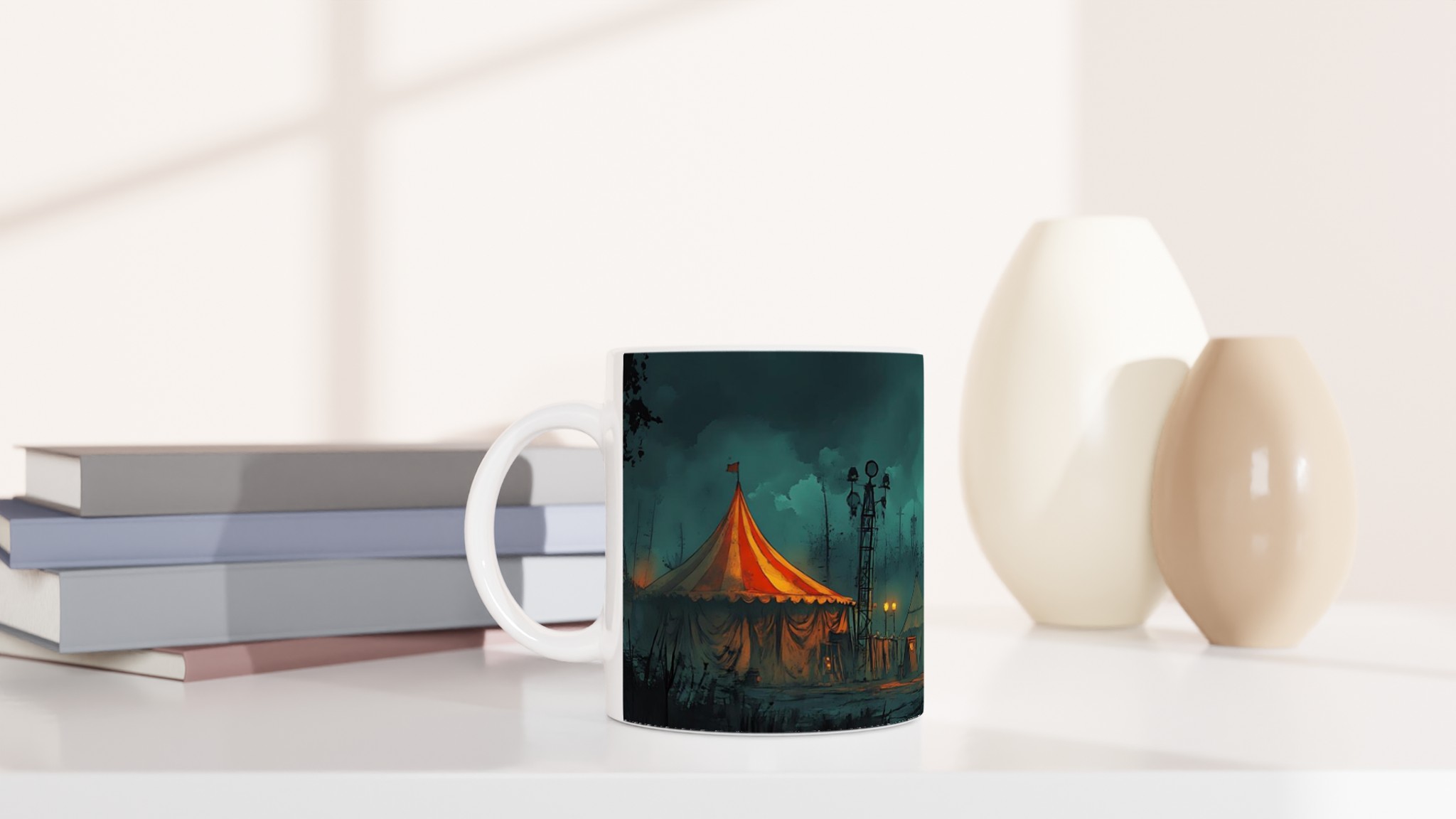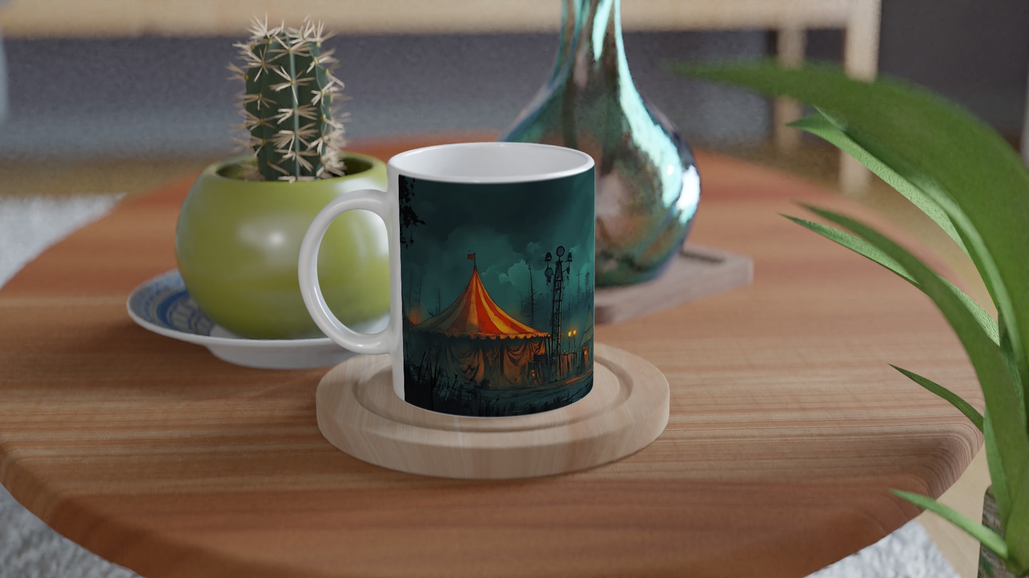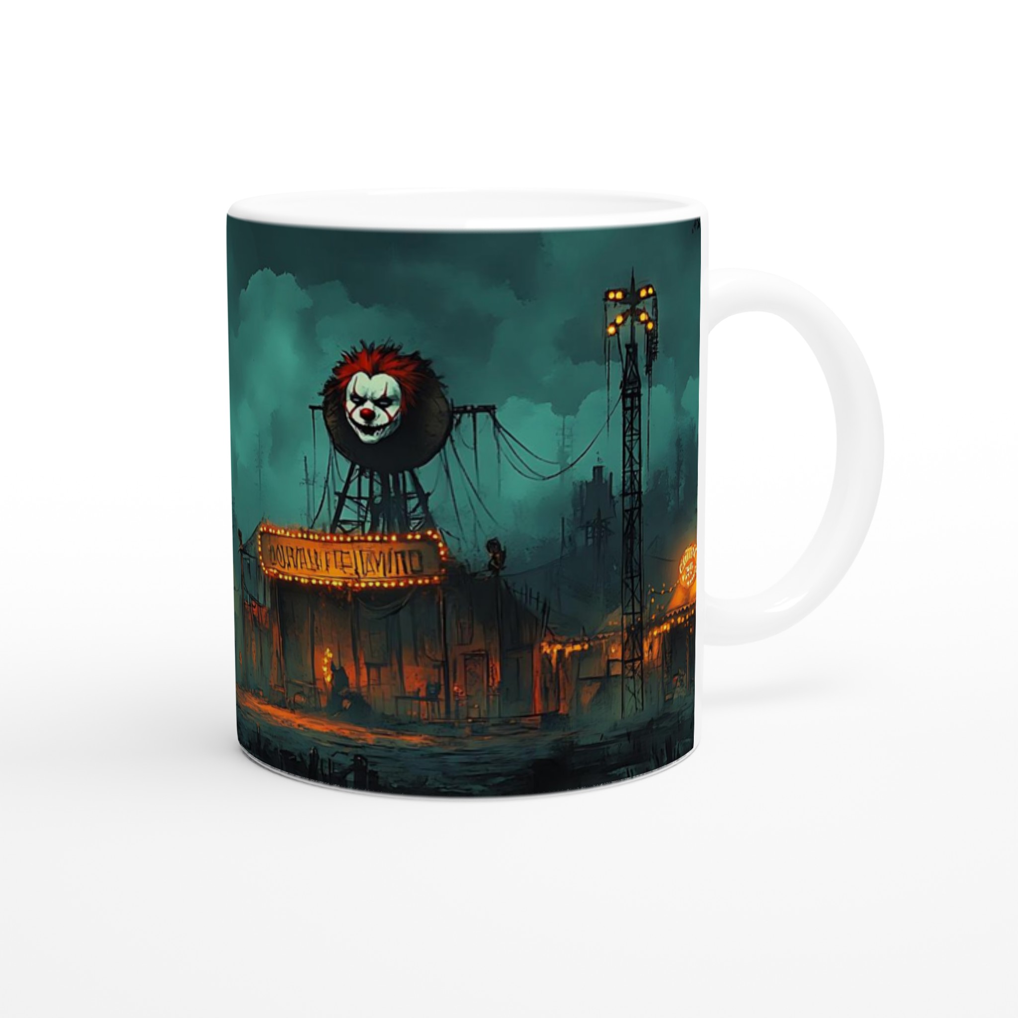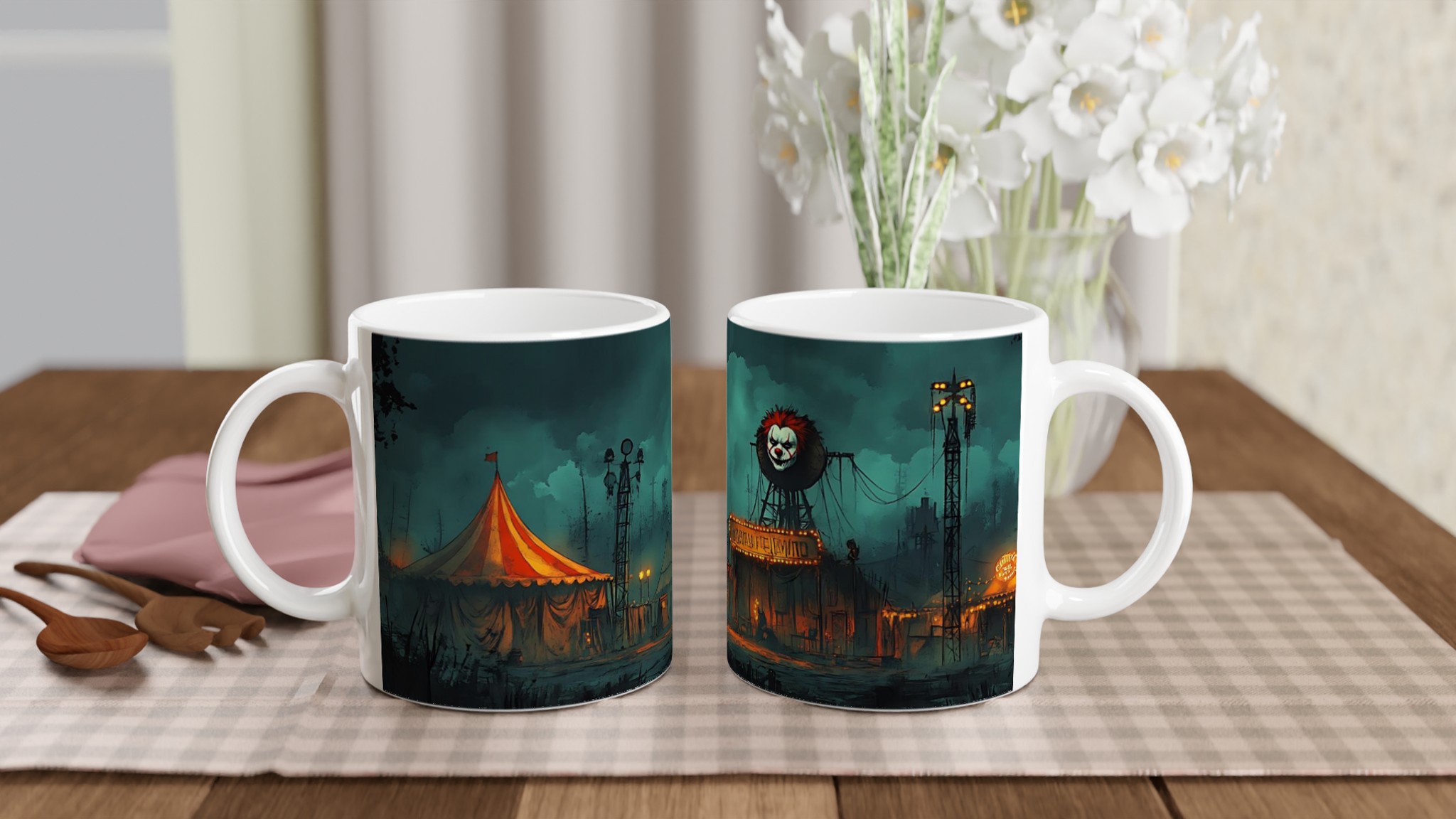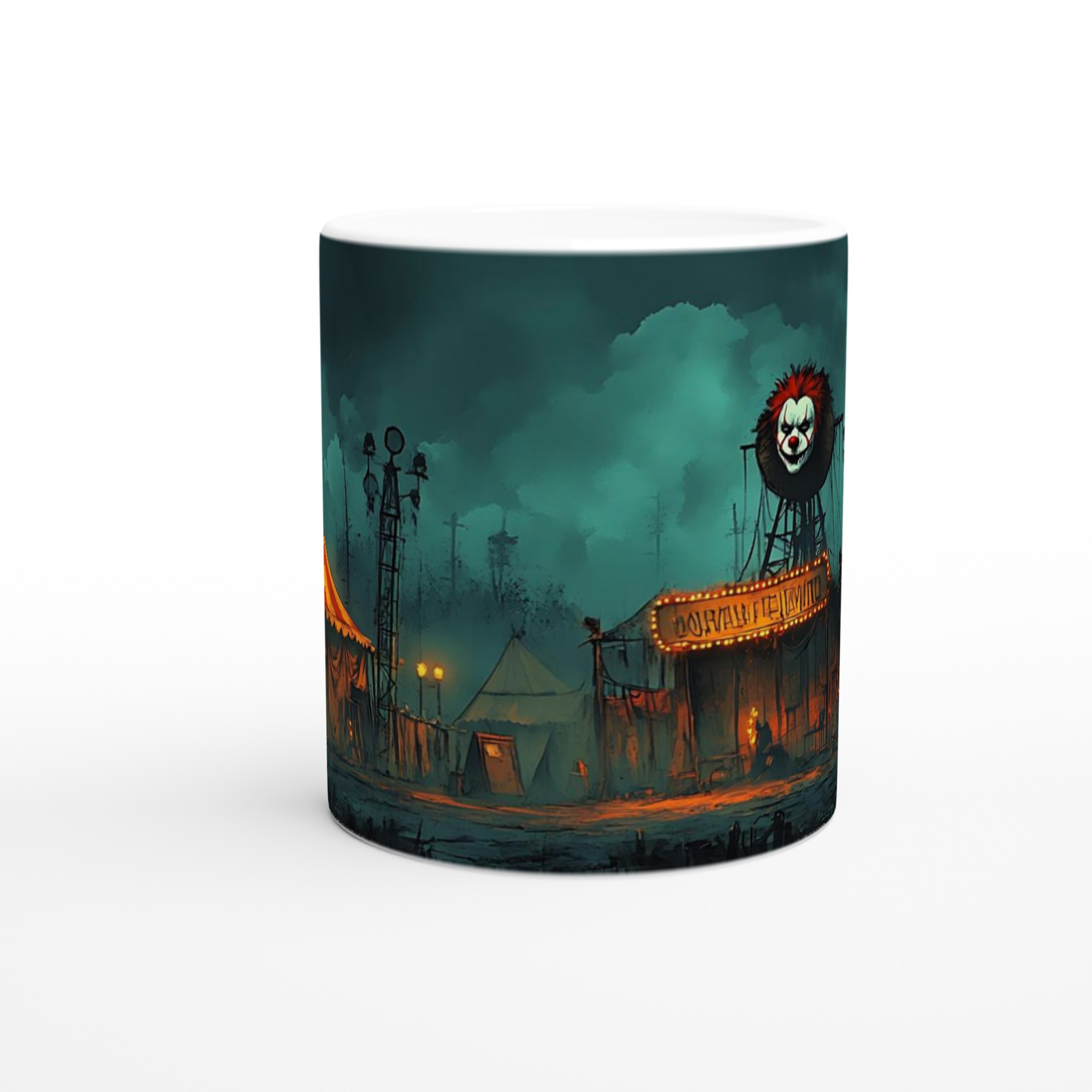 Haunted Circus Clown White 11oz Ceramic Mug – Spooky Fun in Your Choice of Seven Hues!
