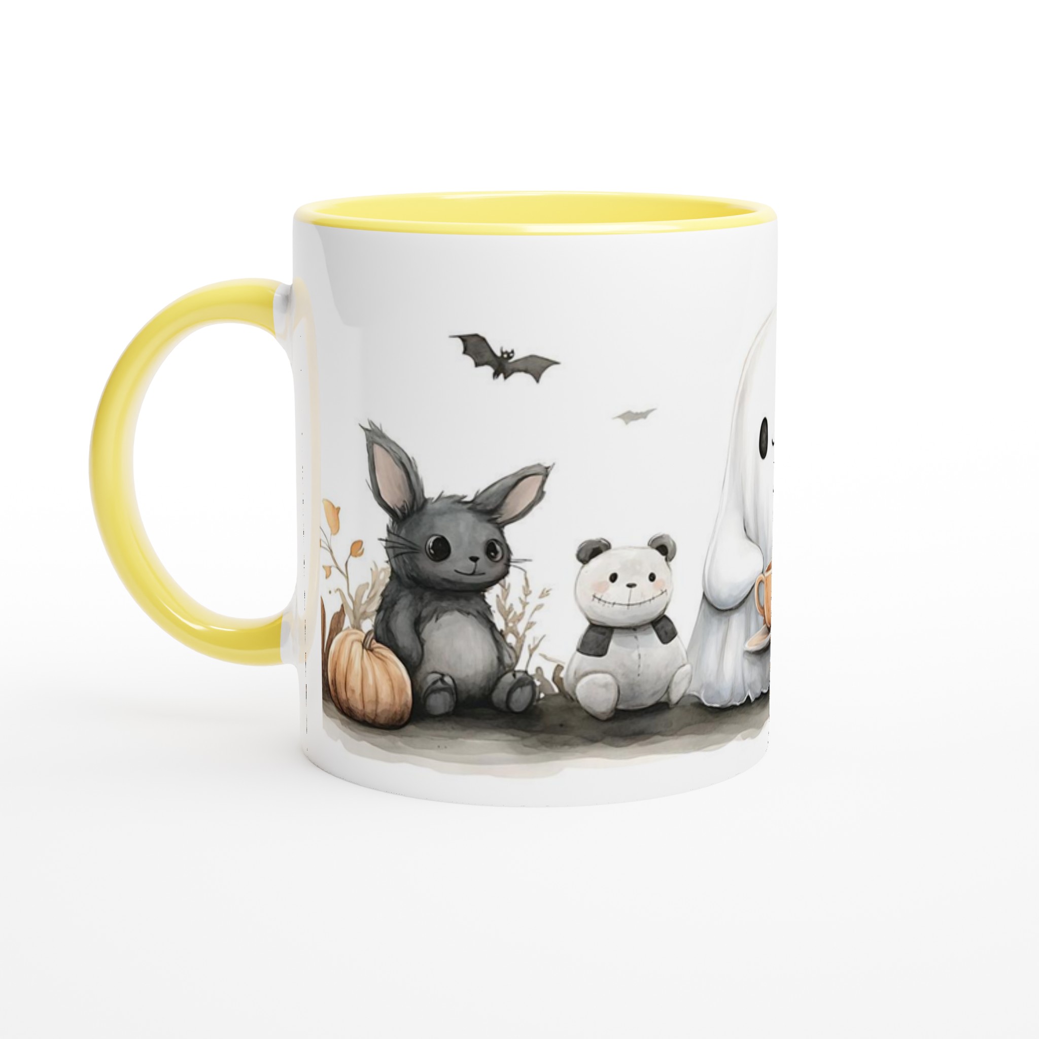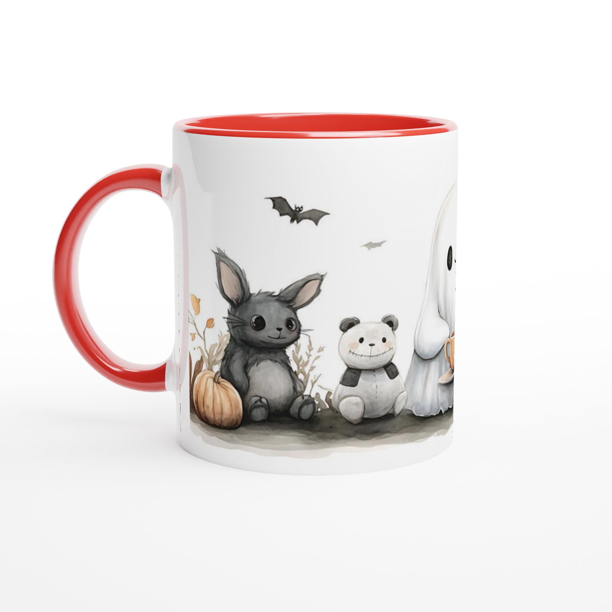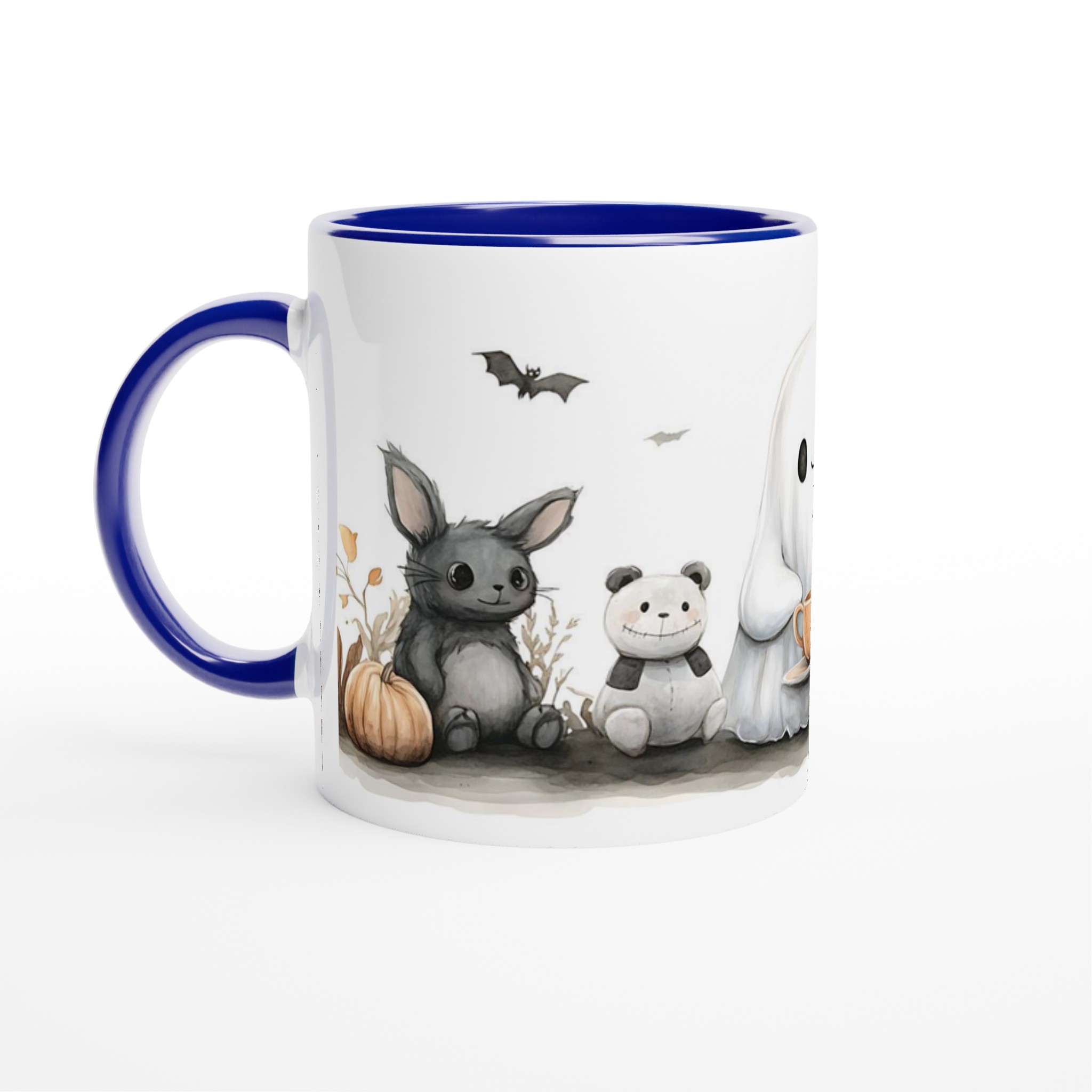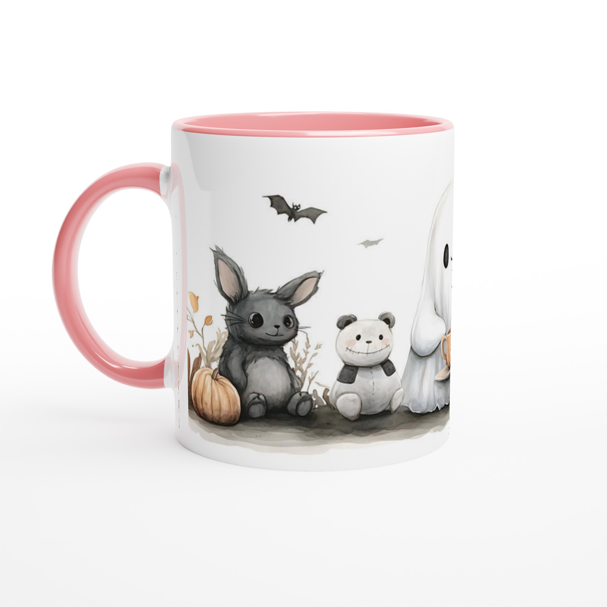 Spooky Cute Ghost & Friends Autumn Mug – White 11oz Ceramic Mug for Halloween & Fall Fun