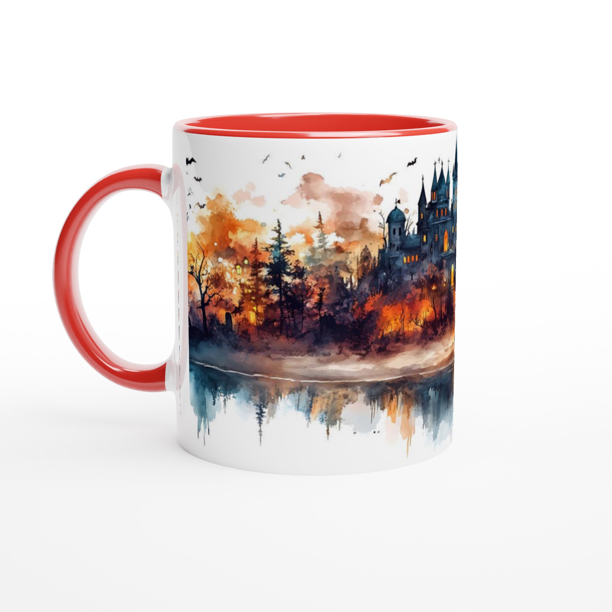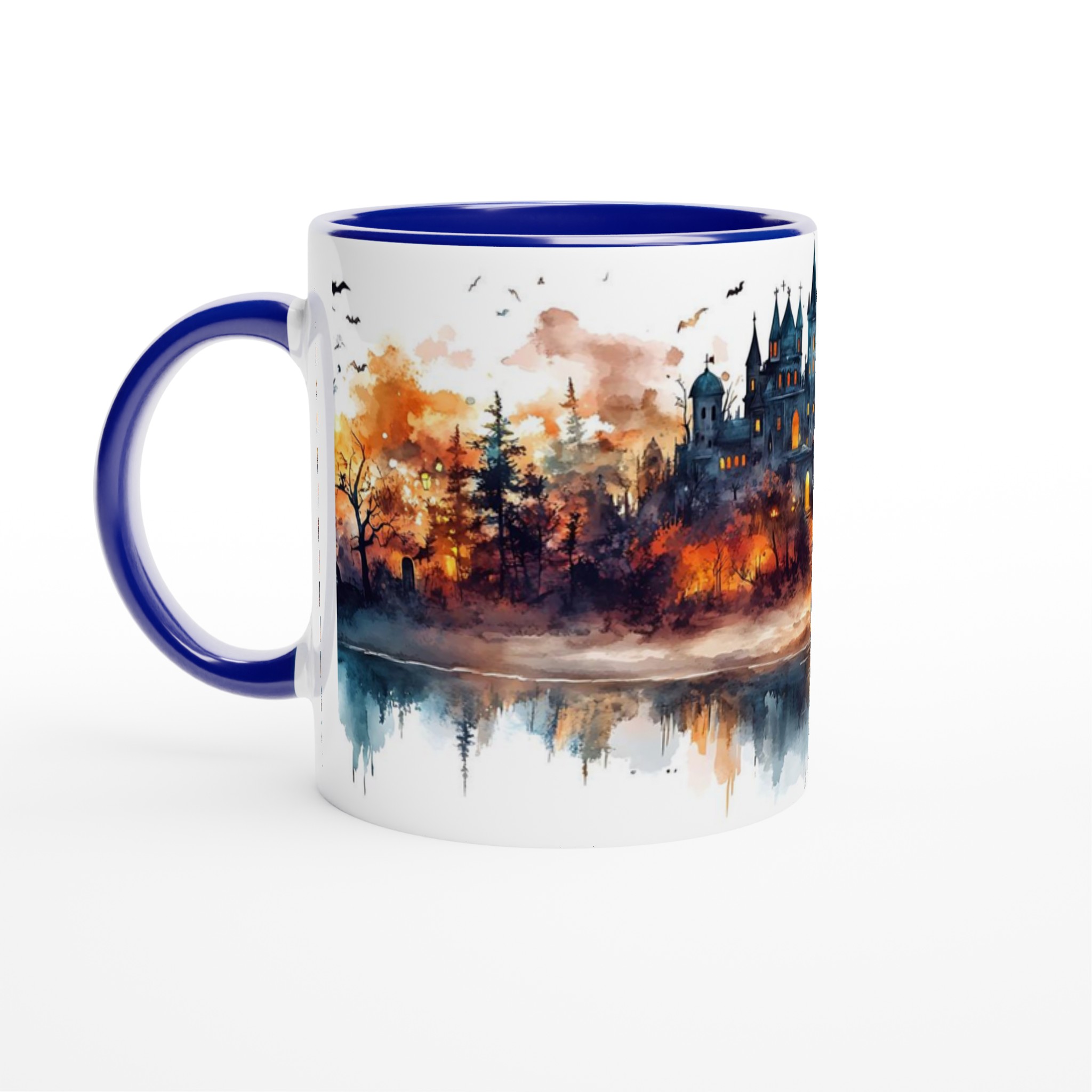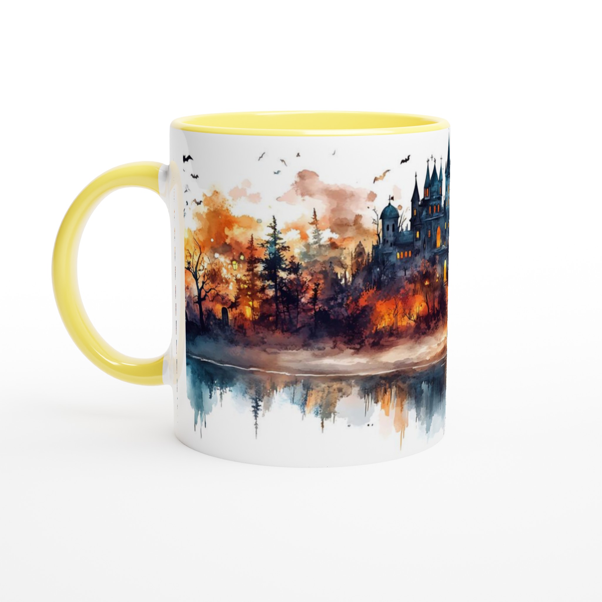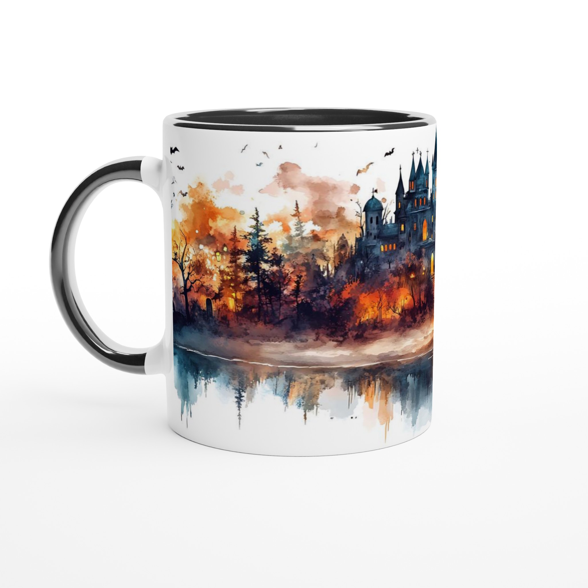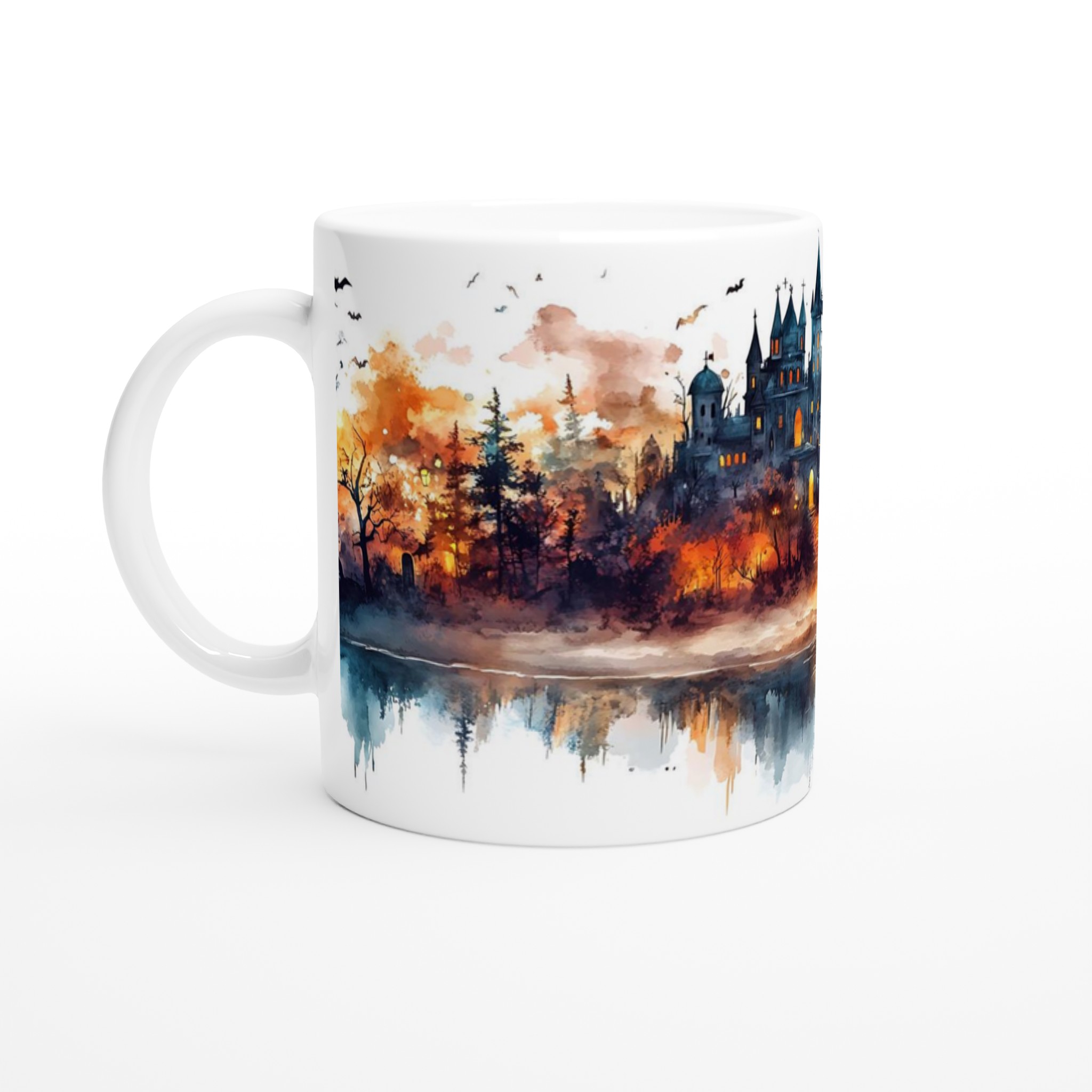 Haunted Castle Watercolor 11oz Ceramic Mug – Spooky Enchantment in Your Choice of Seven Hues