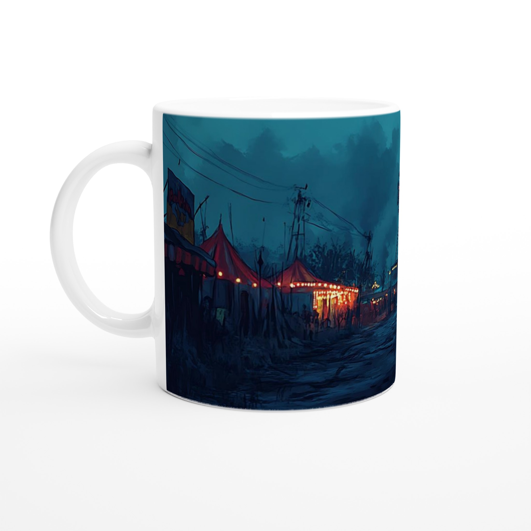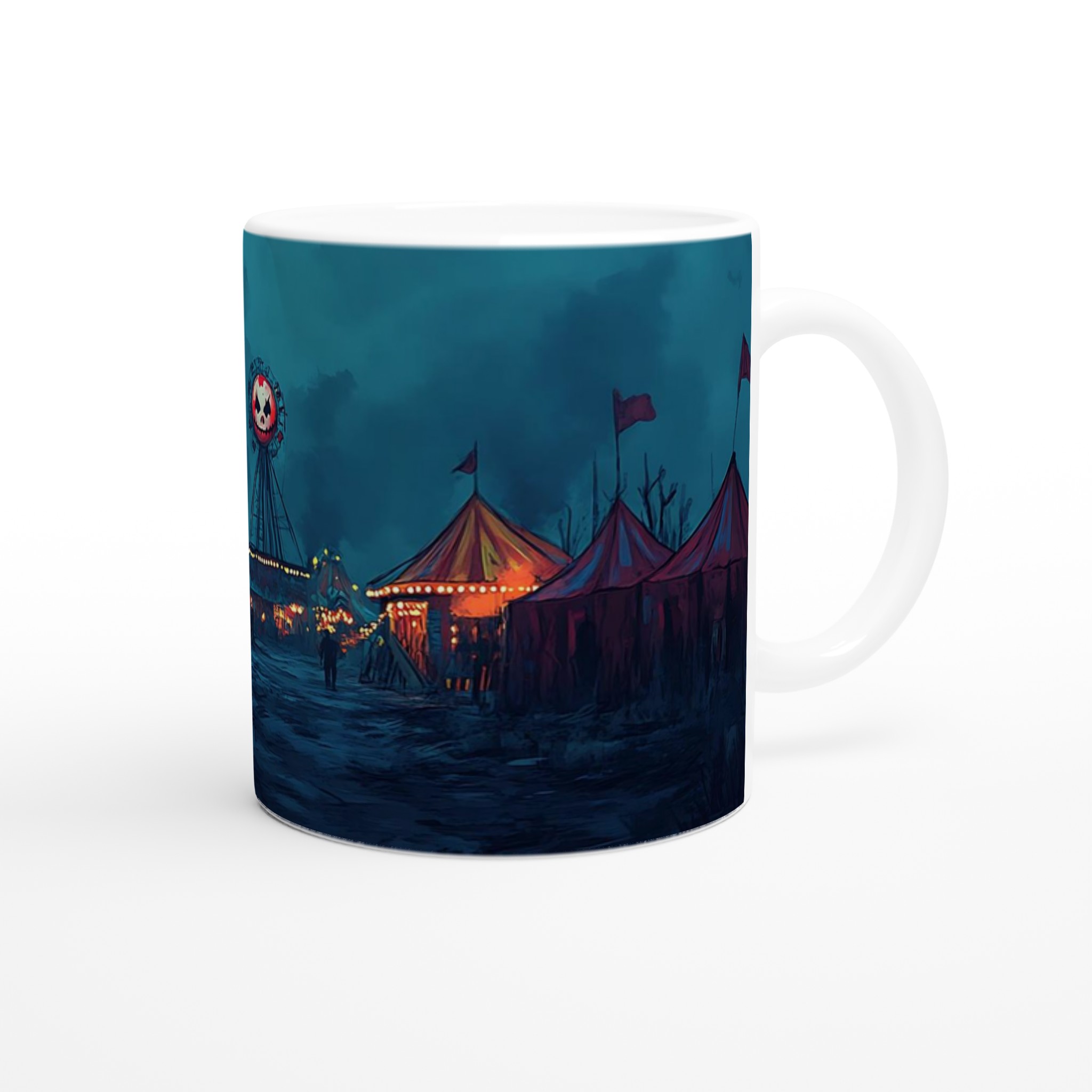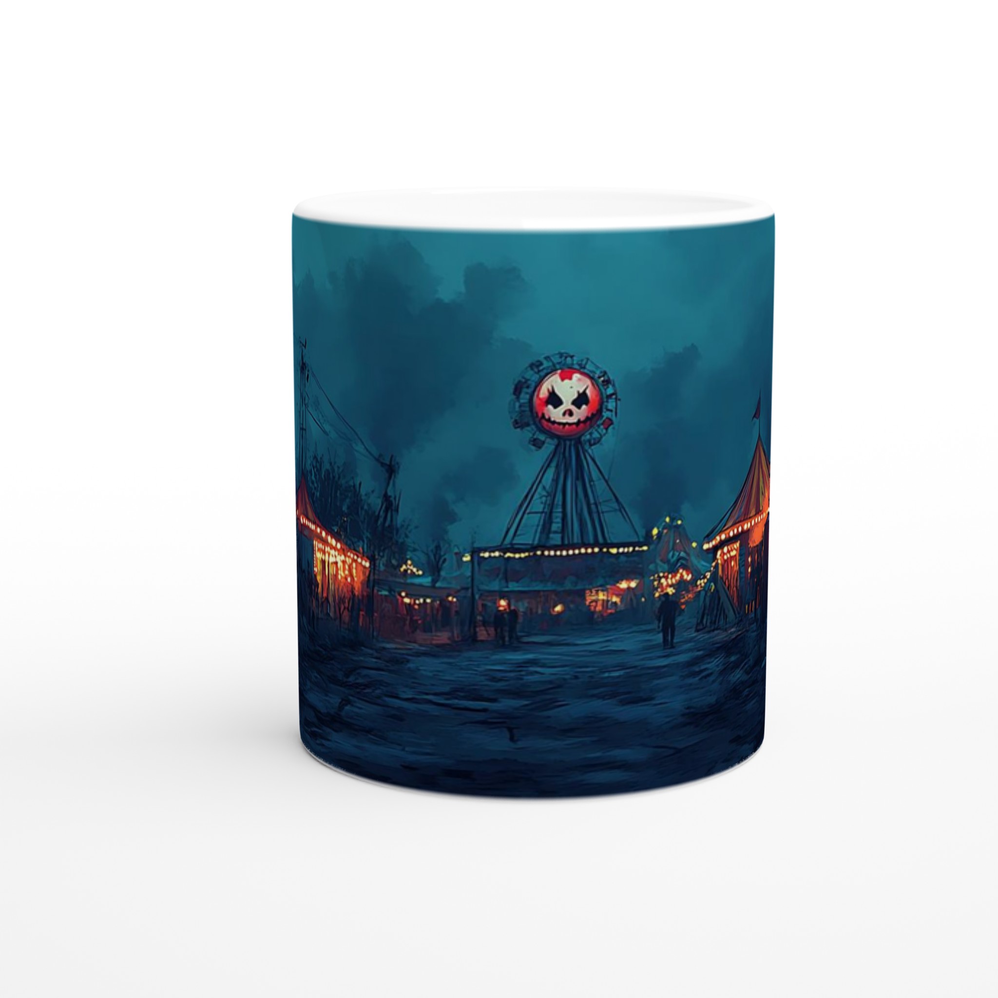 Haunted Carnival Skull Spooky Night Ceramic Mug – 11oz Drinkware in Your Choice of 7 Bold Hues