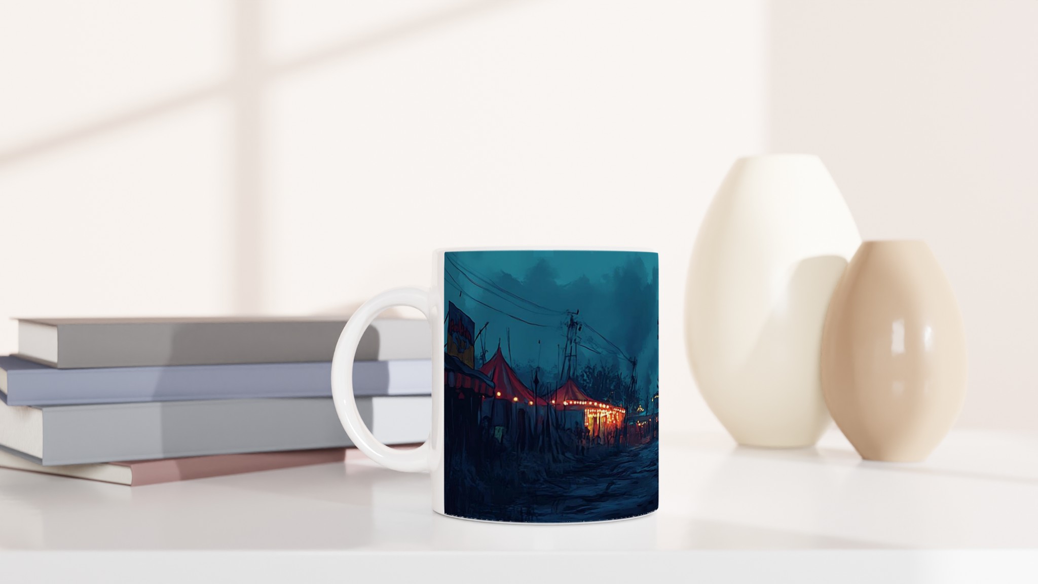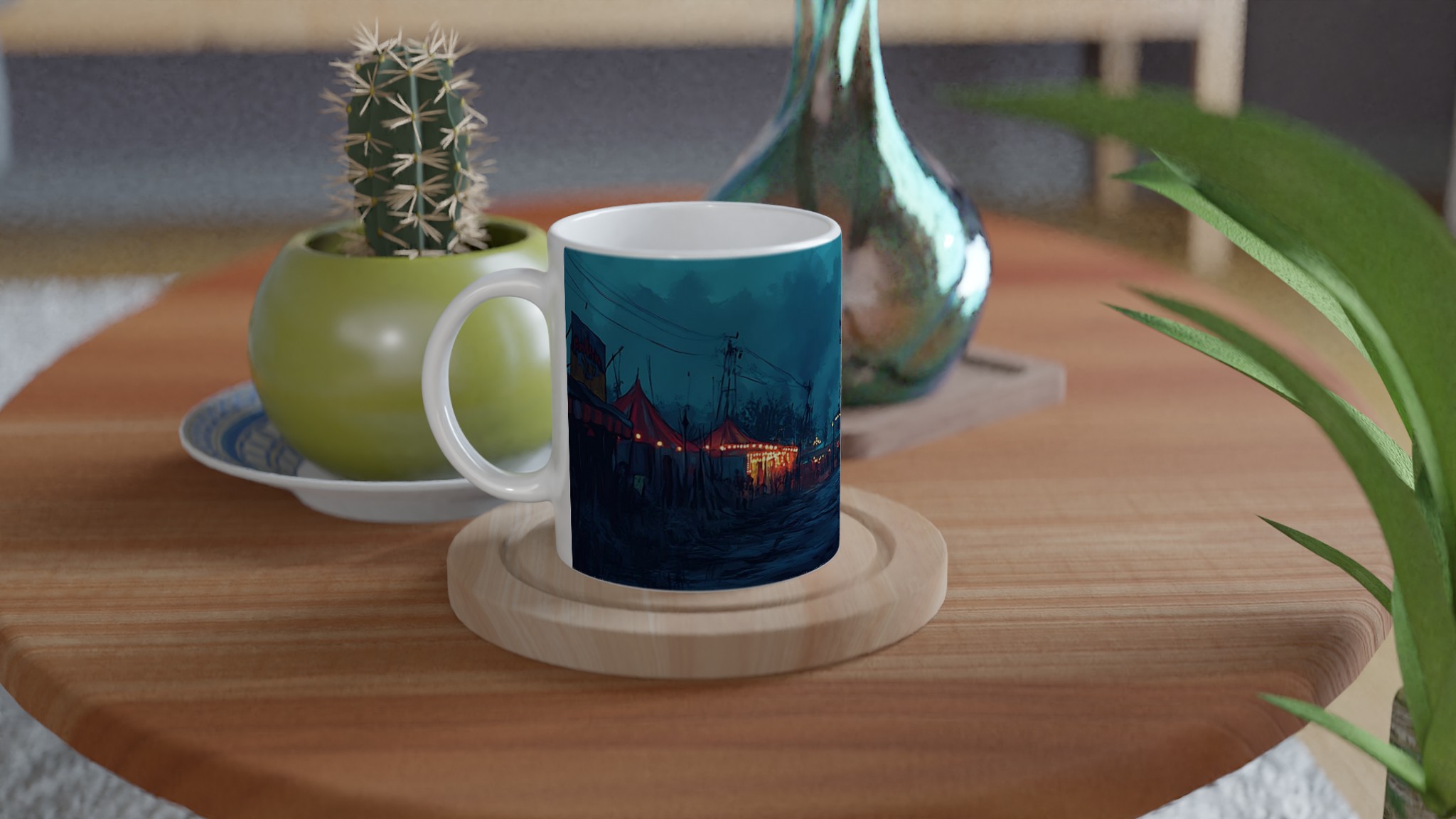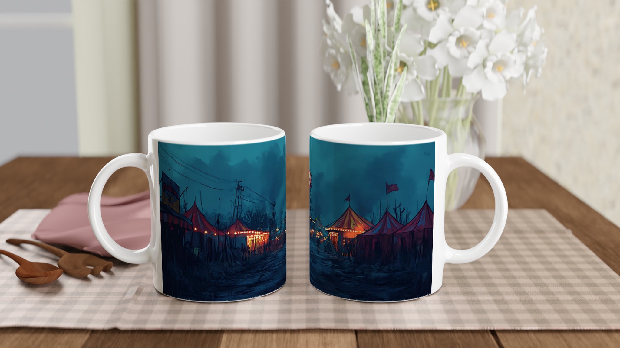 Haunted Carnival Skull Spooky Night Ceramic Mug – 11oz Drinkware in Your Choice of 7 Bold Hues