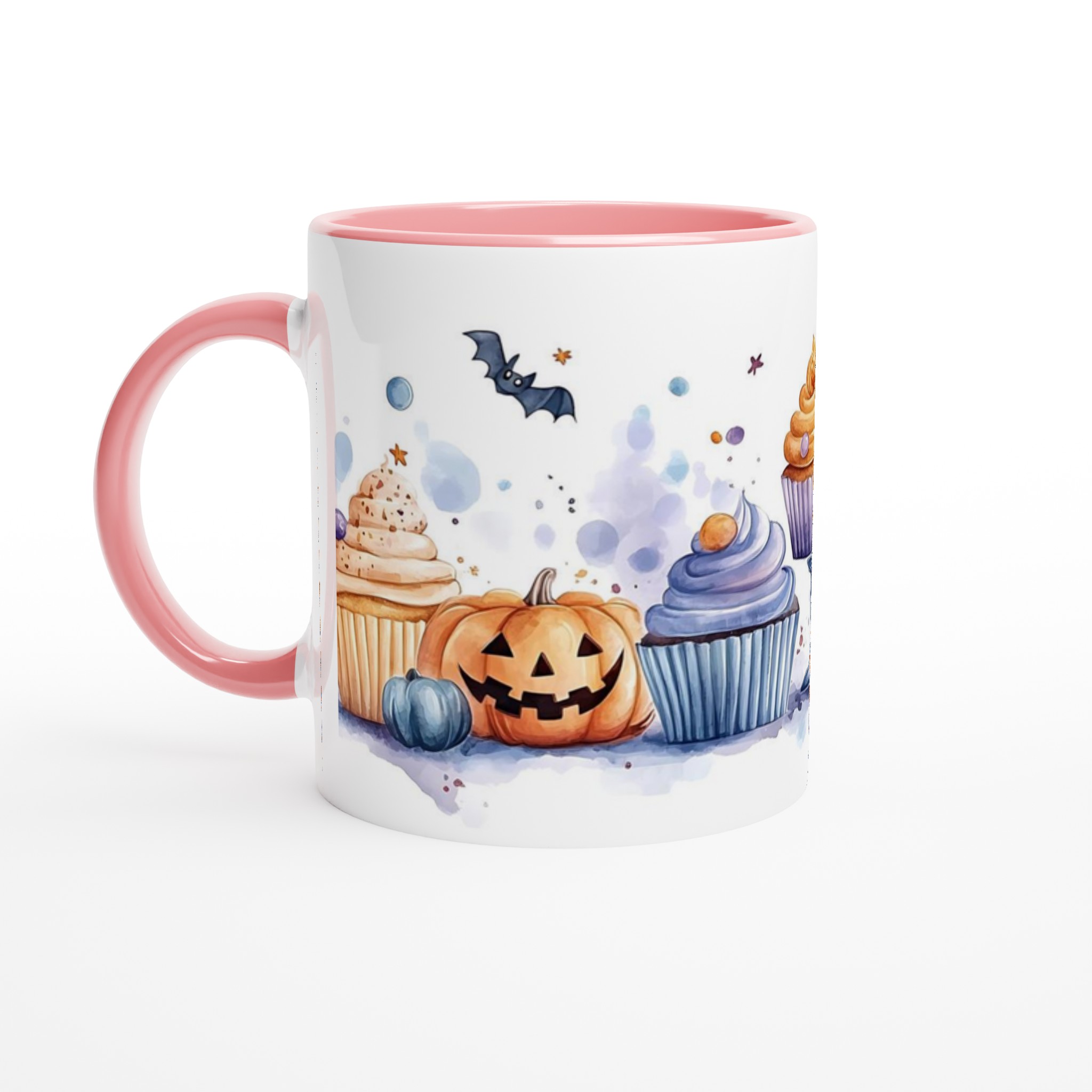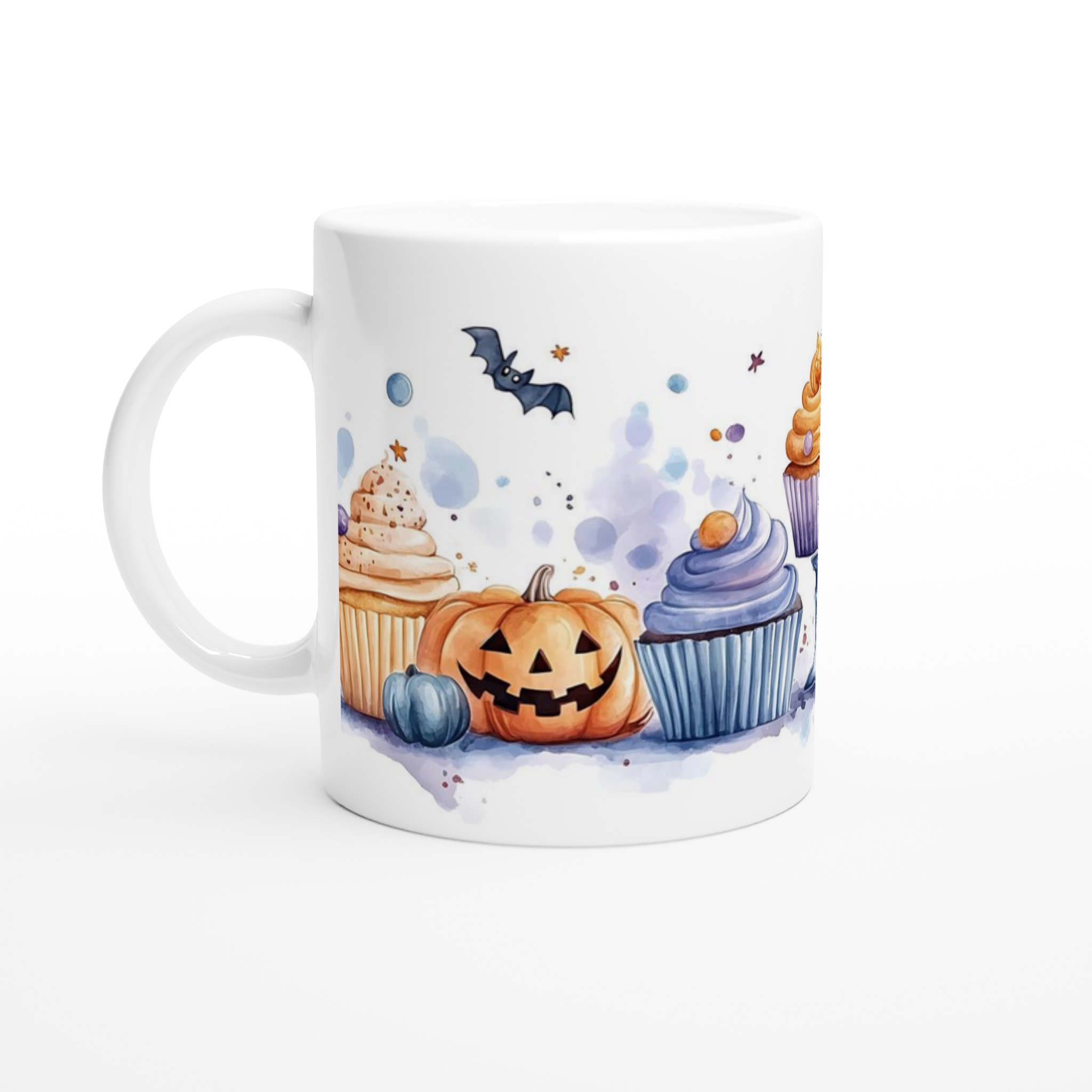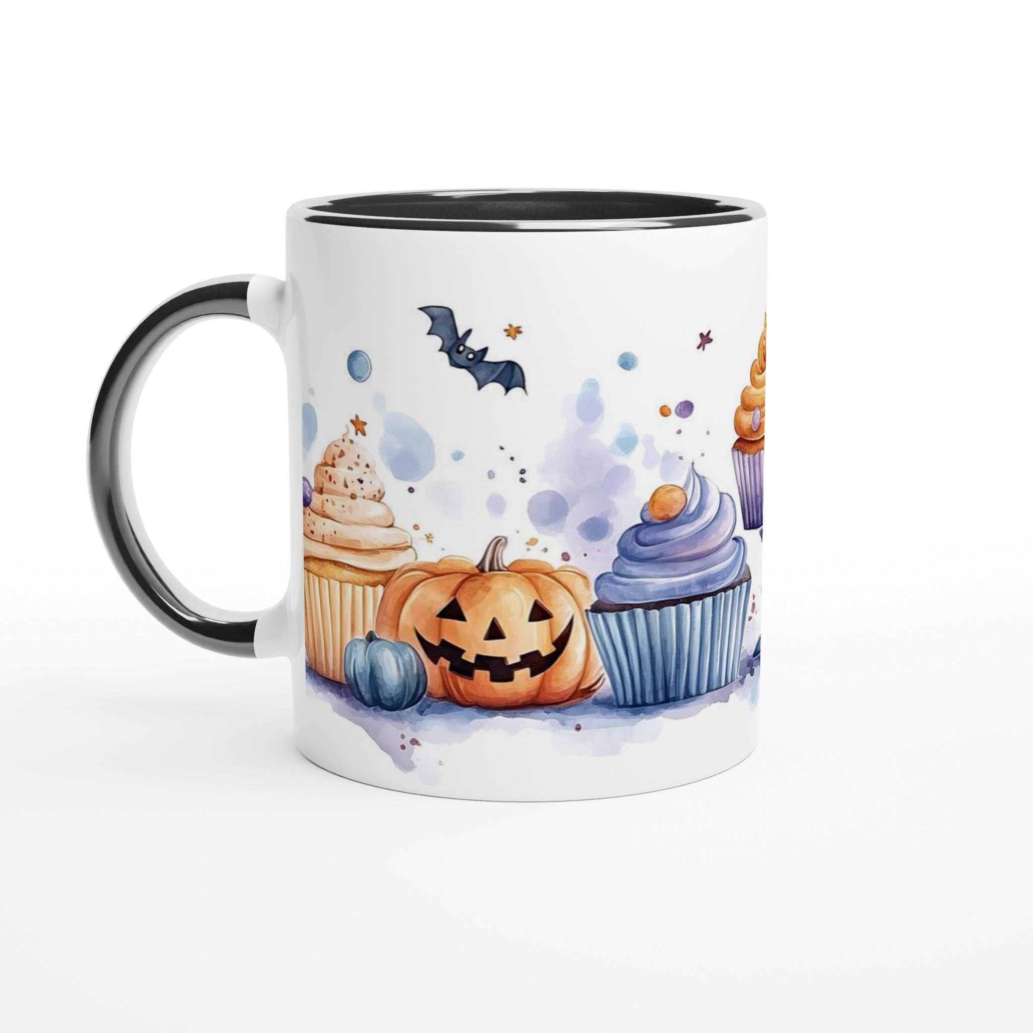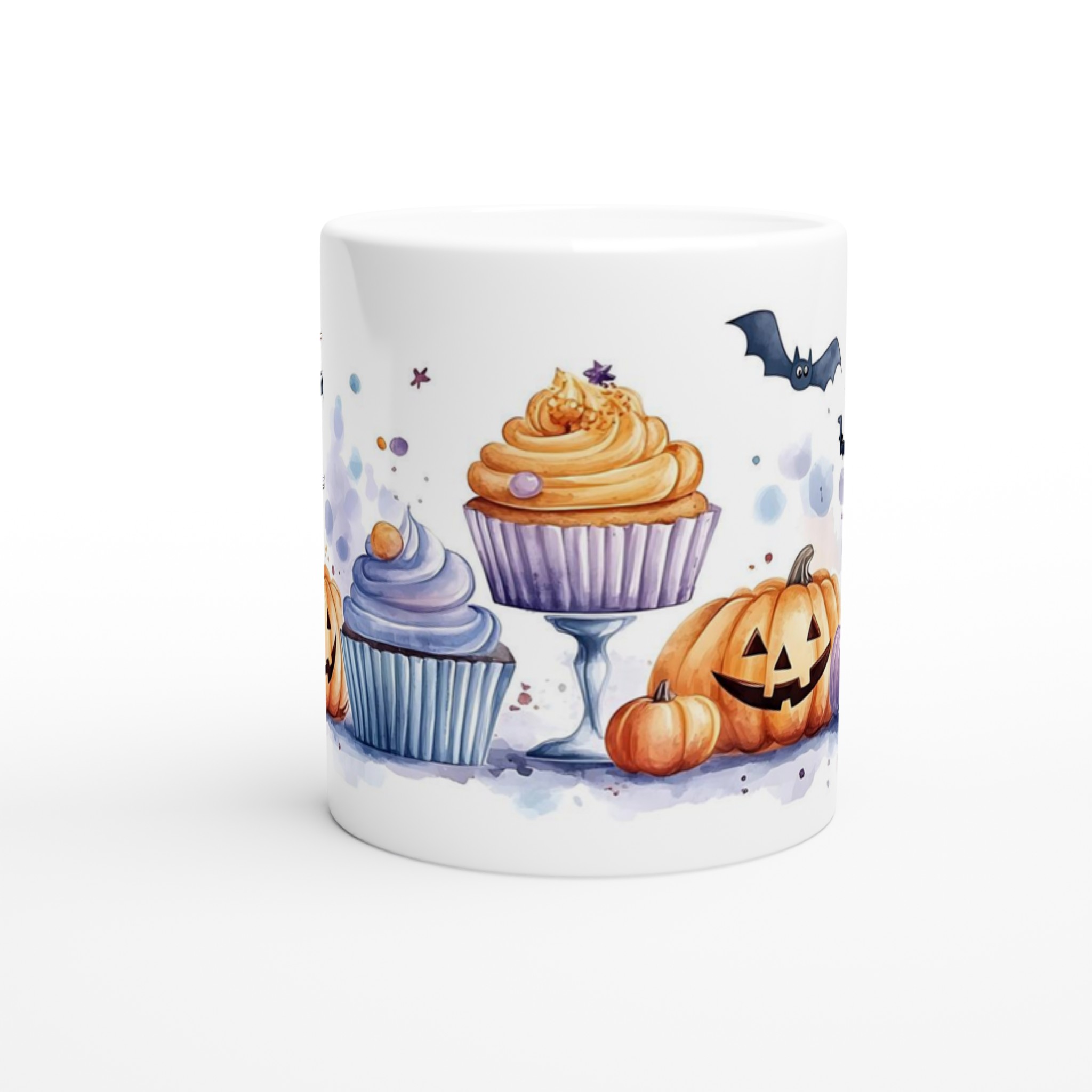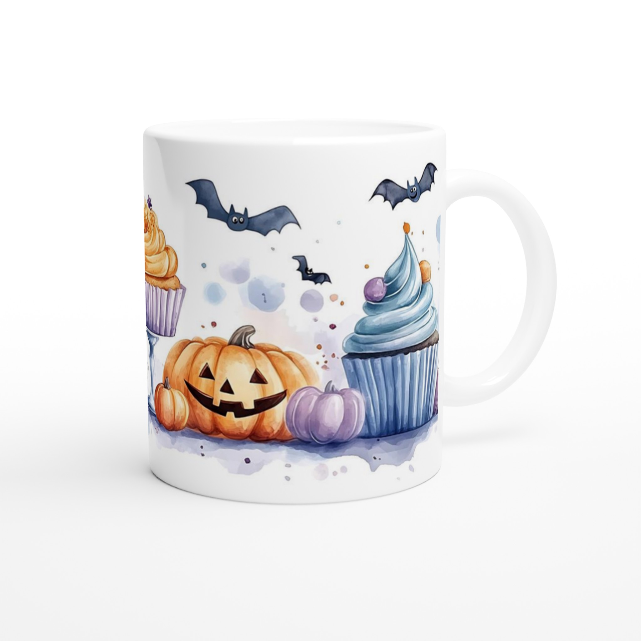 Spooky Sweets Halloween Watercolor Mug – Festive Pumpkin & Cupcake Design