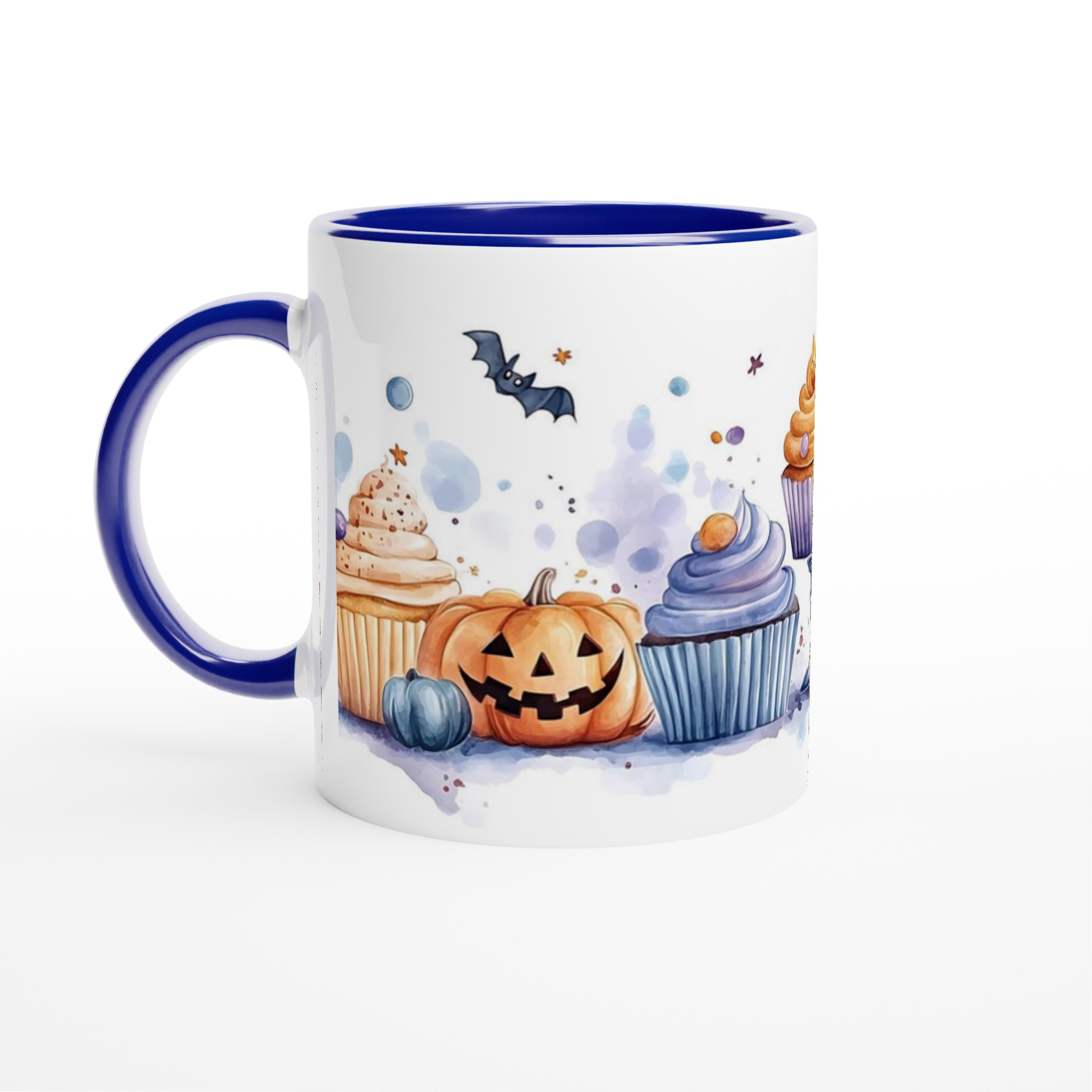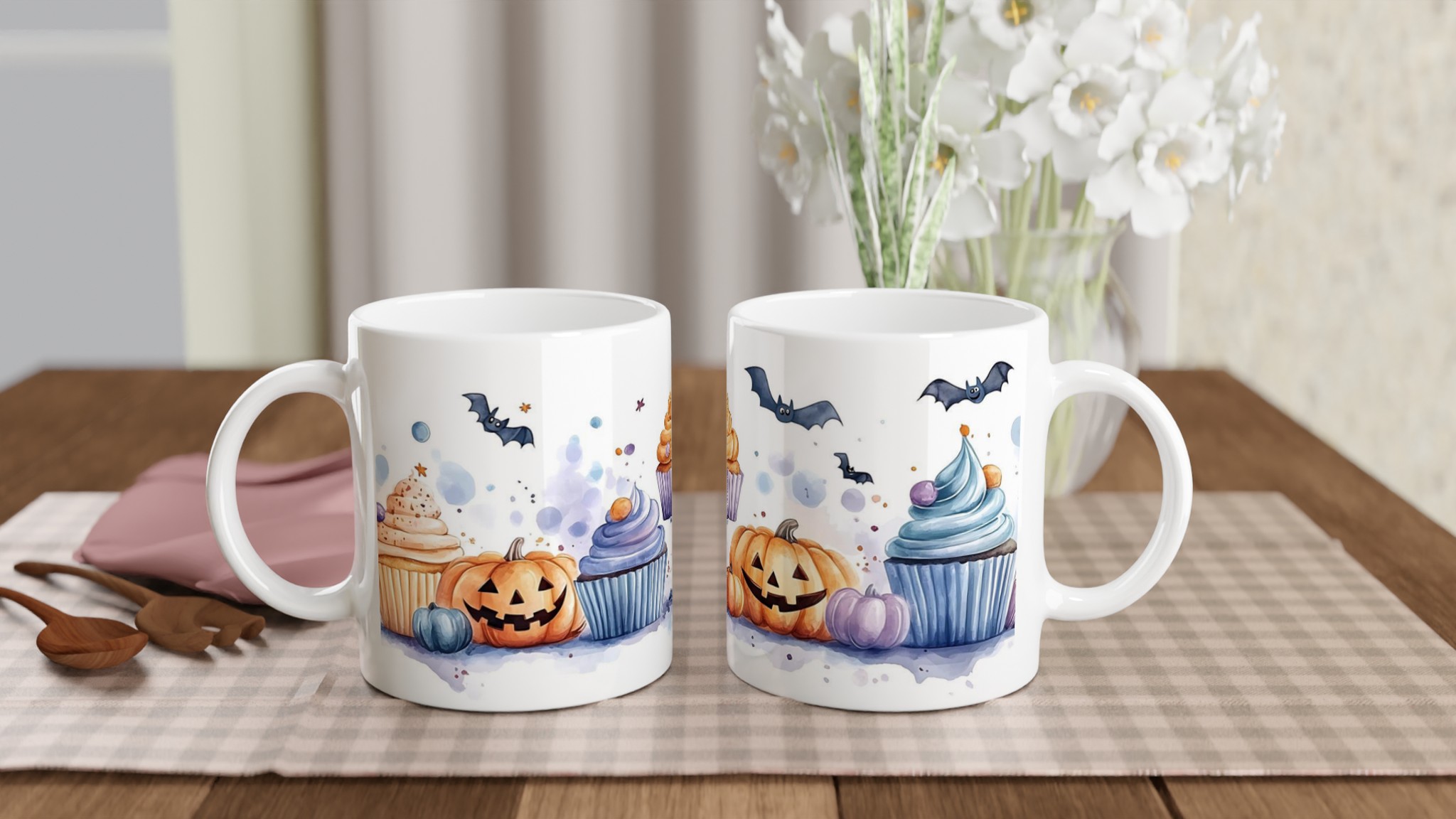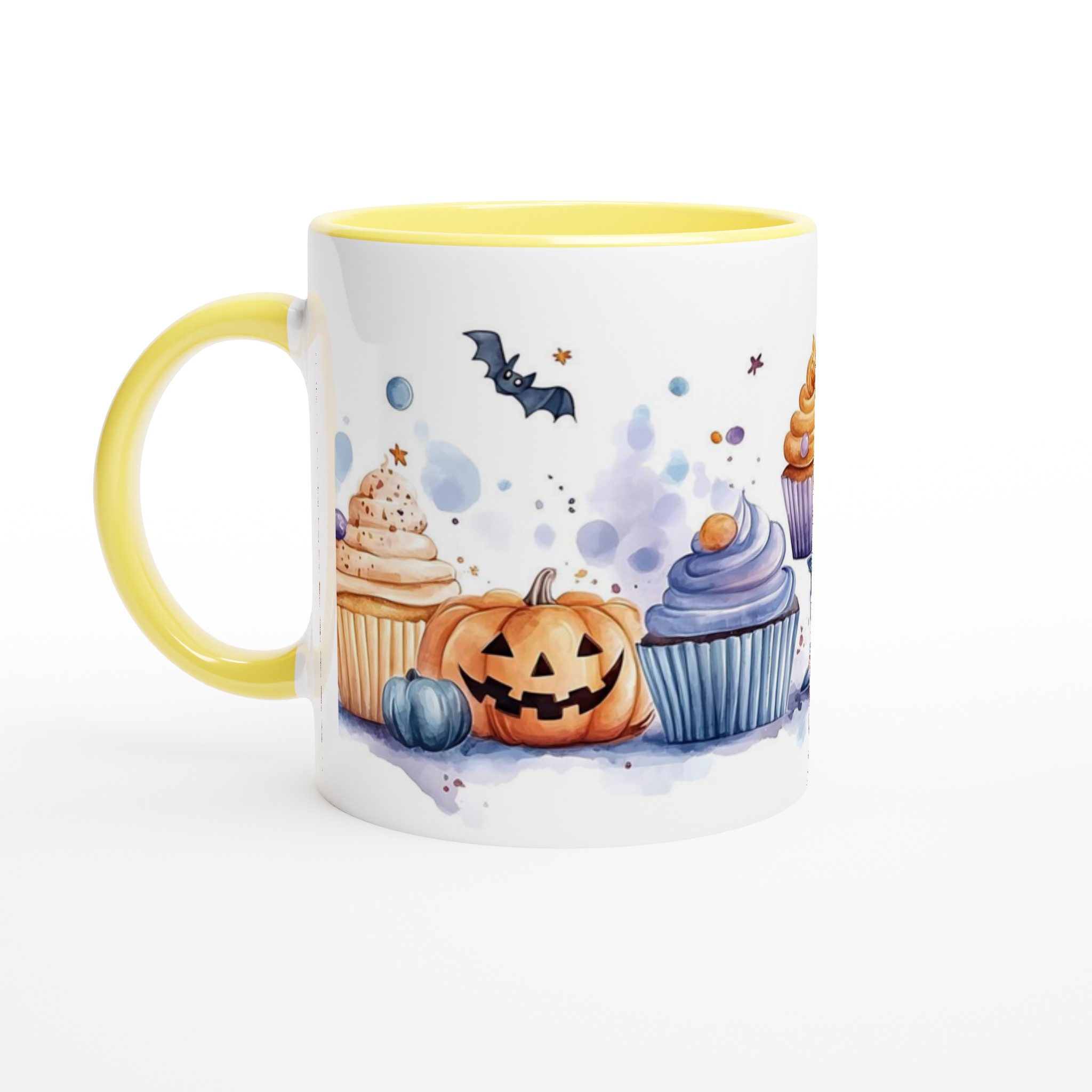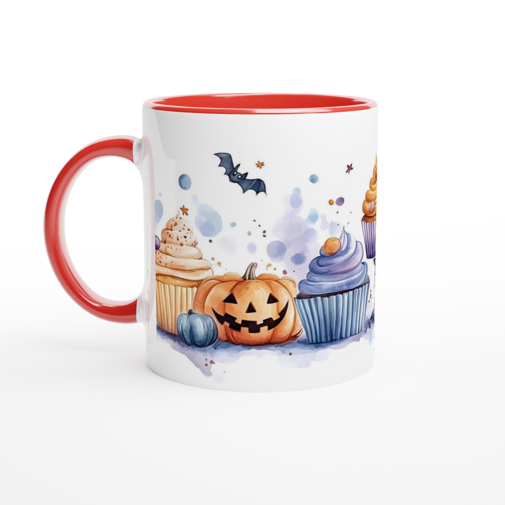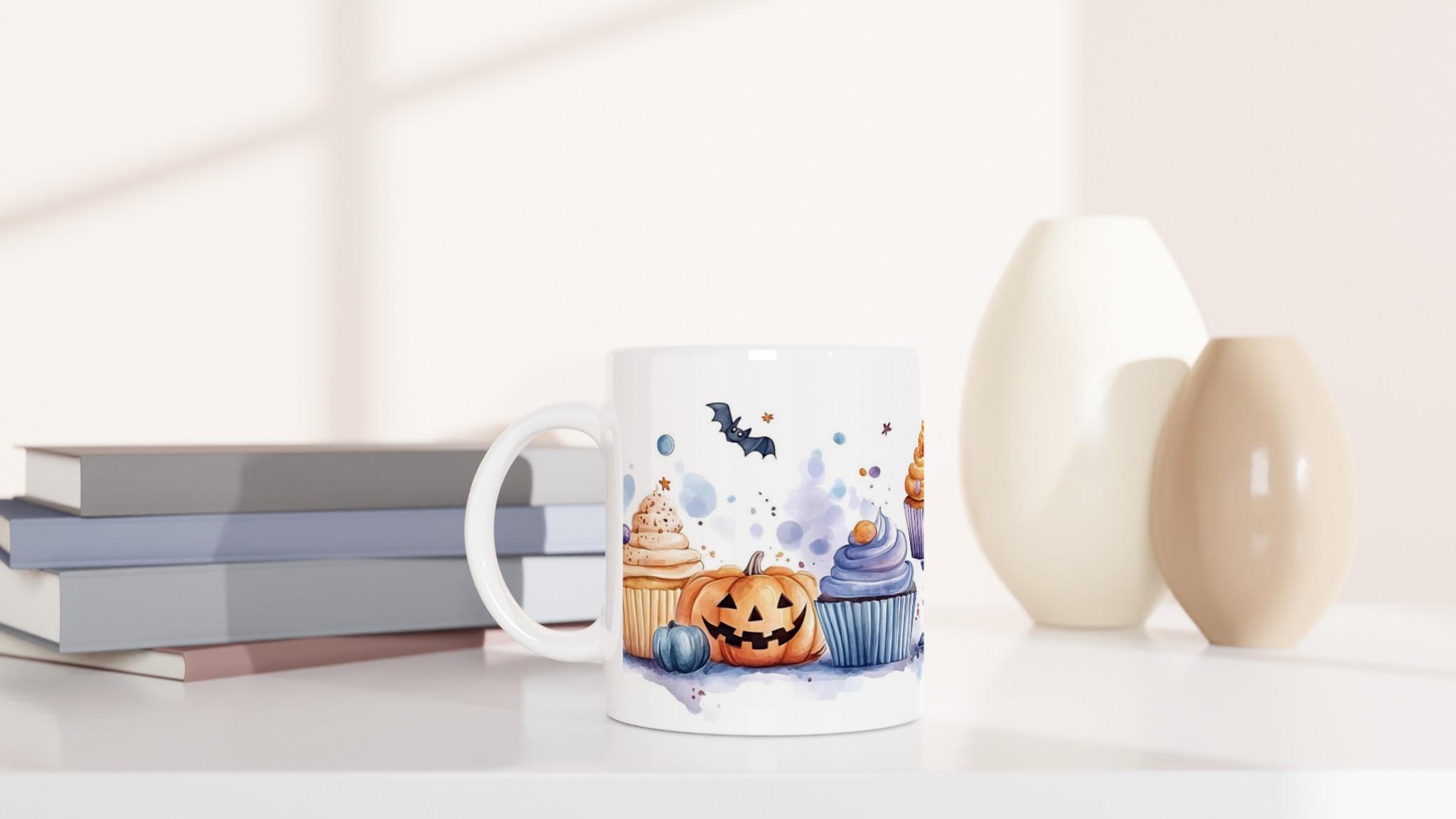 Spooky Sweets Halloween Watercolor Mug – Festive Pumpkin & Cupcake Design