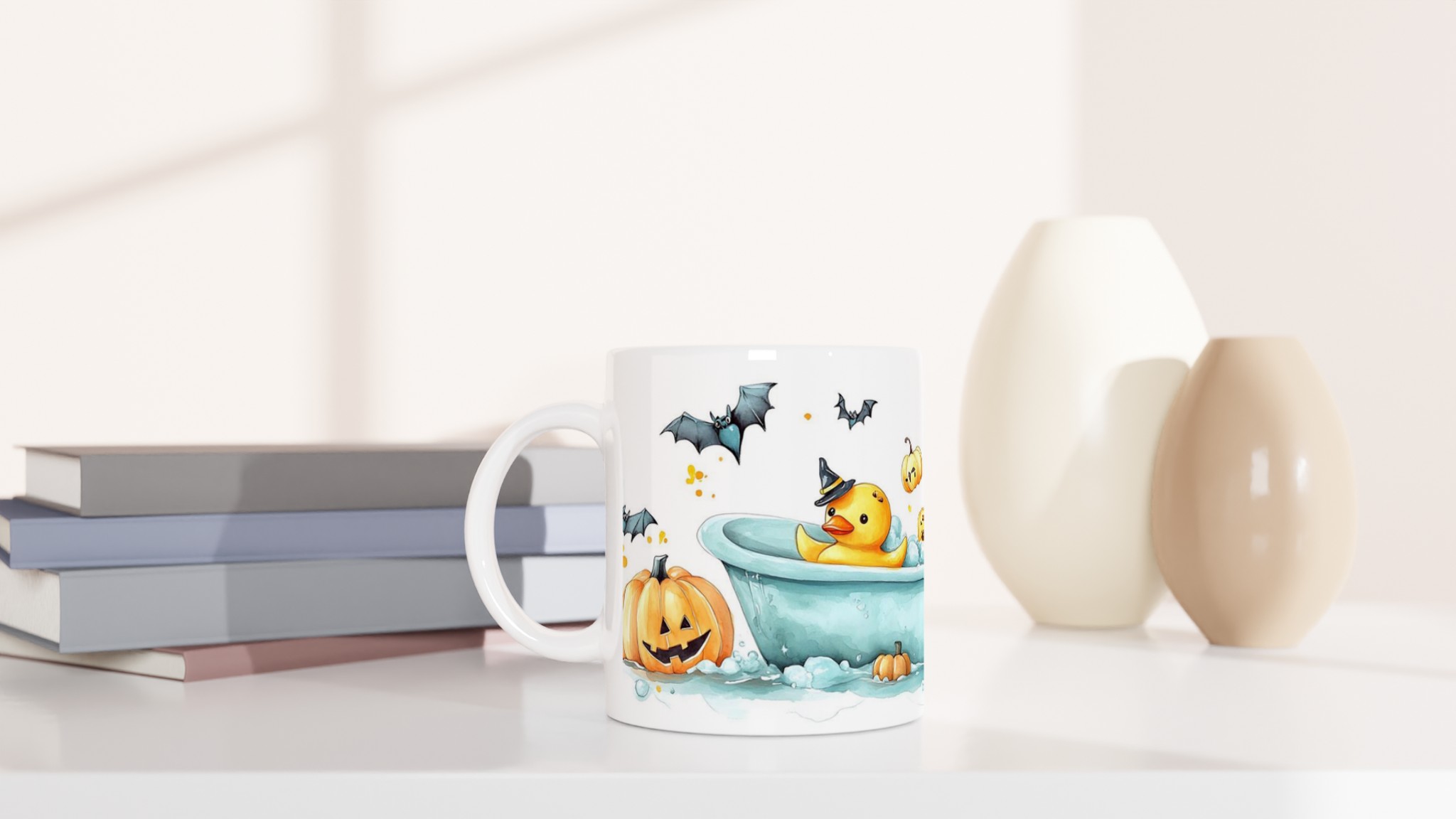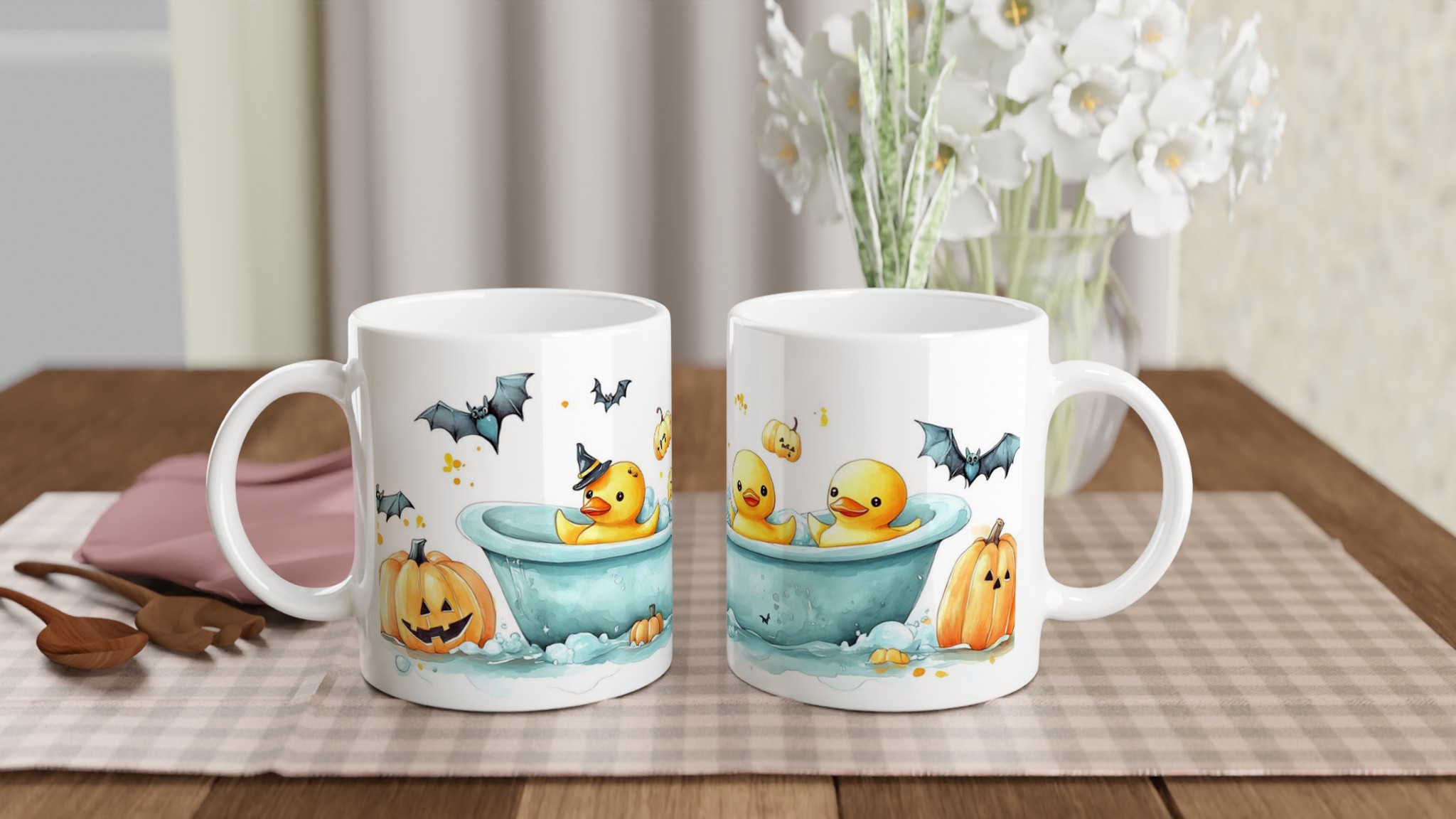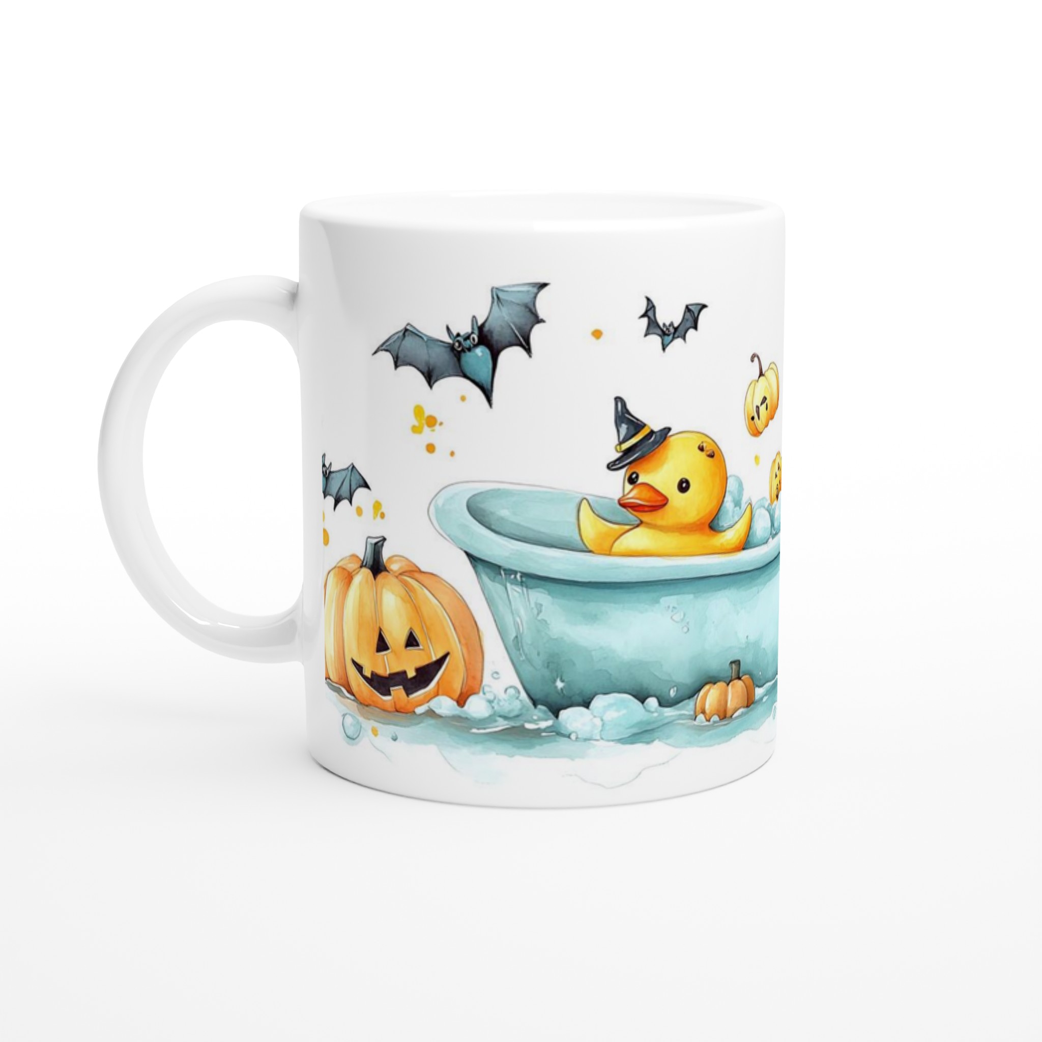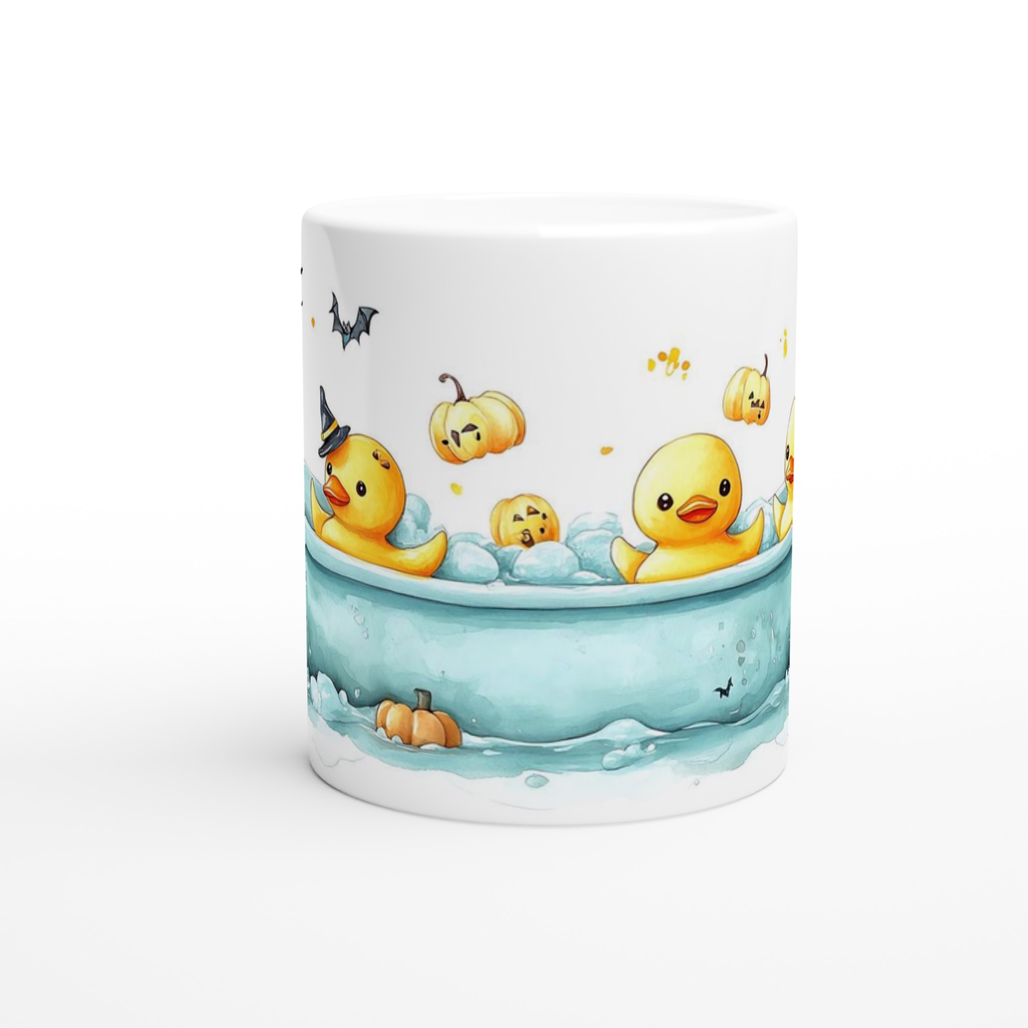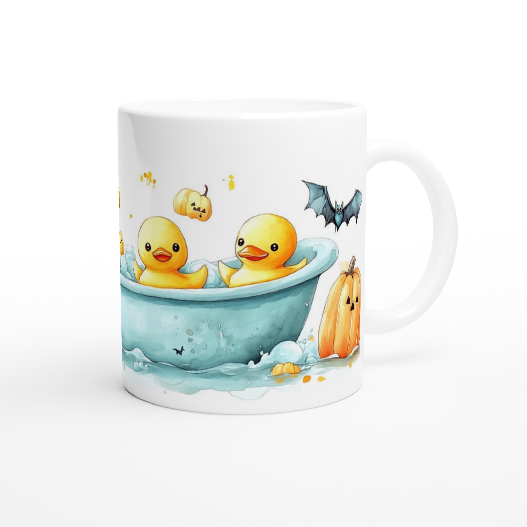 Spooky-Cute Ducklings & Bats Halloween 11oz Ceramic Mug – Choose Your Color!