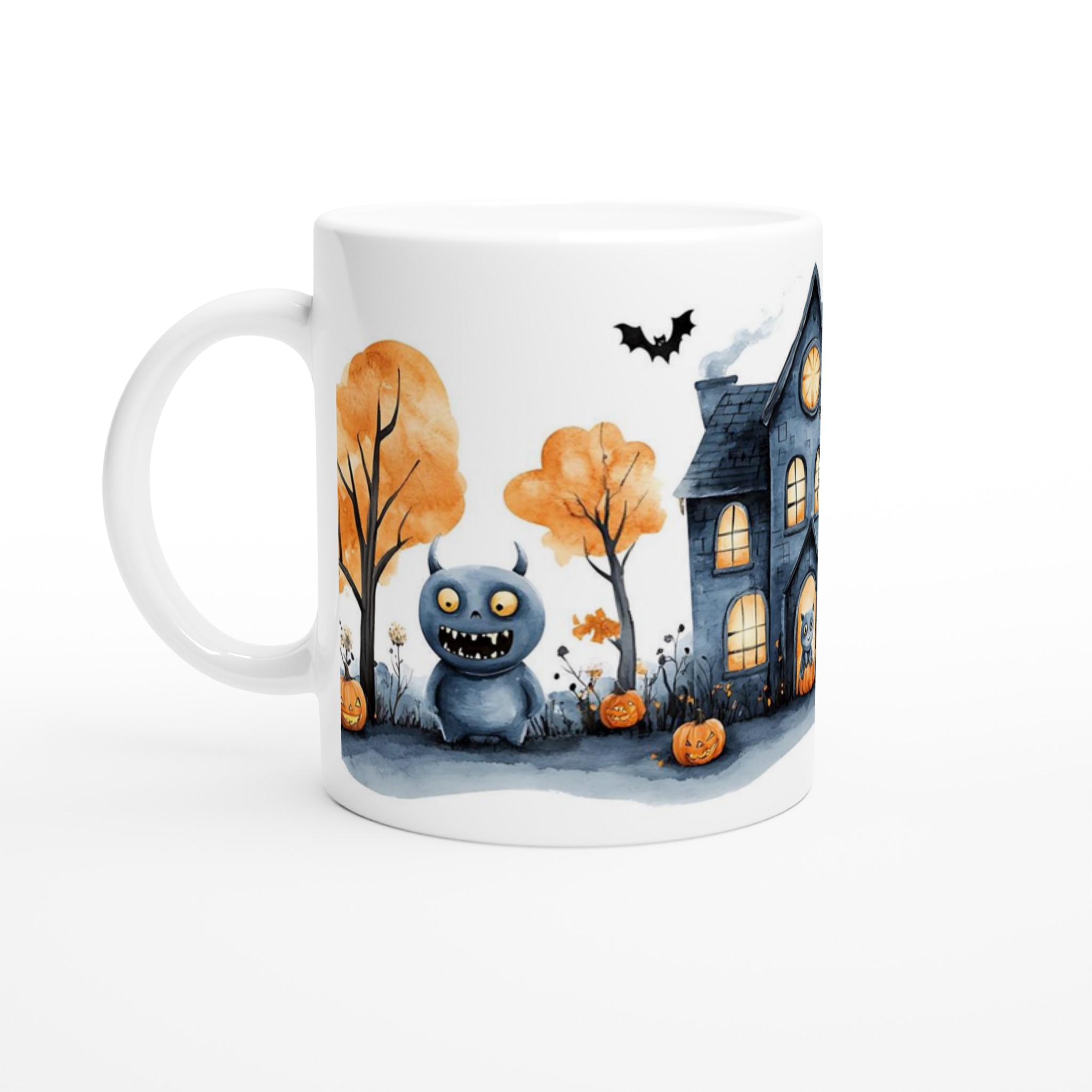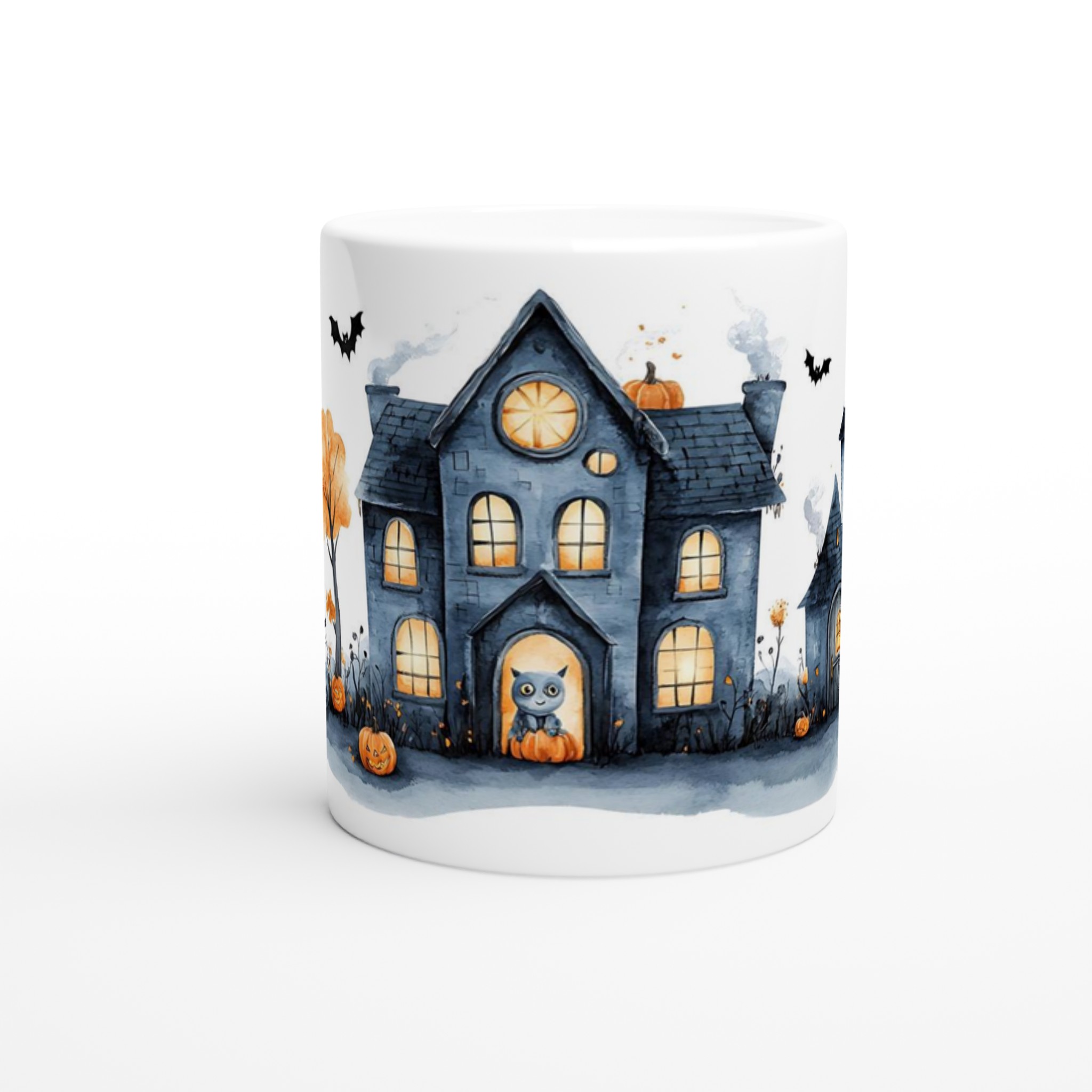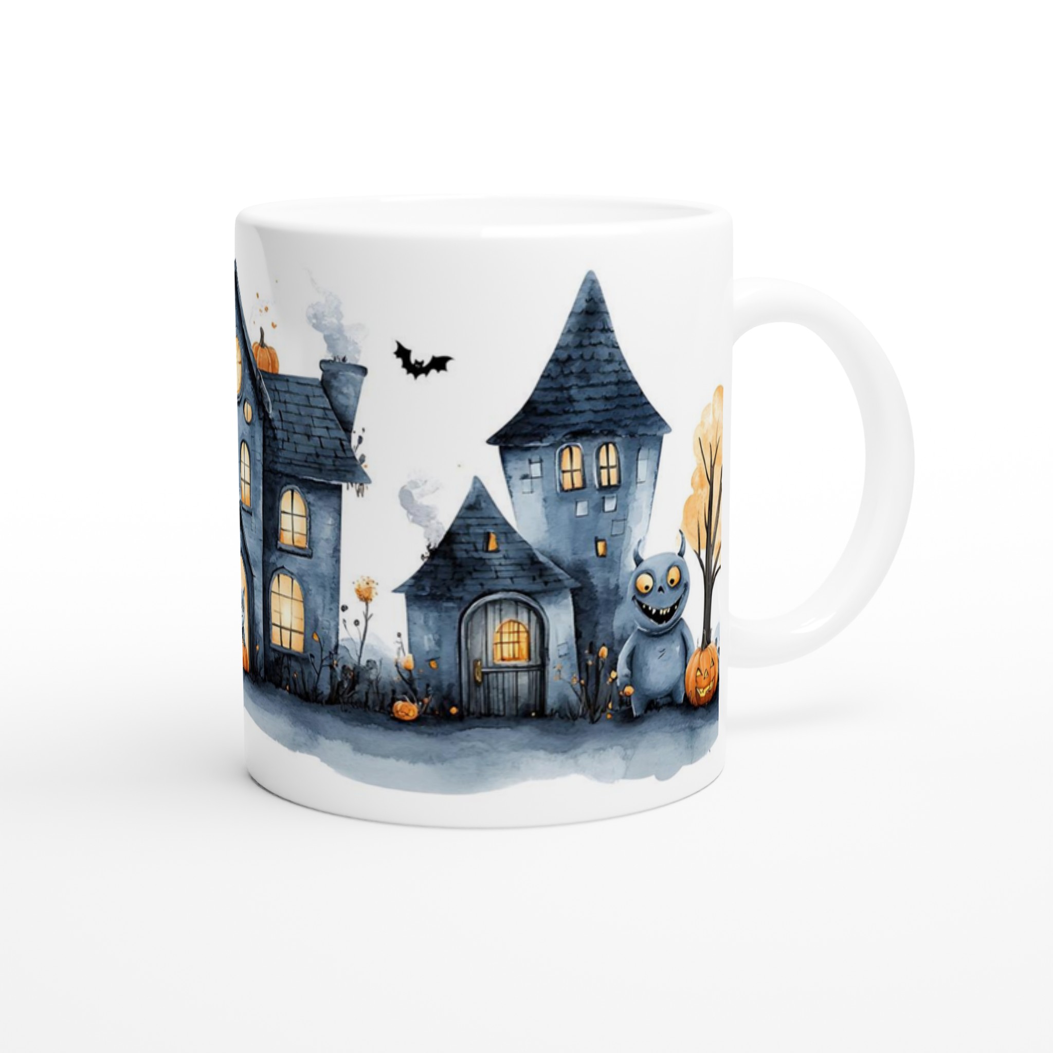 Spooky Watercolor Halloween Haunted House 11oz Ceramic Mug – Choose Your Color!