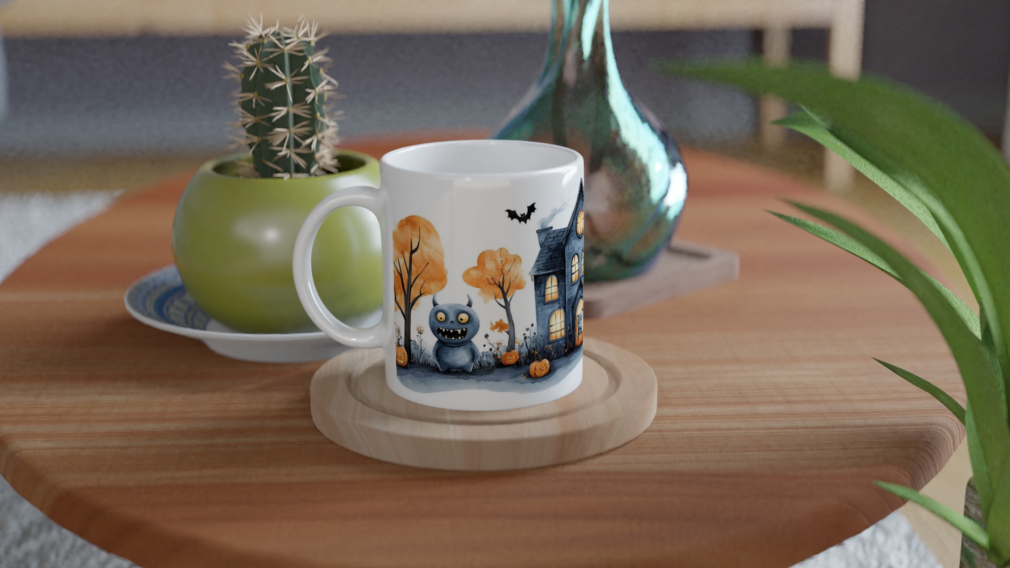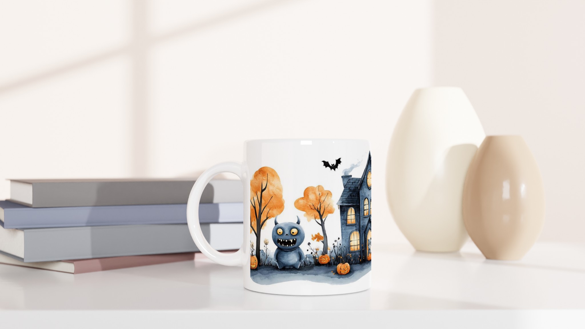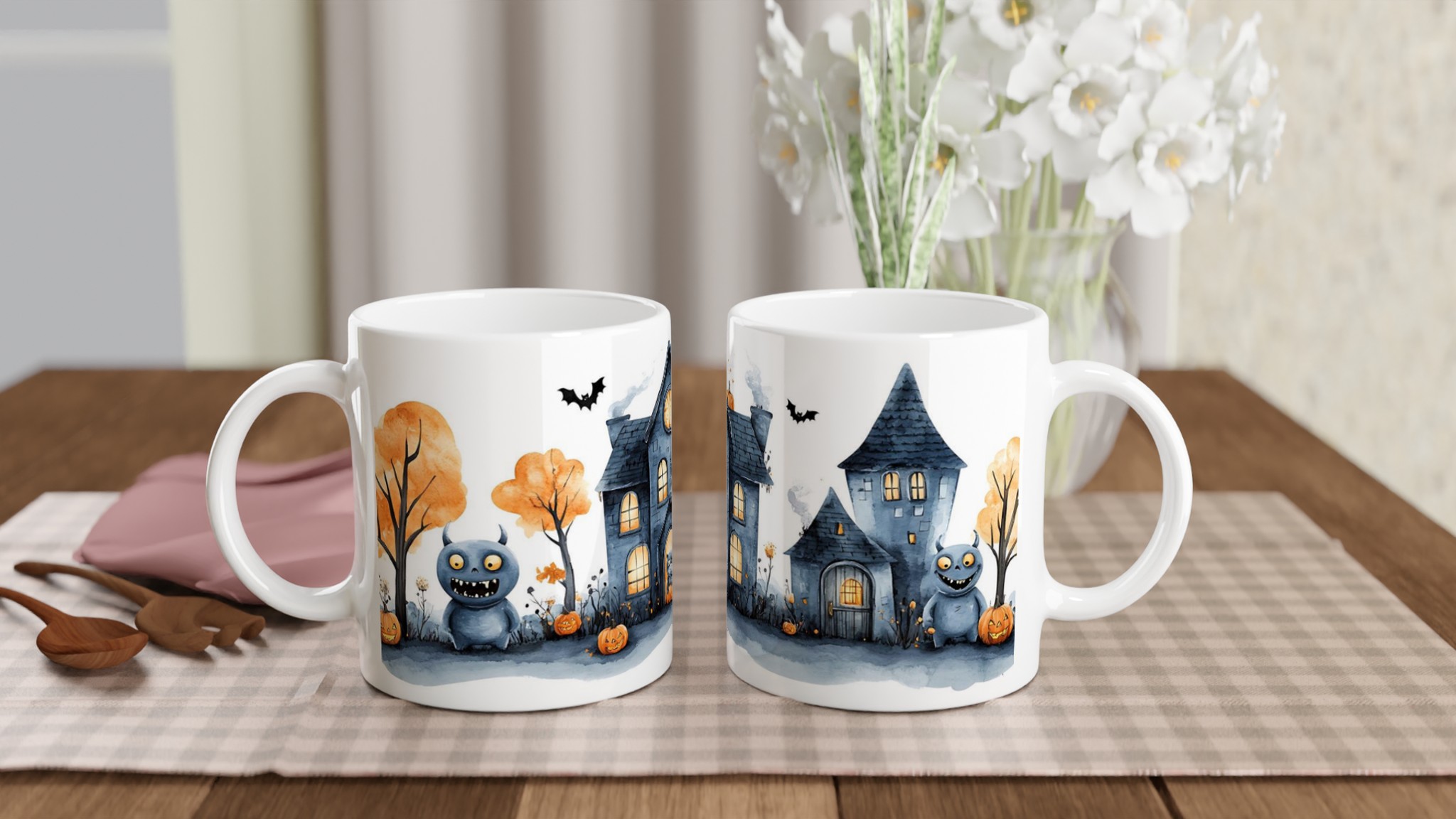 Spooky Watercolor Halloween Haunted House 11oz Ceramic Mug – Choose Your Color!