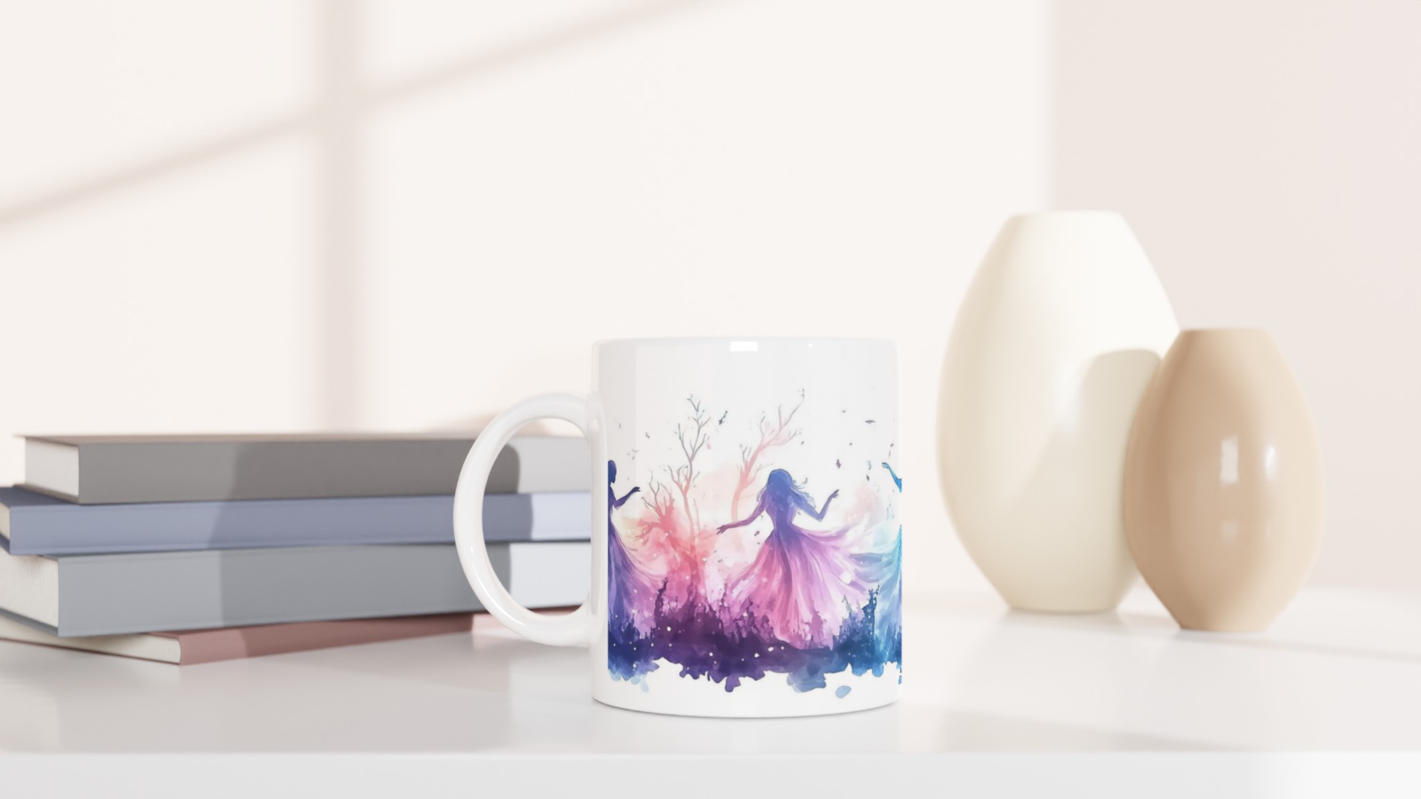 Enchanting Watercolor Dance White 11oz Ceramic Mug – Choose Your Dreamy Hue