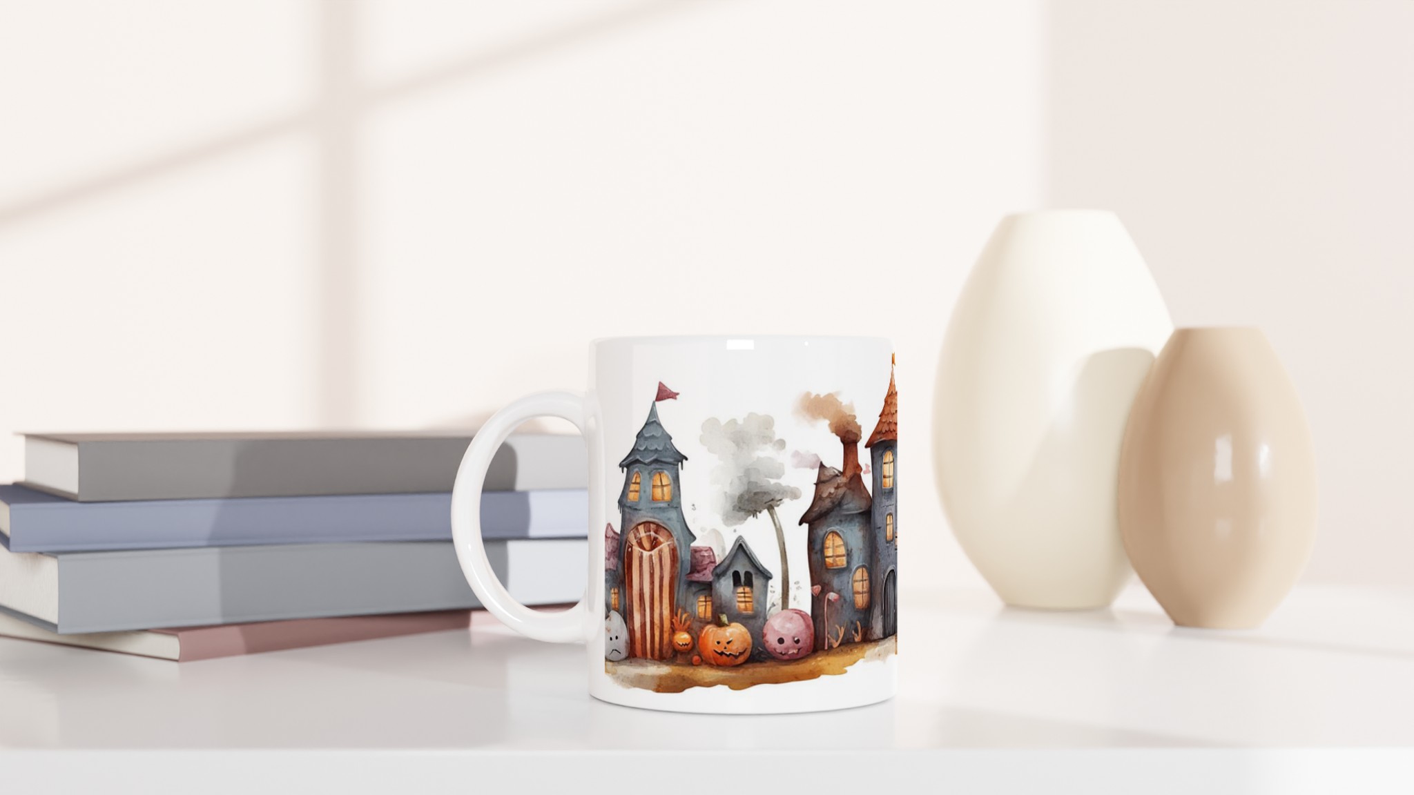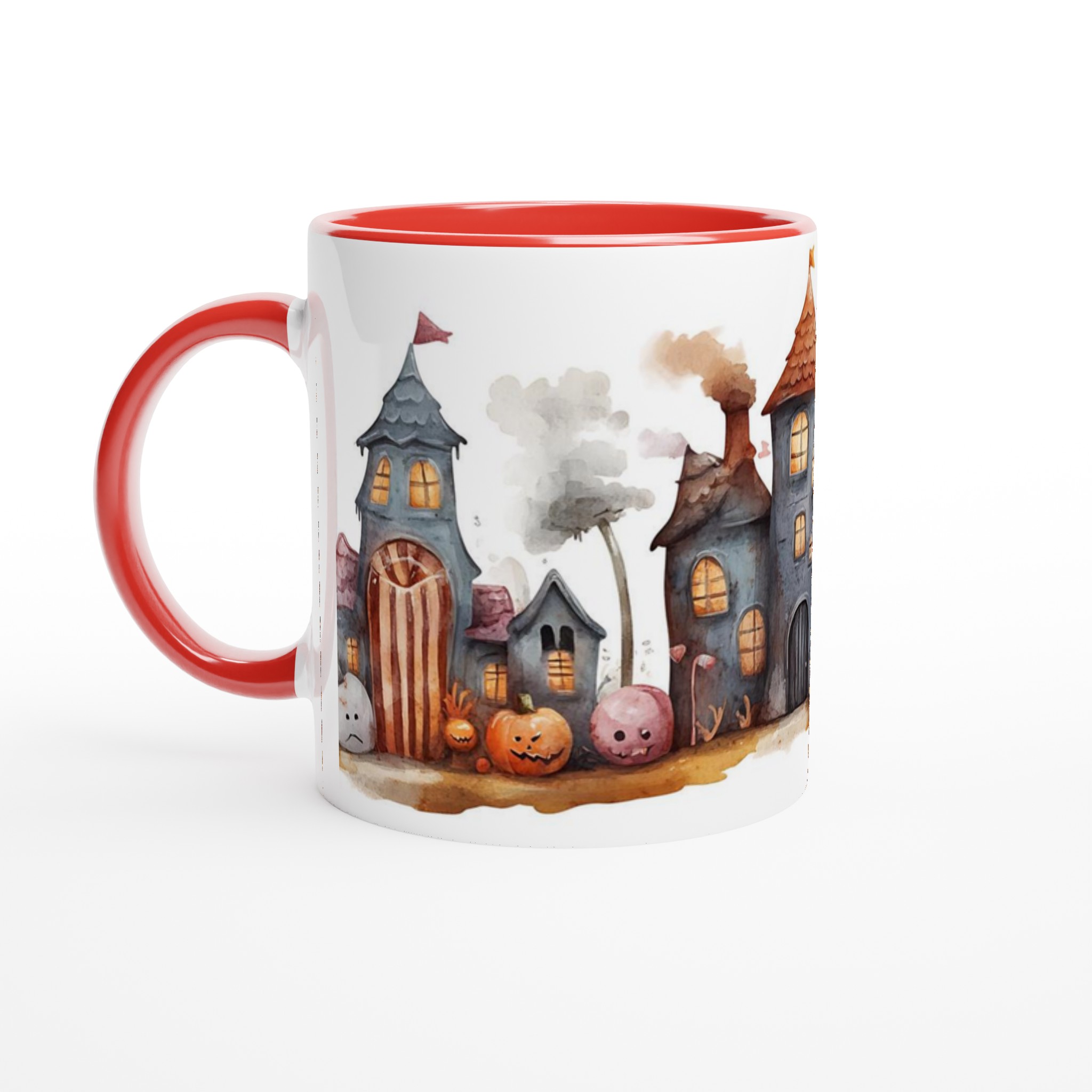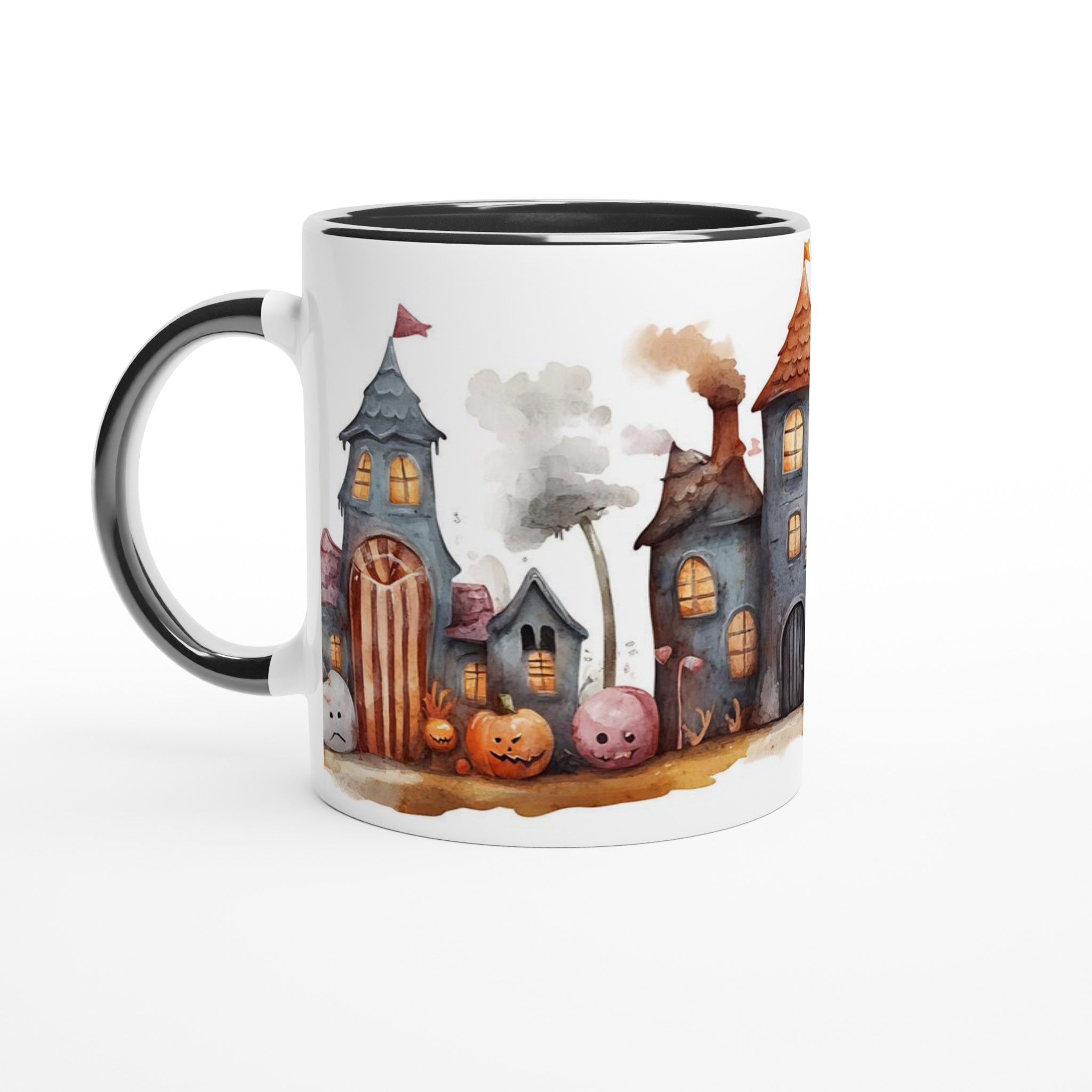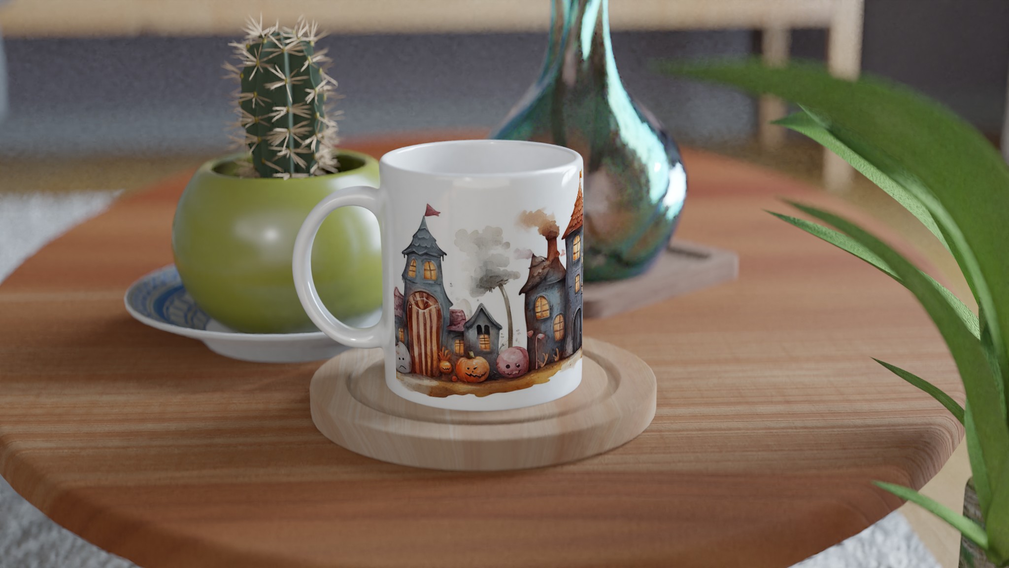 Spooky Watercolor Halloween Haunted Village 11oz Ceramic Mug – Choose Your Hue!