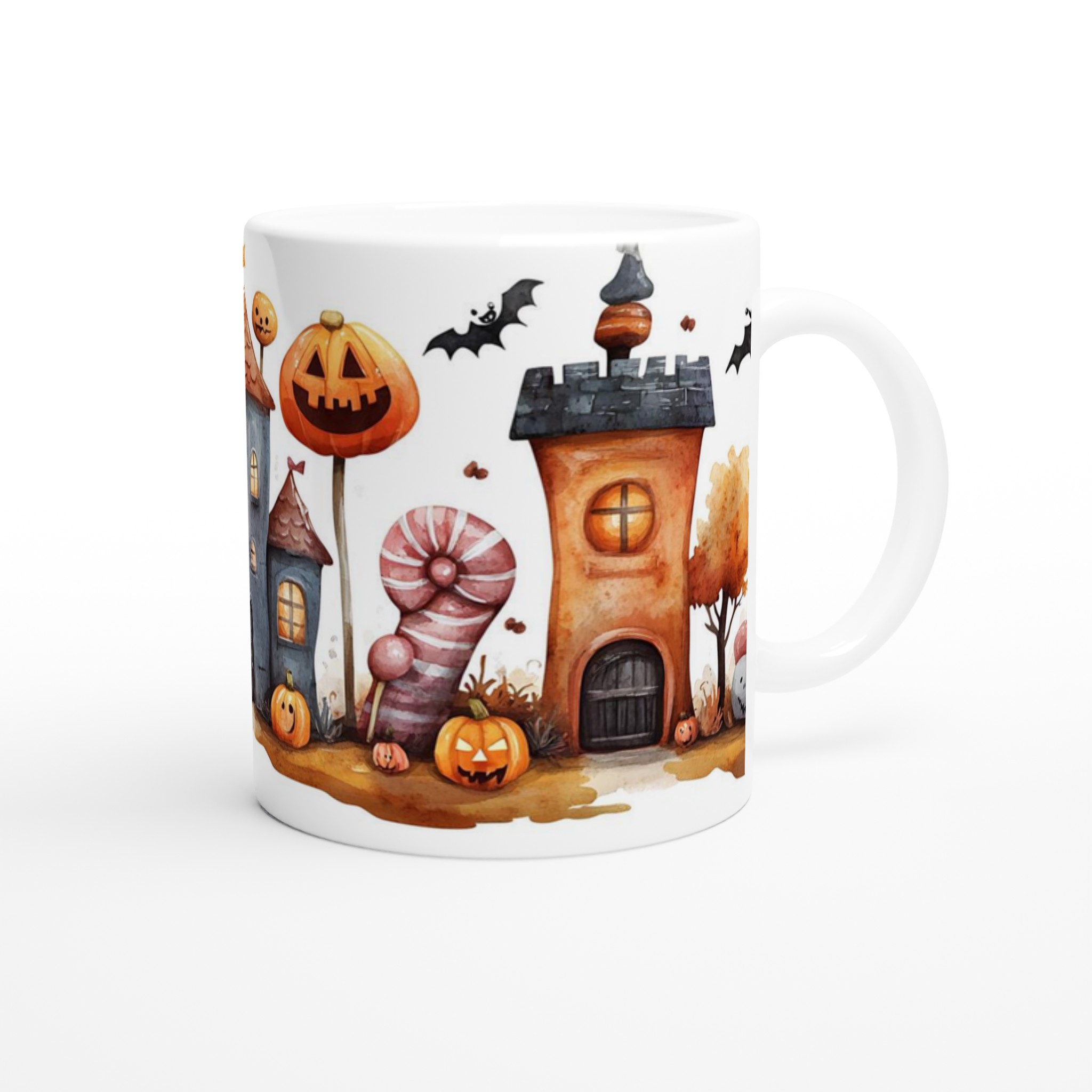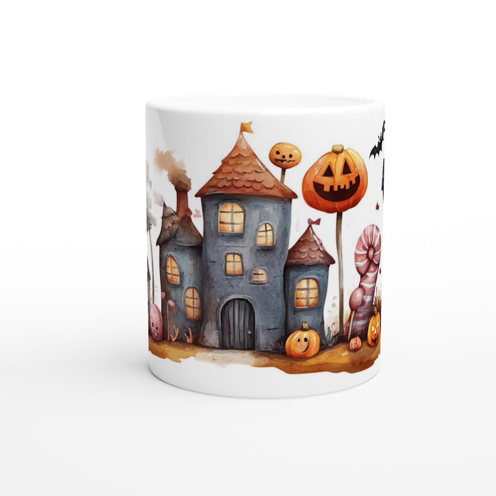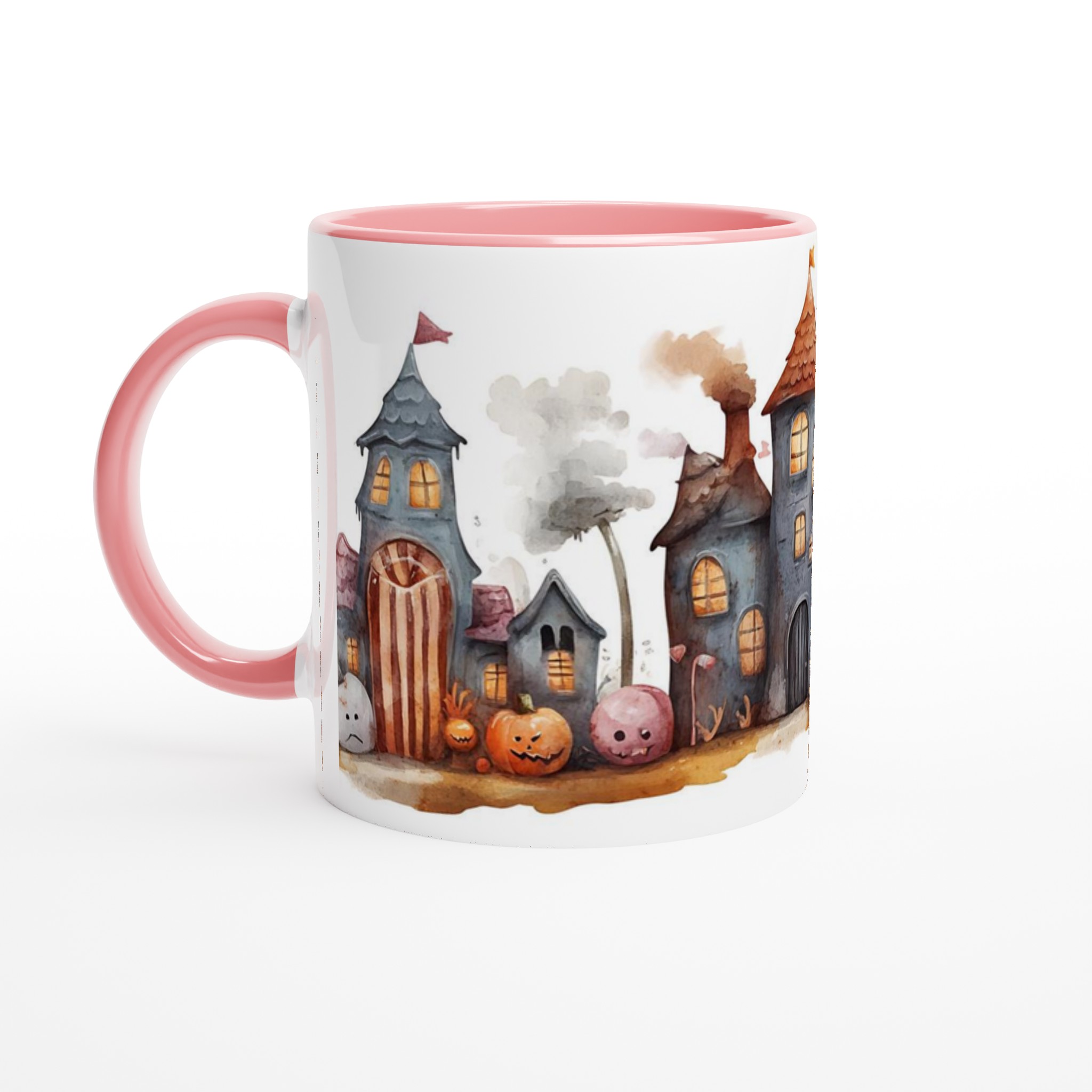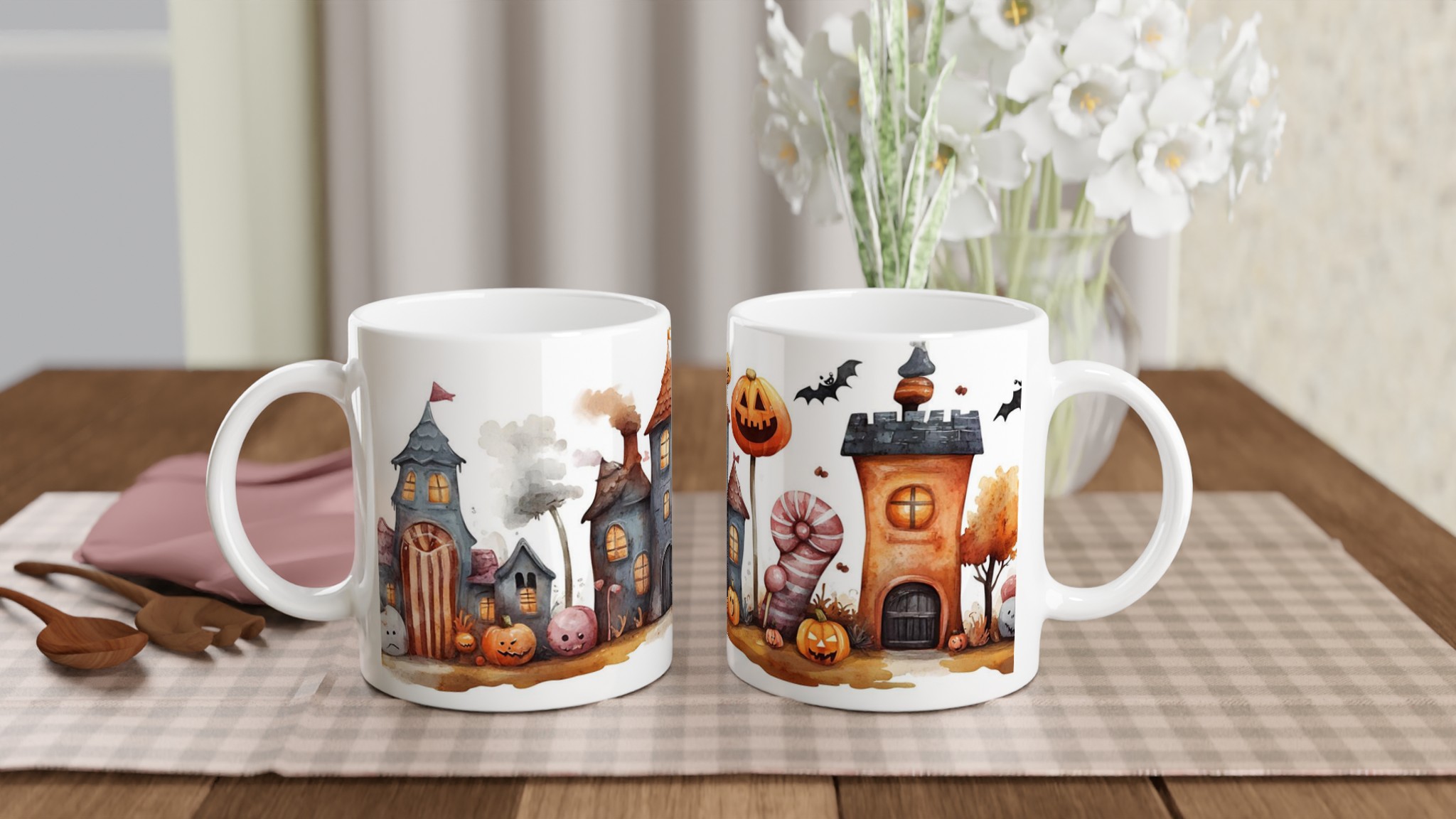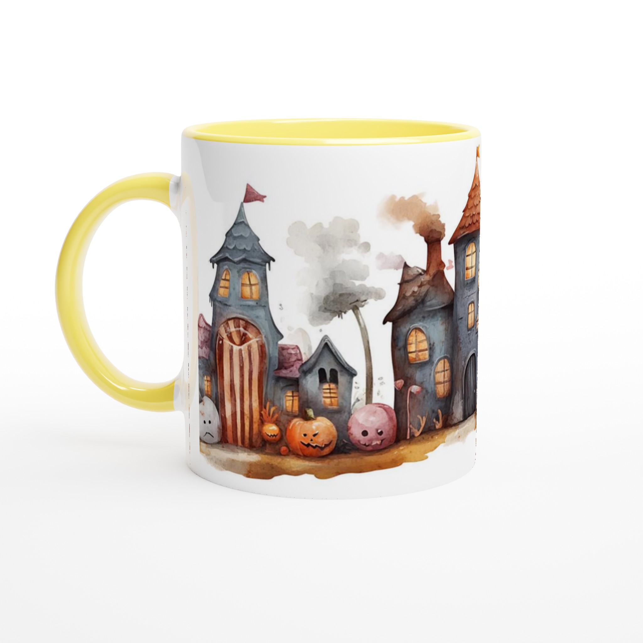 Spooky Watercolor Halloween Haunted Village 11oz Ceramic Mug – Choose Your Hue!