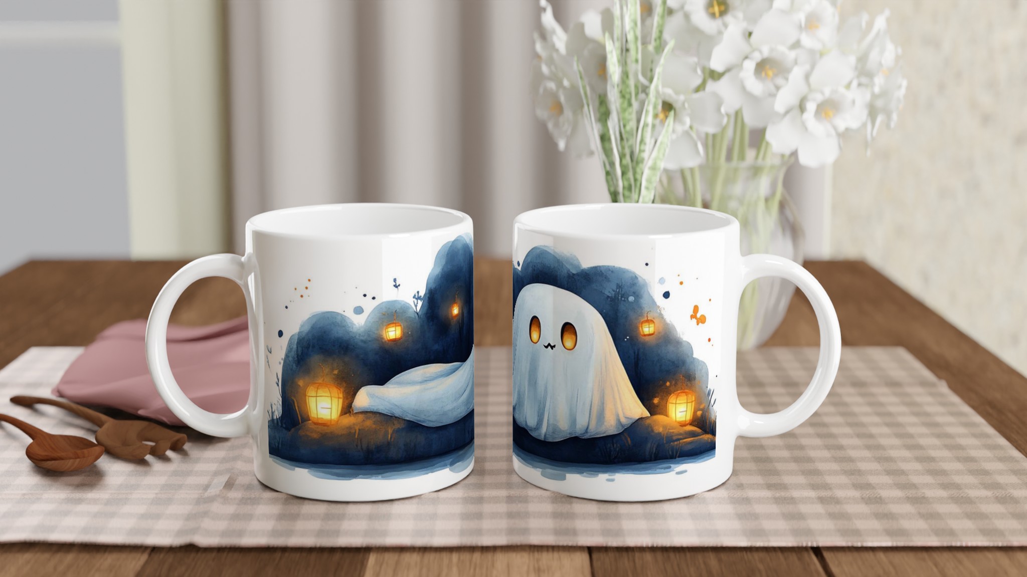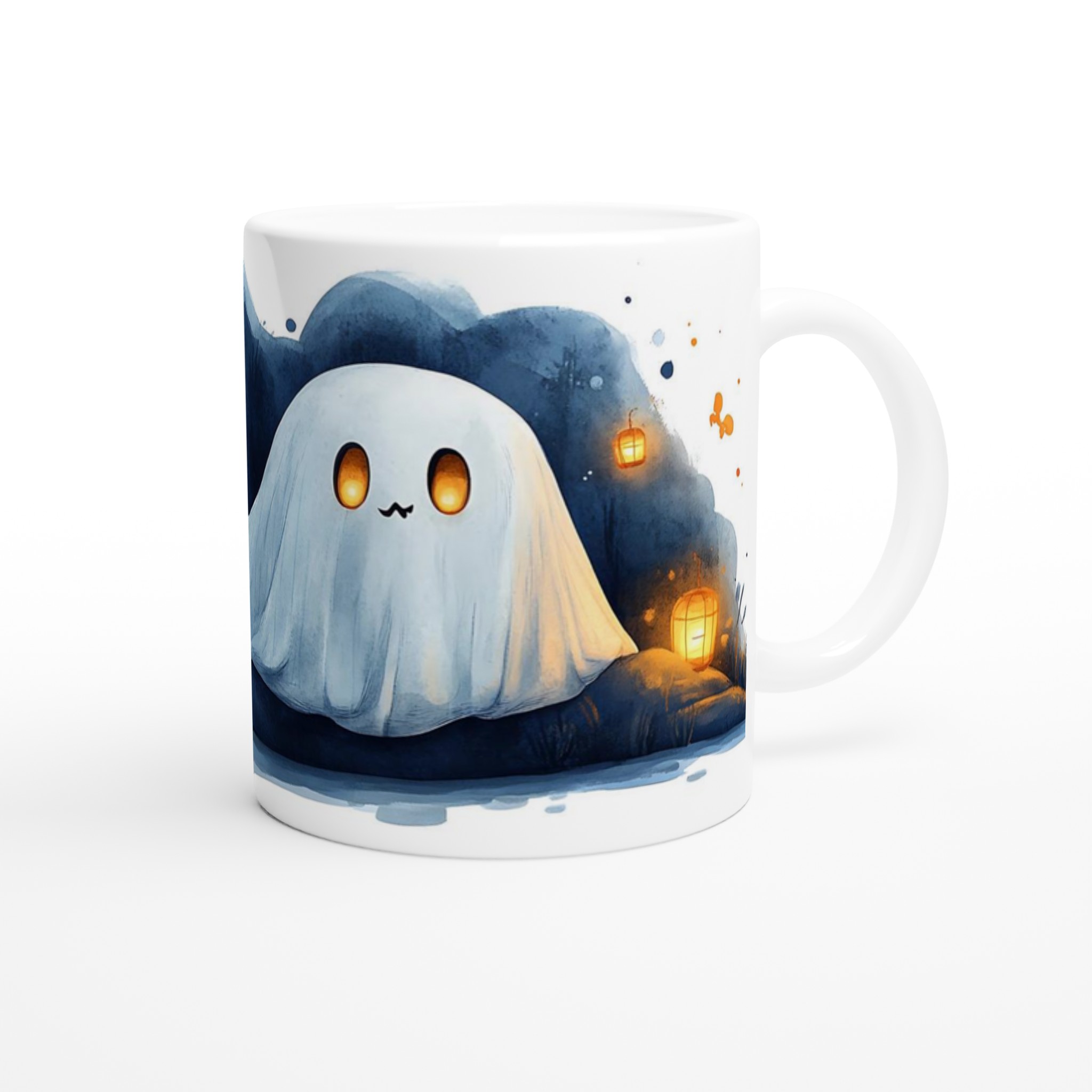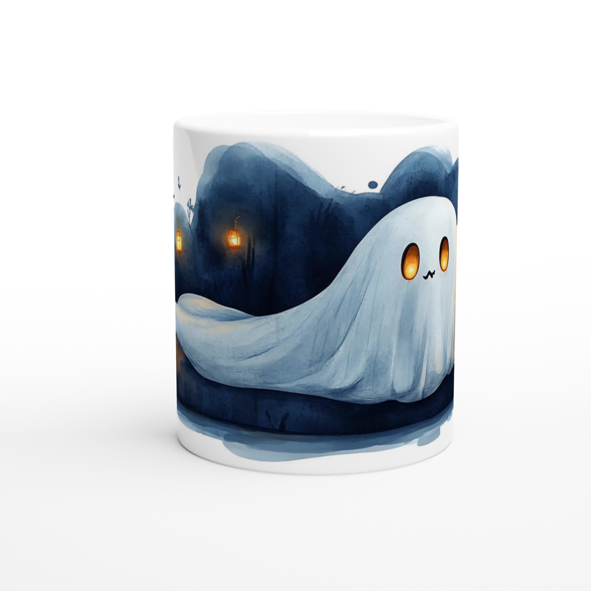 Charming Little Ghost Watercolor 11oz Ceramic Mug – Perfect for Spooky Season & Everyday Whimsy!