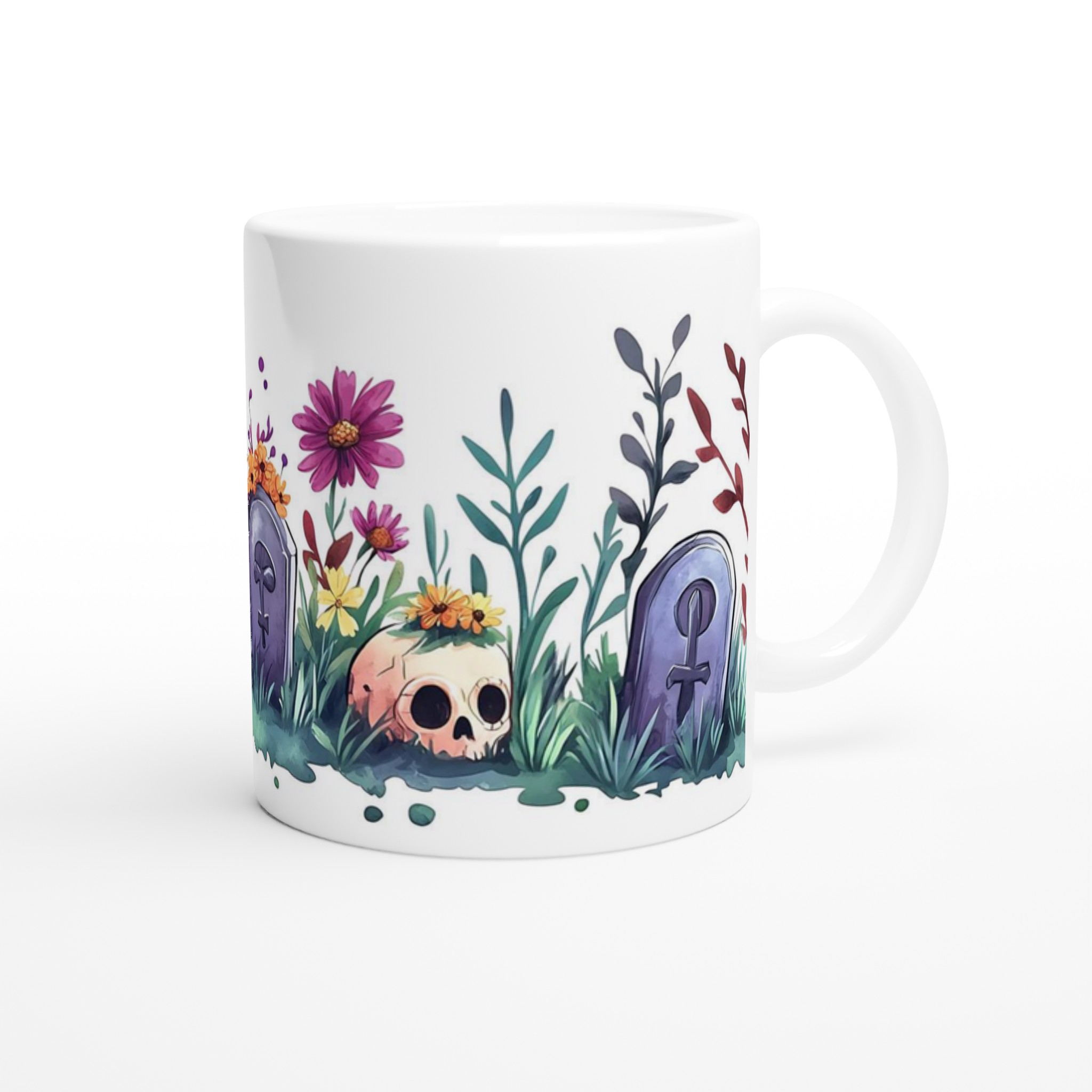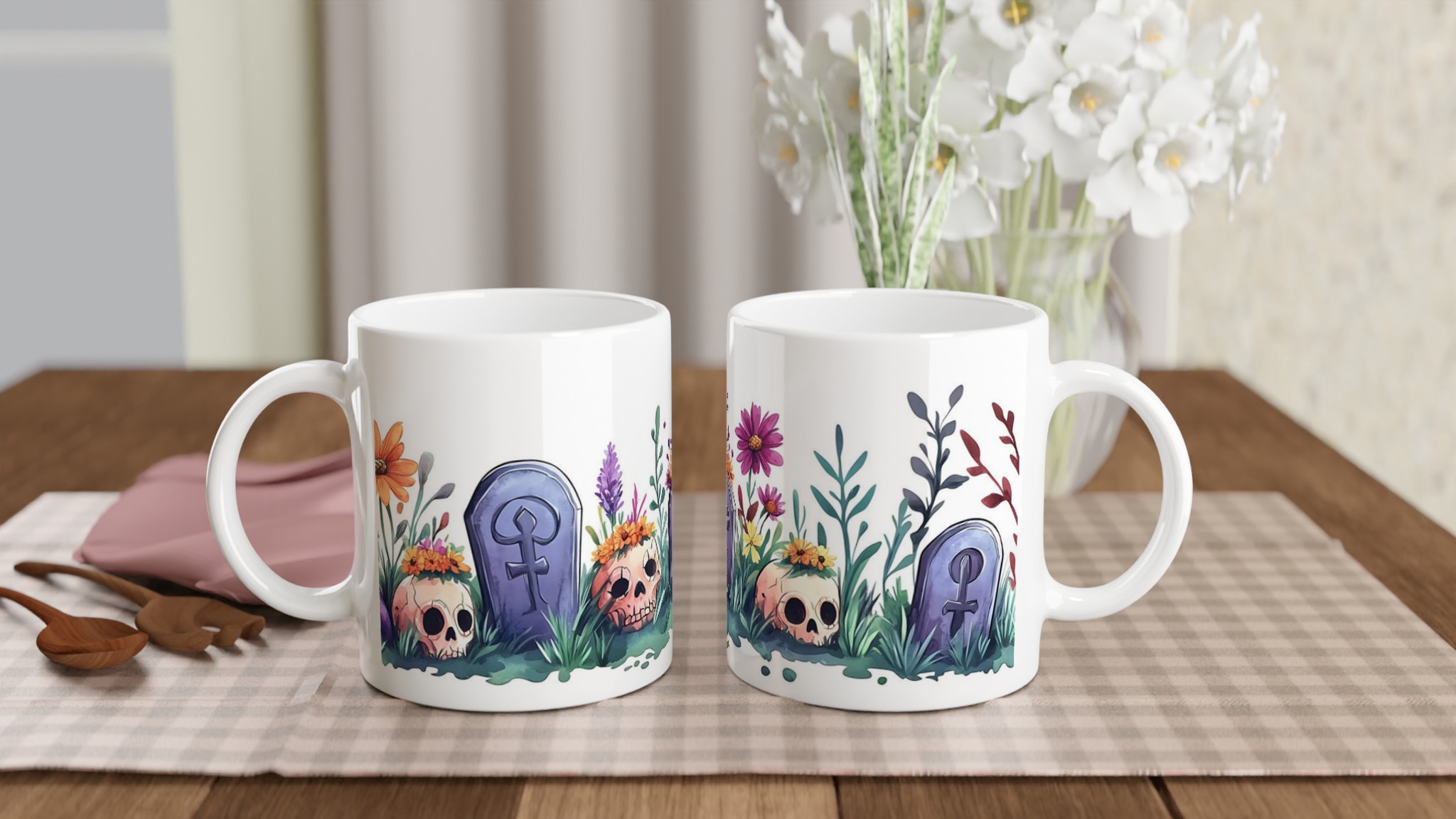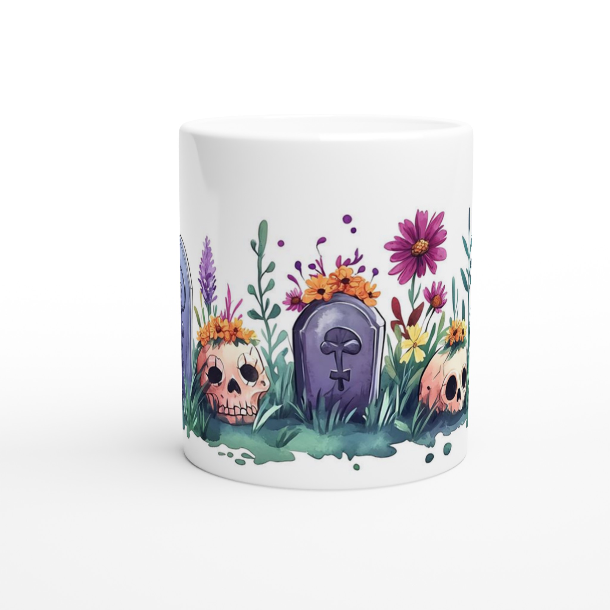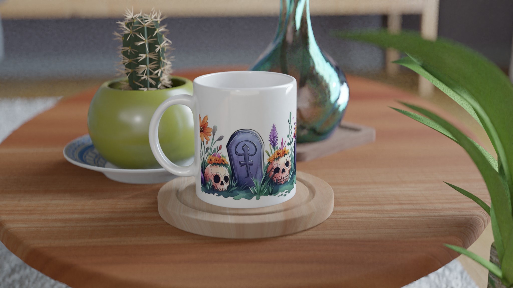 Gothic Garden Skulls & Tombstones 11oz Ceramic Mug – Choose Your Hue!