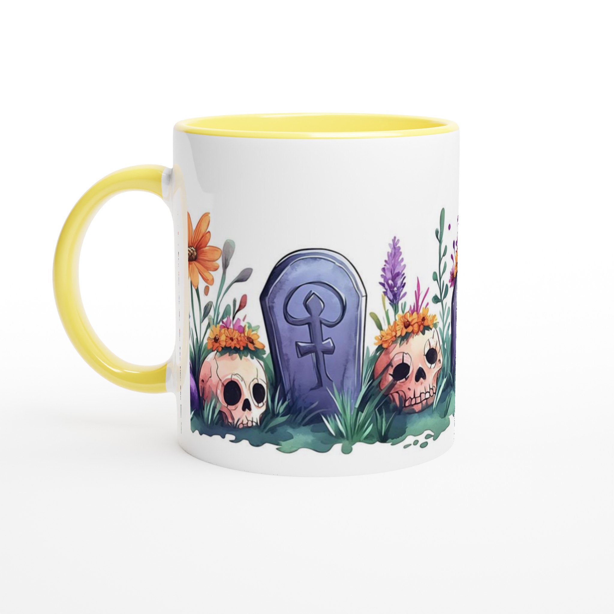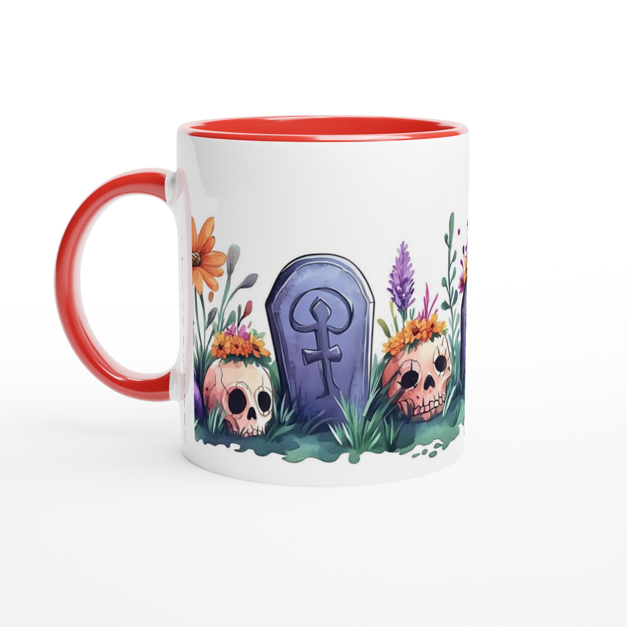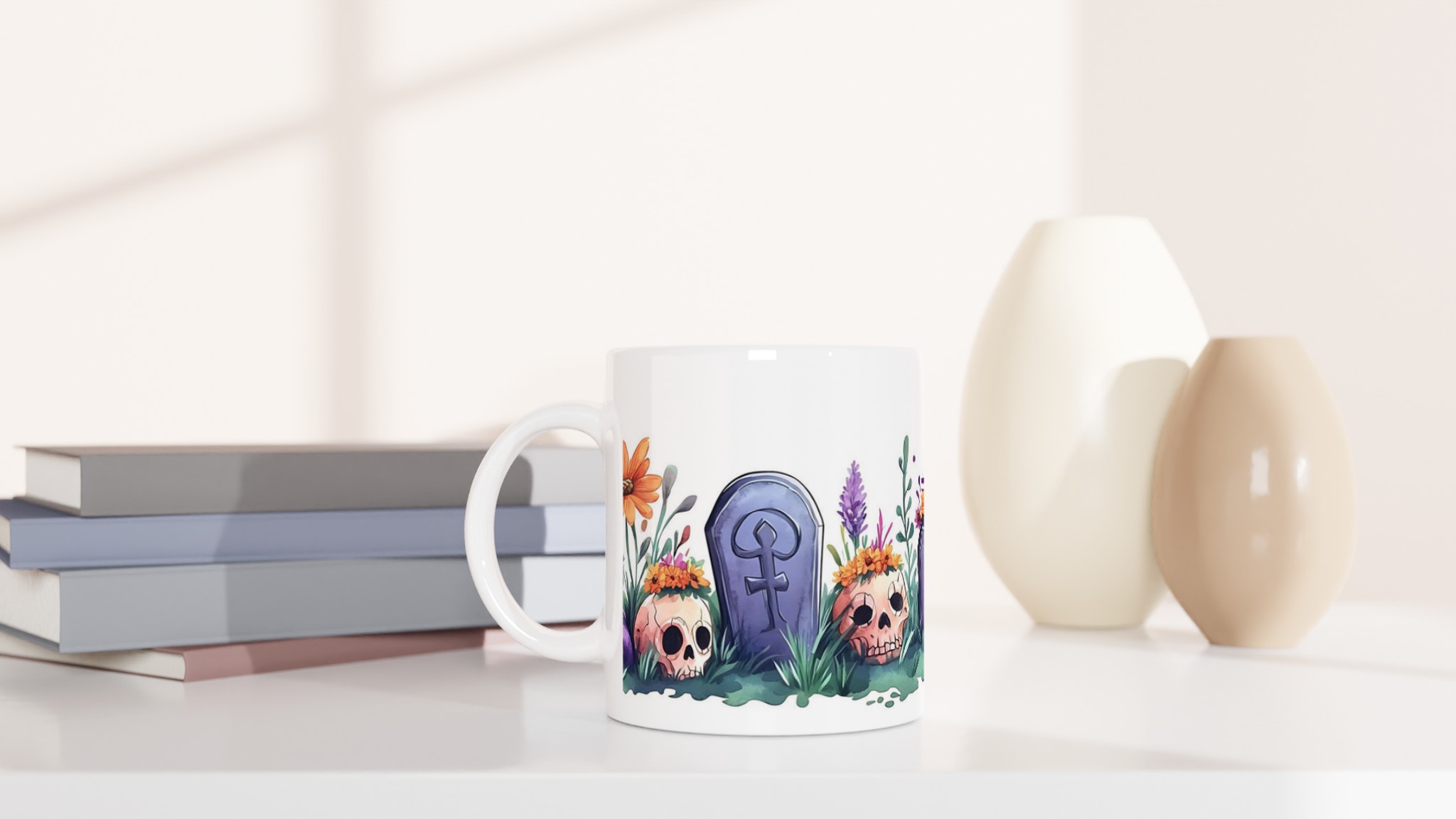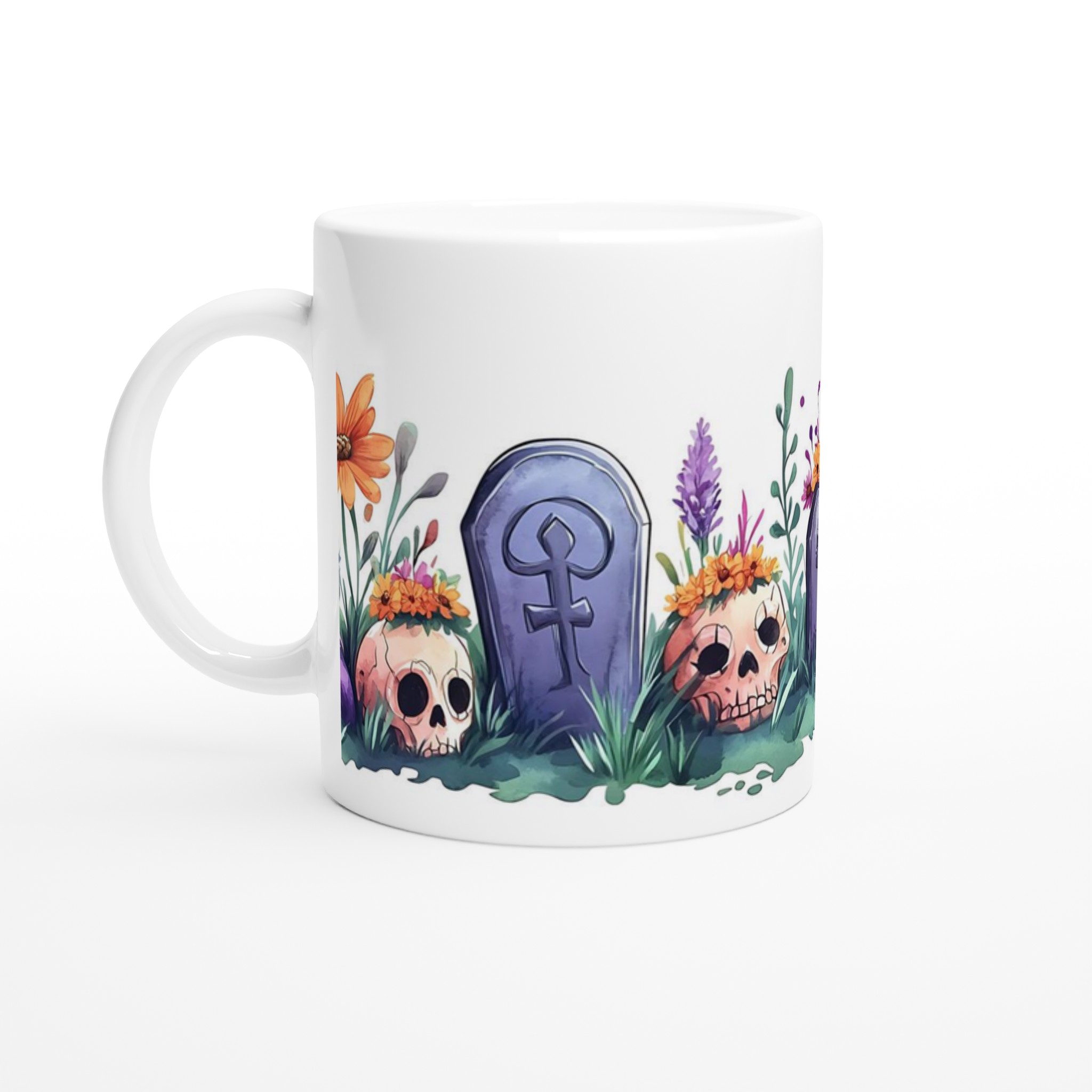 Gothic Garden Skulls & Tombstones 11oz Ceramic Mug – Choose Your Hue!