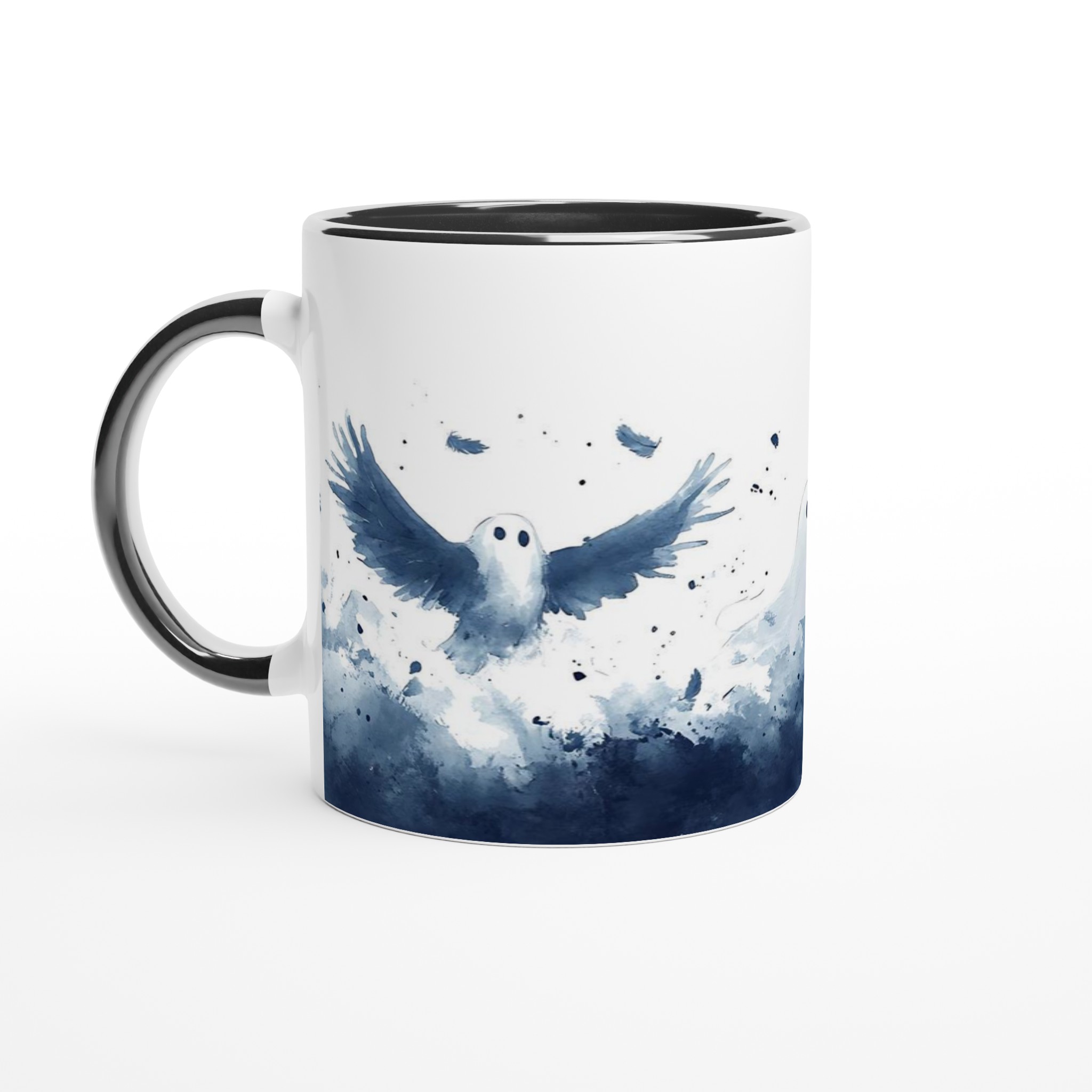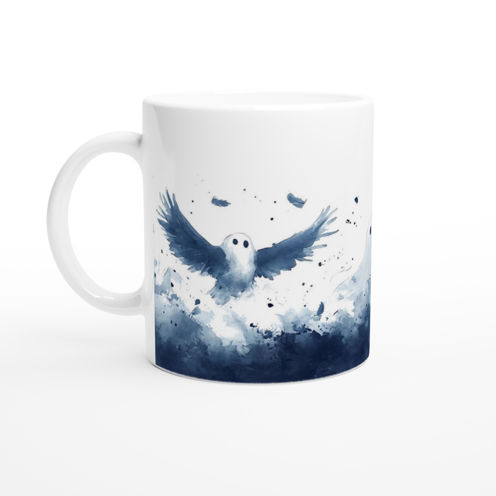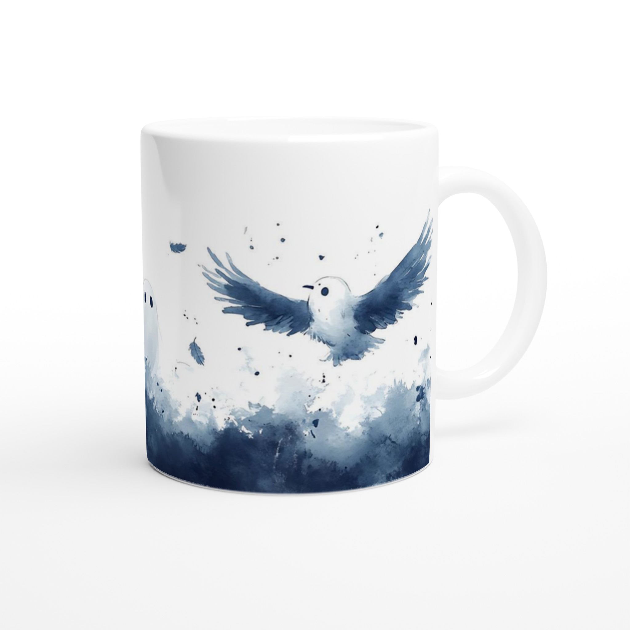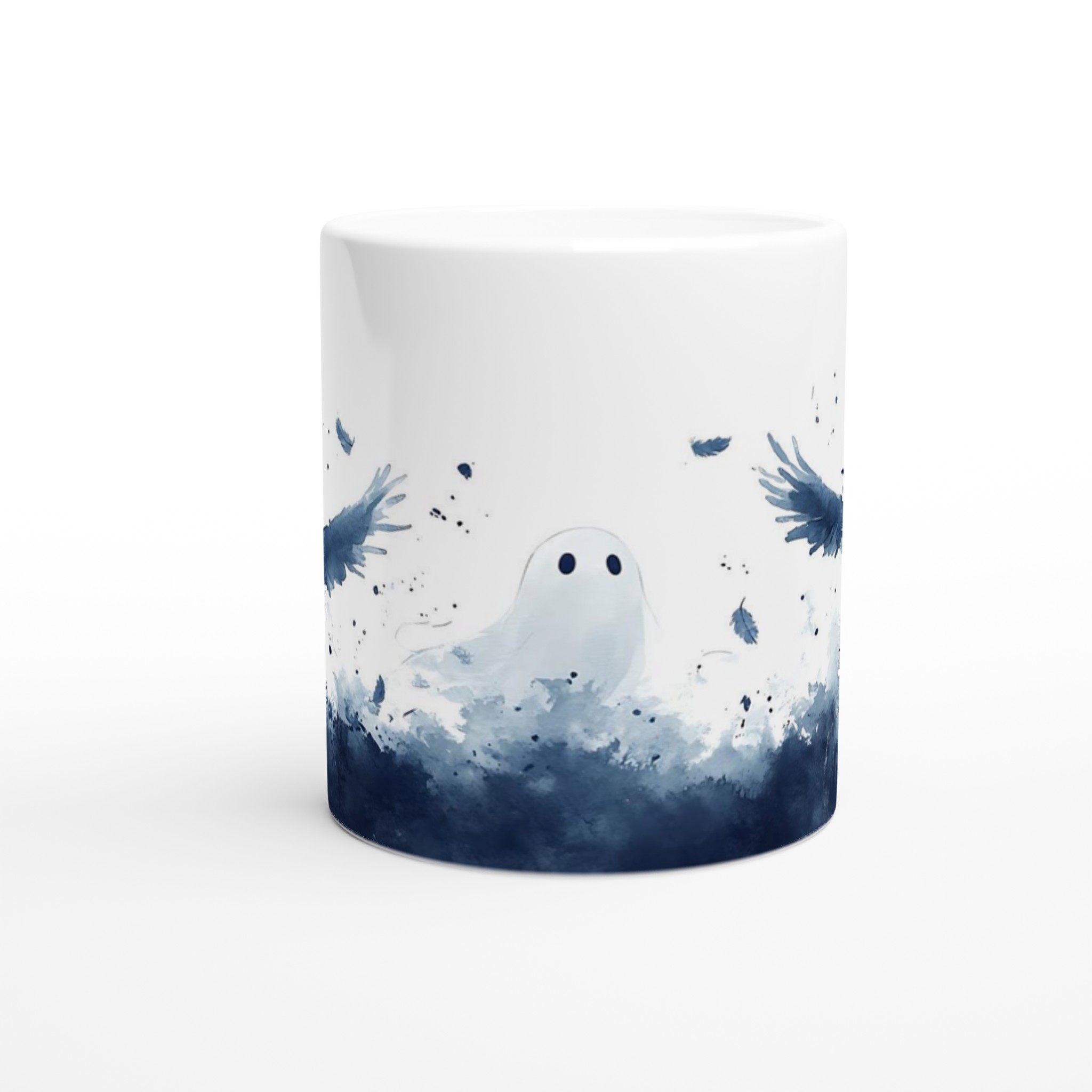 Enchanted Spirits White 11oz Ceramic Mug – Whimsical Ghost & Raven Watercolor Design for Your Daily Brew