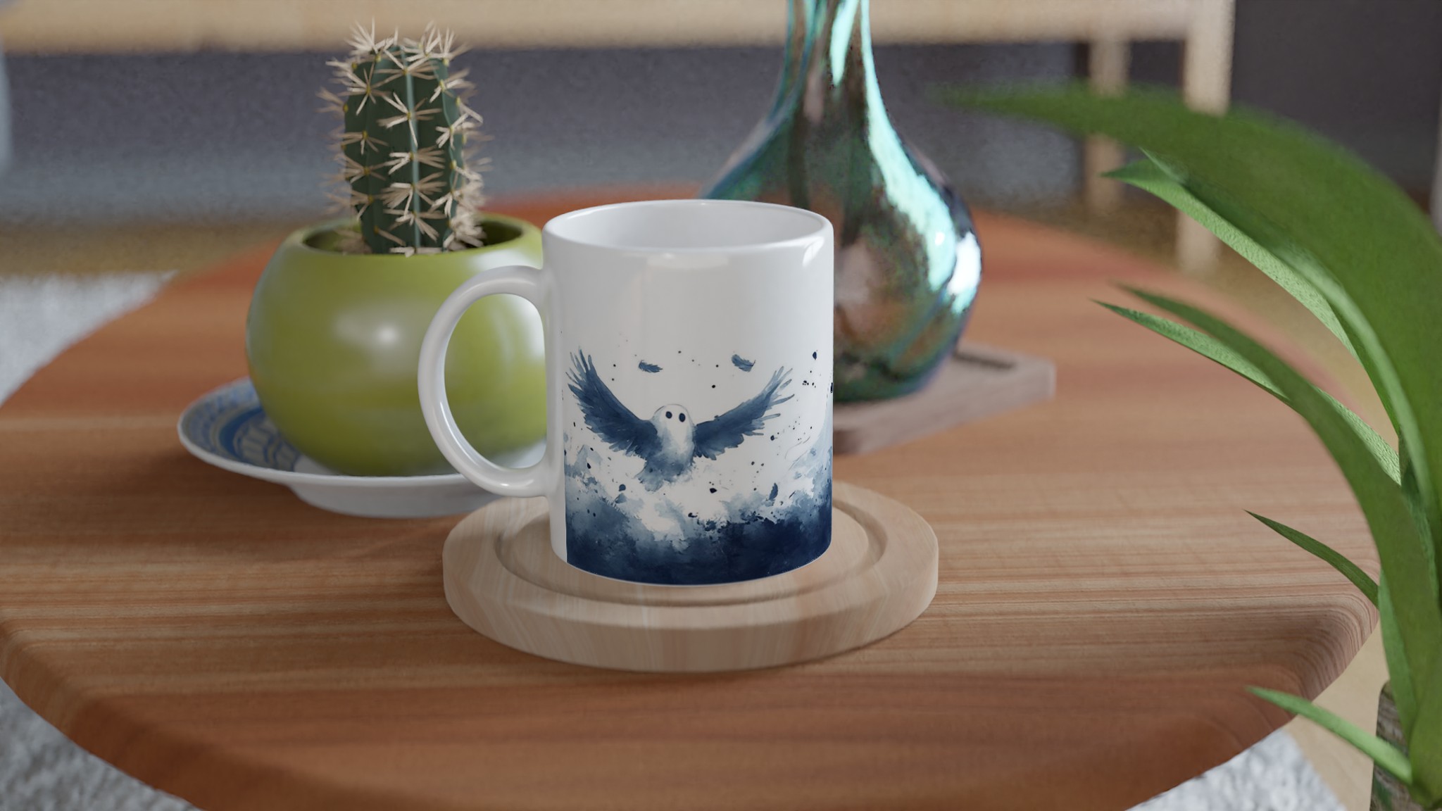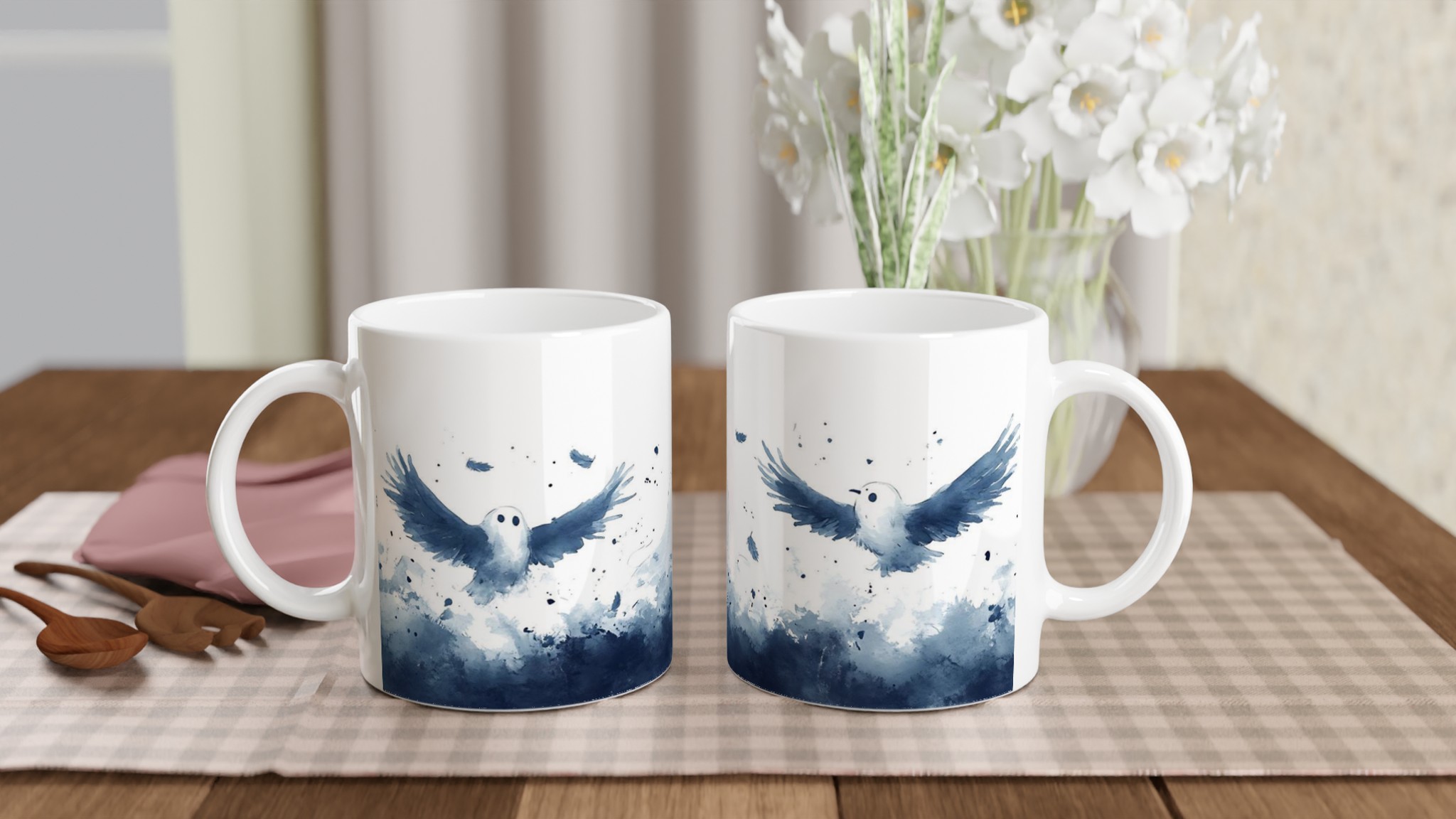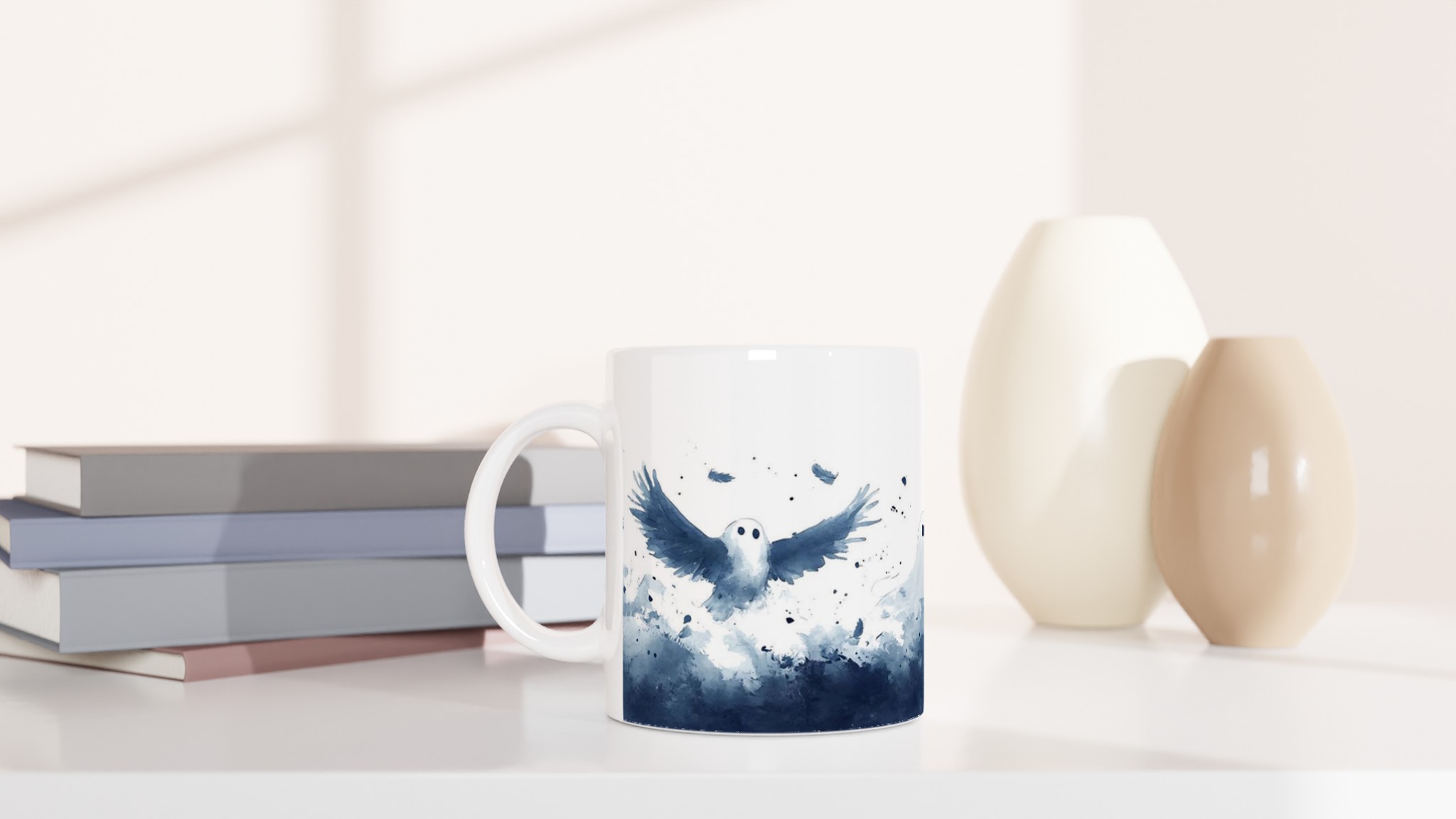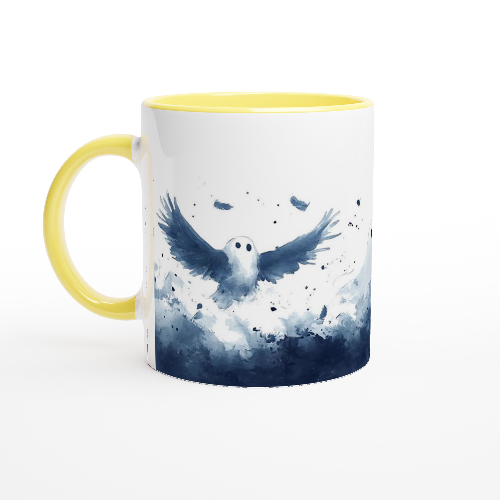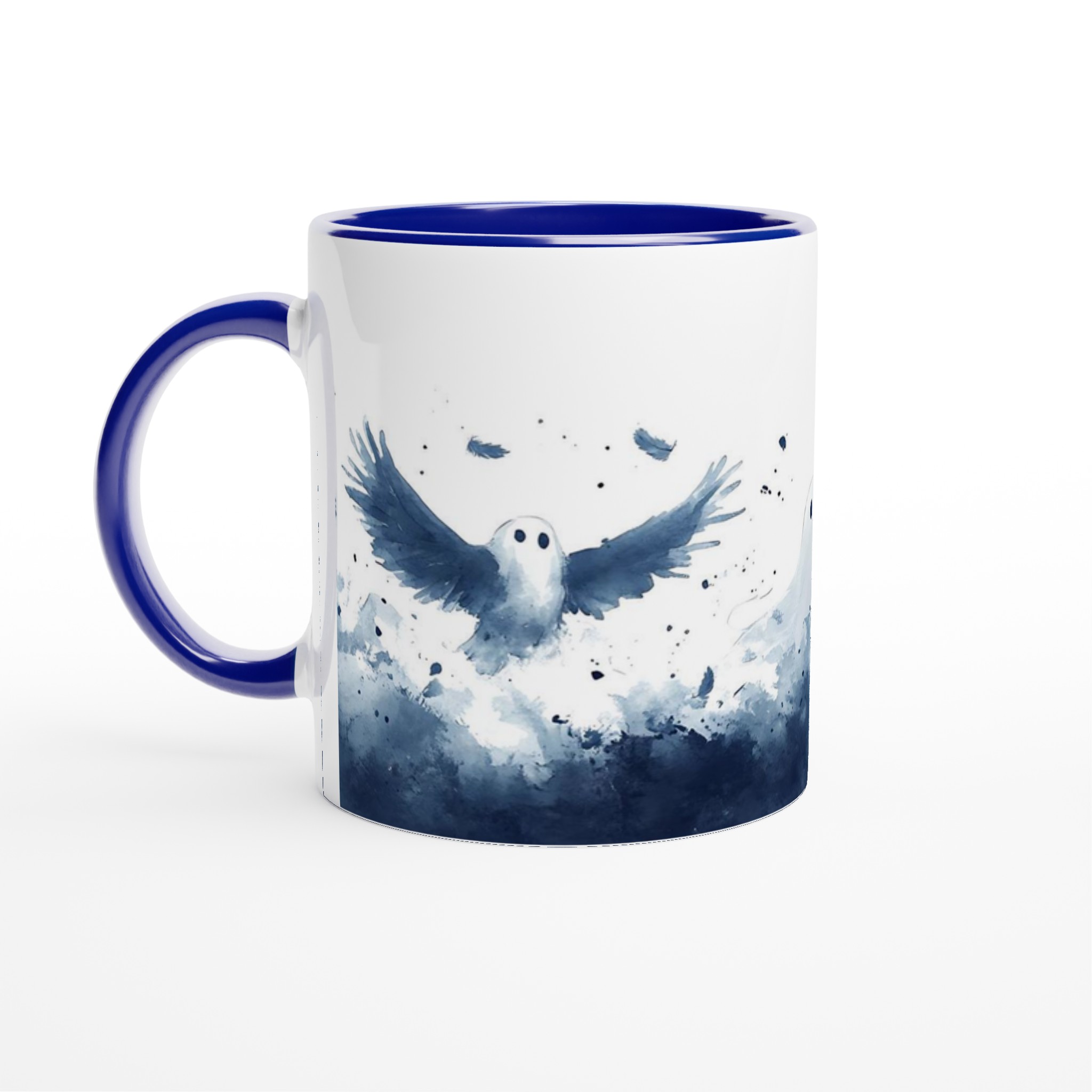 Enchanted Spirits White 11oz Ceramic Mug – Whimsical Ghost & Raven Watercolor Design for Your Daily Brew