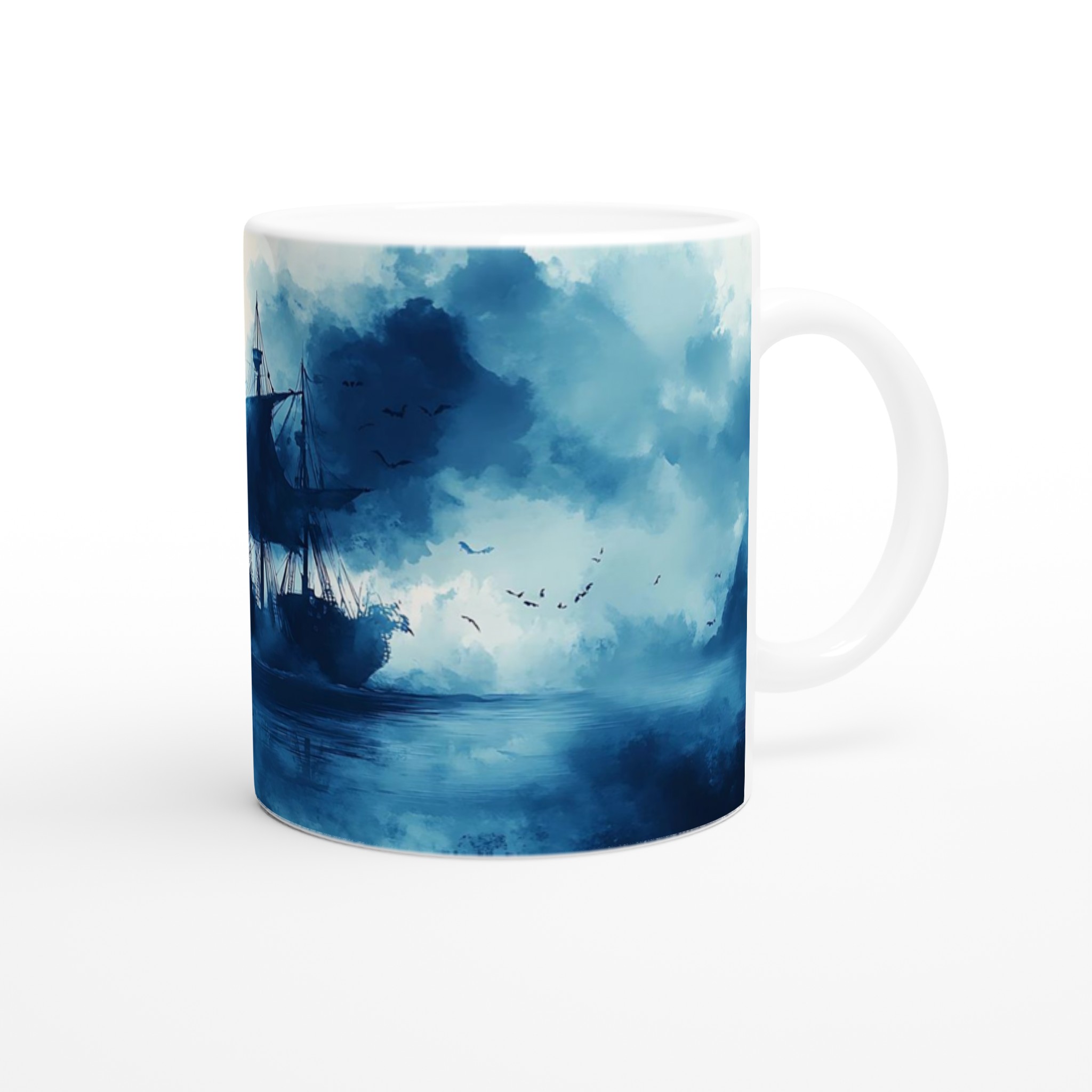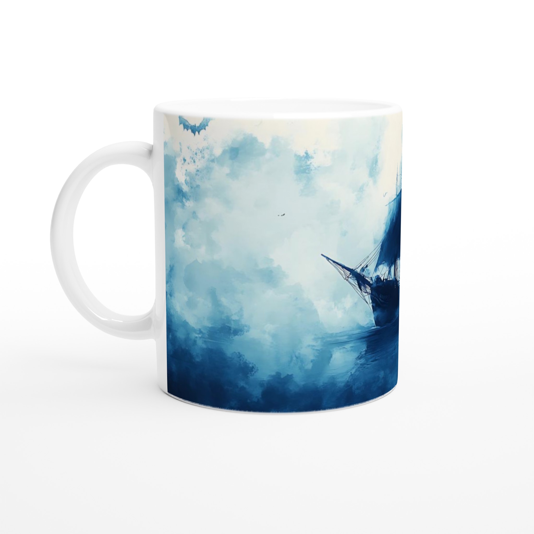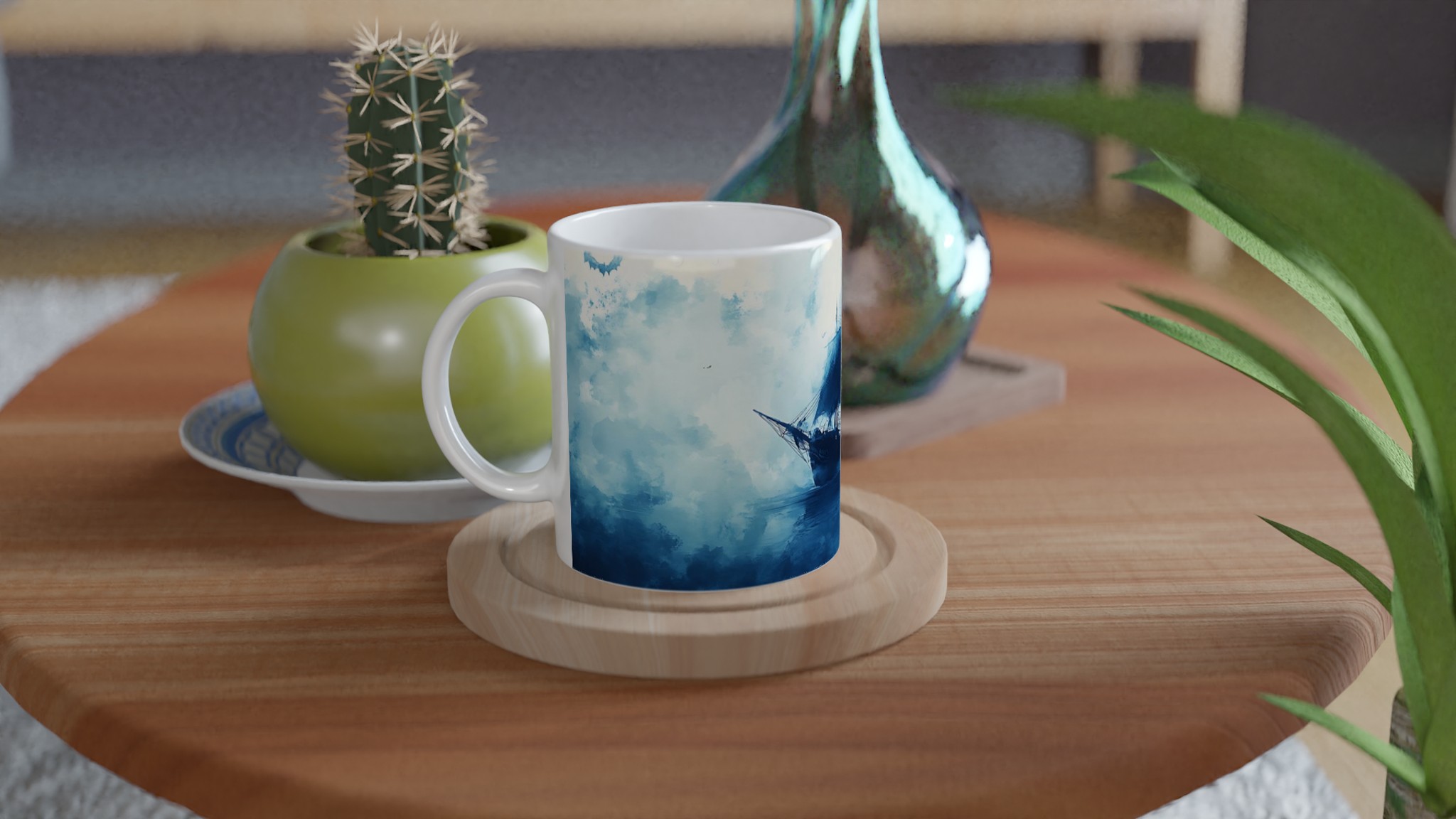 Mystical Midnight Voyage 11oz Ceramic Mug – Sail into the Deep Blue with Vivid Artistry