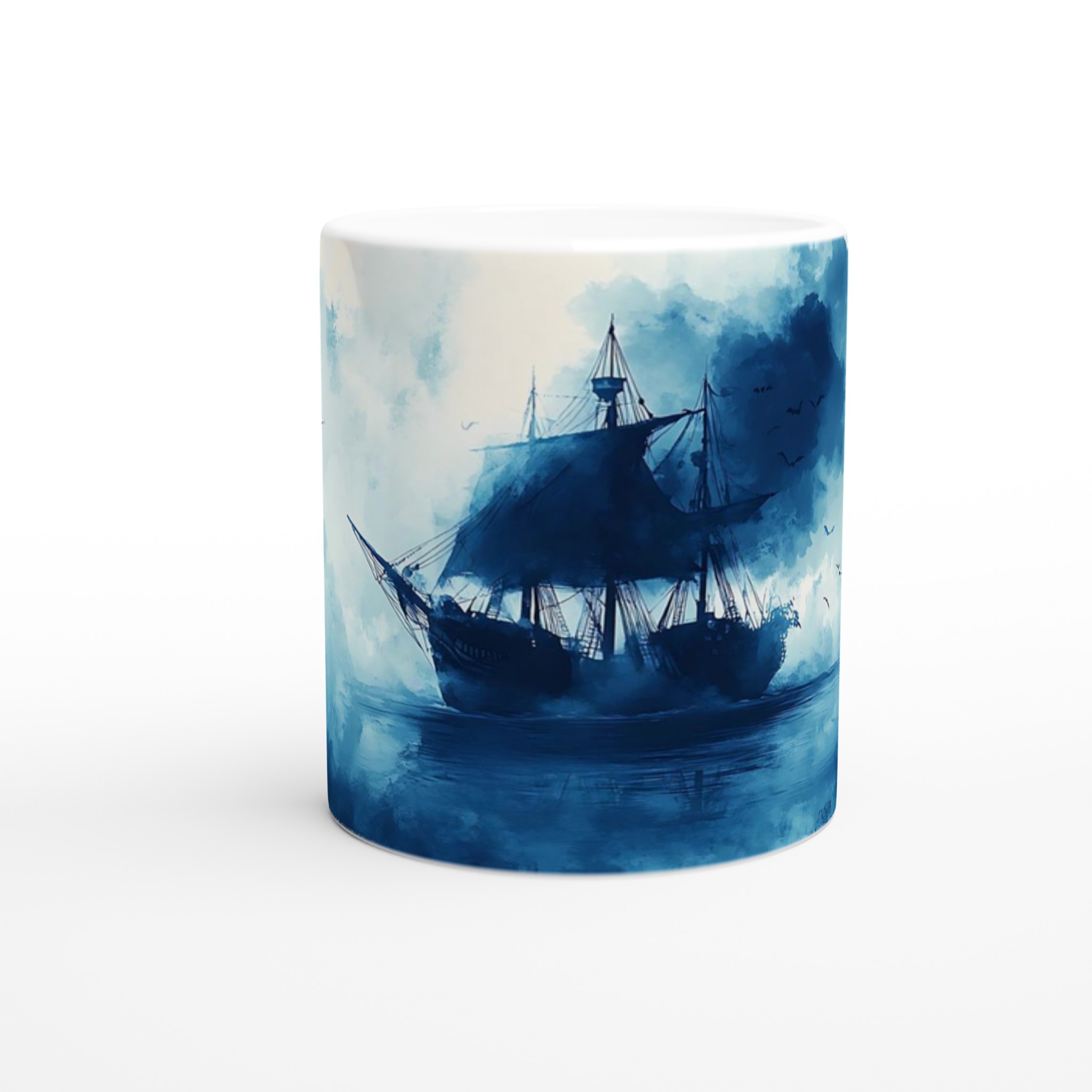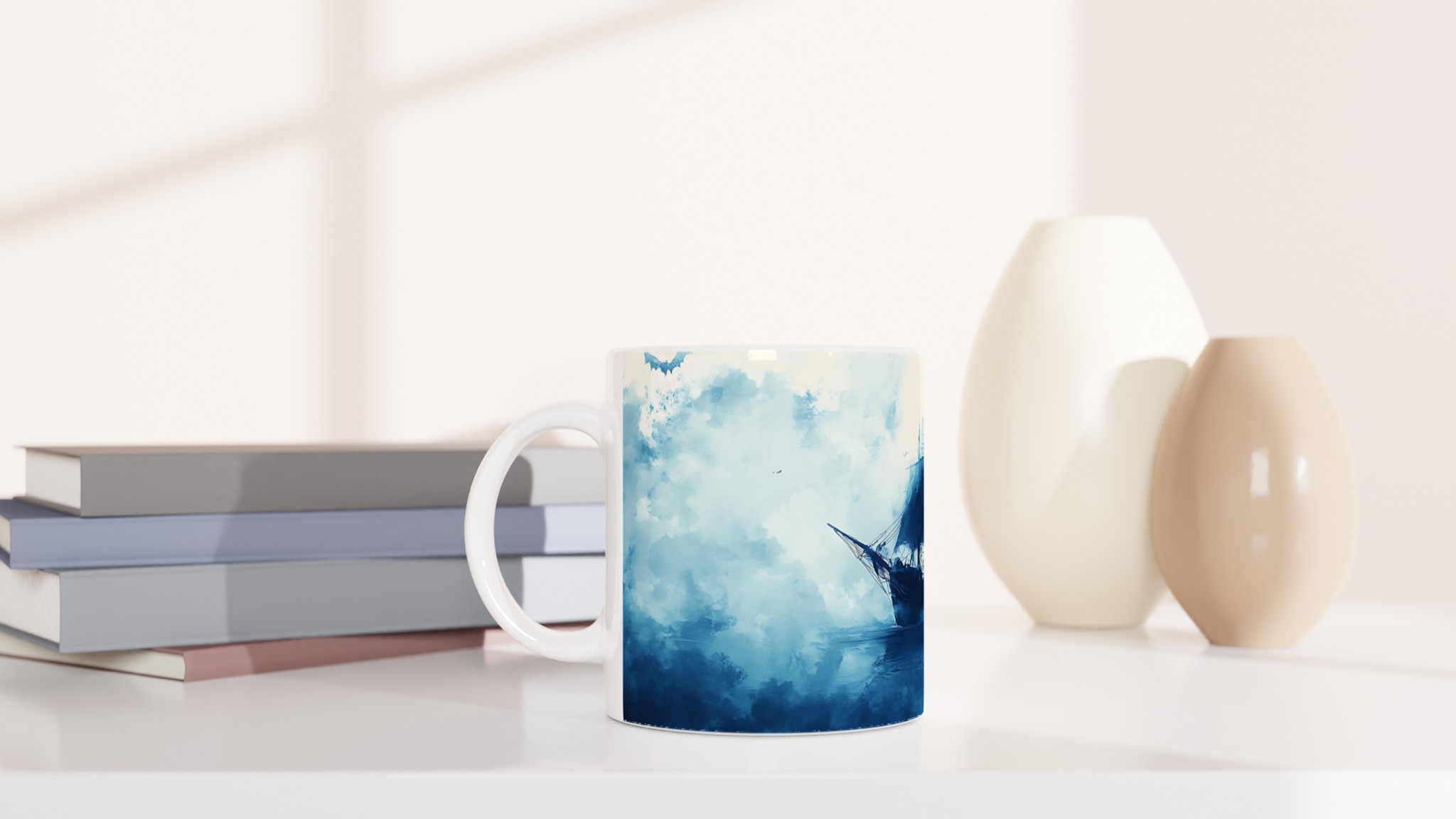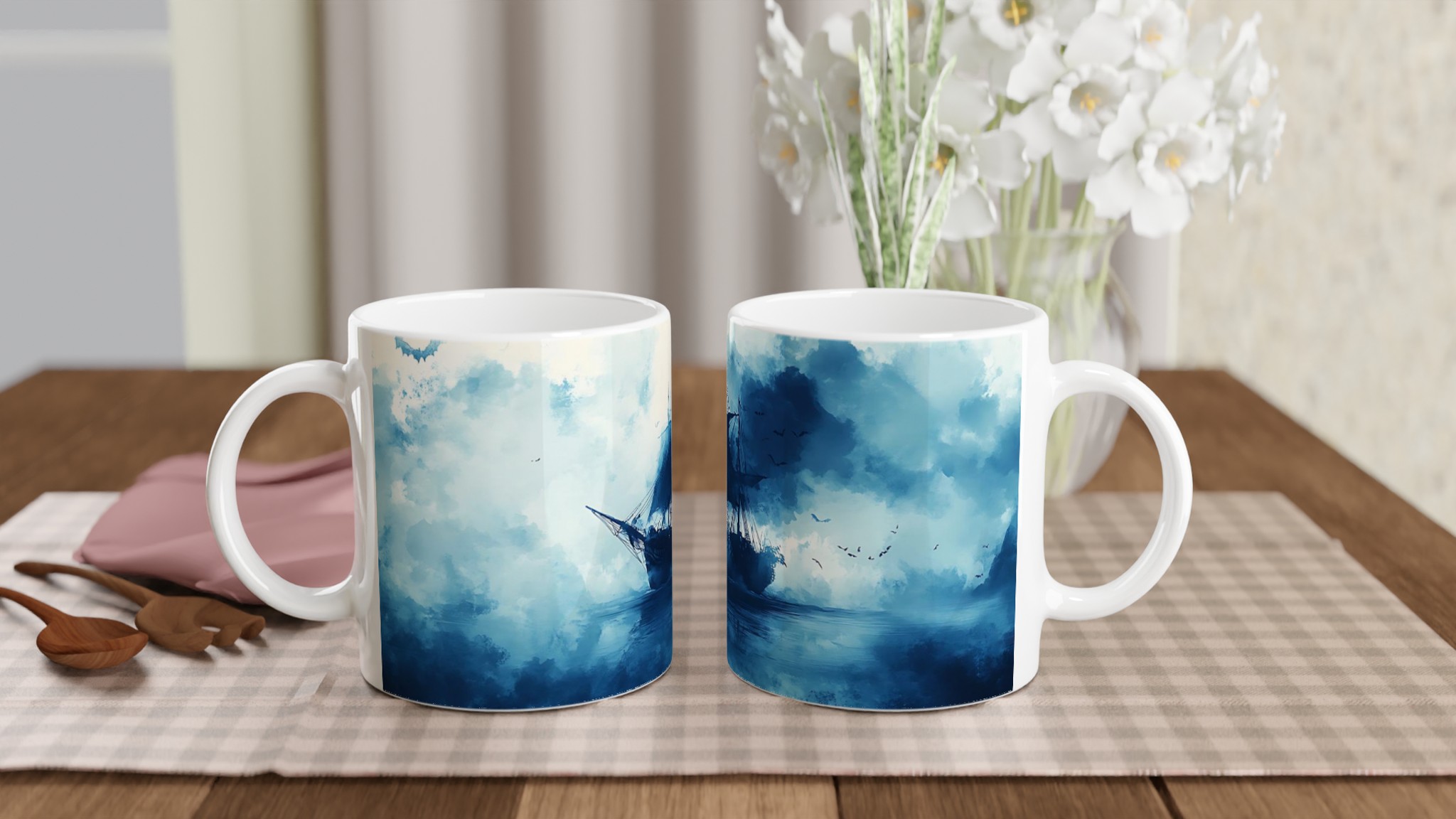 Mystical Midnight Voyage 11oz Ceramic Mug – Sail into the Deep Blue with Vivid Artistry