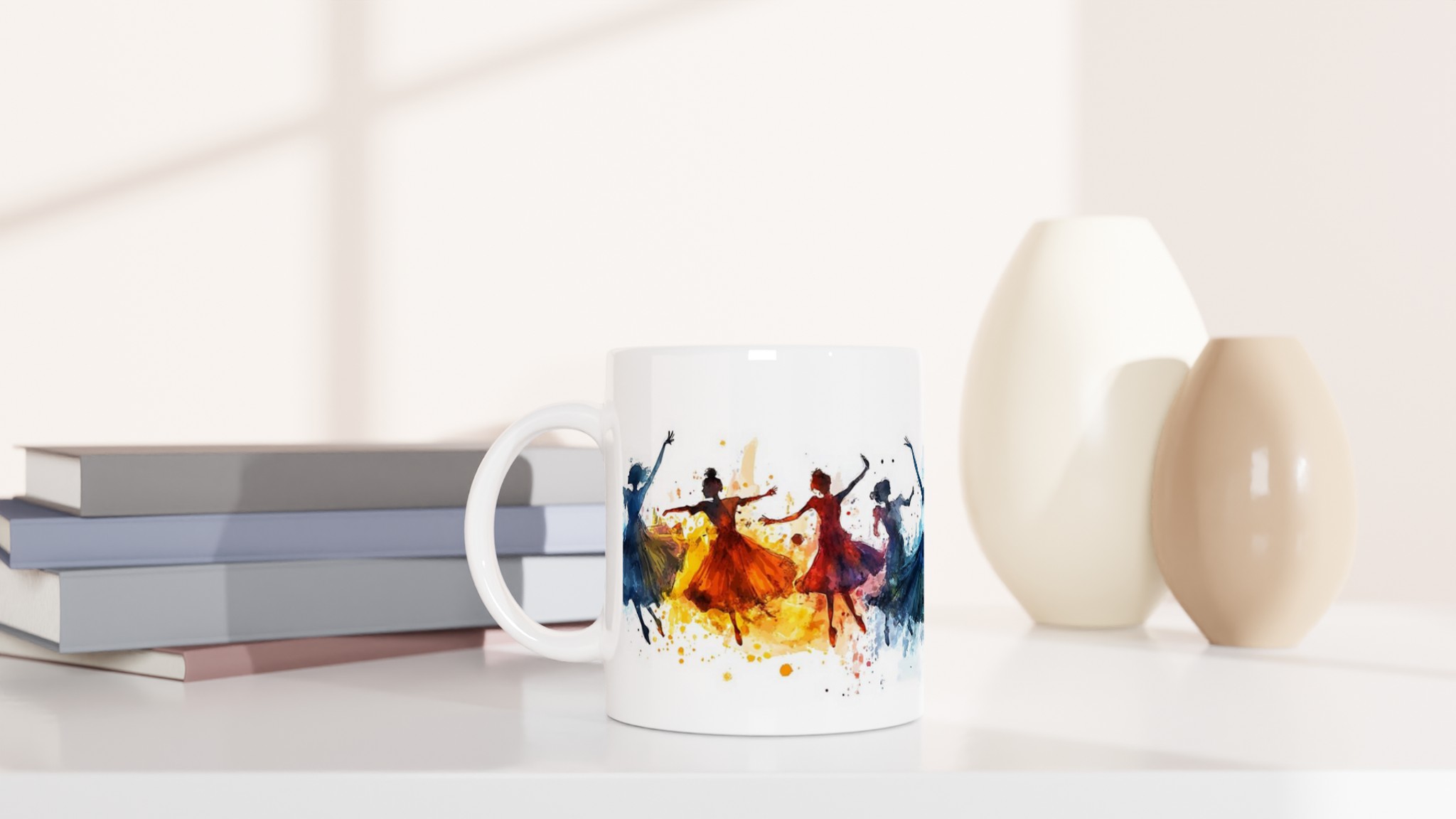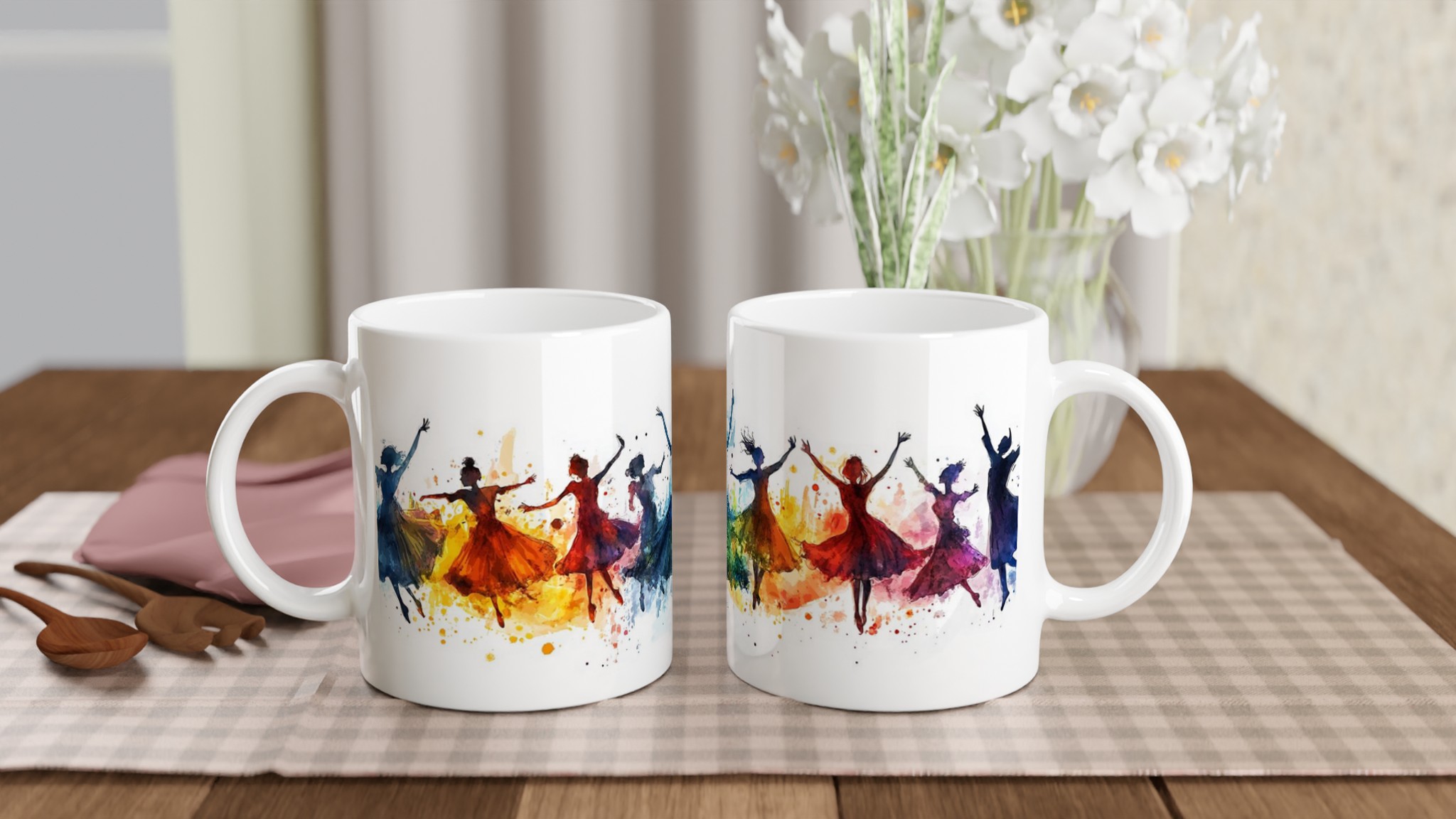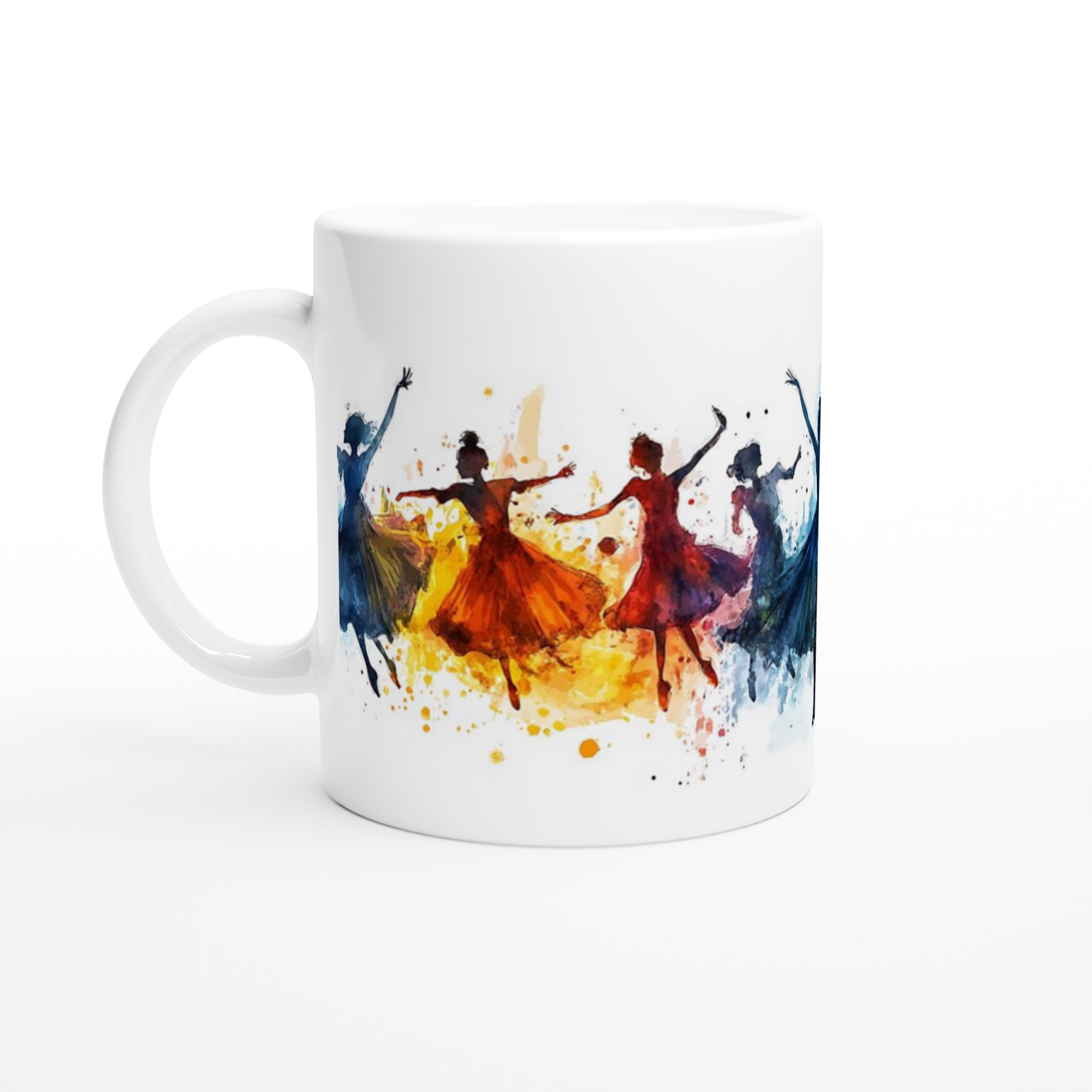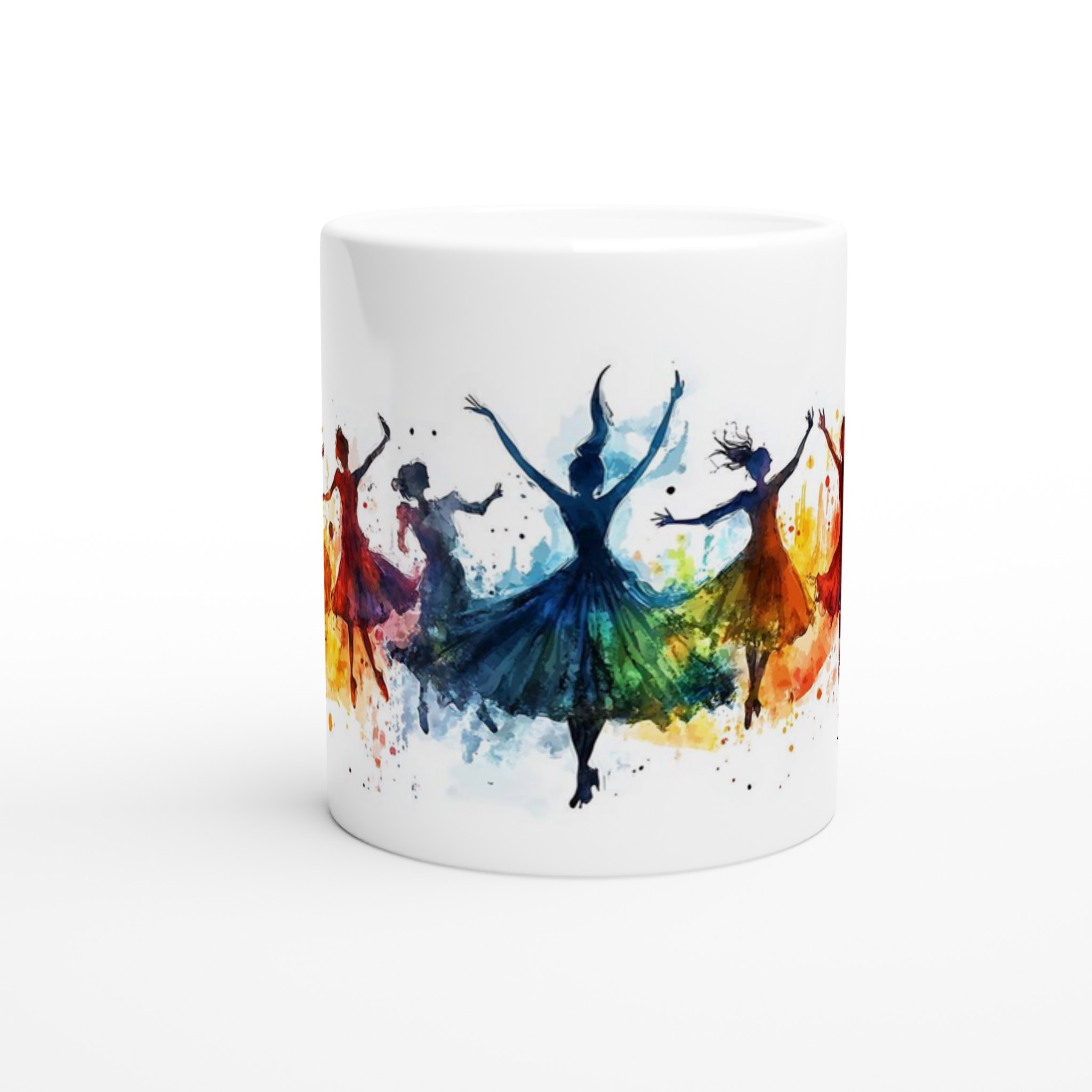 Vibrant Watercolor Dance 11oz Ceramic Mug – Expressive Art for Your Daily Brew