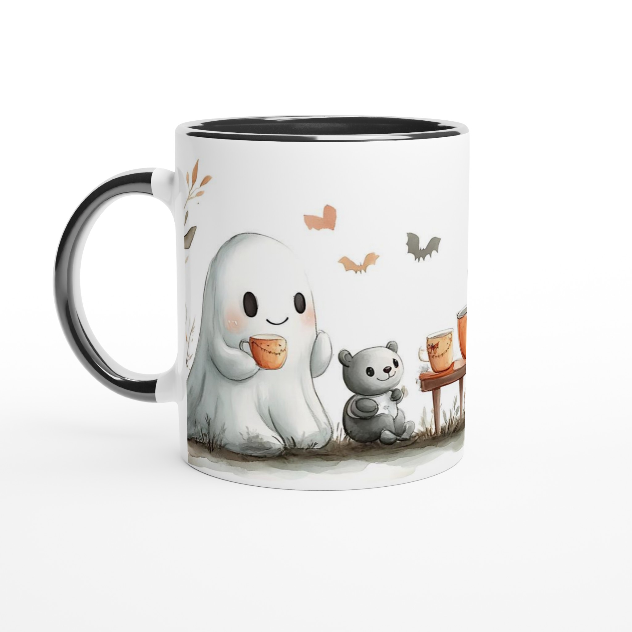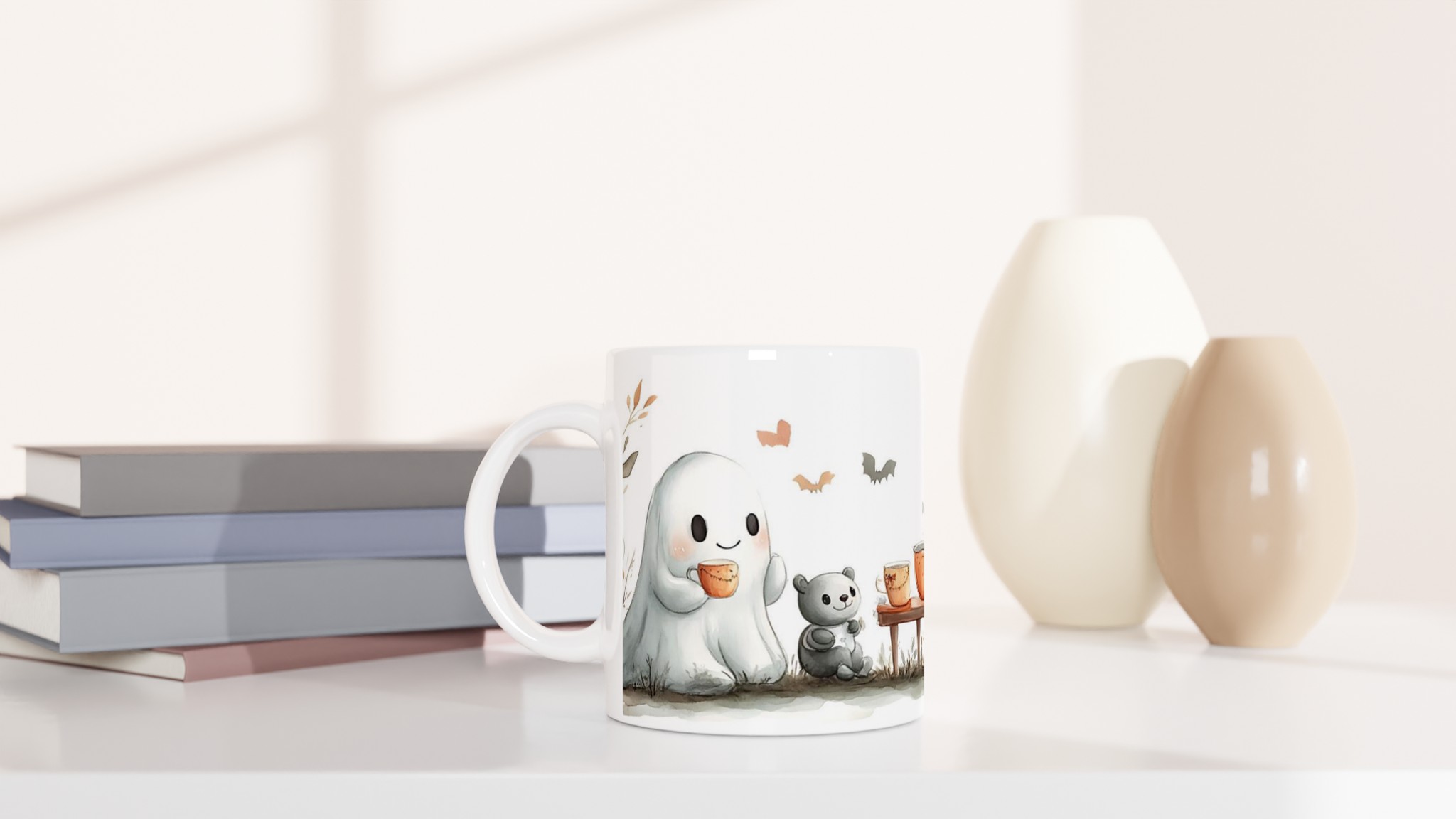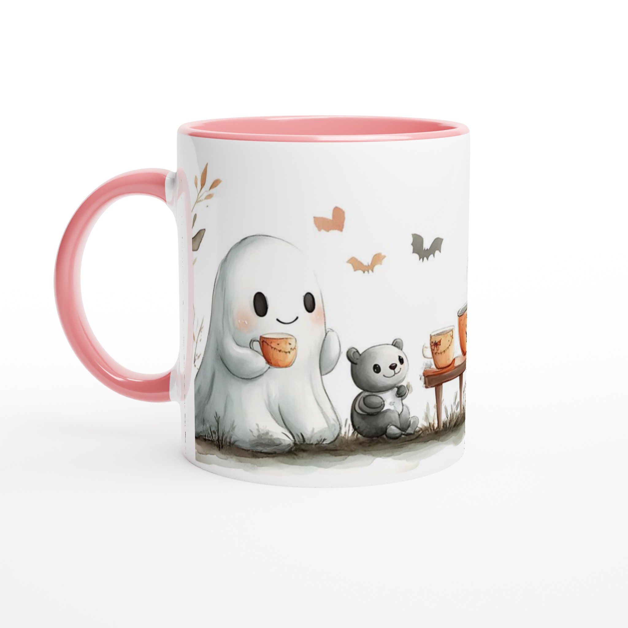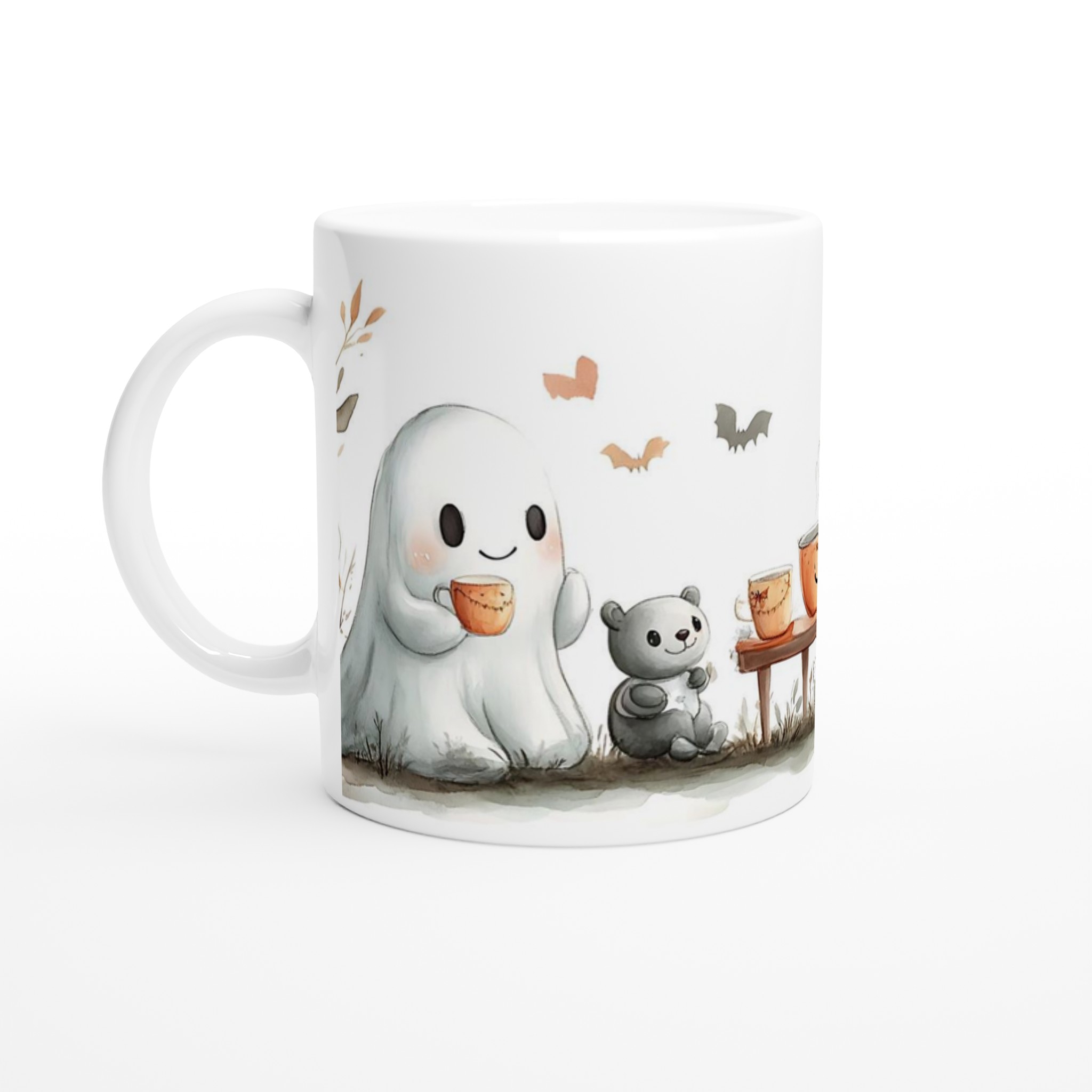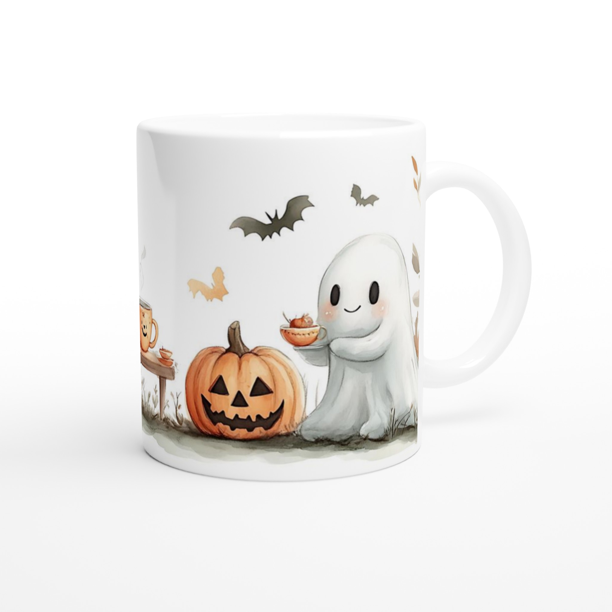 Charming Spooky Season Ceramic Mug with Adorable Ghost & Pumpkin Design – Perfect for Fall Fun