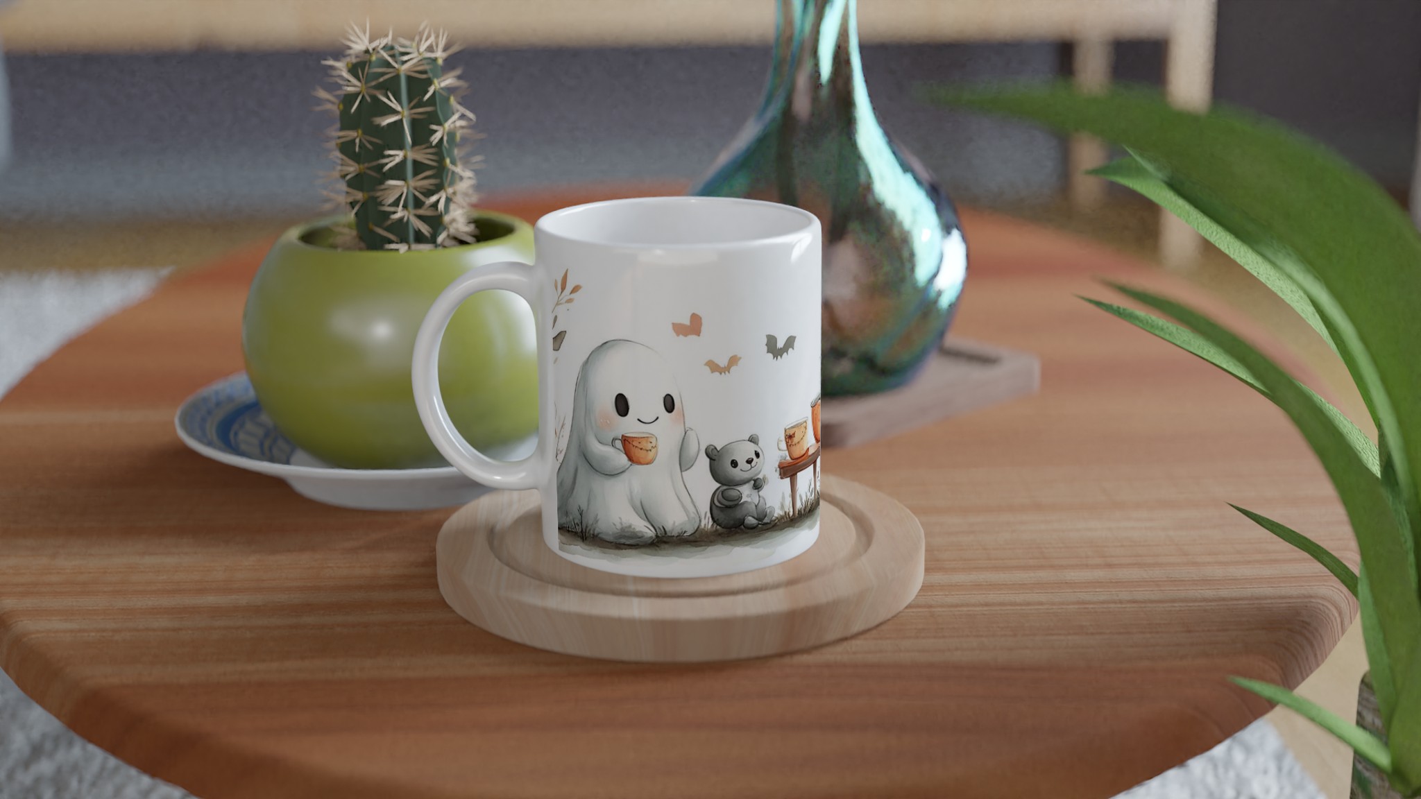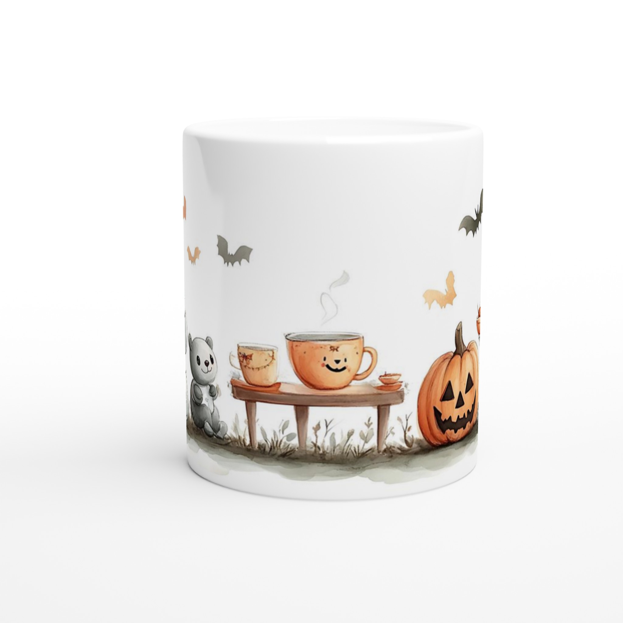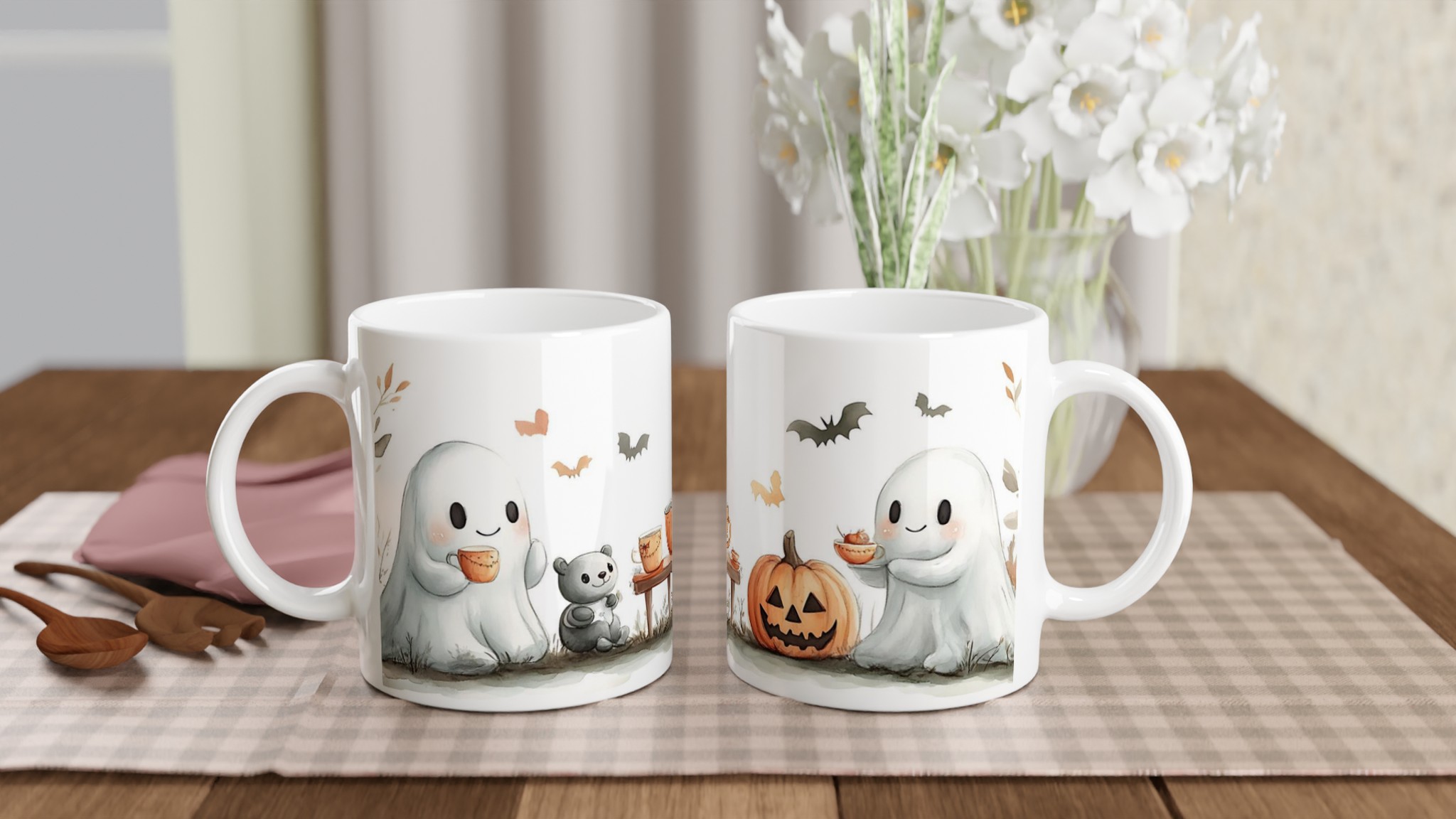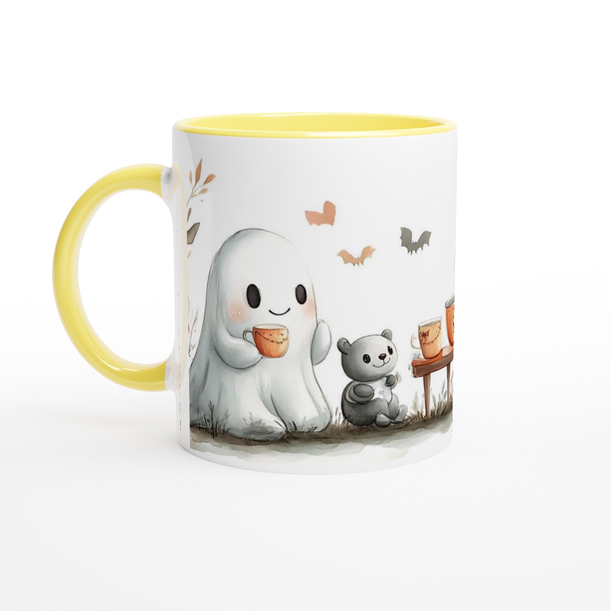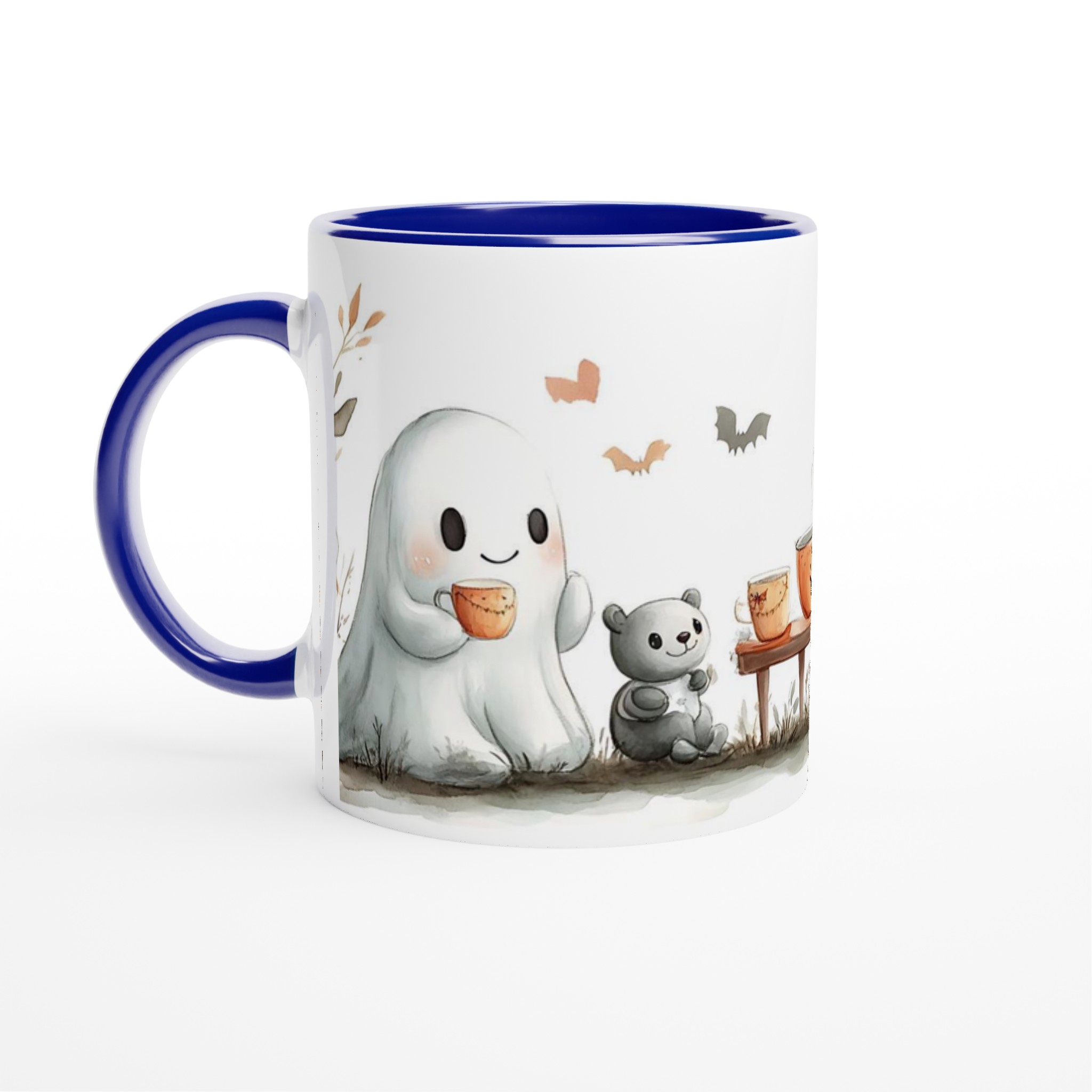 Charming Spooky Season Ceramic Mug with Adorable Ghost & Pumpkin Design – Perfect for Fall Fun