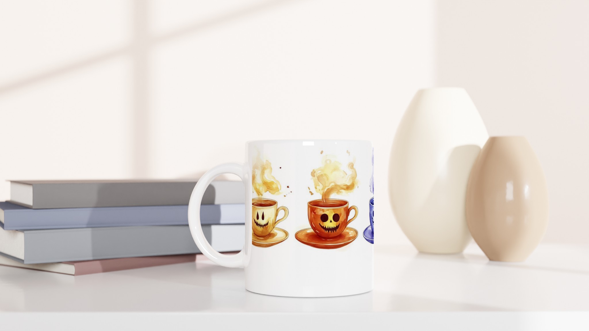 Spooky Smiles Ceramic 11oz Mug – Halloween & Autumn Vibes in Your Choice of 7 Vibrant Colors