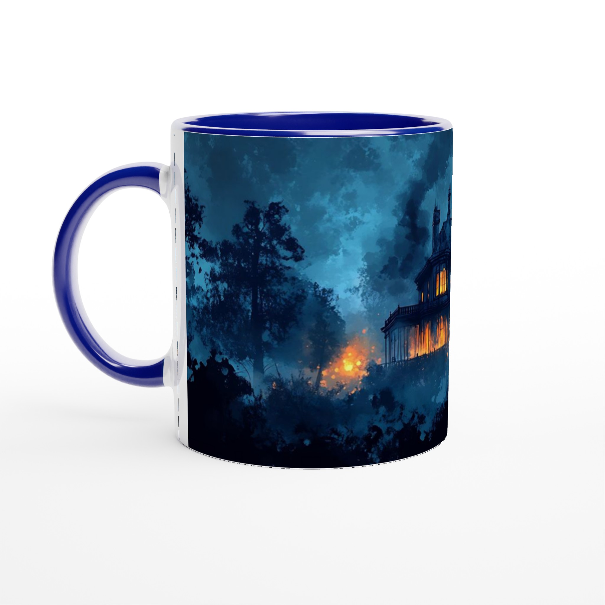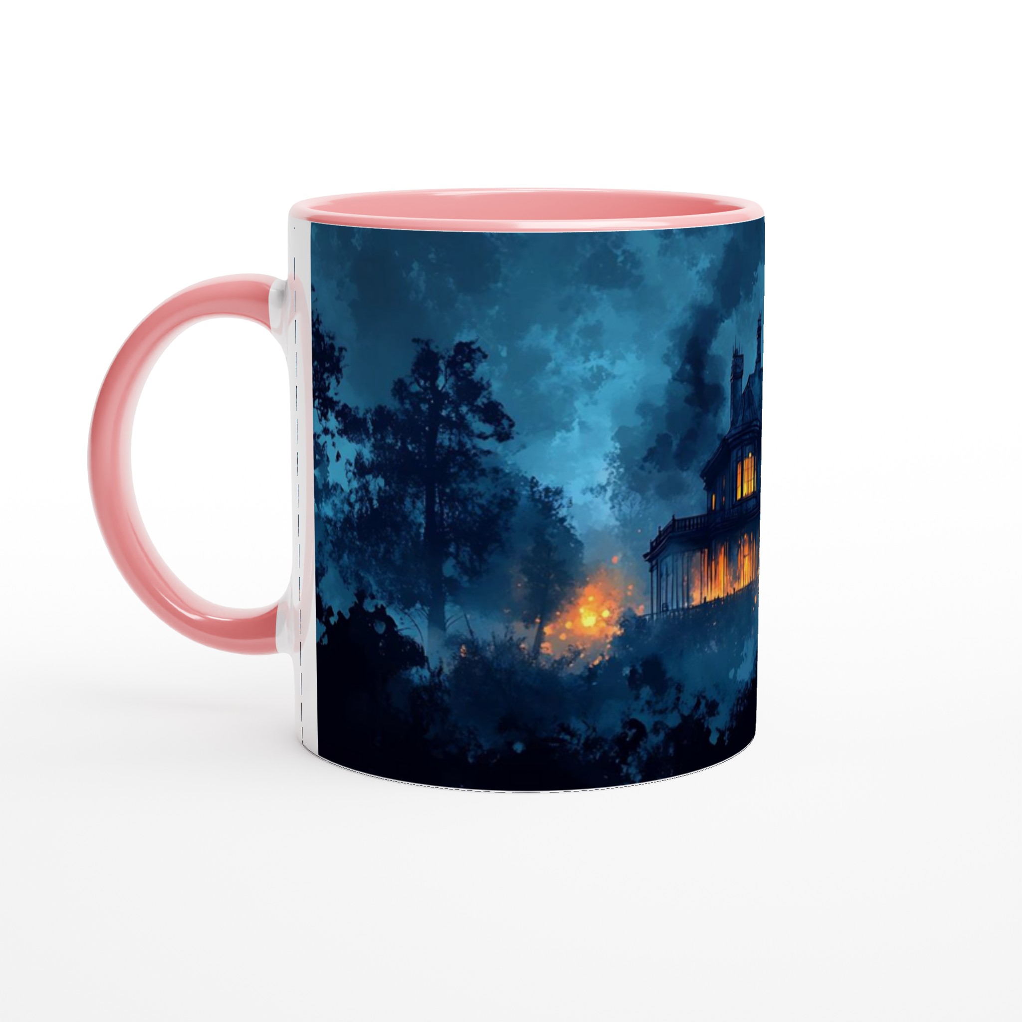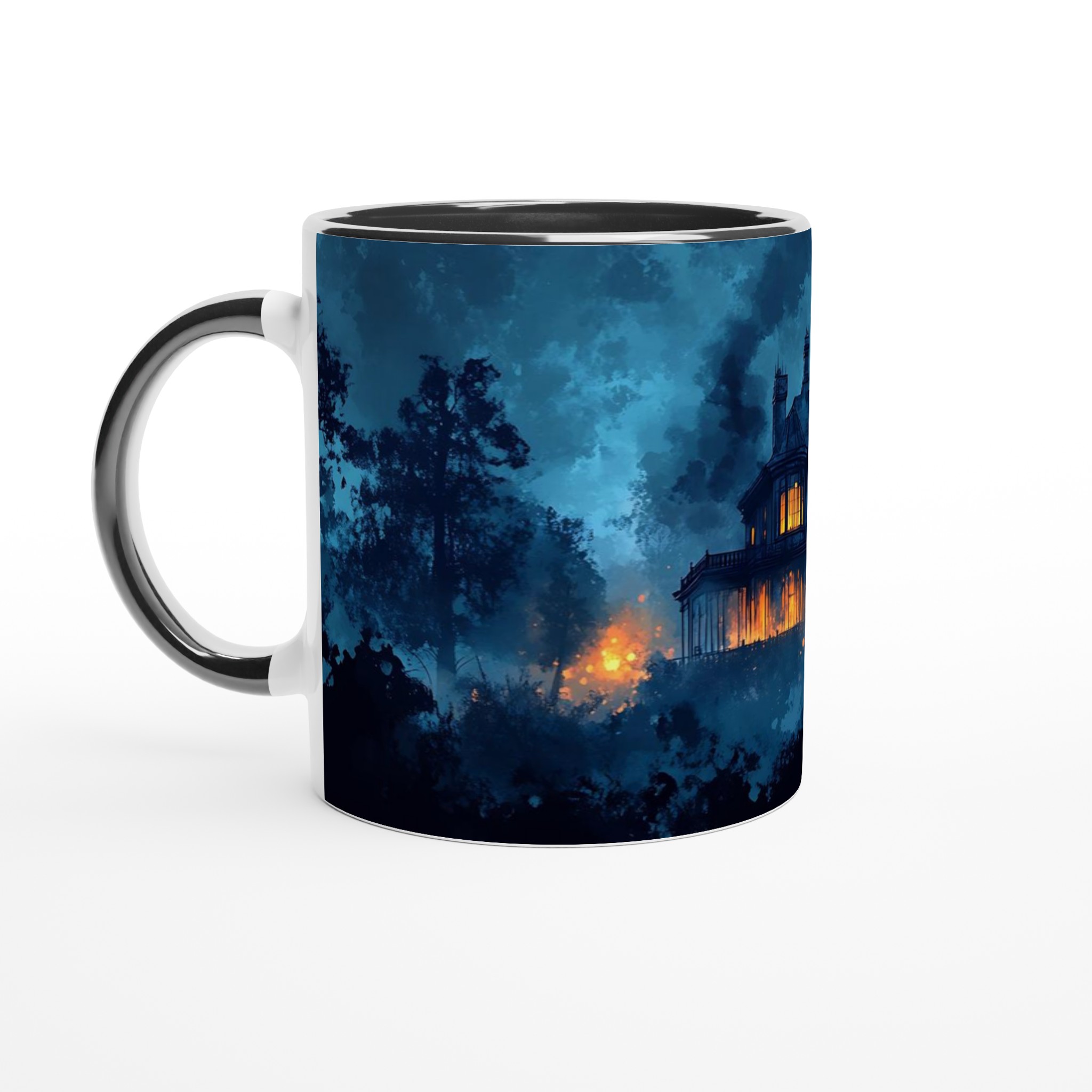 Eerie Haunted Mansion 11oz Ceramic Mug – Spooky Teal & Orange Art Coffee Cup