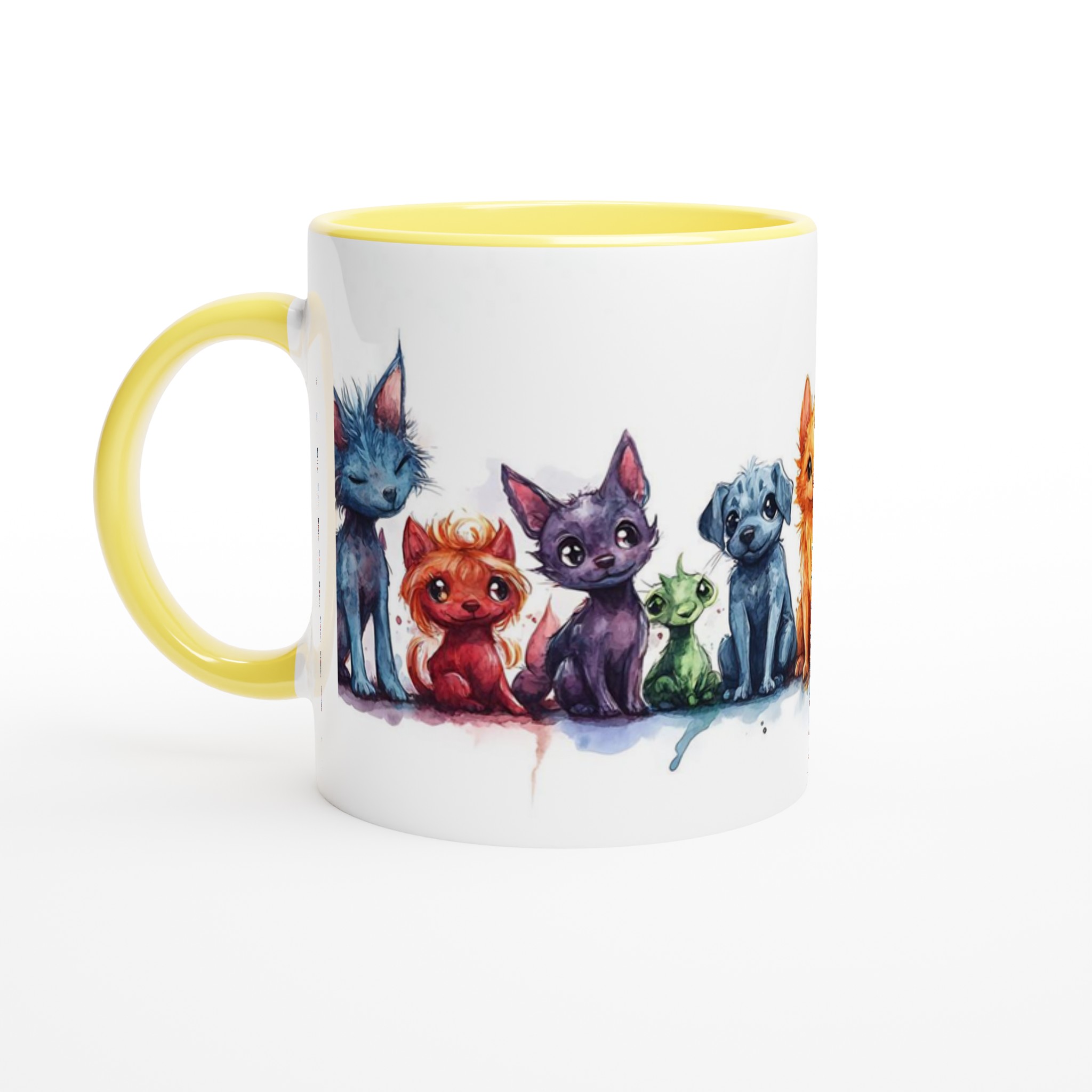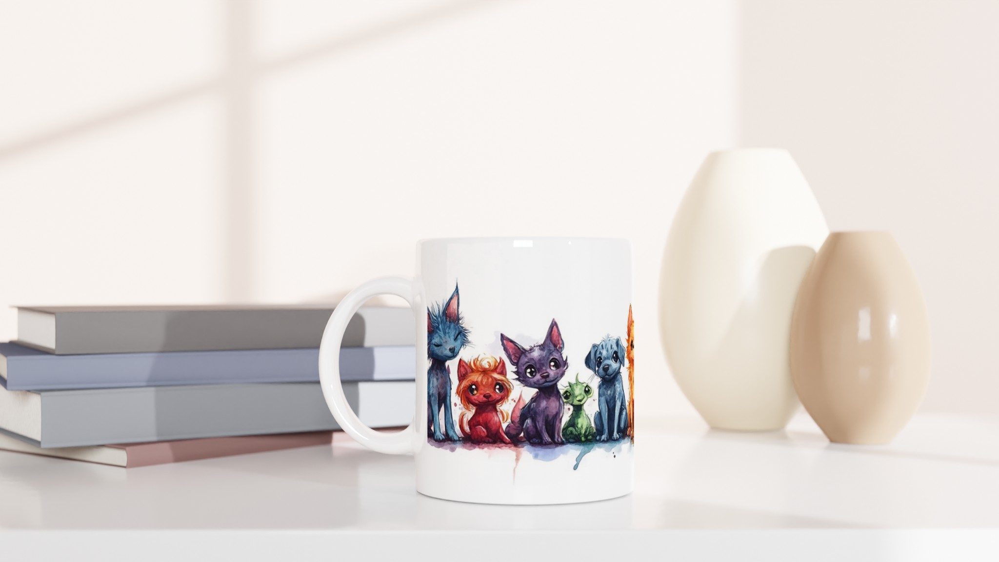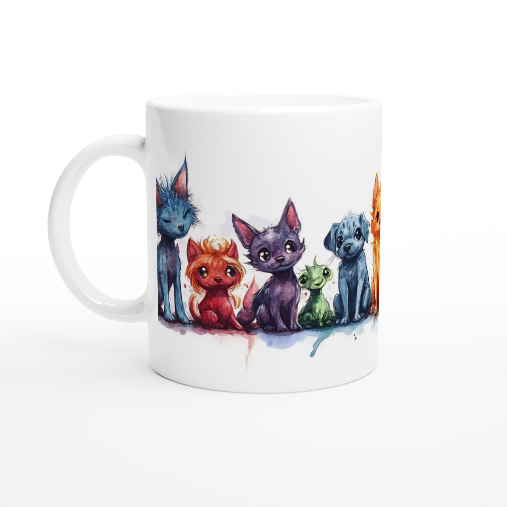 Charming Watercolor Critters 11oz Ceramic Mug – Whimsical Pet & Mythical Creature Art