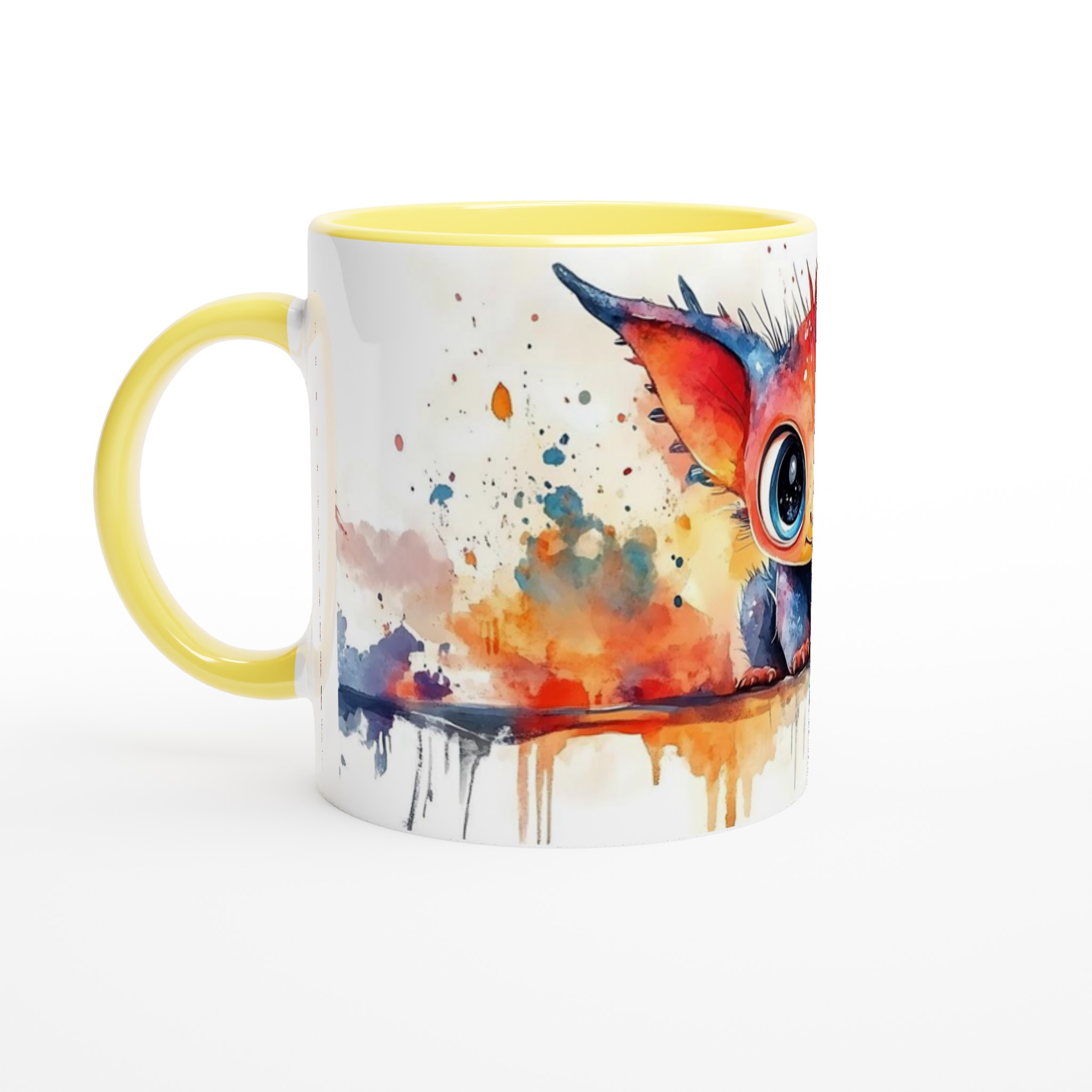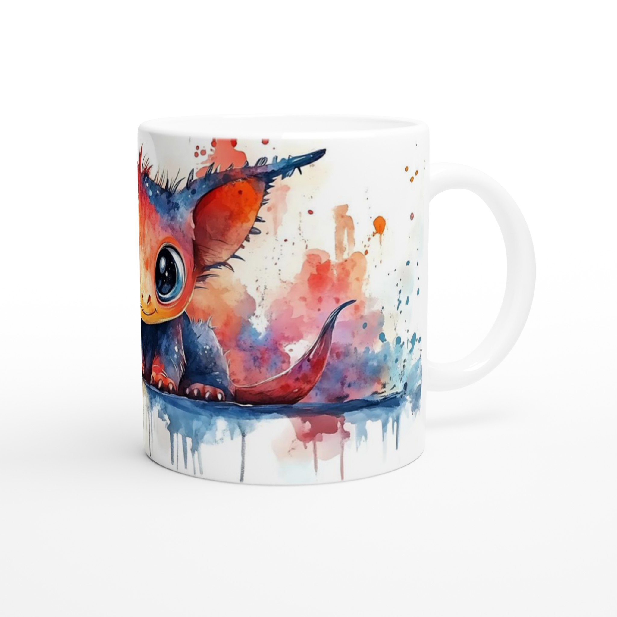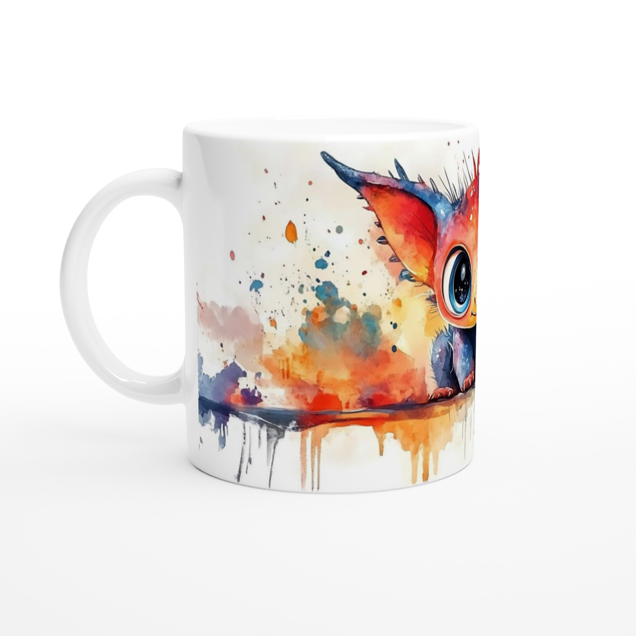 Charming Watercolor Monster 11oz Ceramic Mug – Vibrant Fantasy Art Coffee Cup in Your Choice of Seven Hues