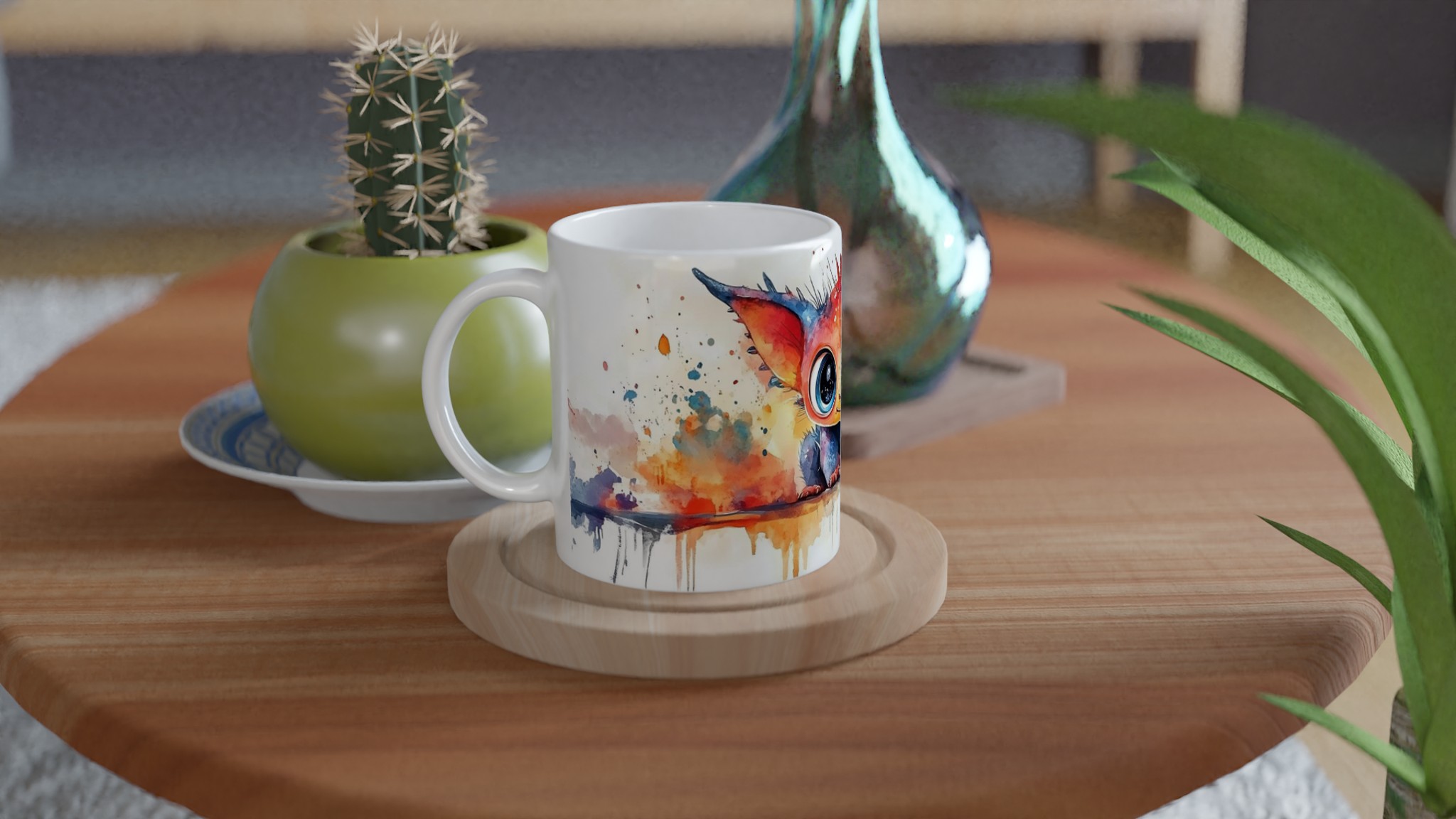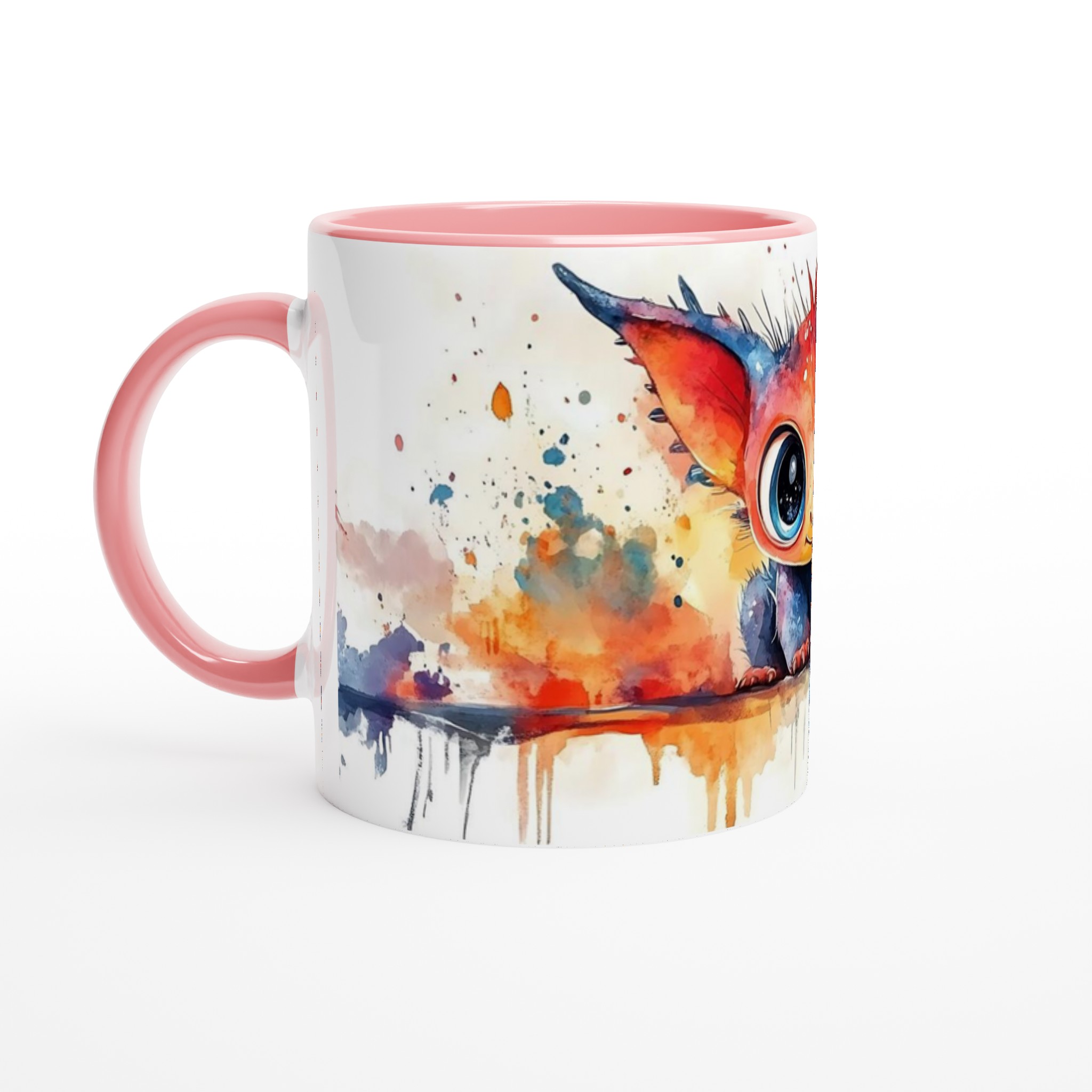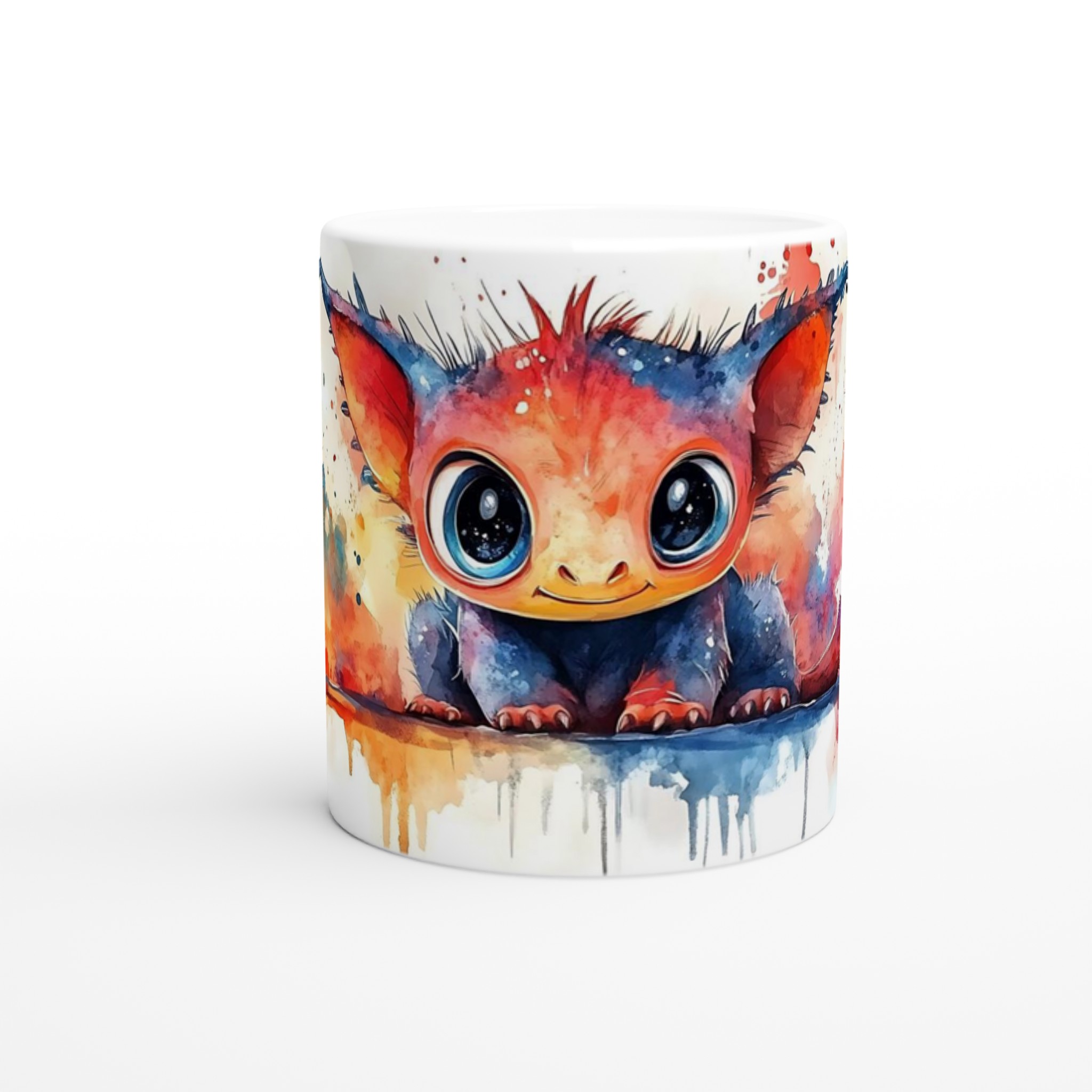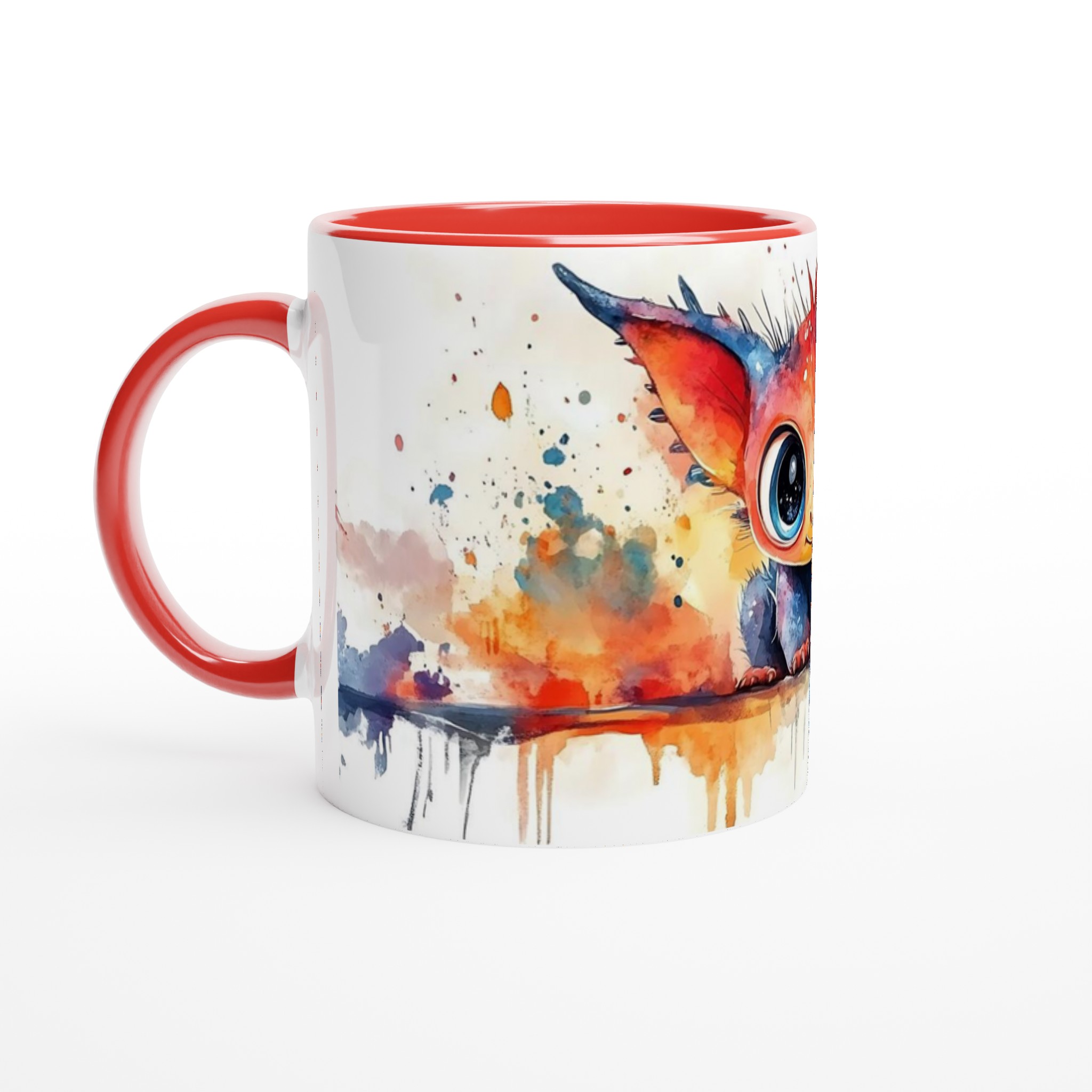 Charming Watercolor Monster 11oz Ceramic Mug – Vibrant Fantasy Art Coffee Cup in Your Choice of Seven Hues