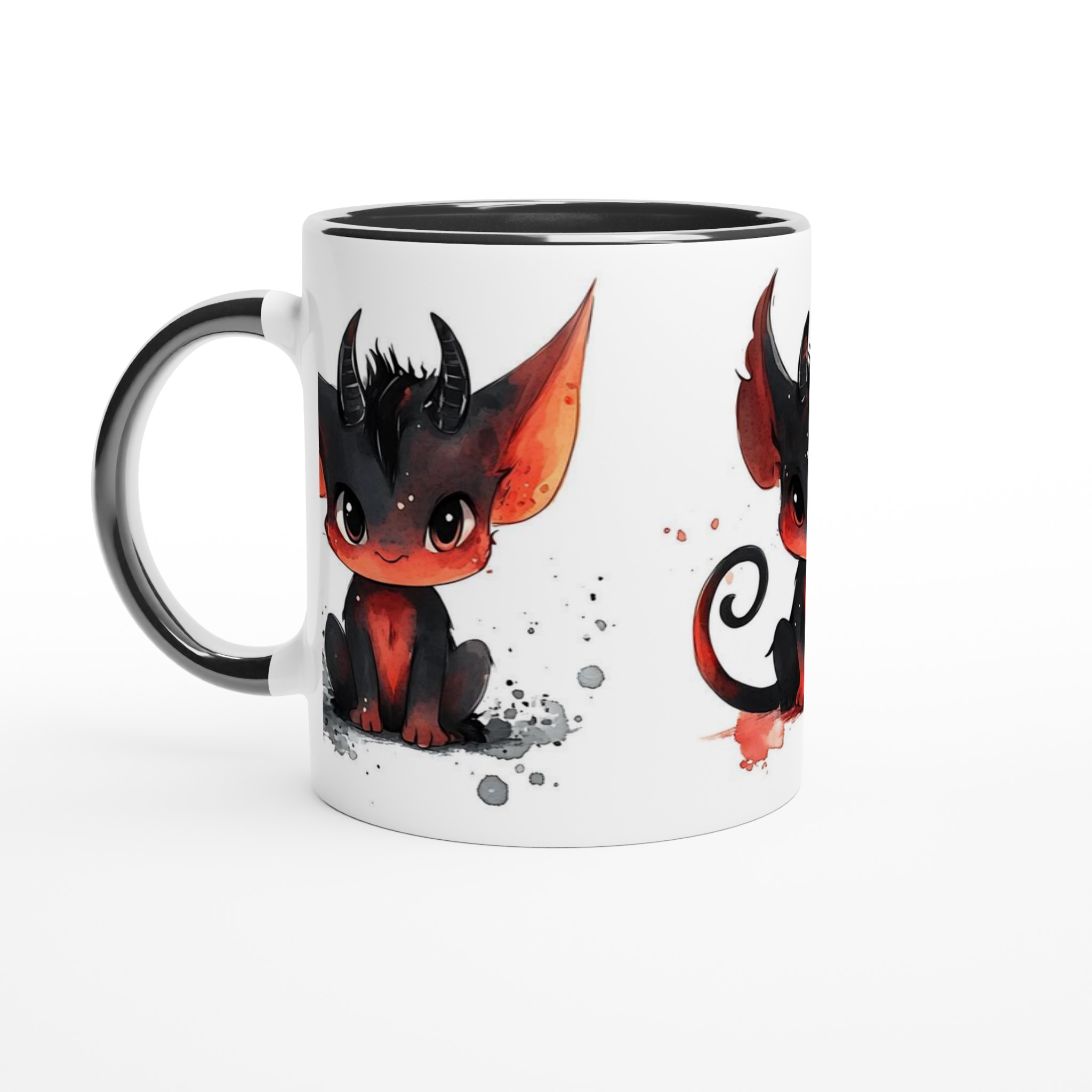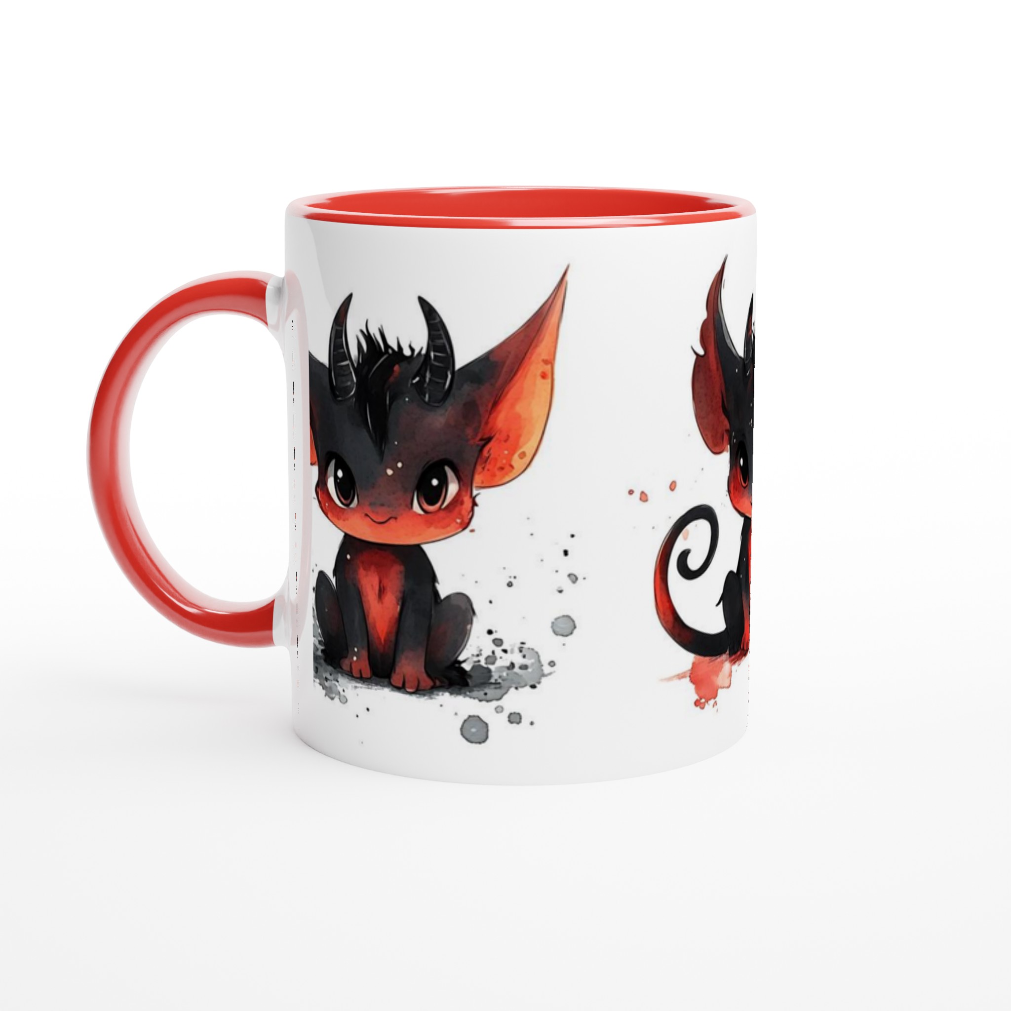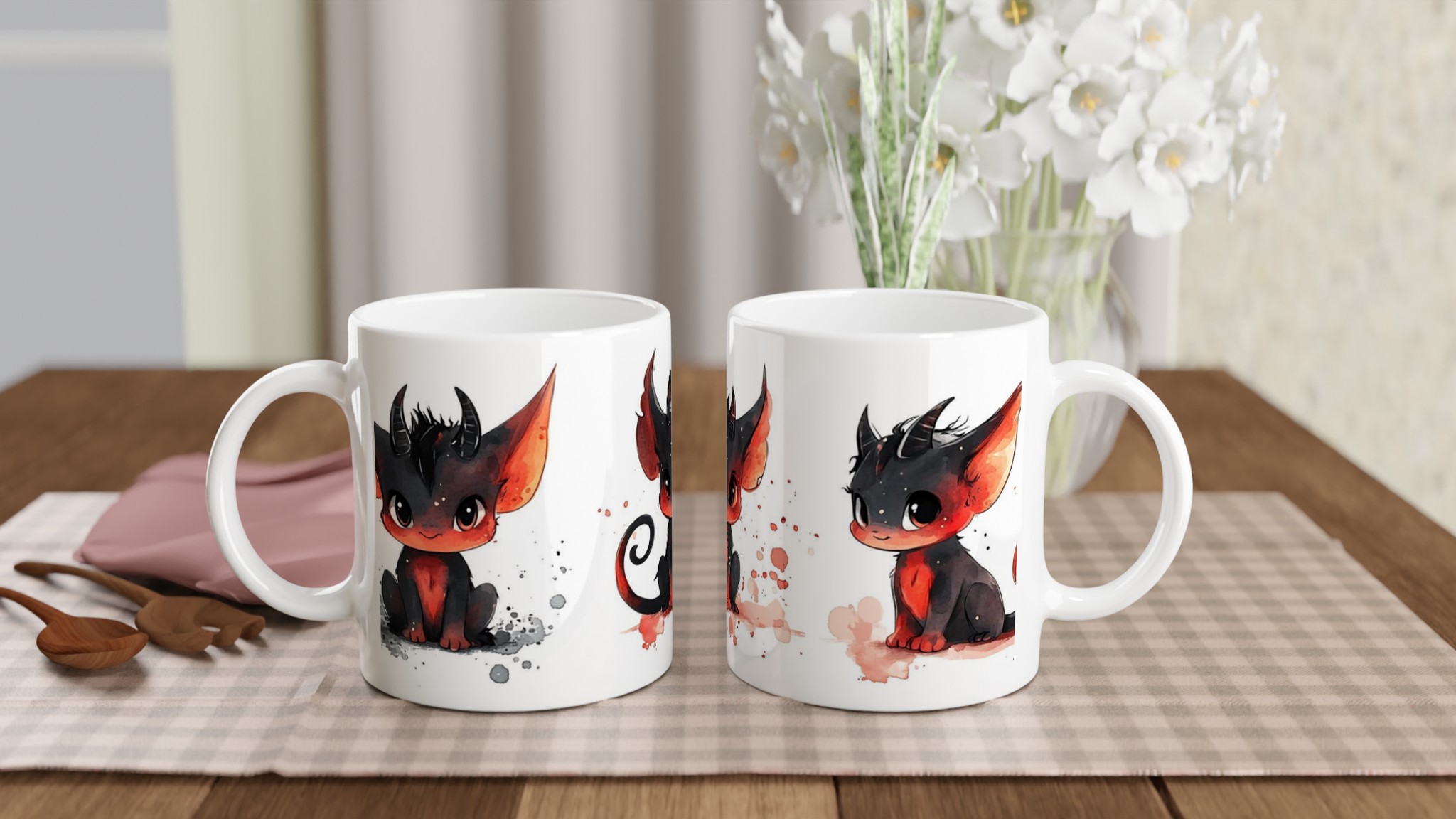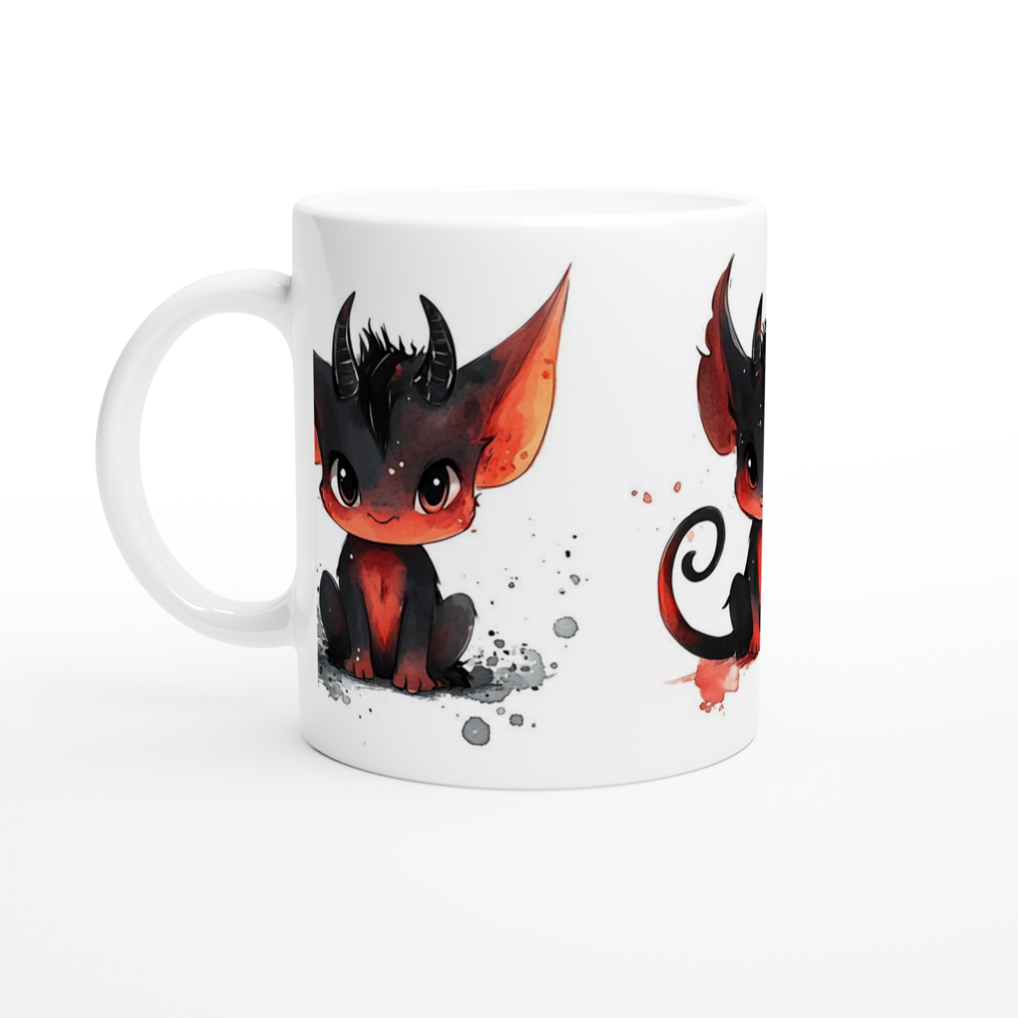 Chibi Demon Watercolor 11oz Ceramic Mug – Adorable Impish Companion for Your Daily Brew