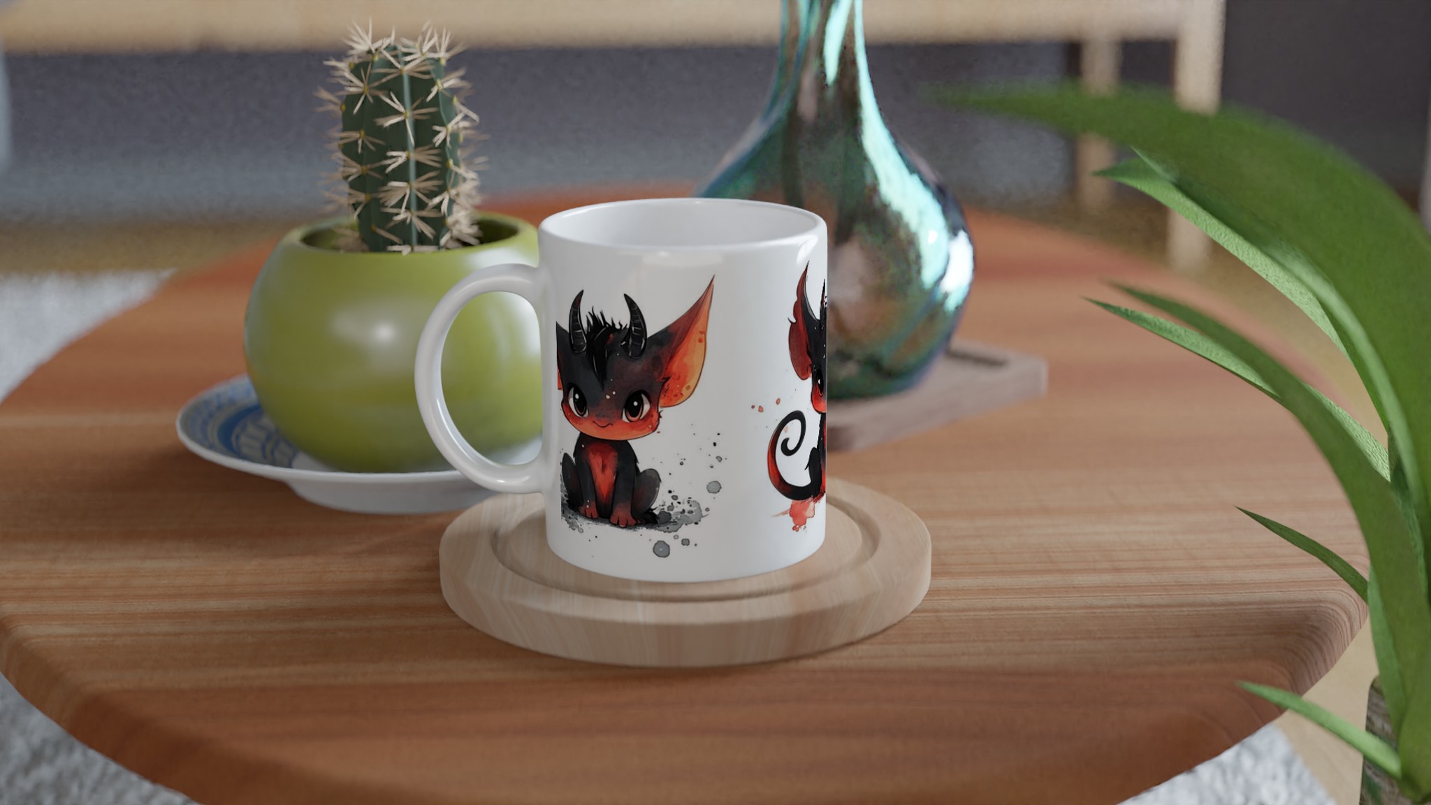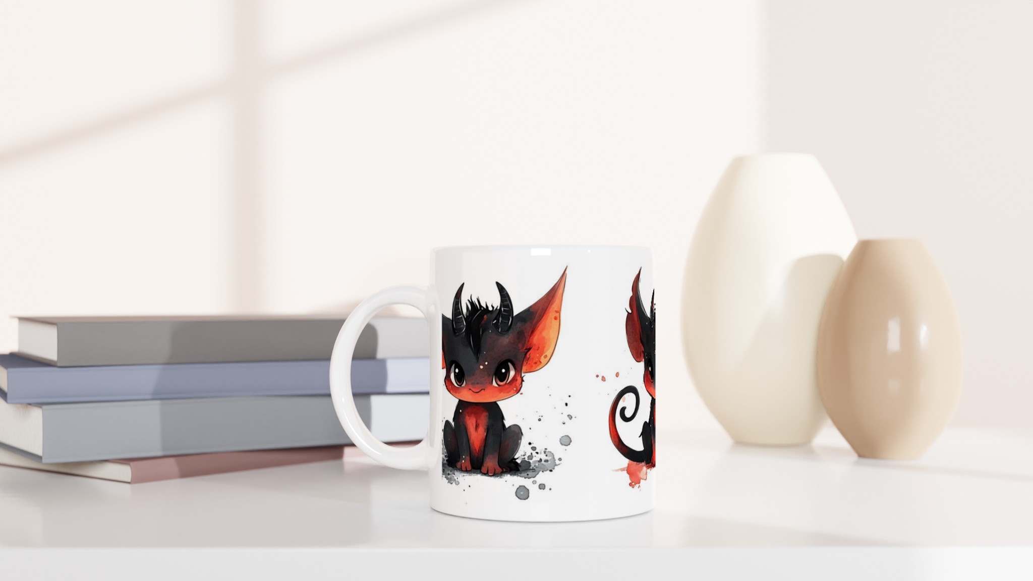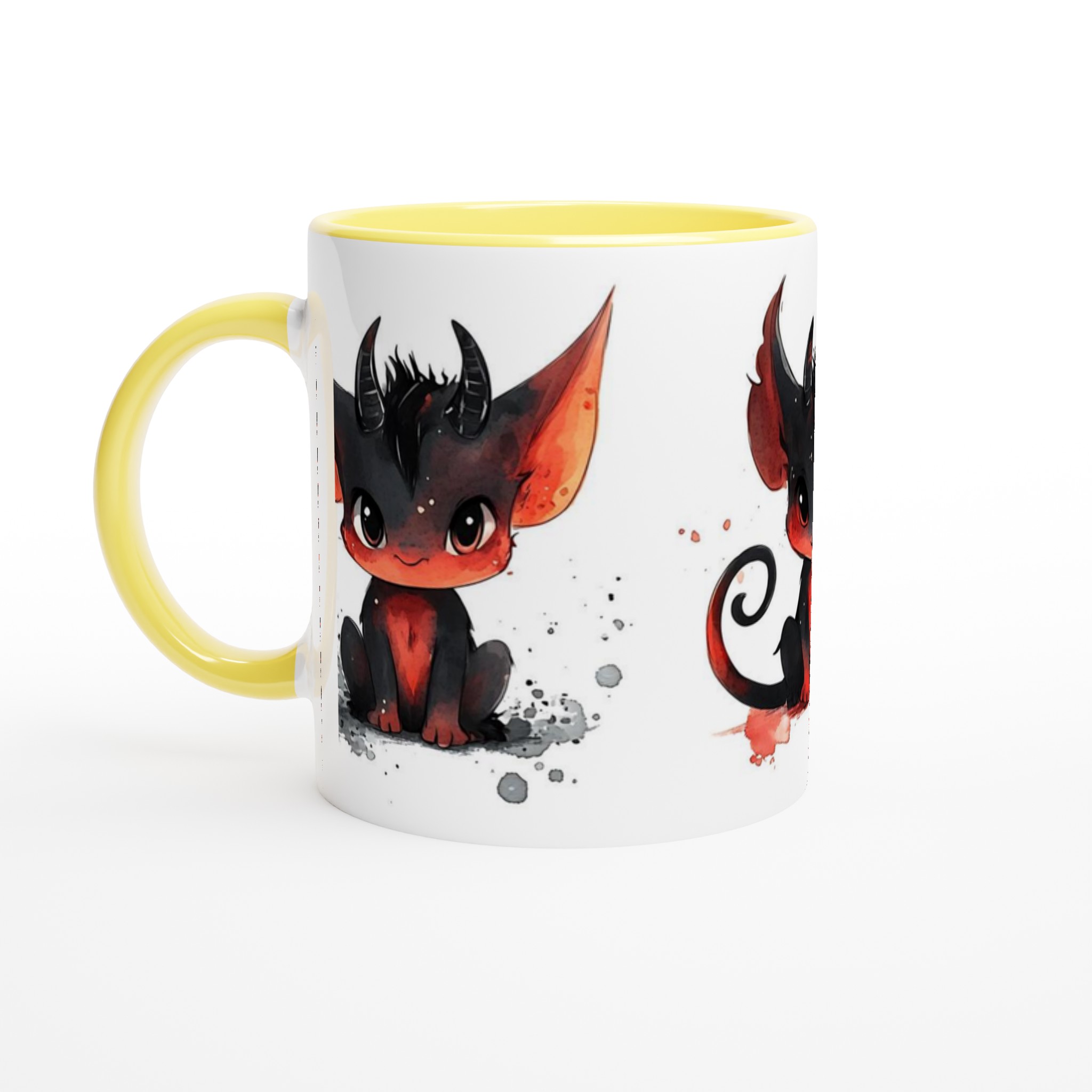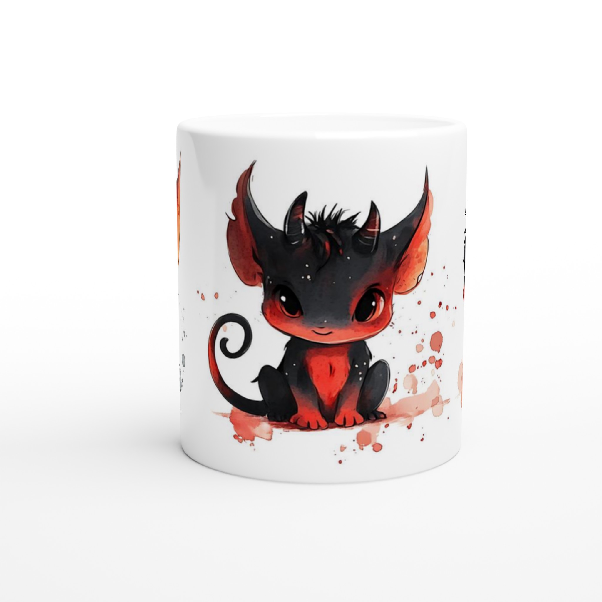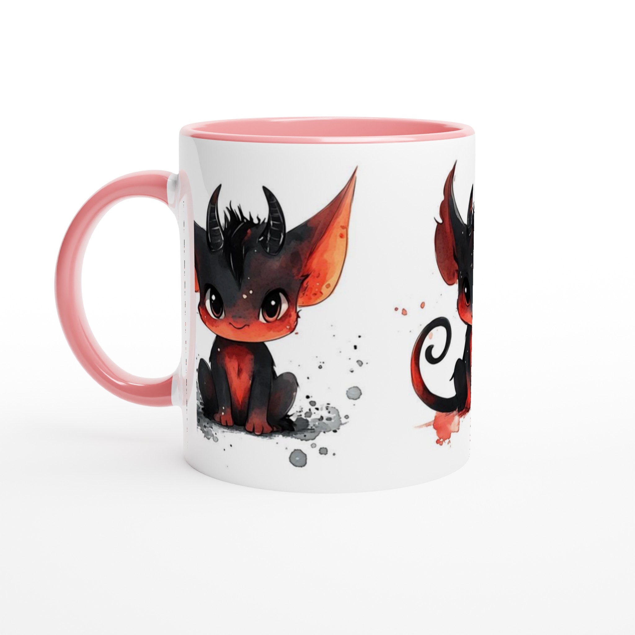 Chibi Demon Watercolor 11oz Ceramic Mug – Adorable Impish Companion for Your Daily Brew