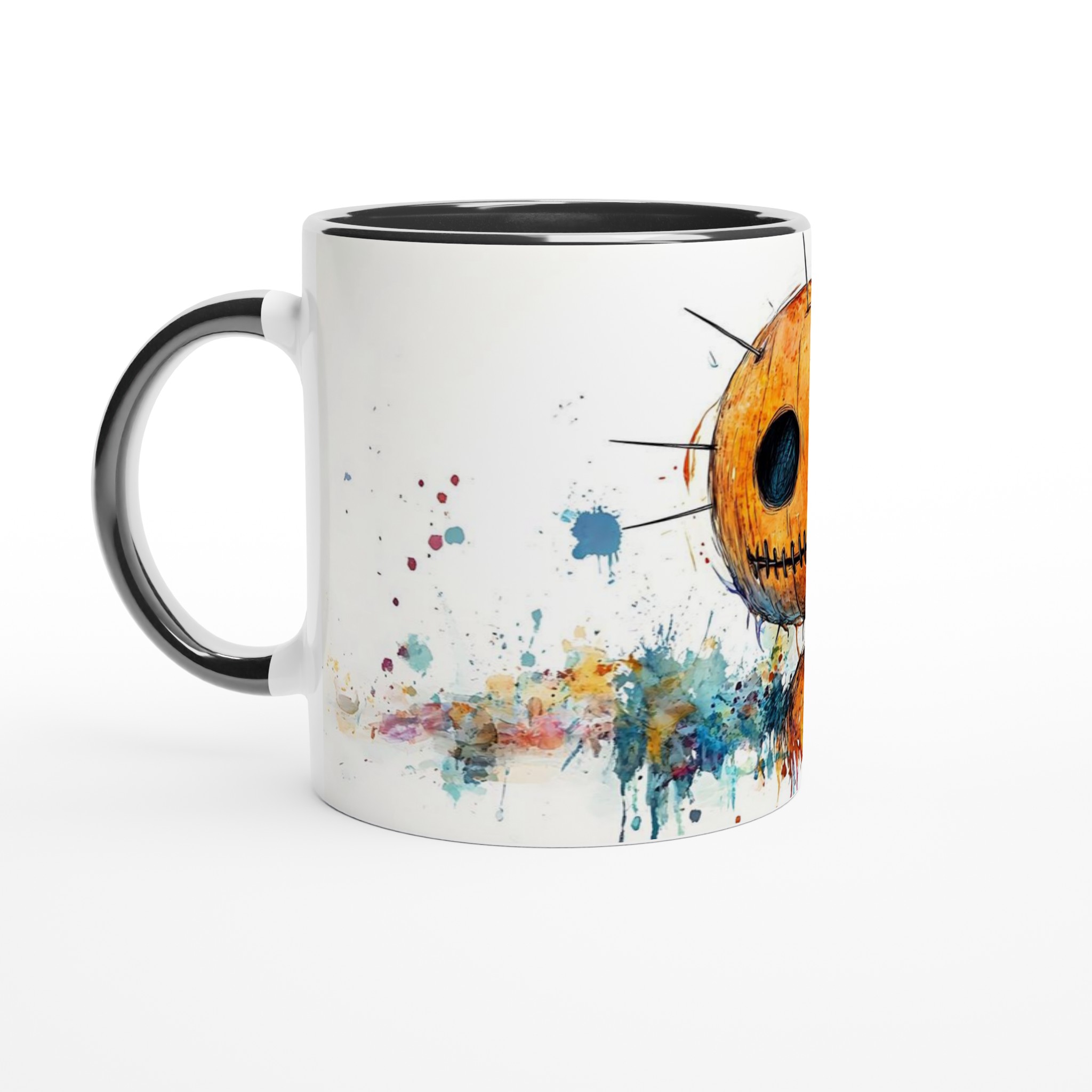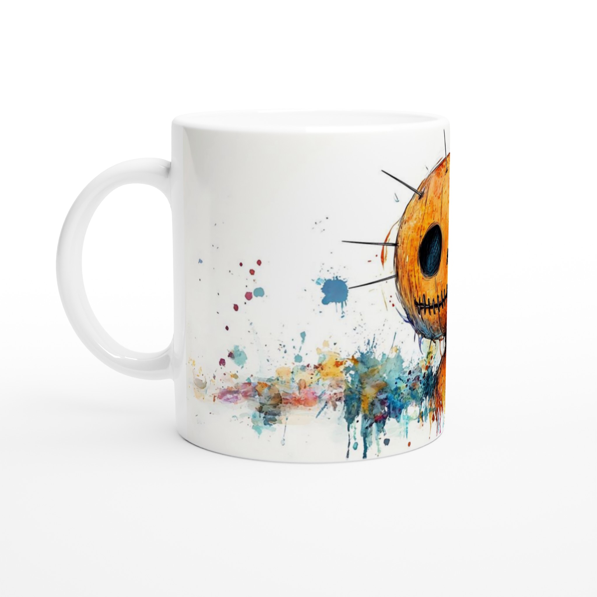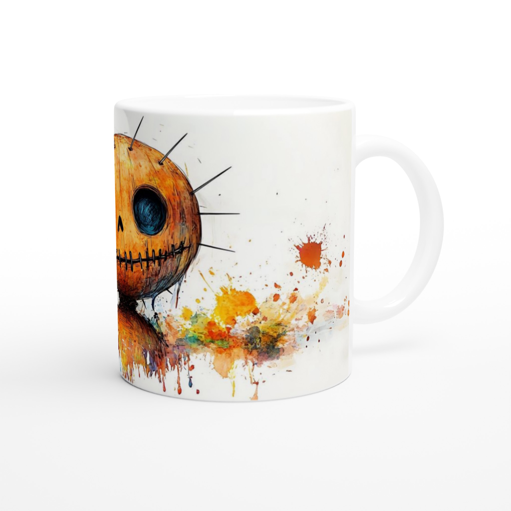 Spooky Watercolor Voodoo Doll Pumpkin 11oz Ceramic Mug – Choose Your Hue!